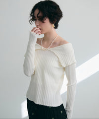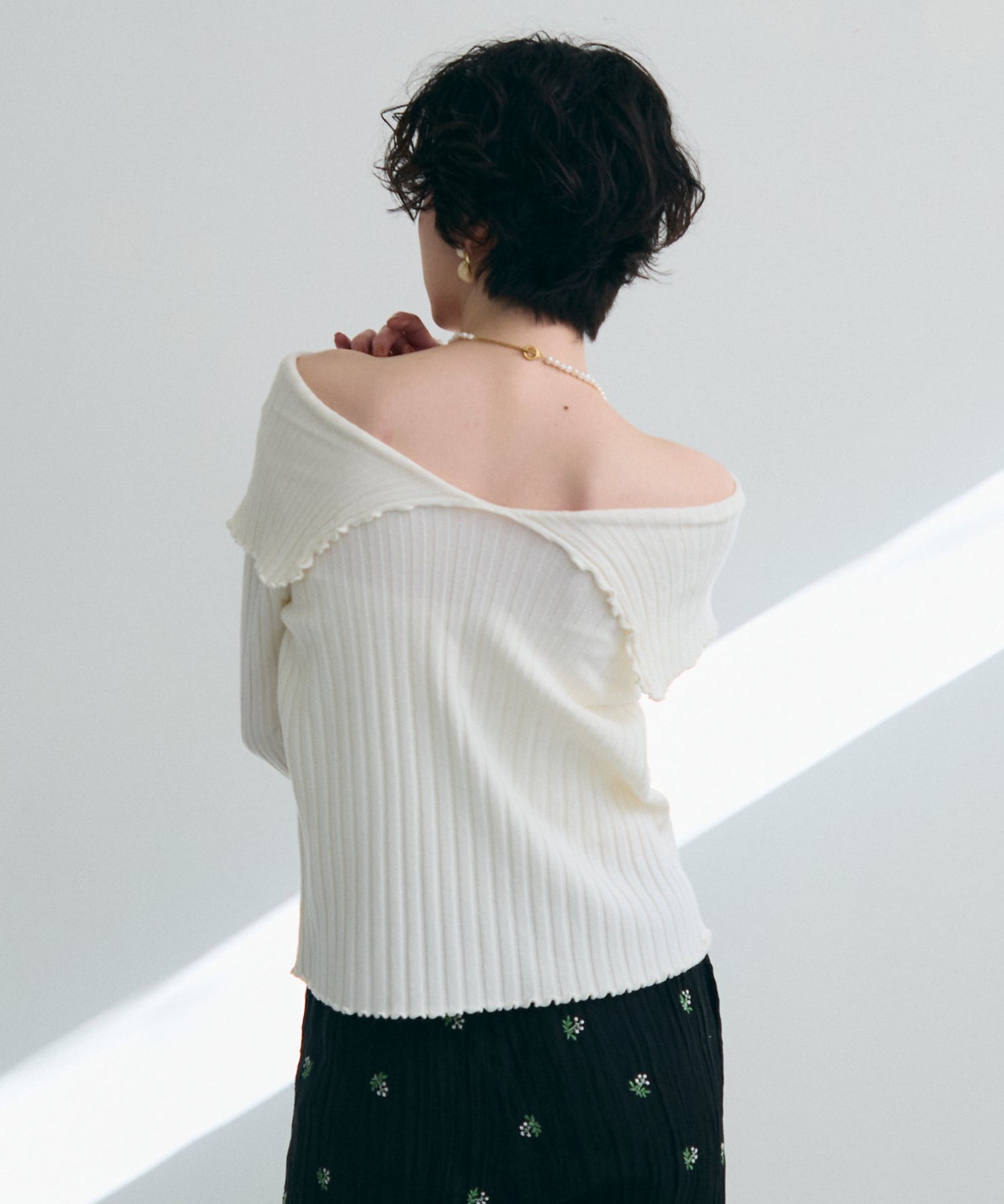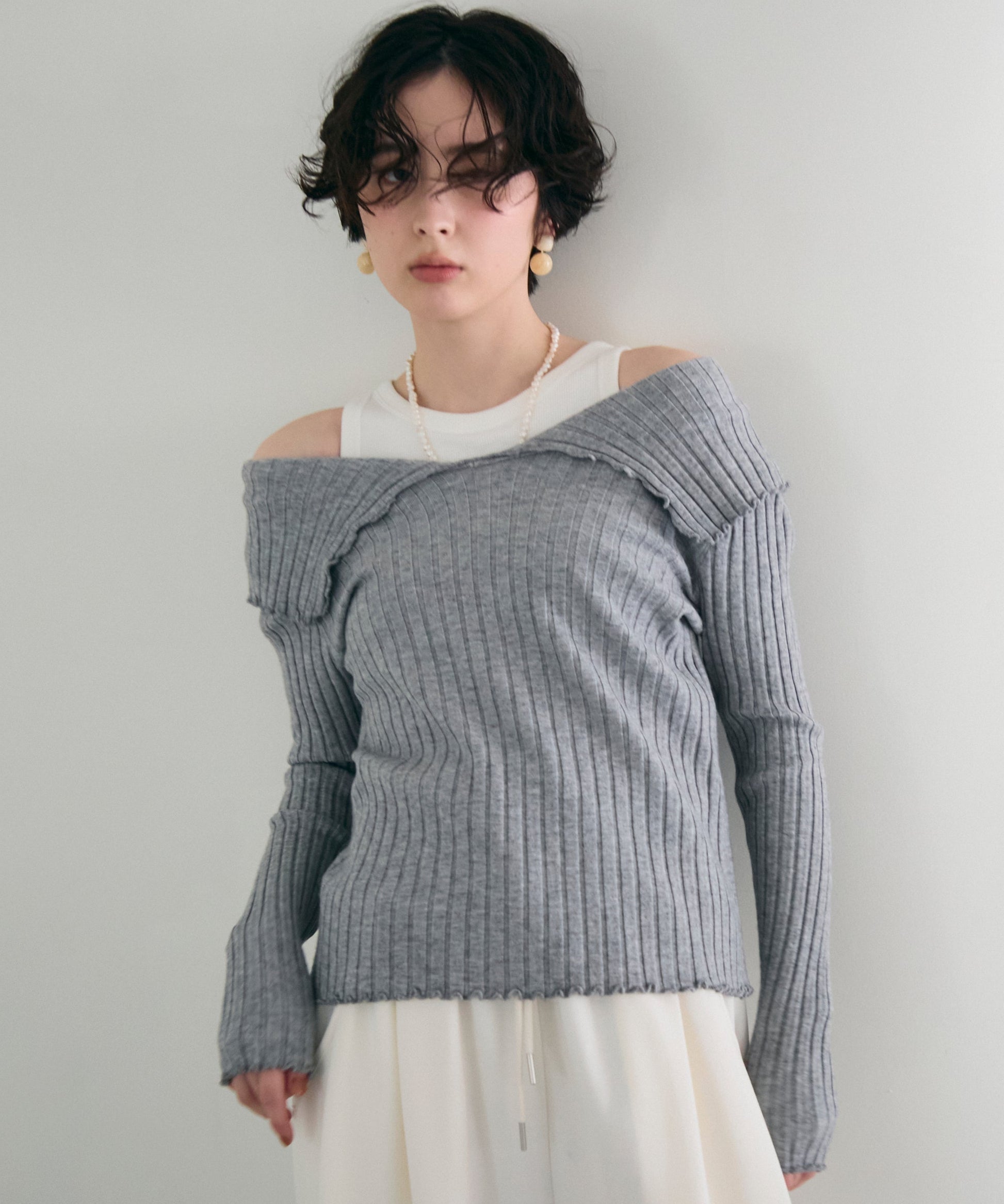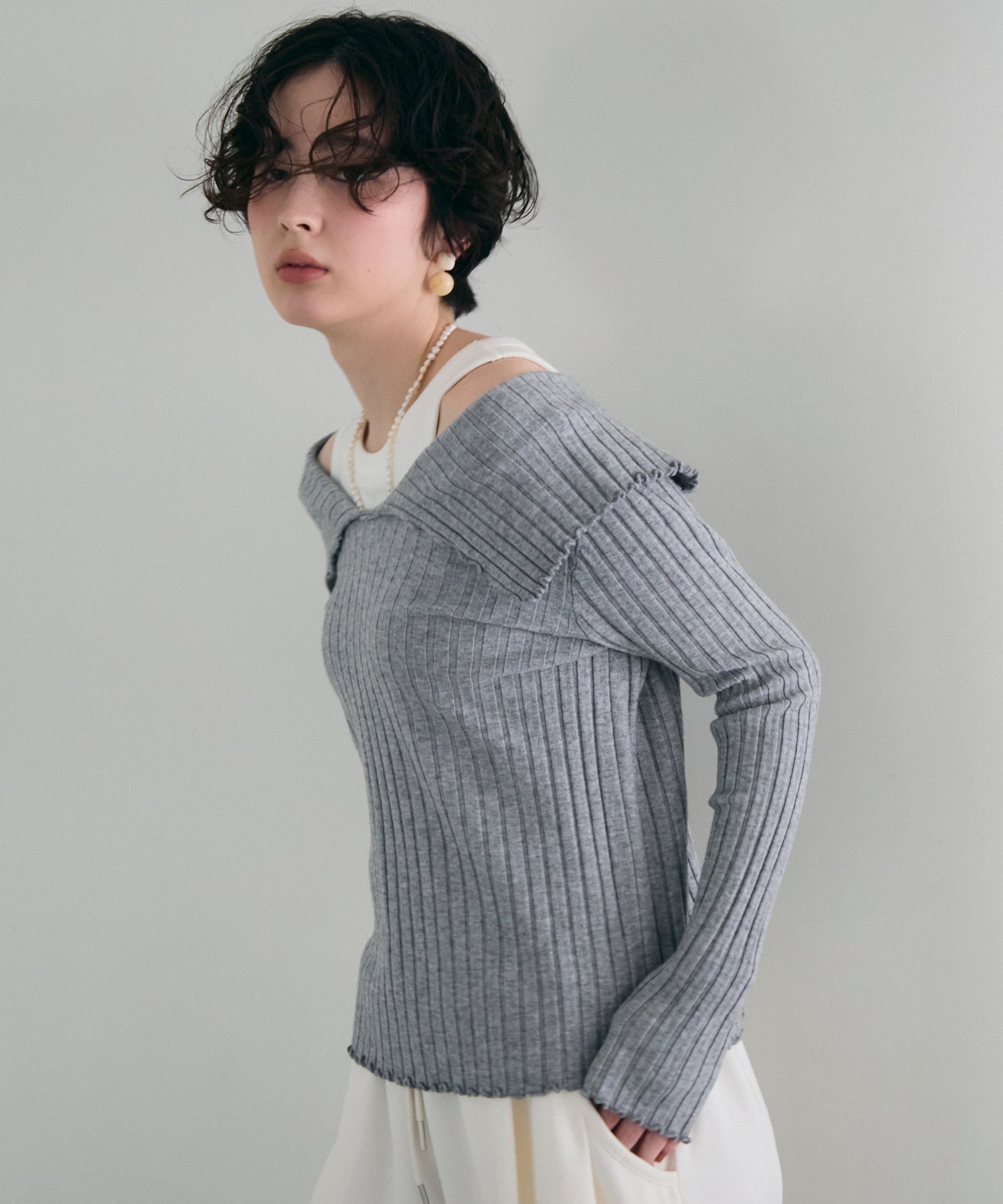 首元の開きが女性らしく、インナーとのレイヤードも楽しめます。