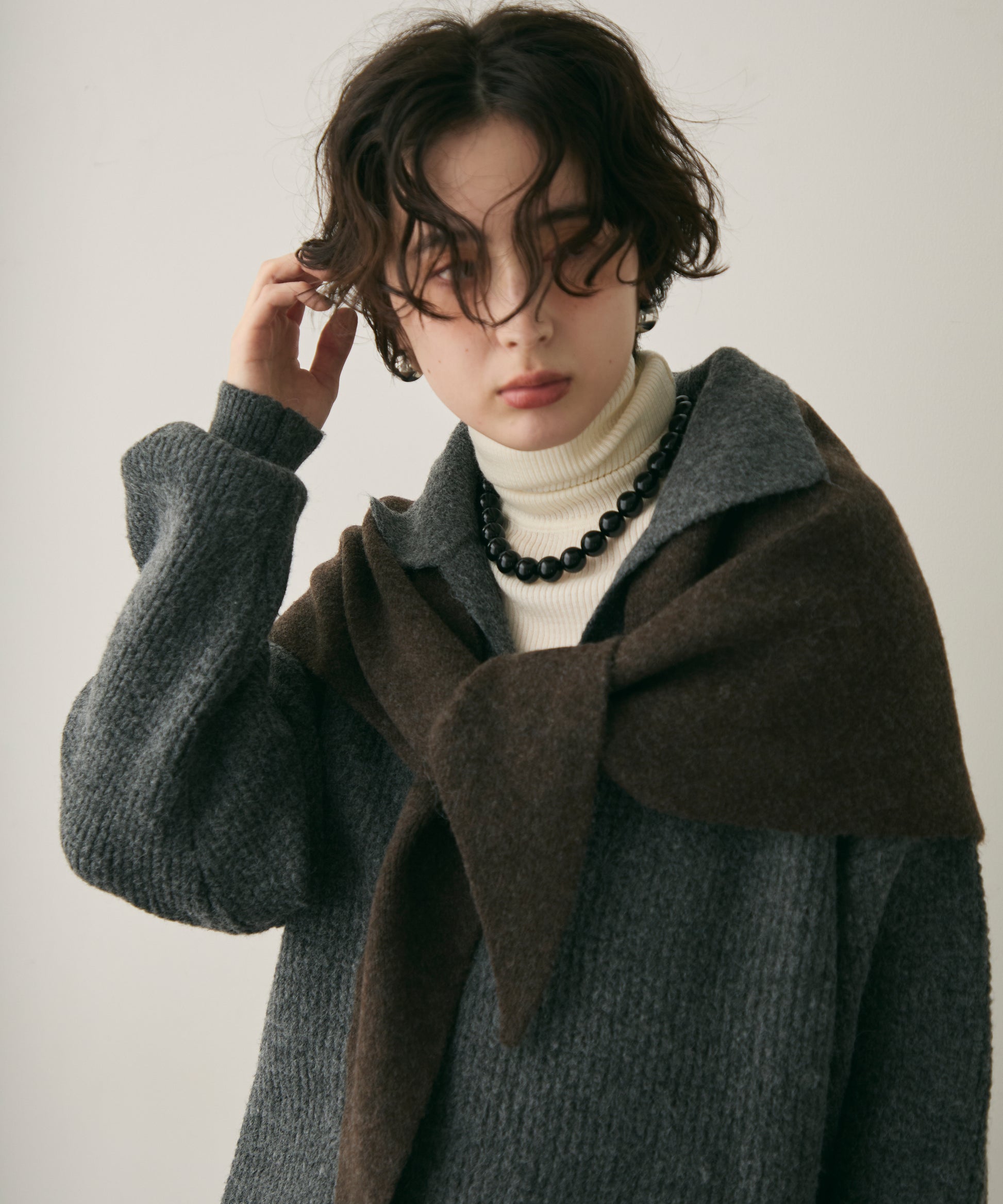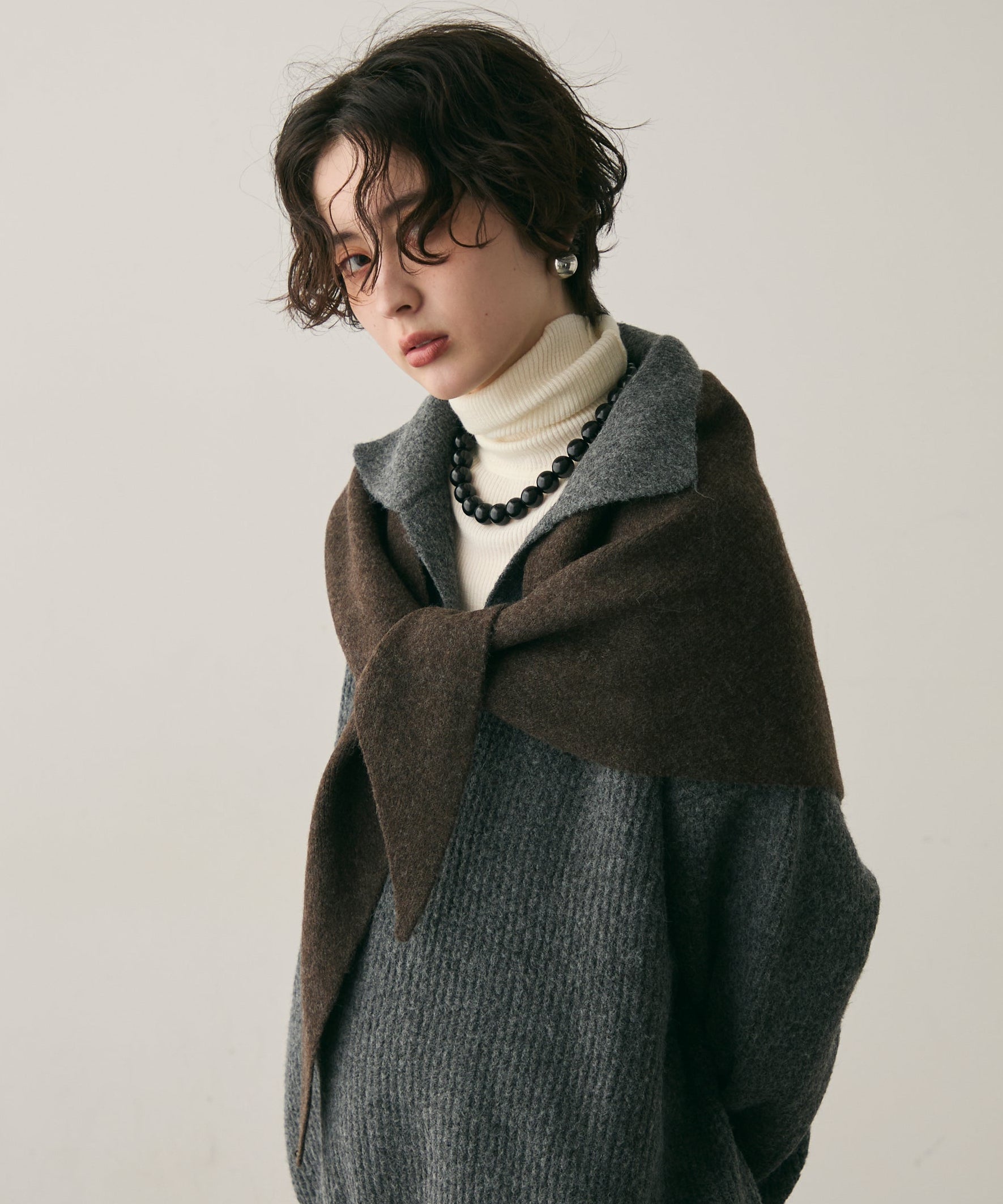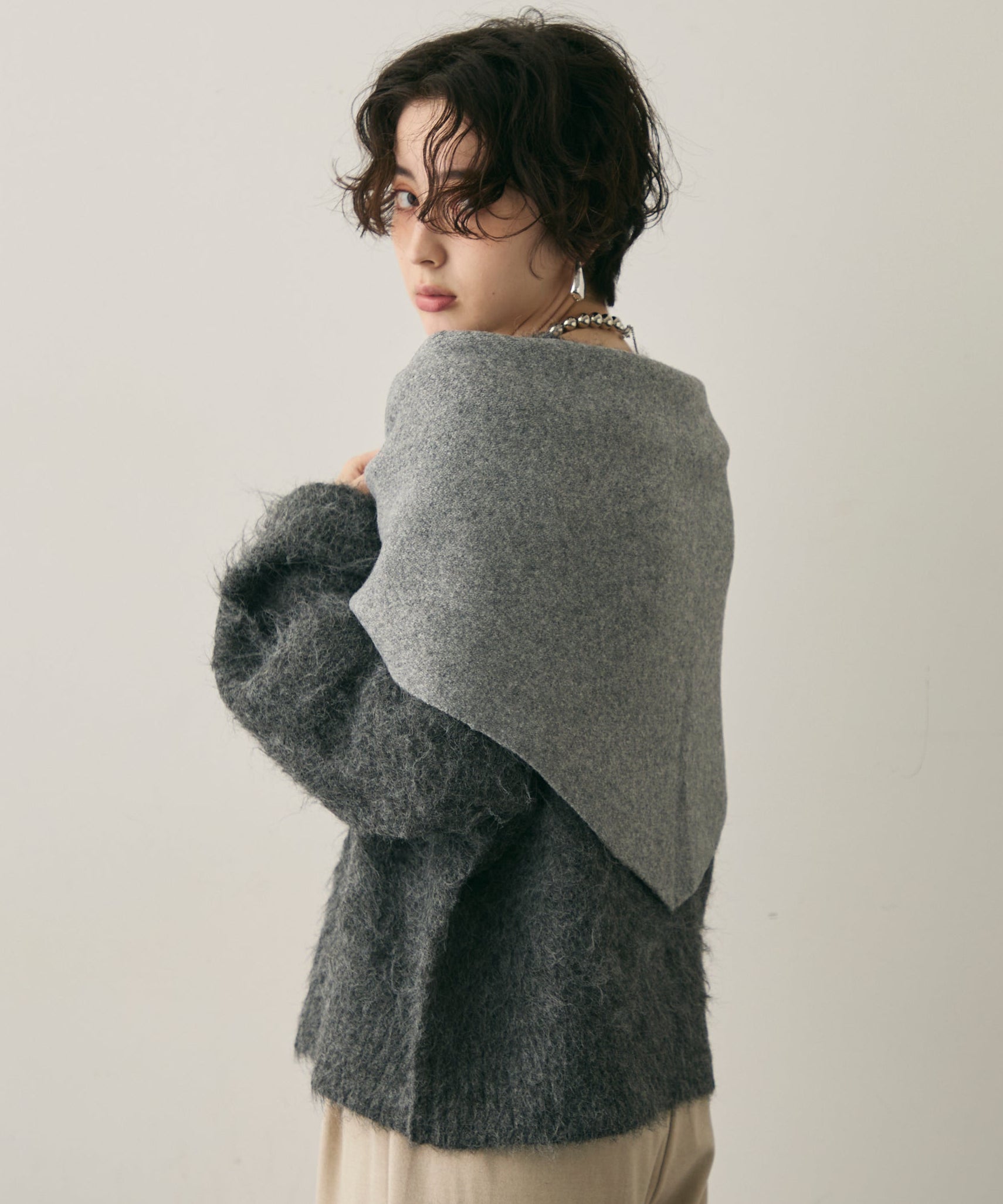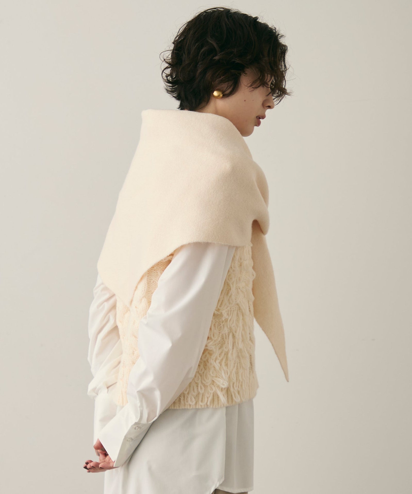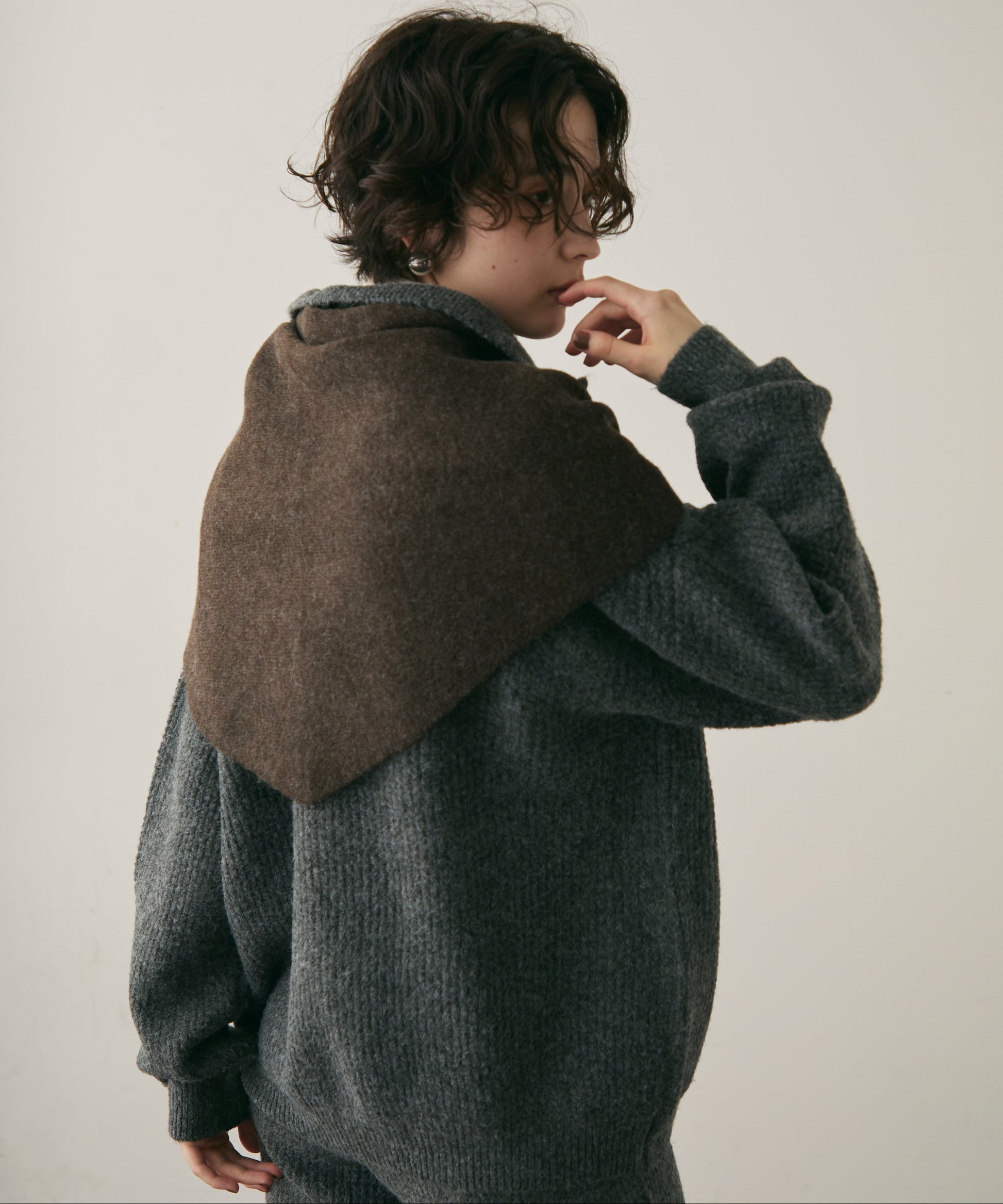 もちもちニットトライアングルスカーフふんわり“もちもち”とした肌ざわりが心地よい、三角形デザインのニットスカーフ。