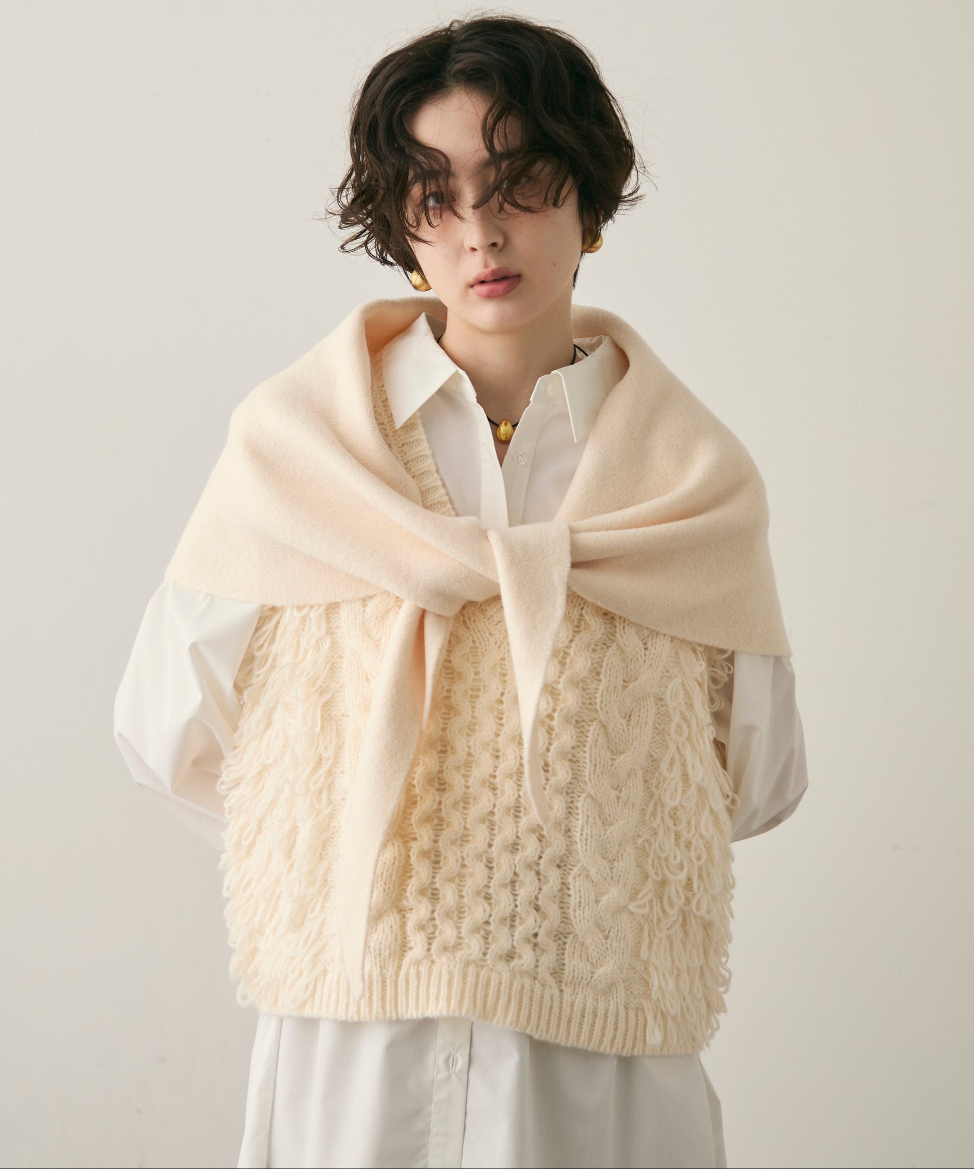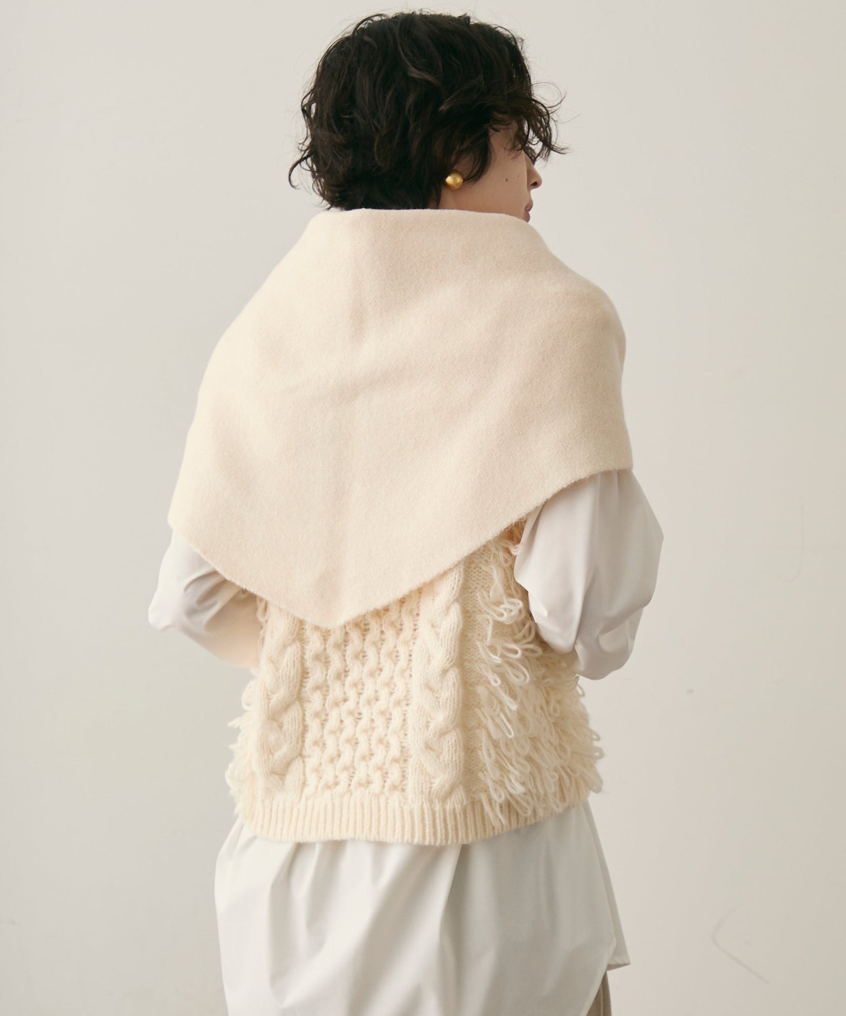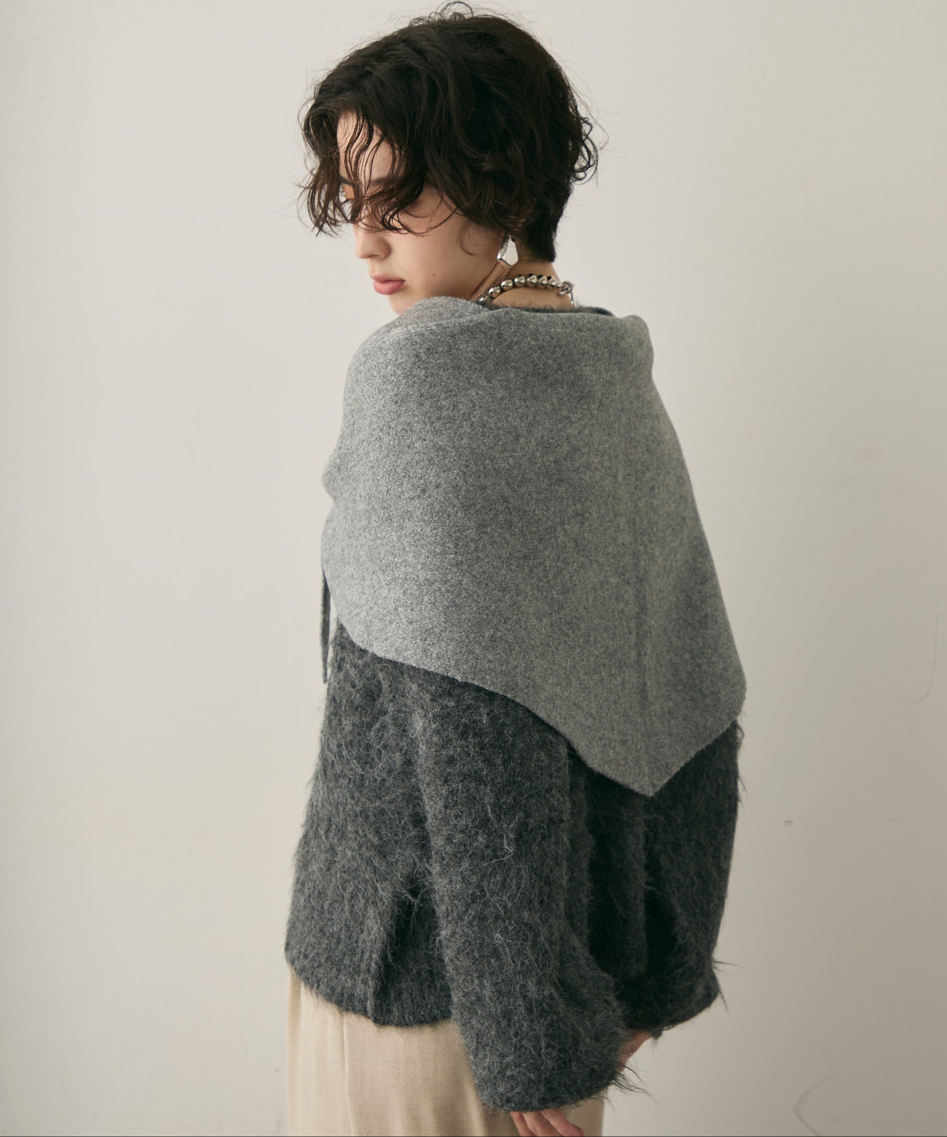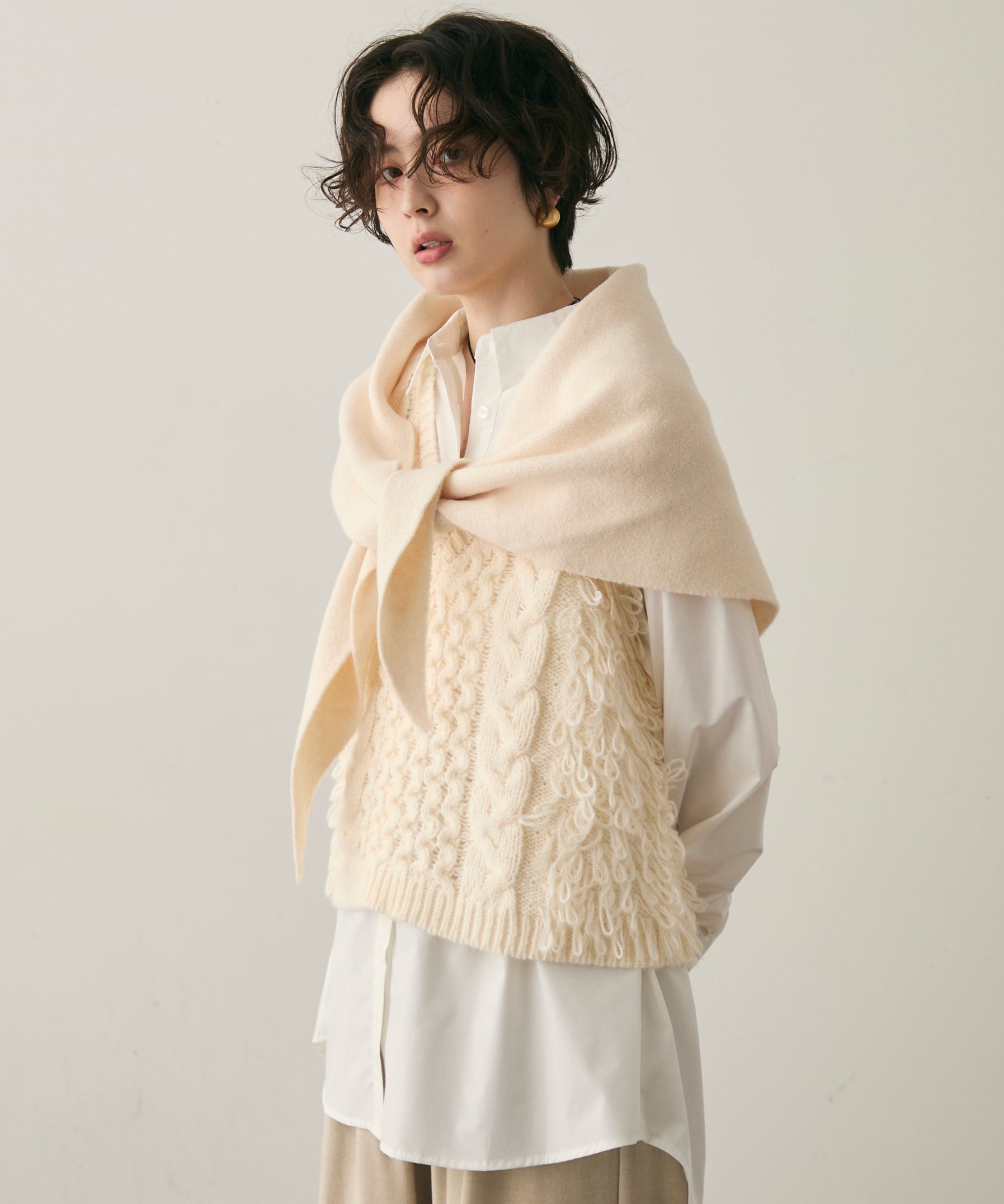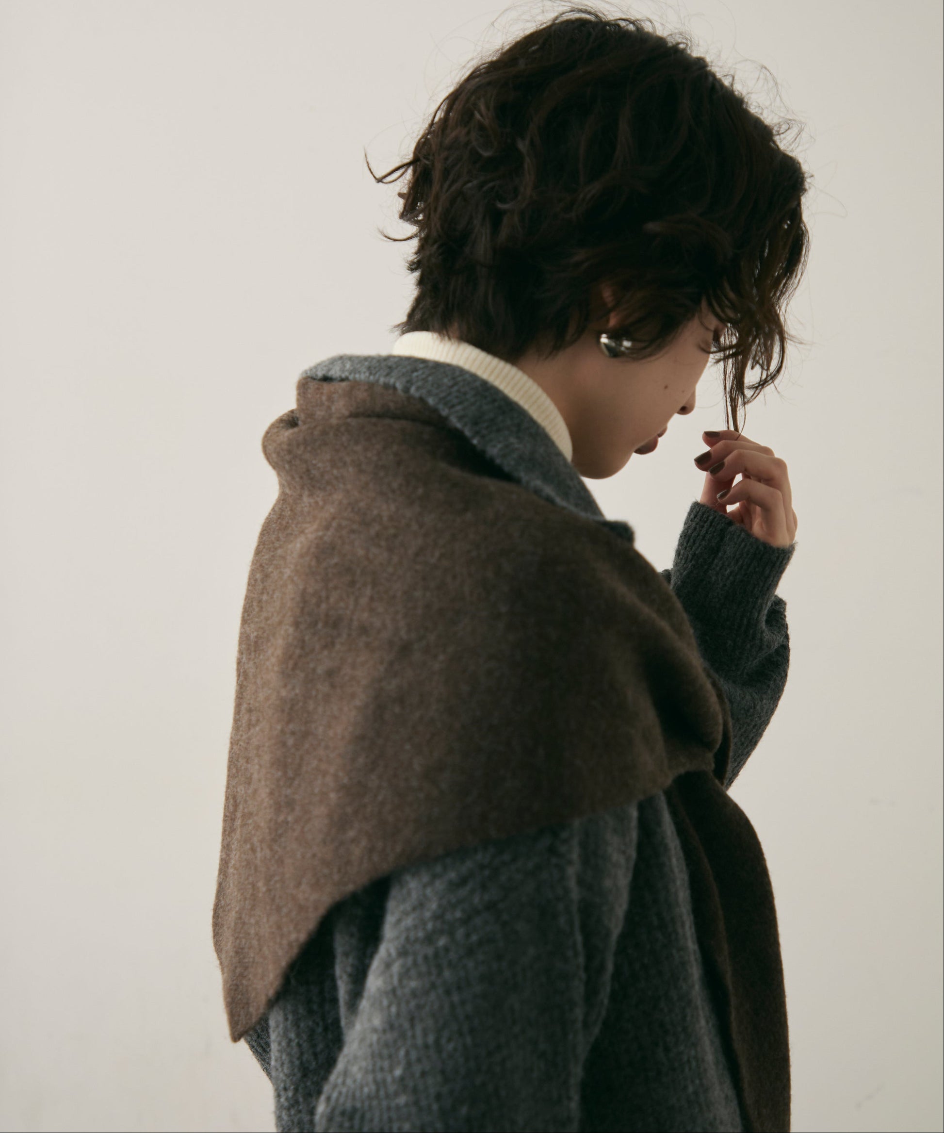 もちもちニットトライアングルスカーフふんわり“もちもち”とした肌ざわりが心地よい、三角形デザインのニットスカーフ。