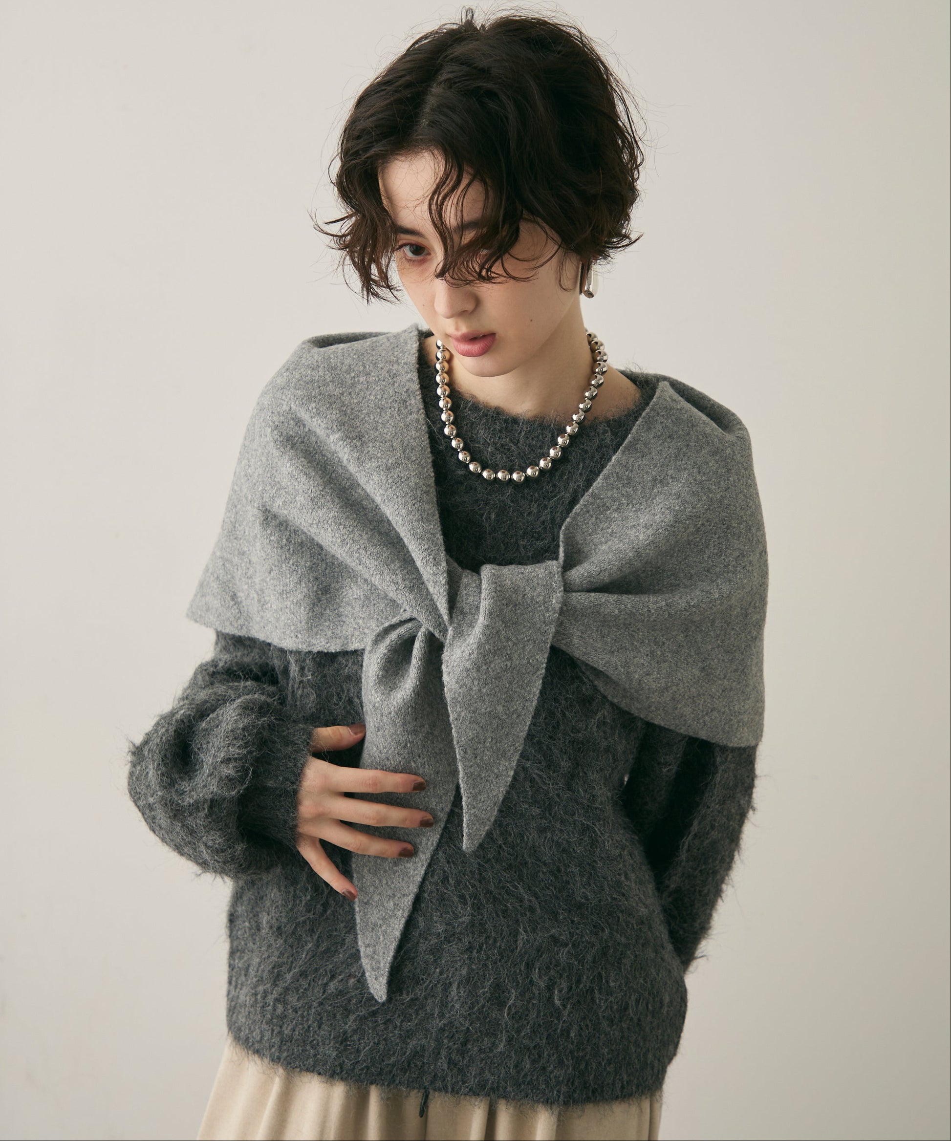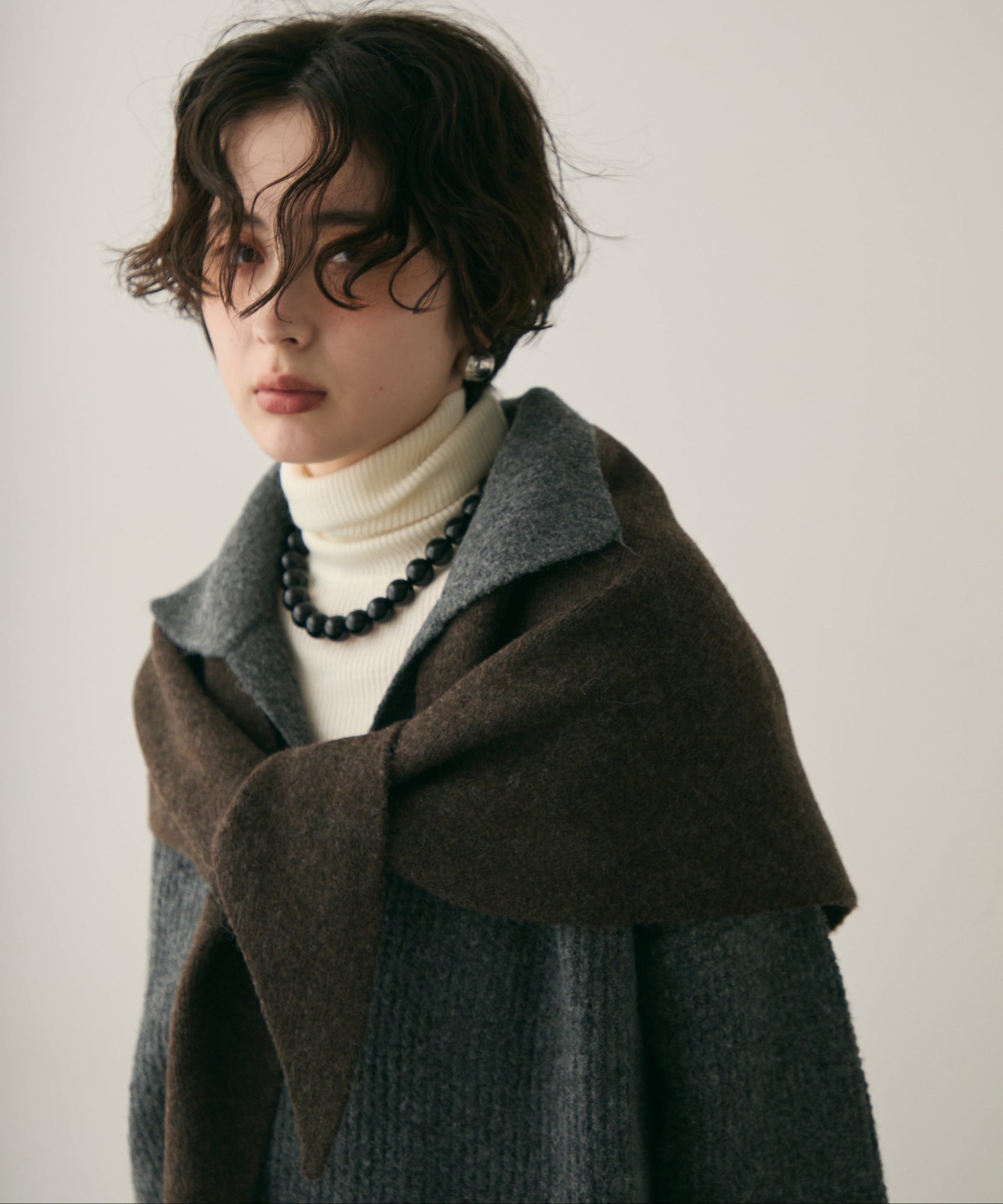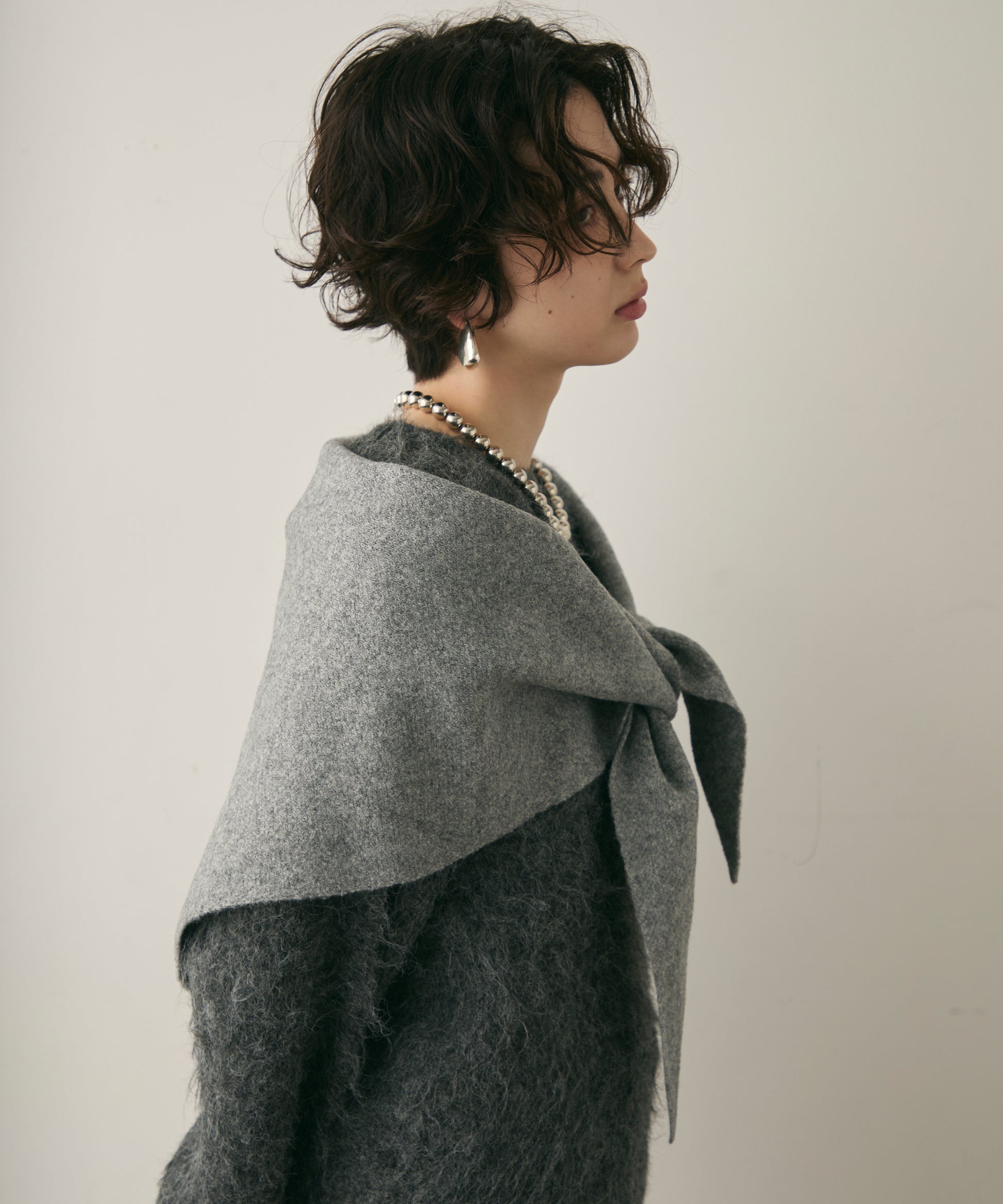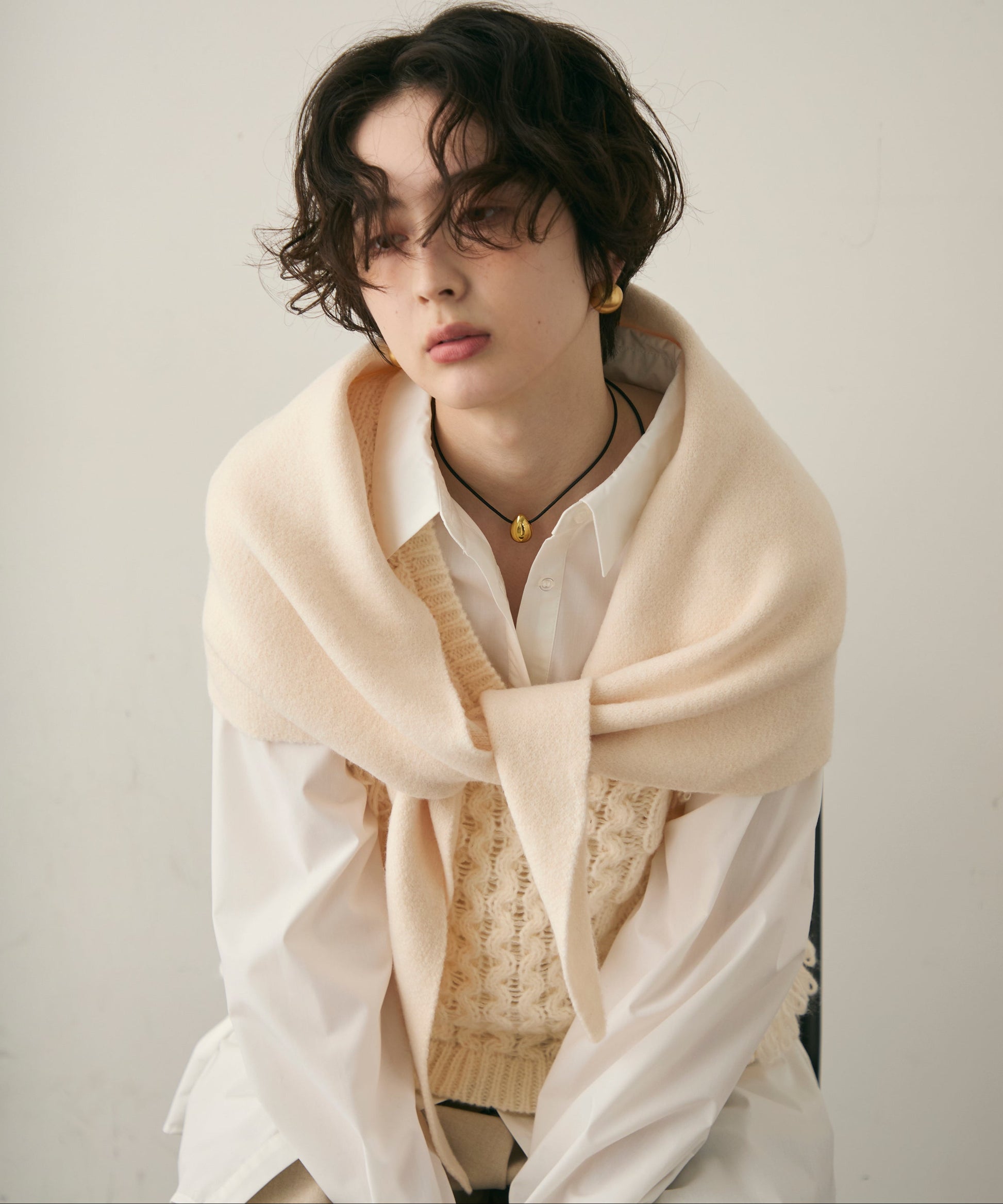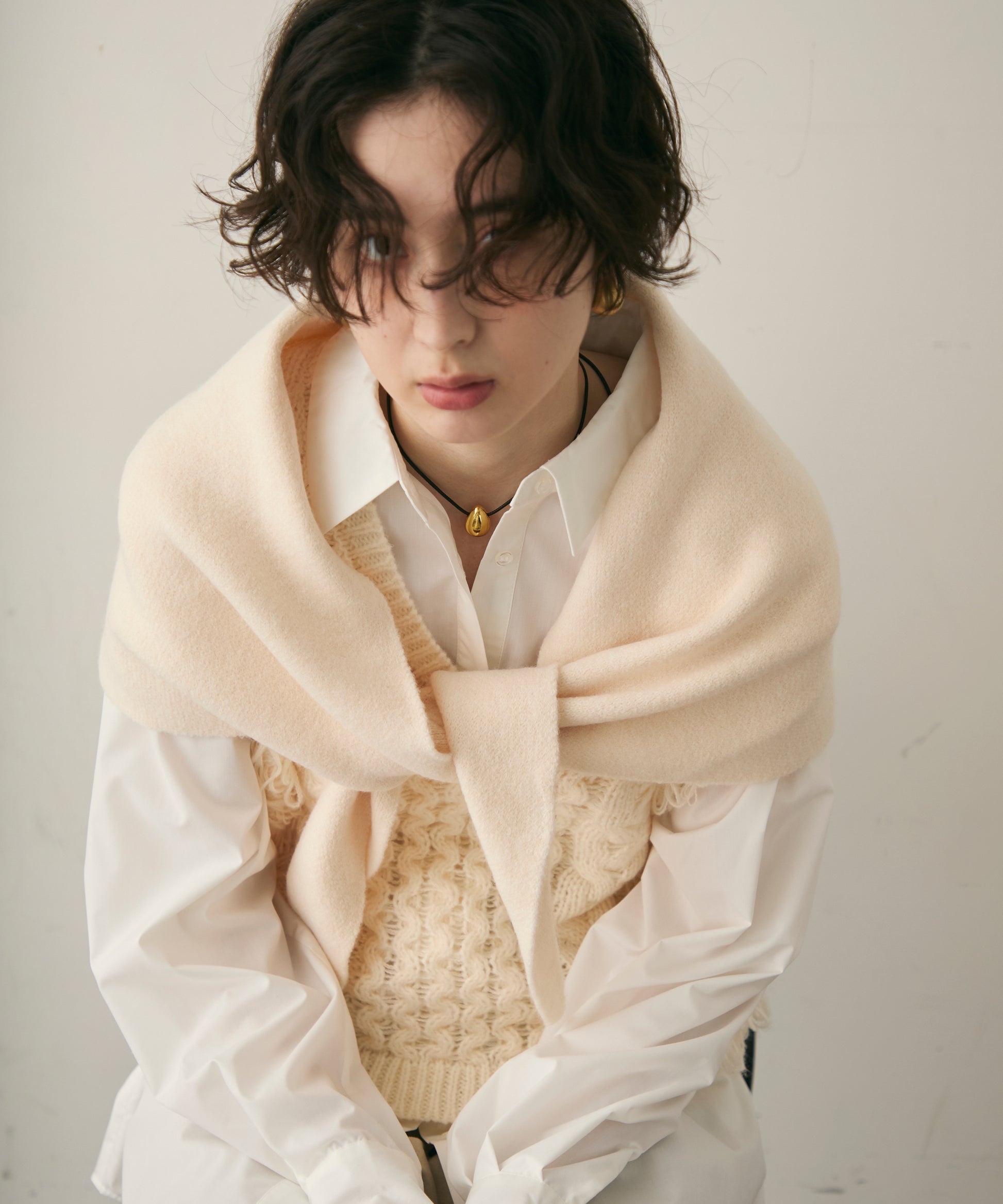 軽くて柔らかい素材が首元をやさしく包み込み、シンプルなスタイリングに立体感をプラスします。