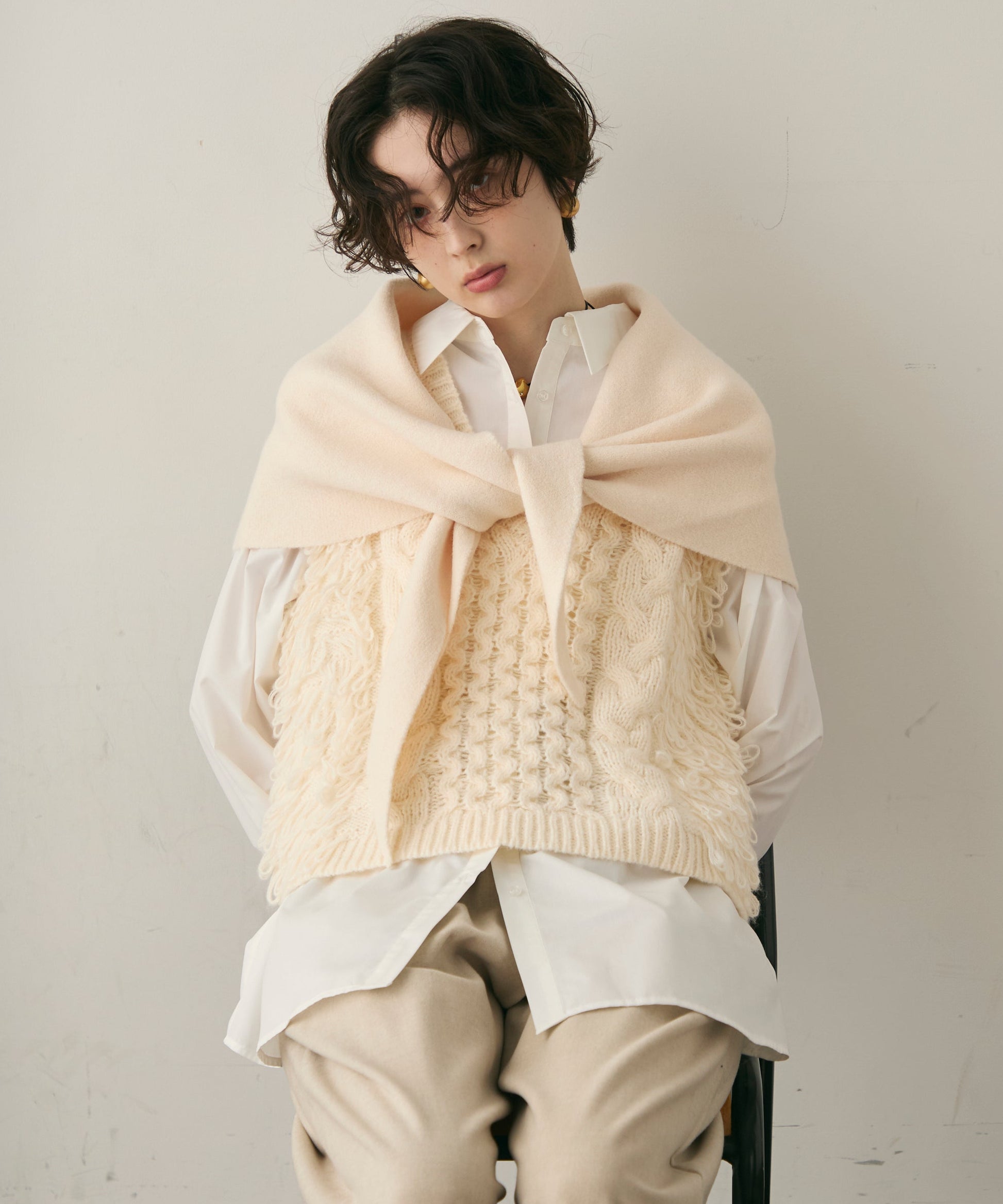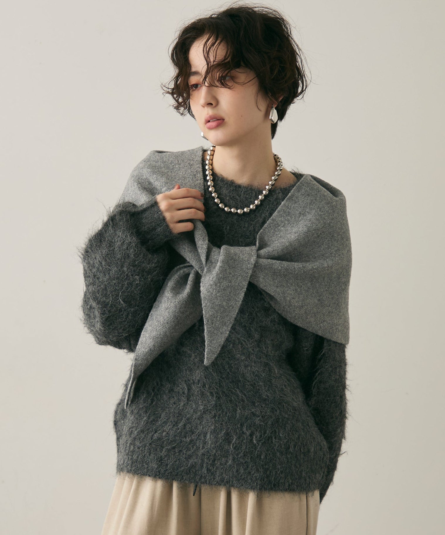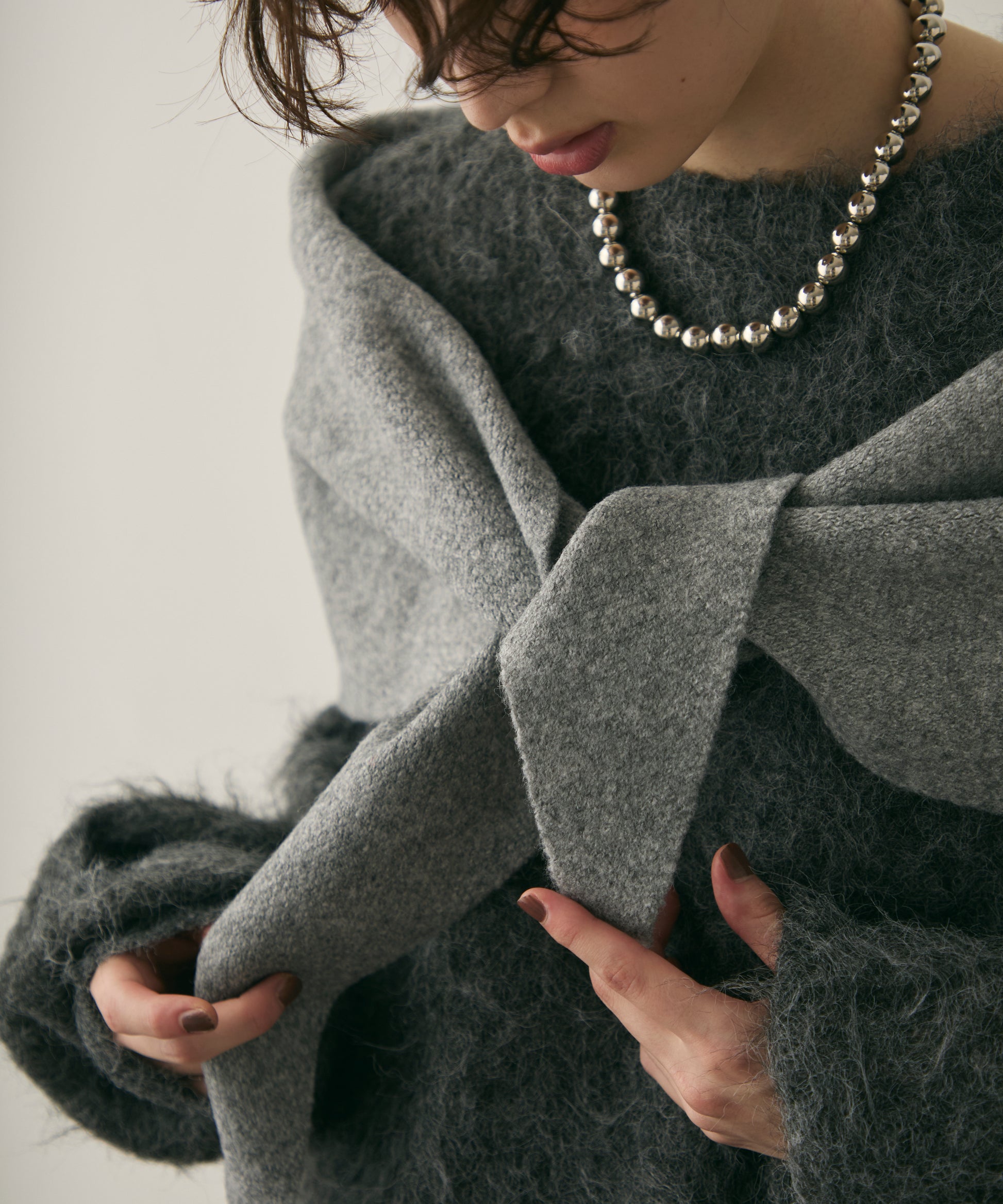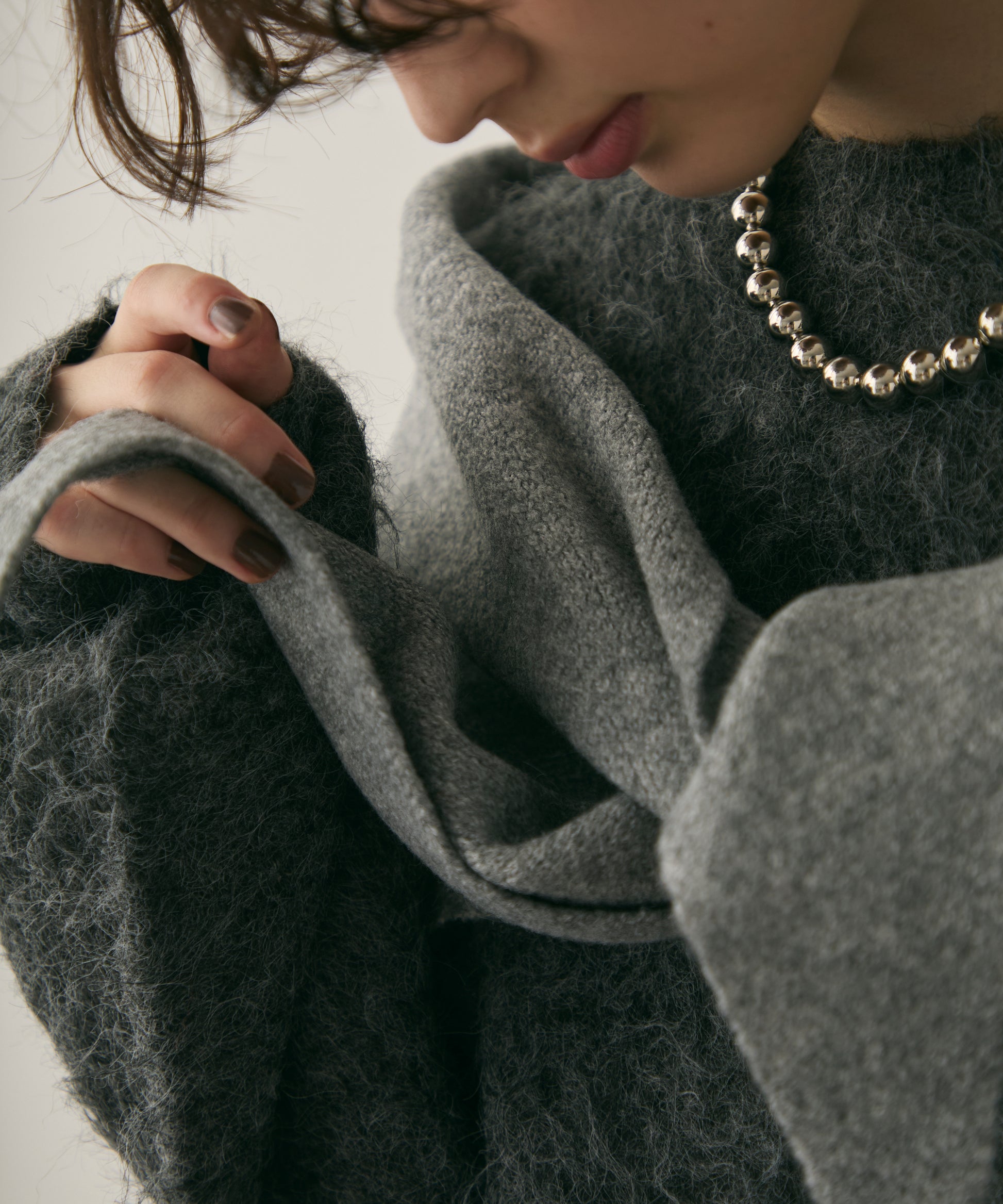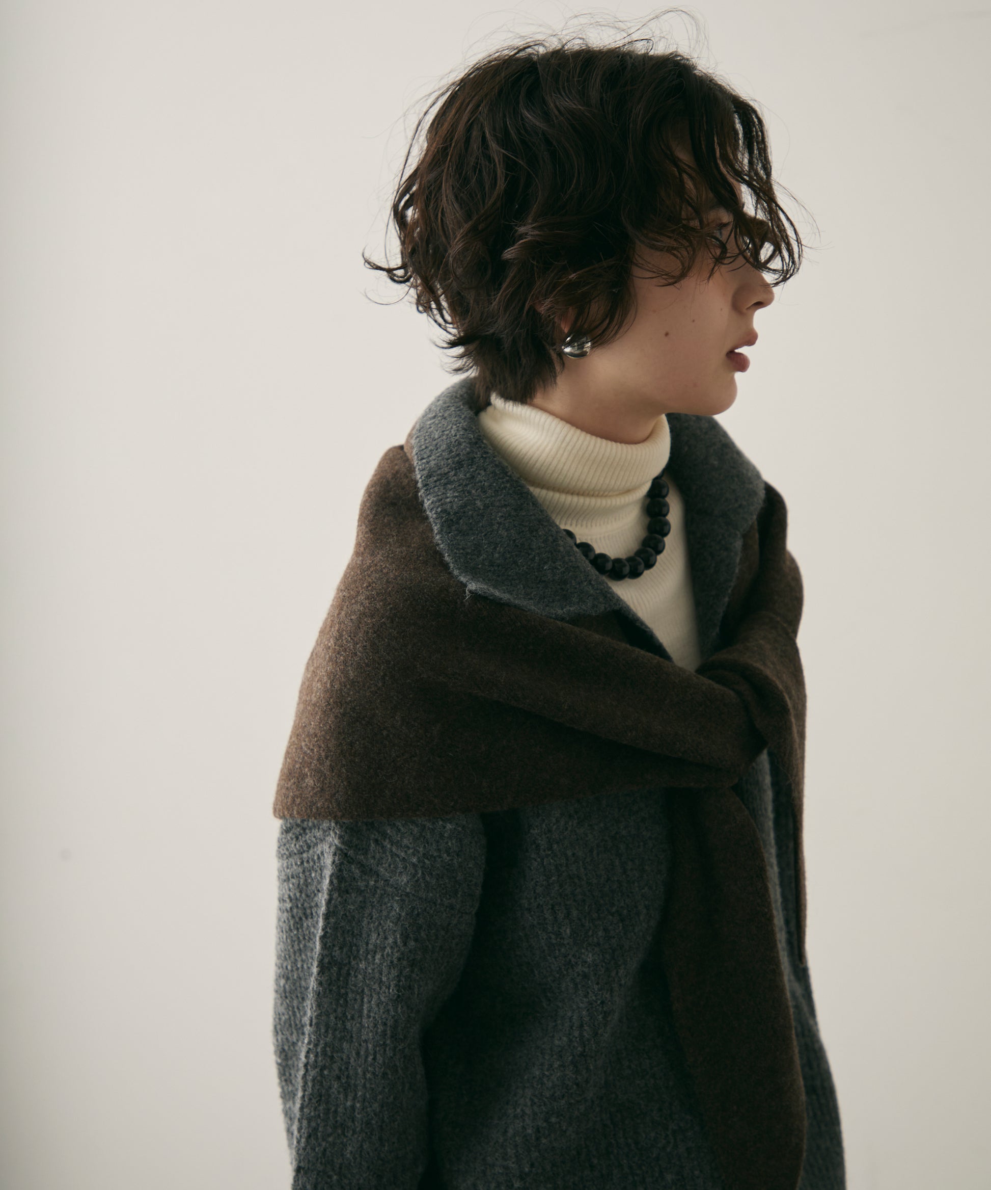 軽くて柔らかい素材が首元をやさしく包み込み、シンプルなスタイリングに立体感をプラスします。