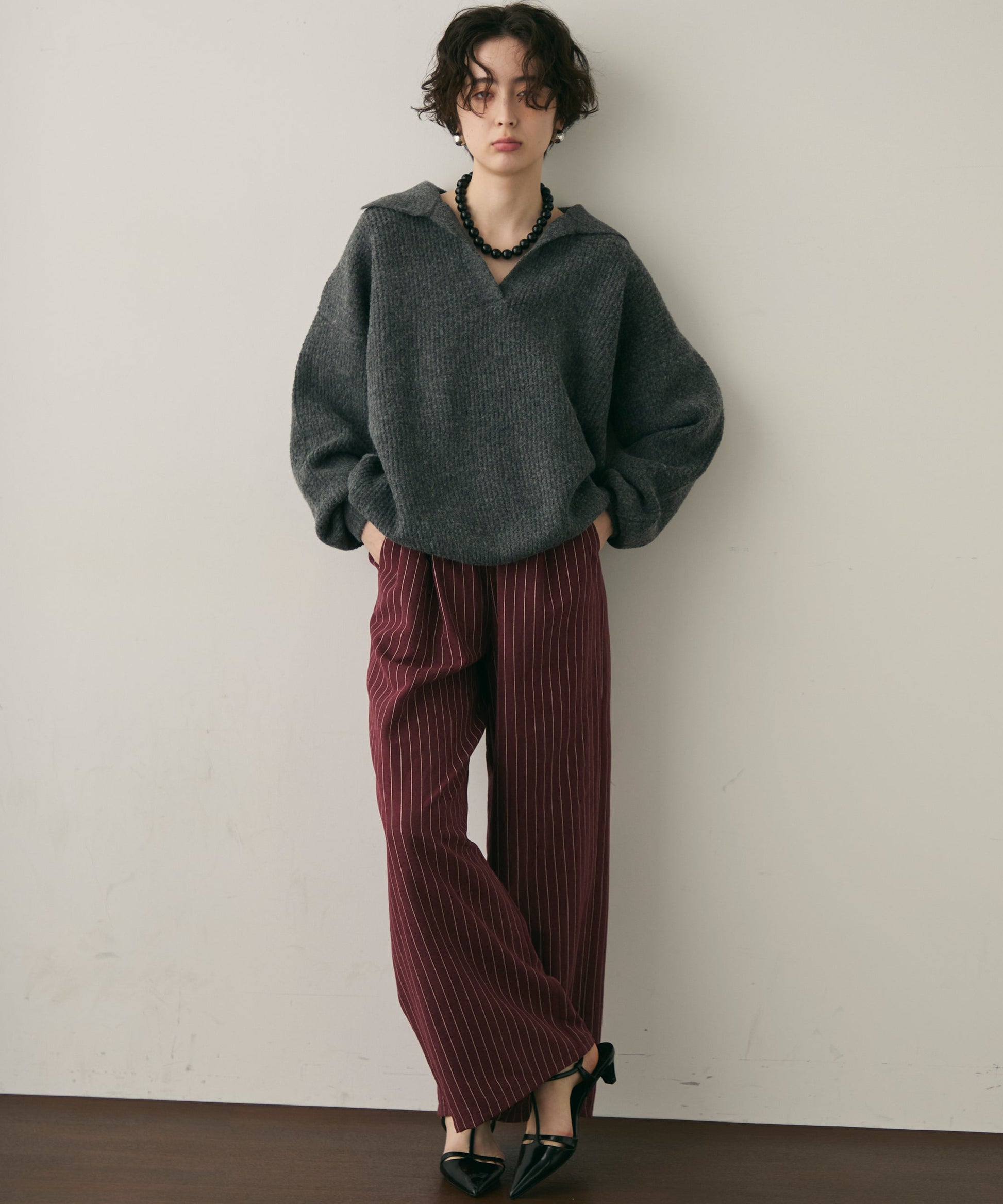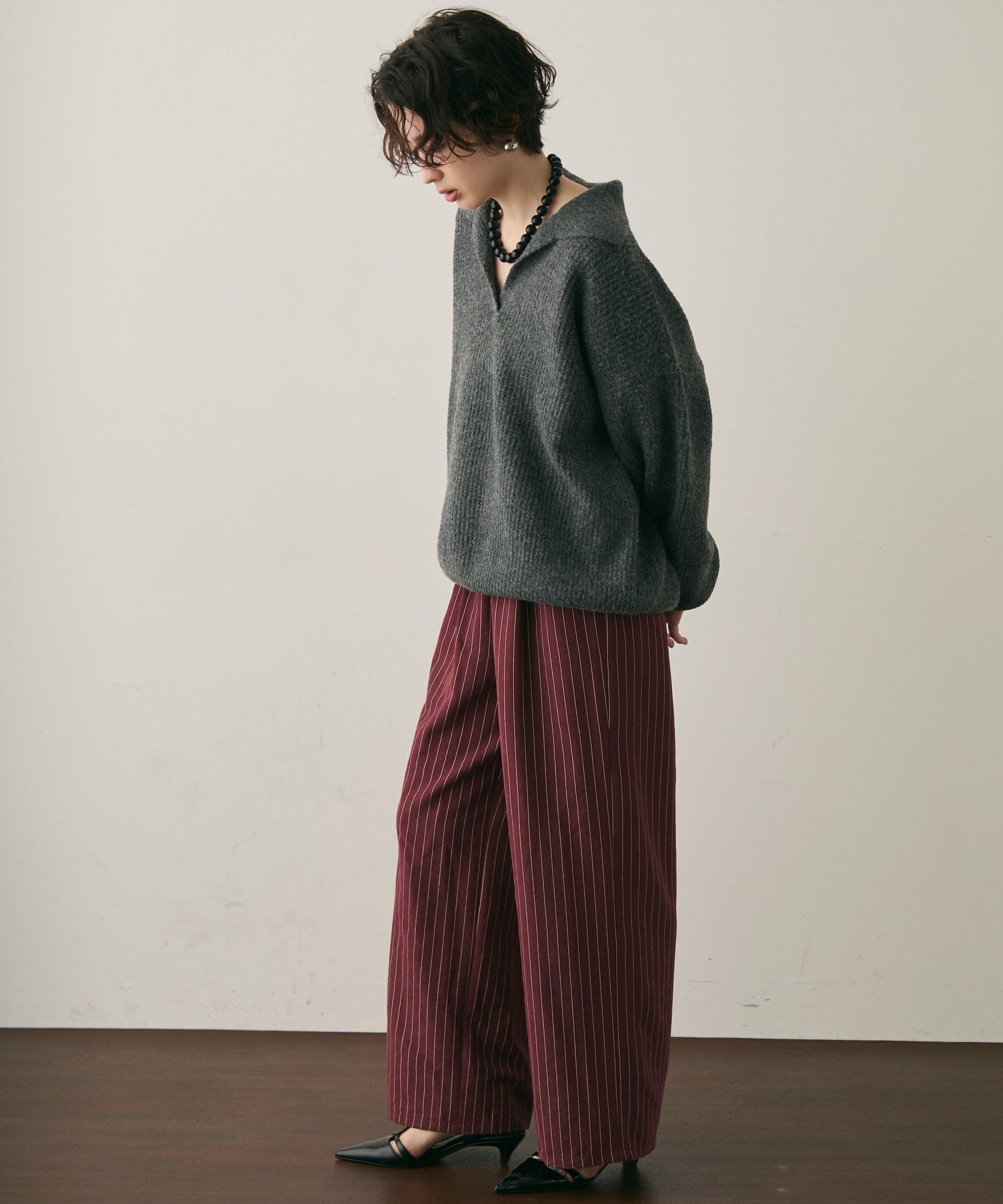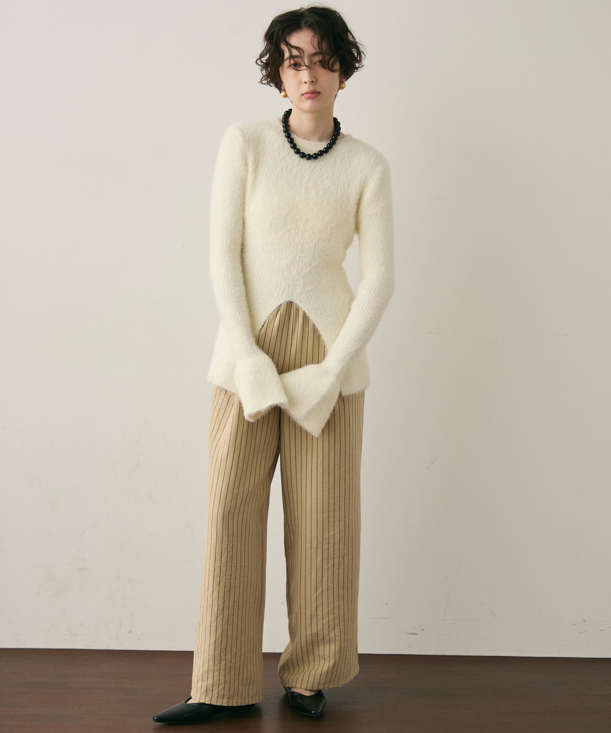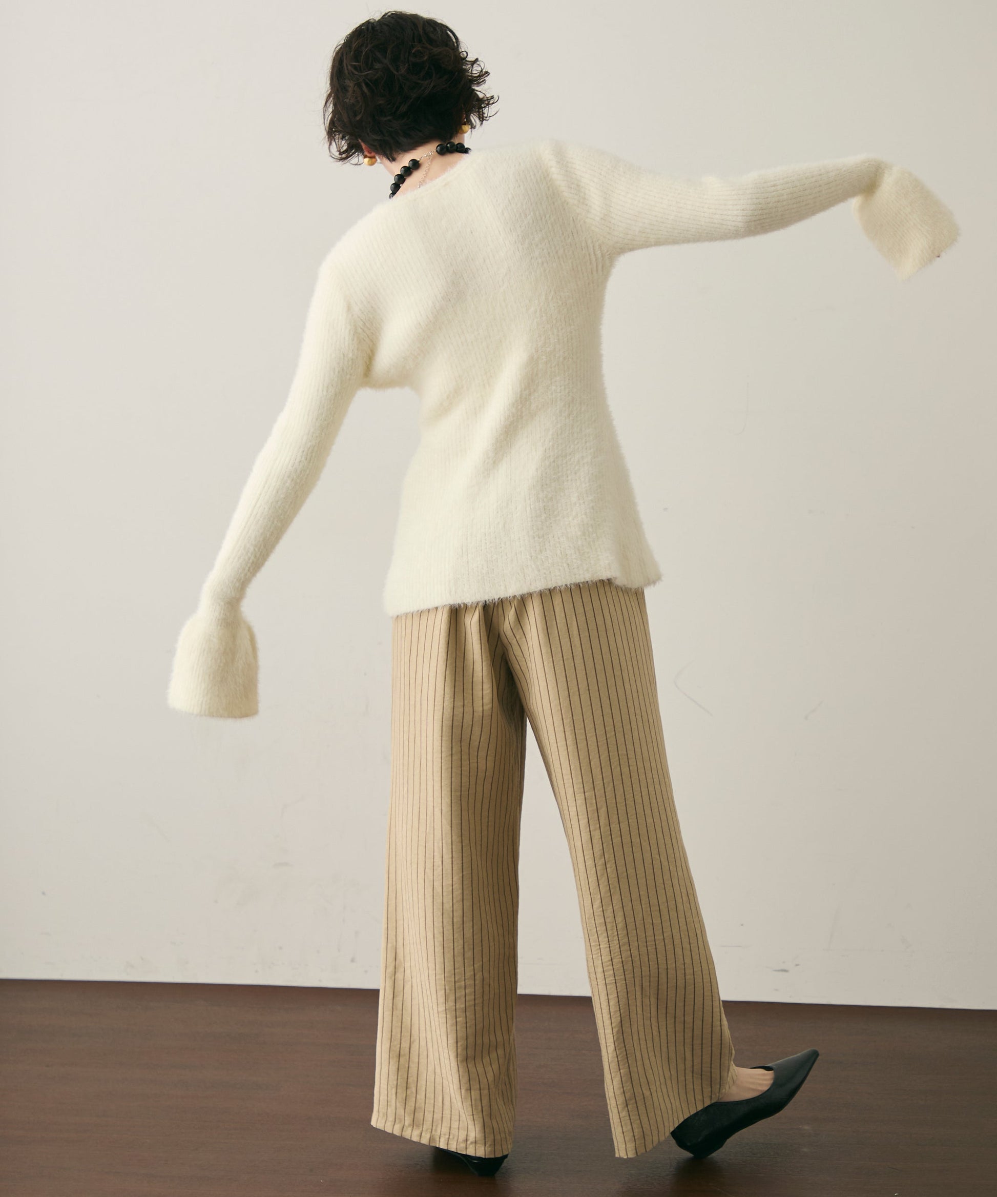 柔らかく微起毛した素材感が肌あたりよく、秋冬のスタイリングにぴったりです。