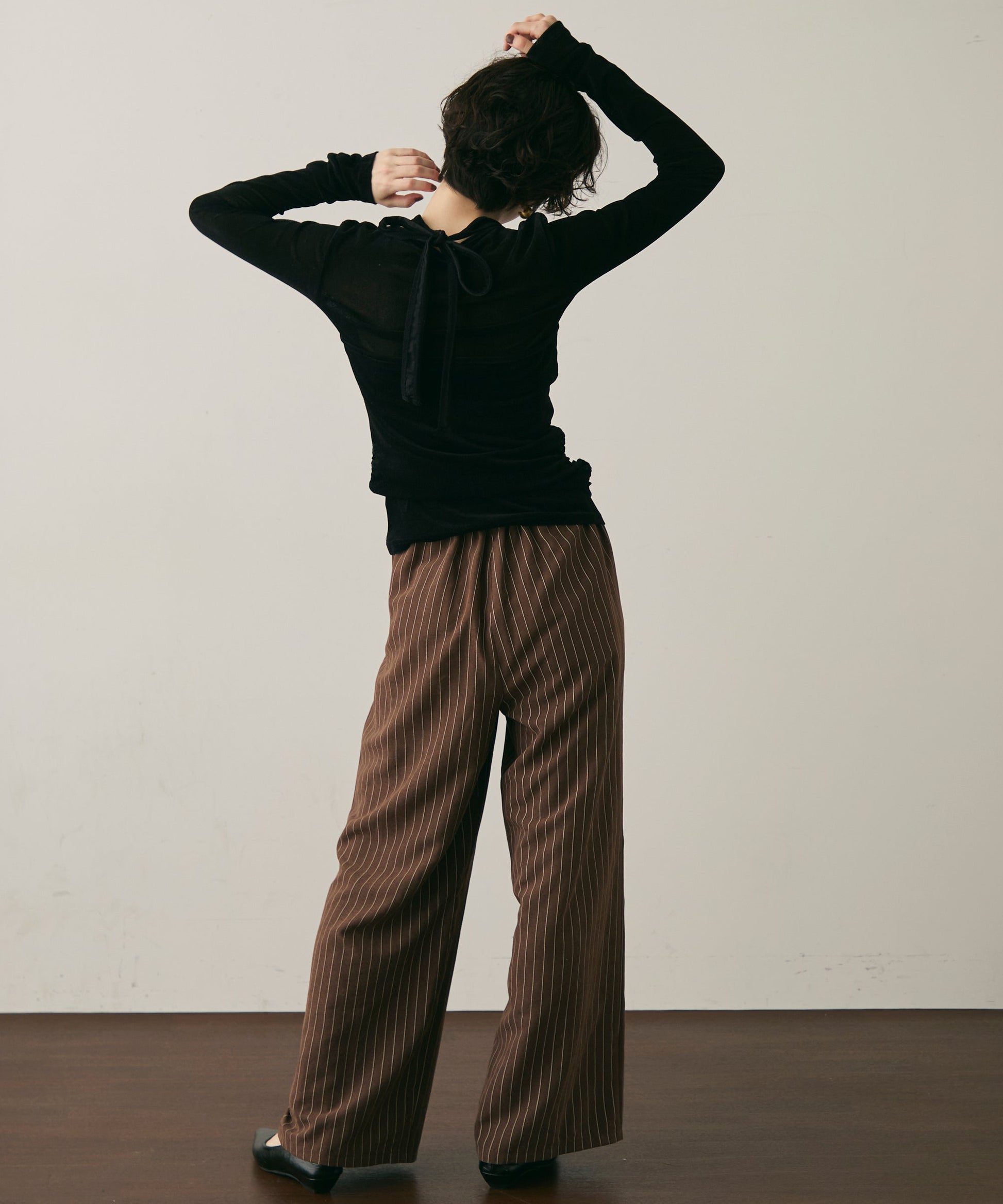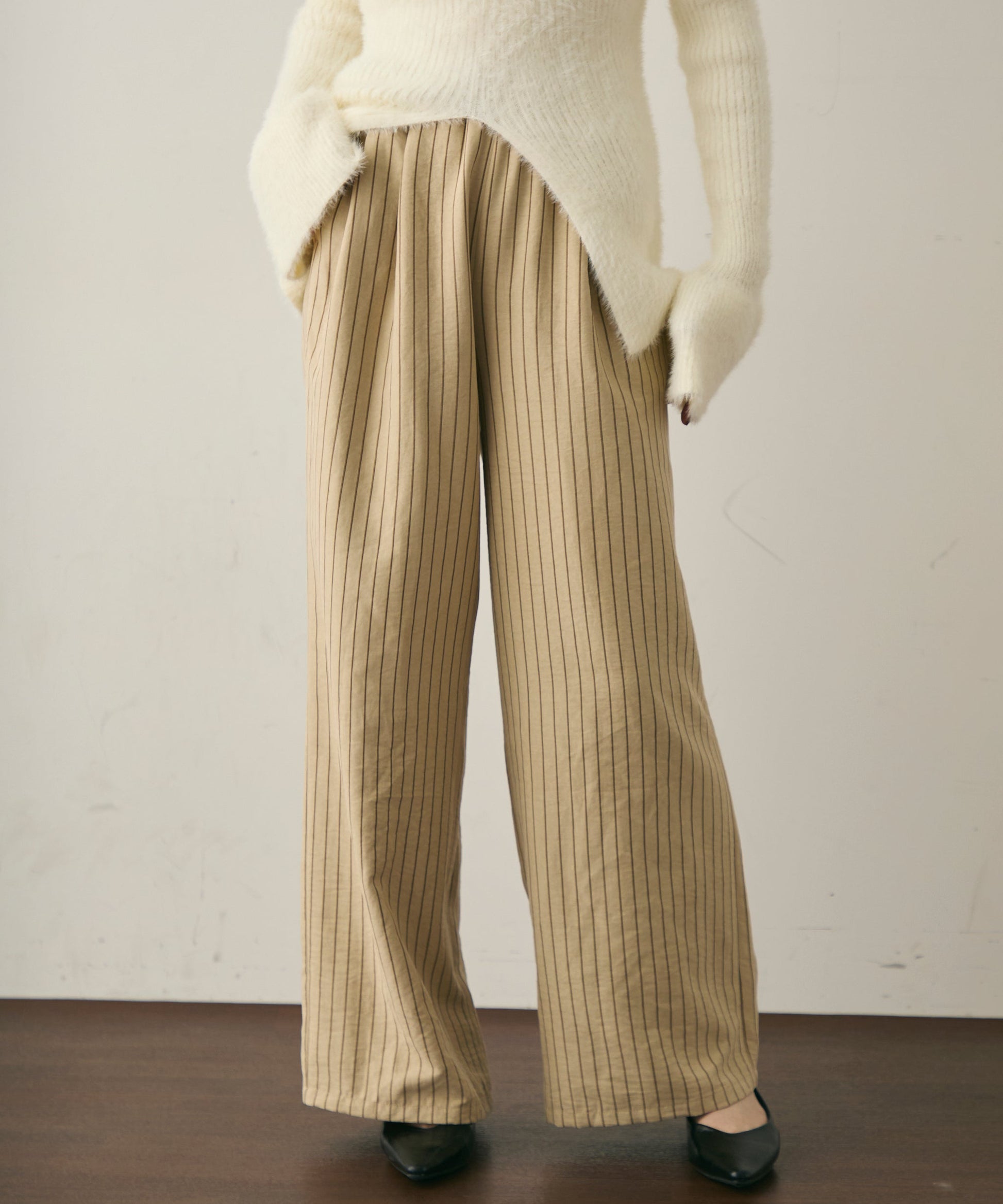 ピーチスキンストライプウエストギャザーイージーパンツ