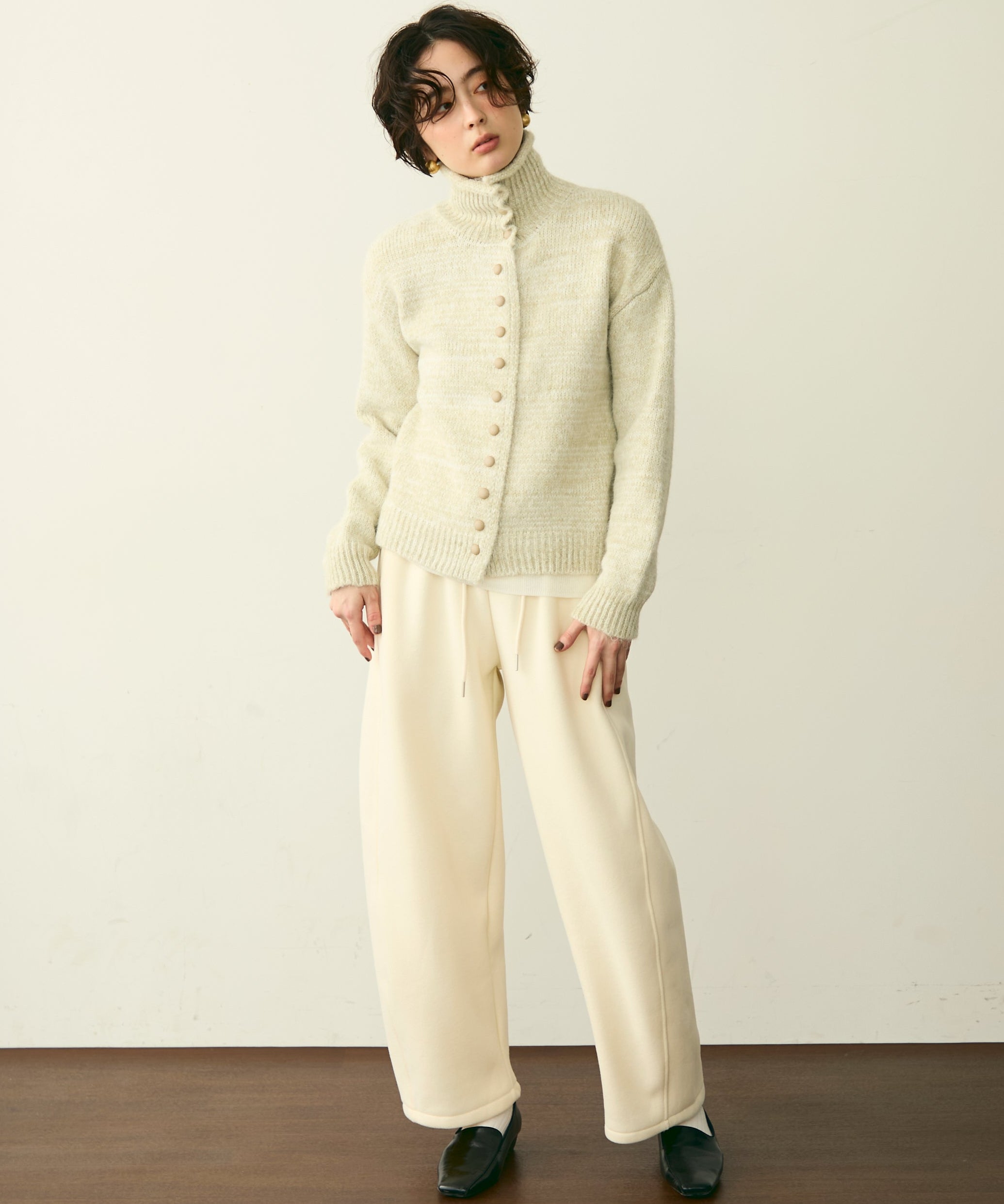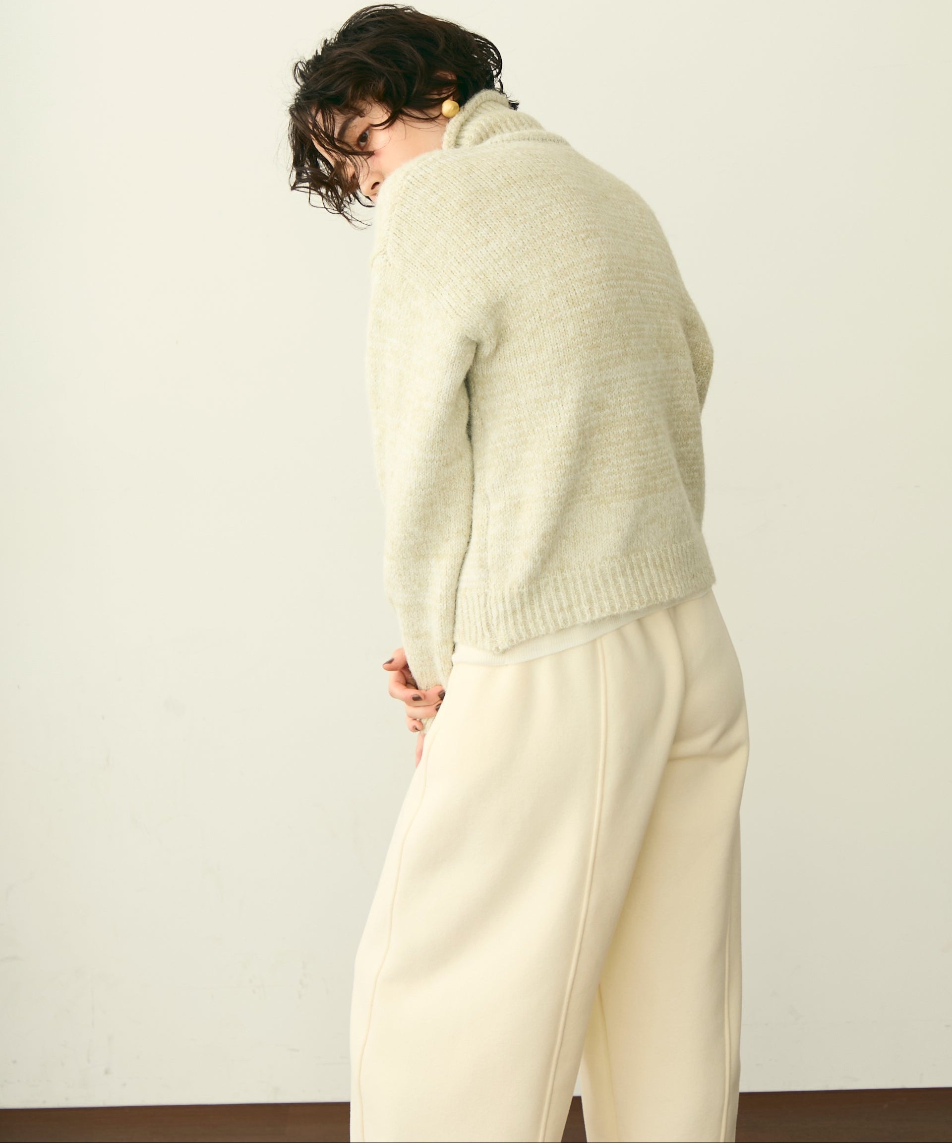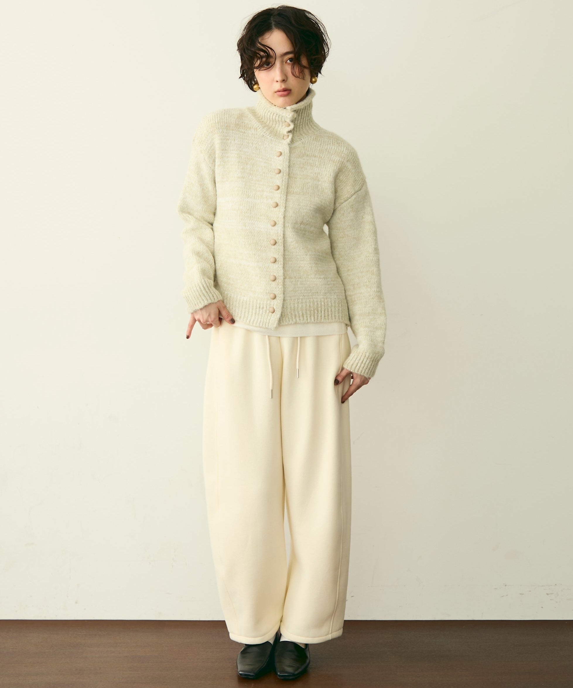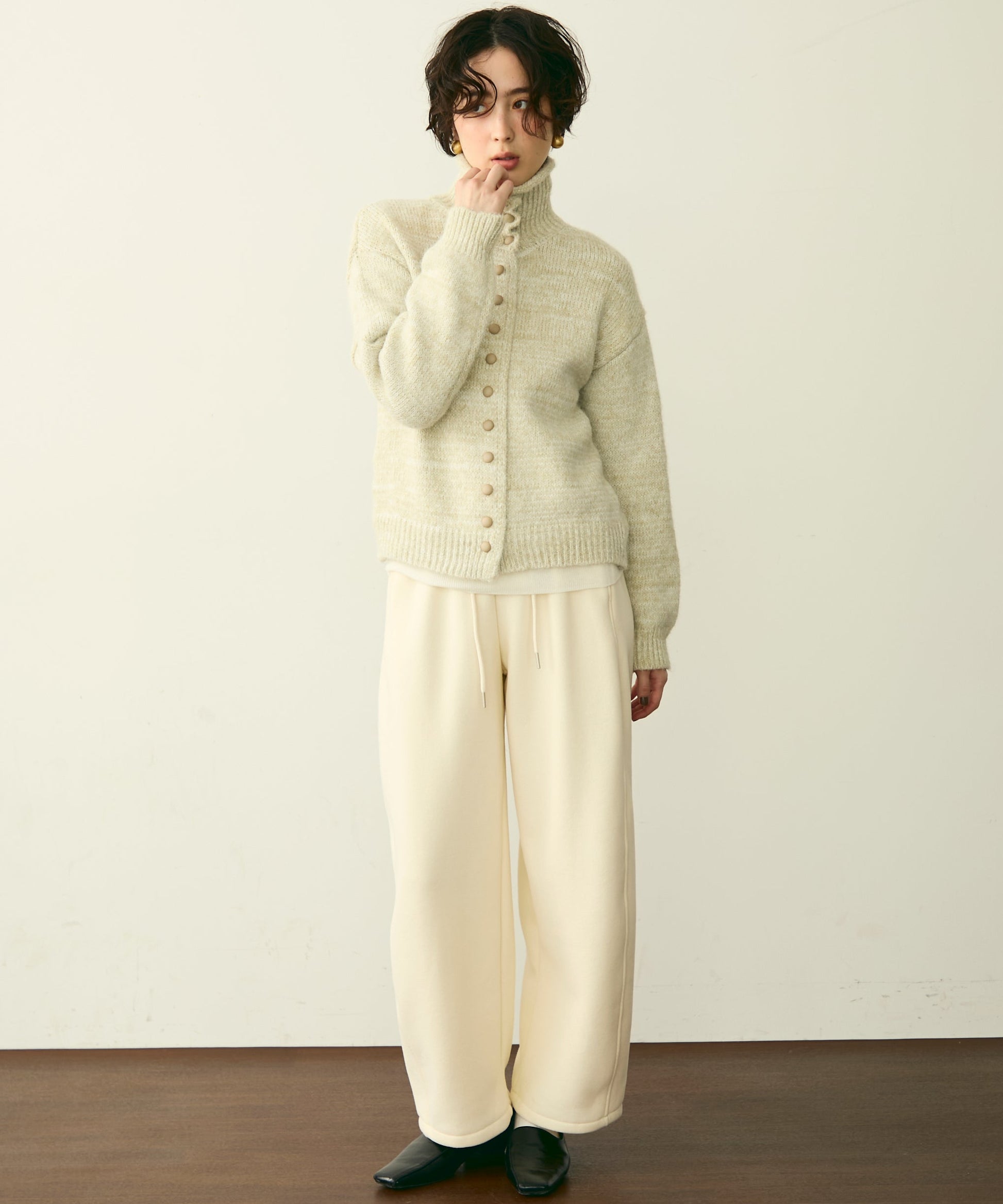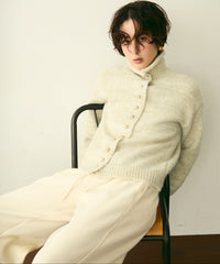 上品なメランジ素材を使用した、存在感のある多釦デザインニット。