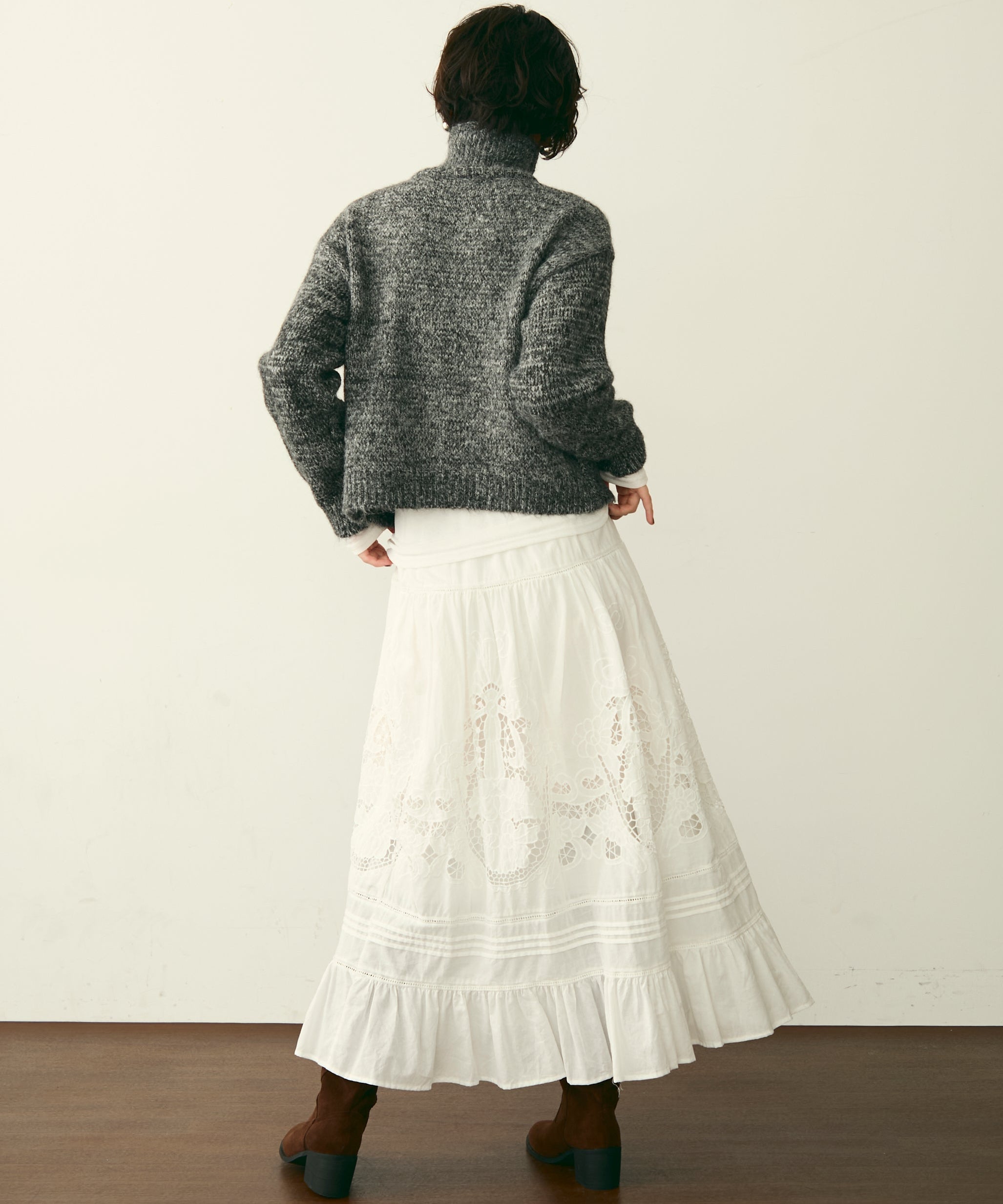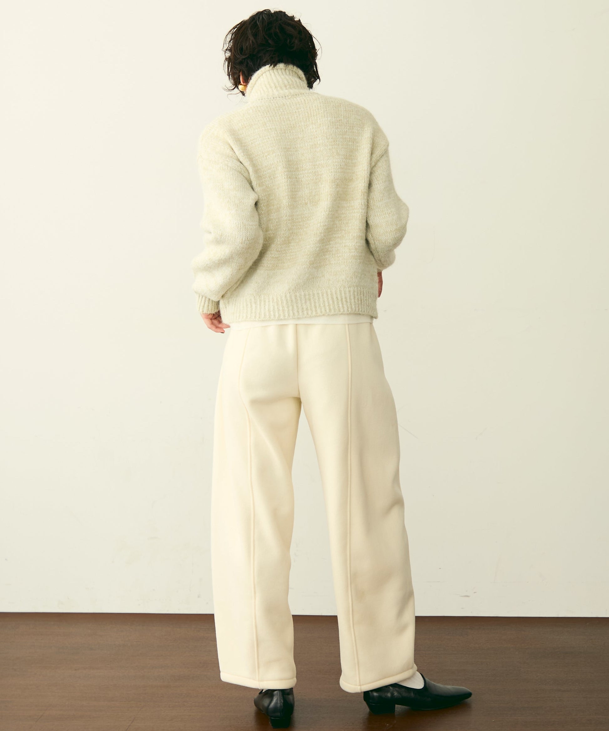 ハイネック仕様で首元まで暖かく、冬のスタイリングにぴったり。
