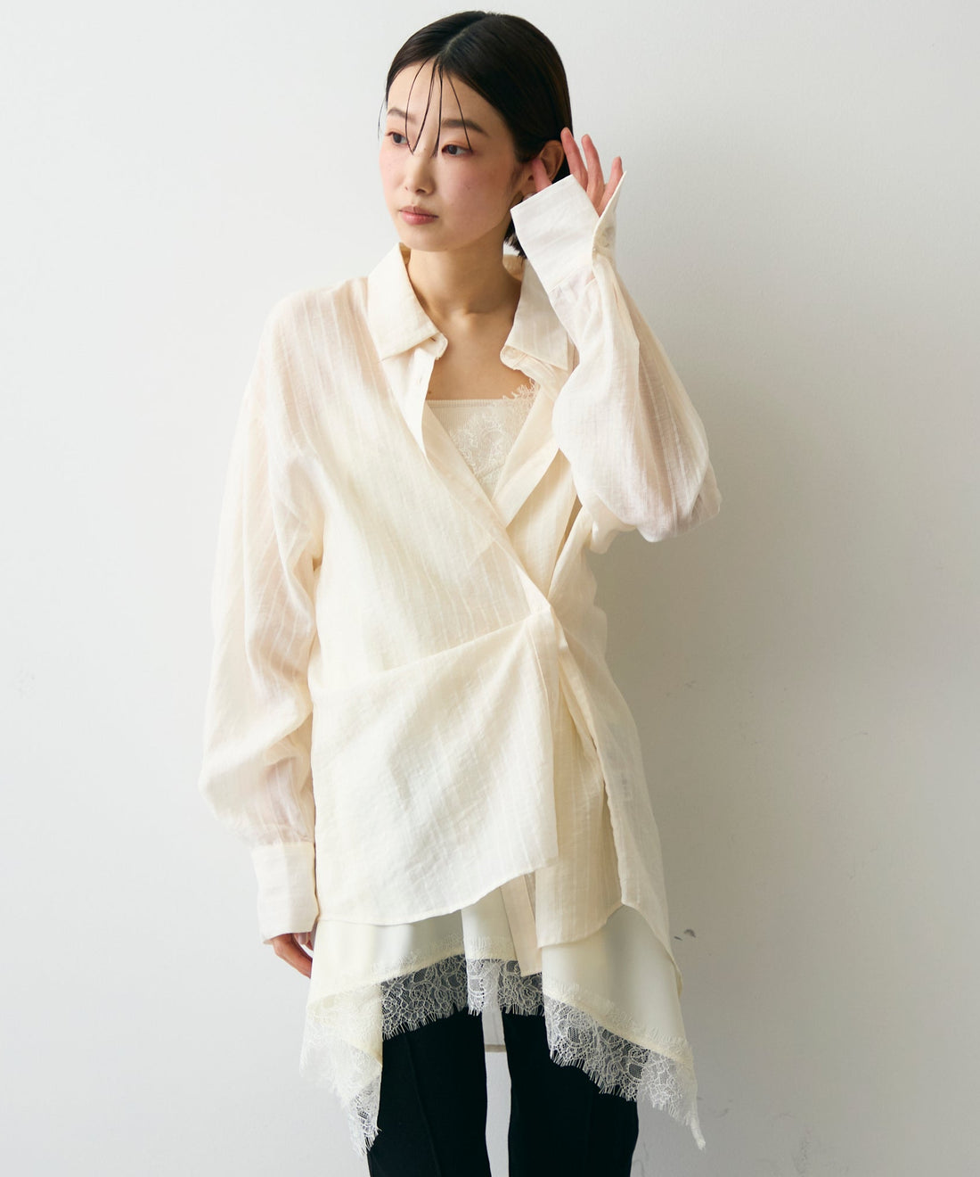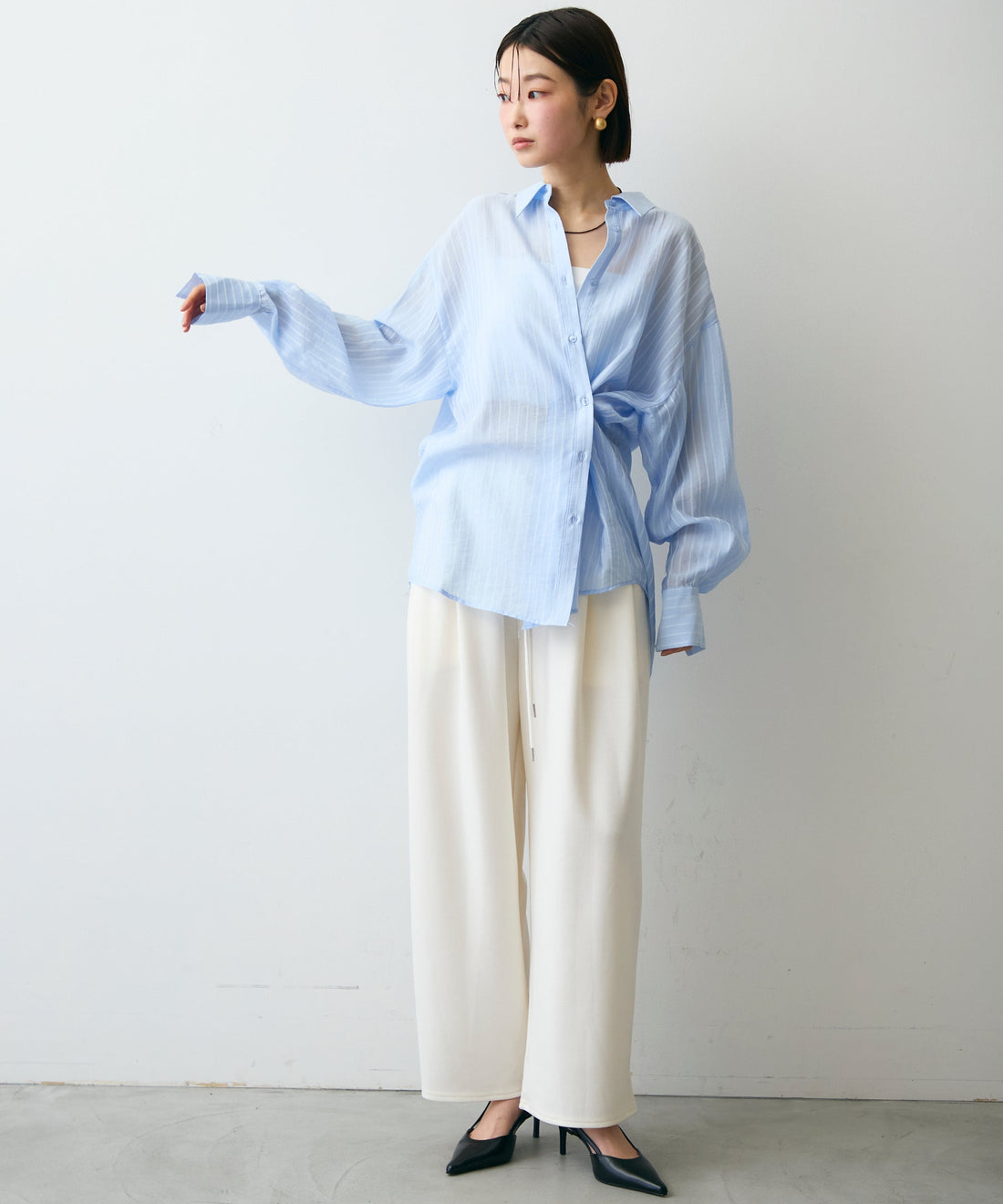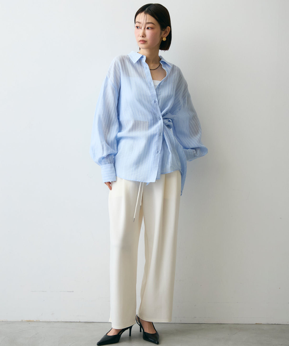 シアーストライプねじれブラウス