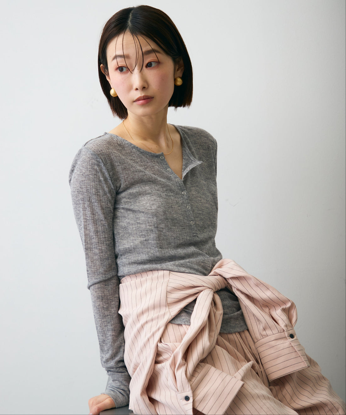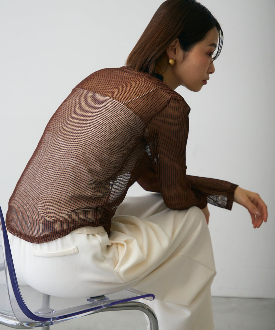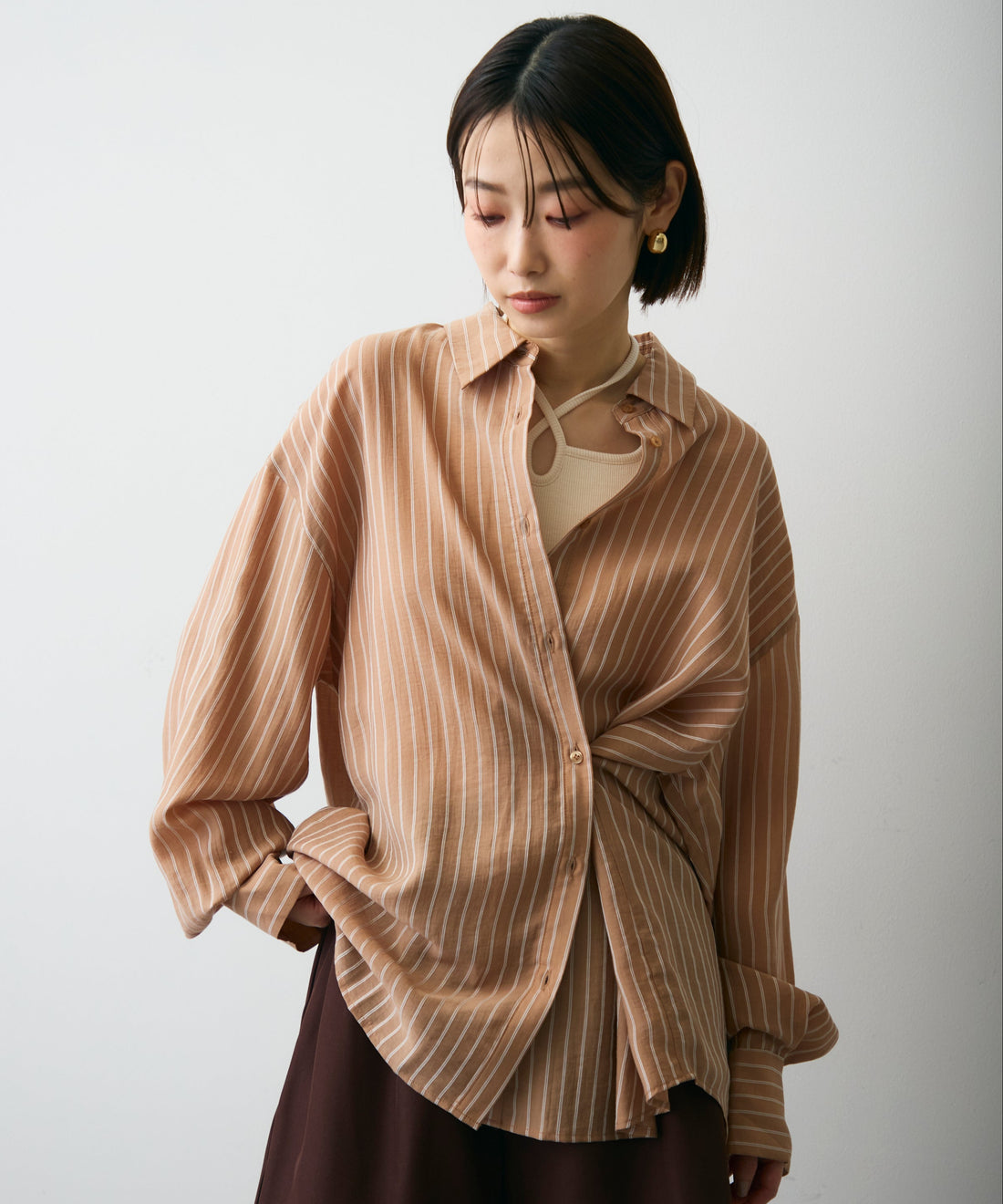 シアーストライプねじれブラウス