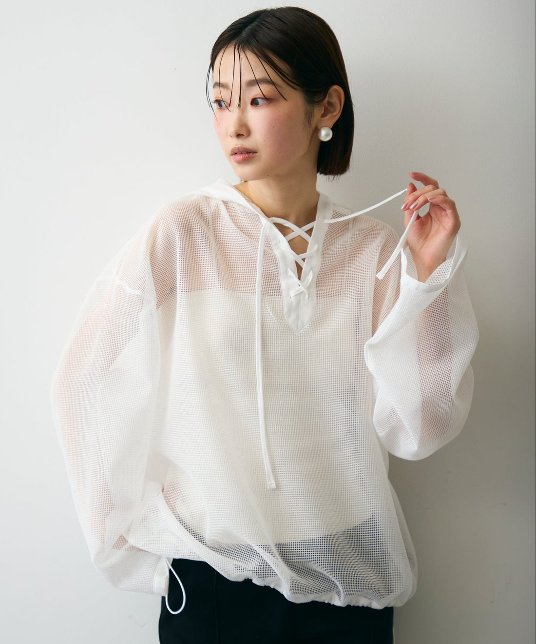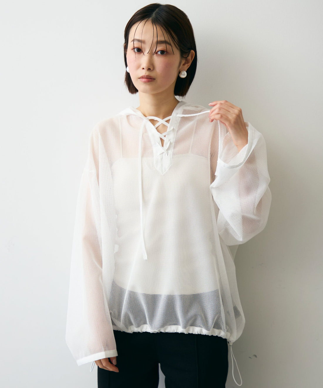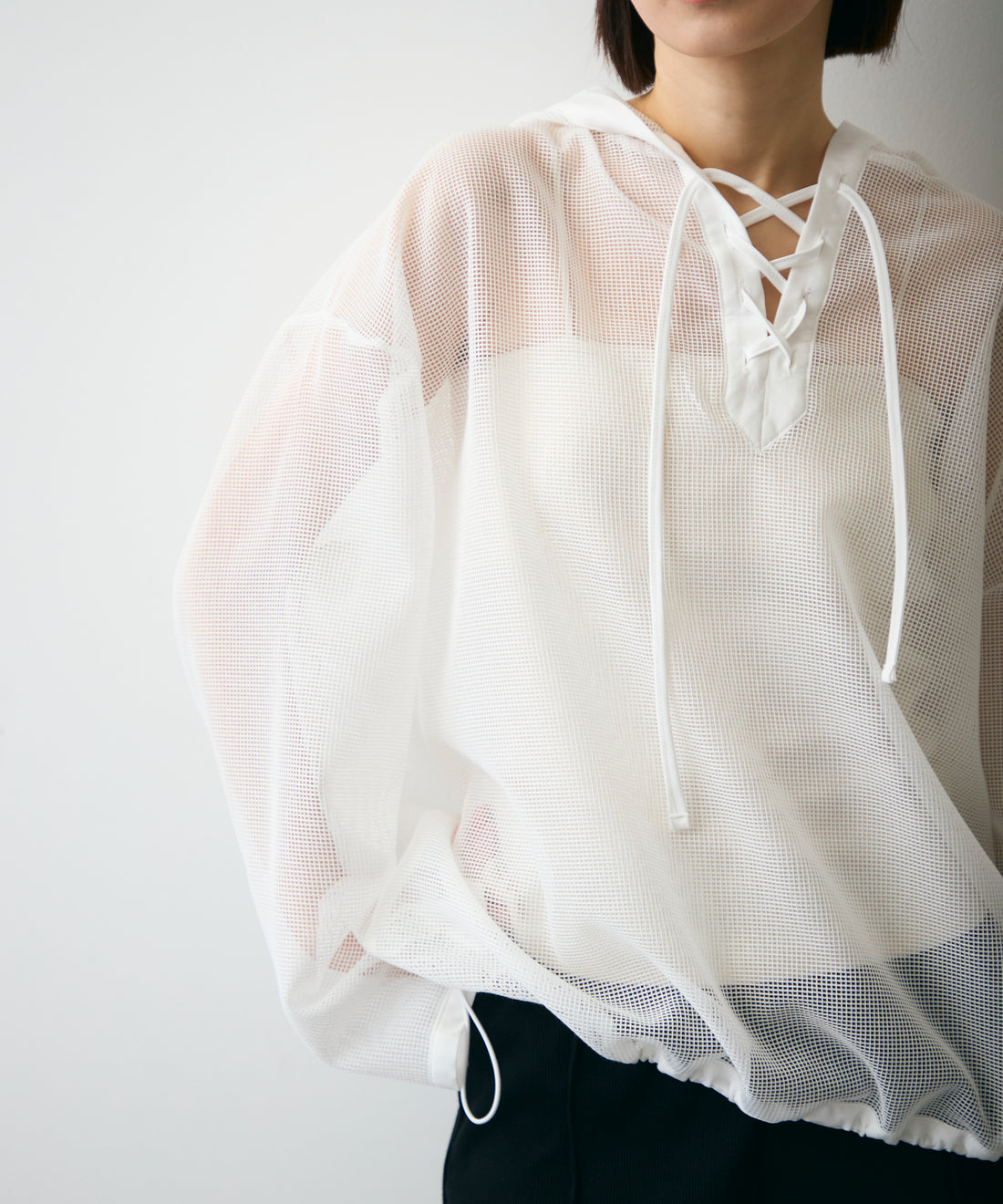 メッシュカットソーフーディープルオーバー