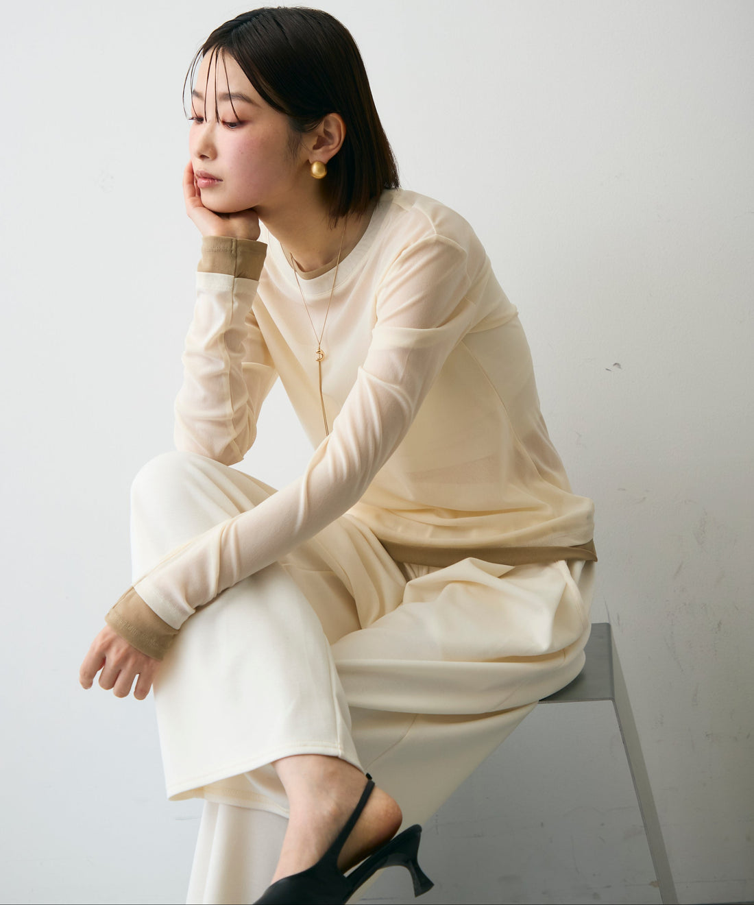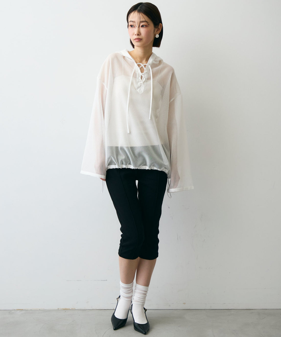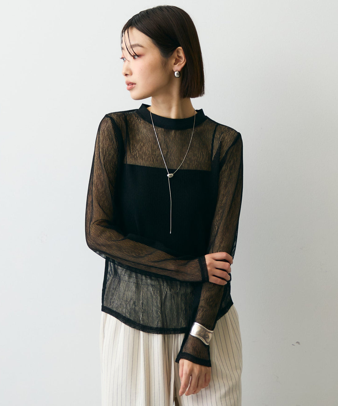 メッシュカットソーフーディープルオーバー