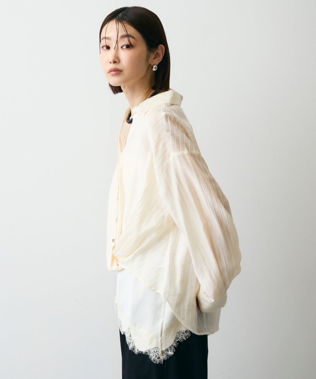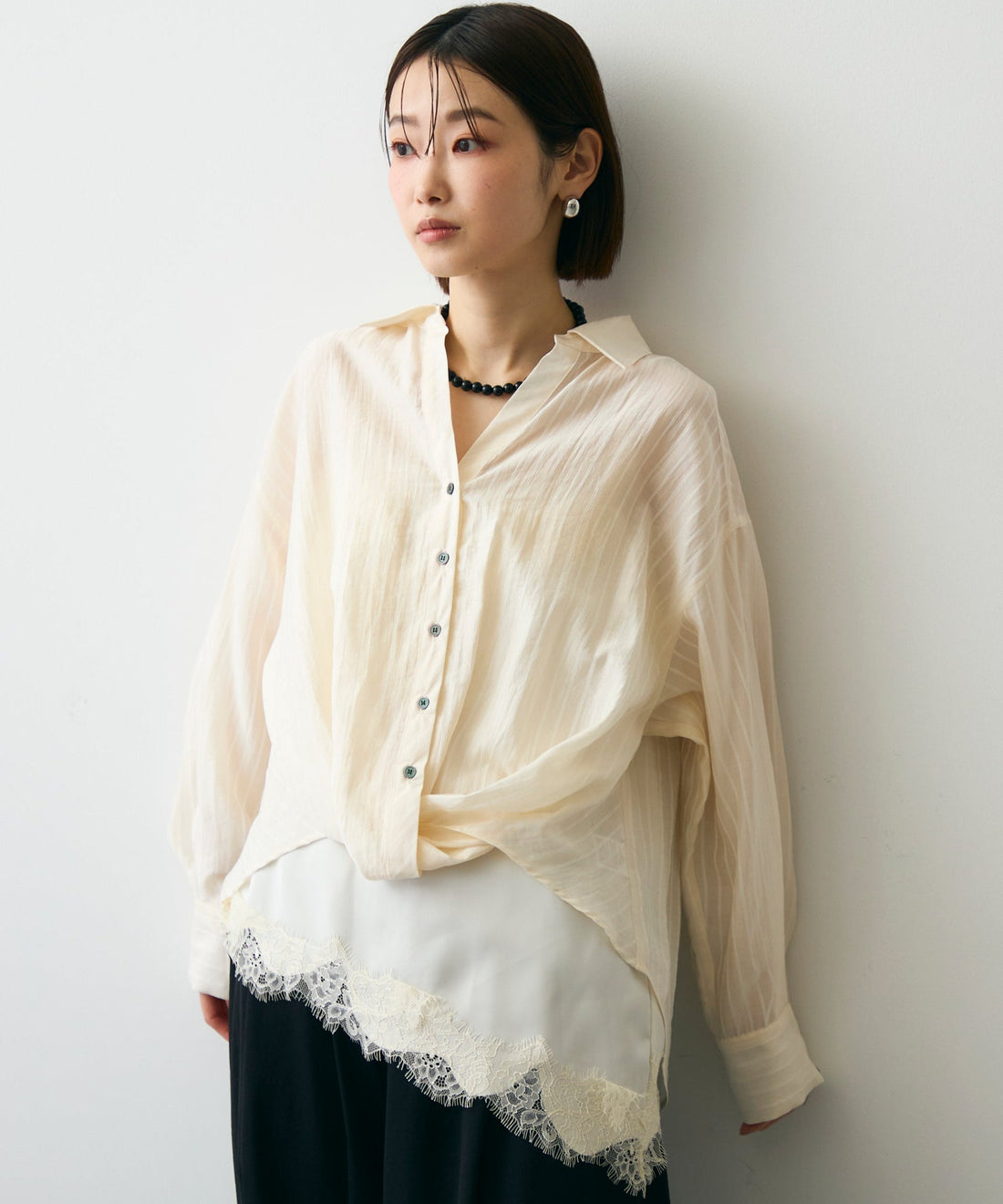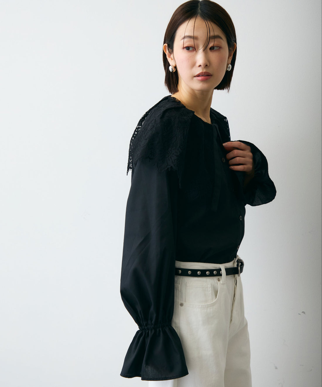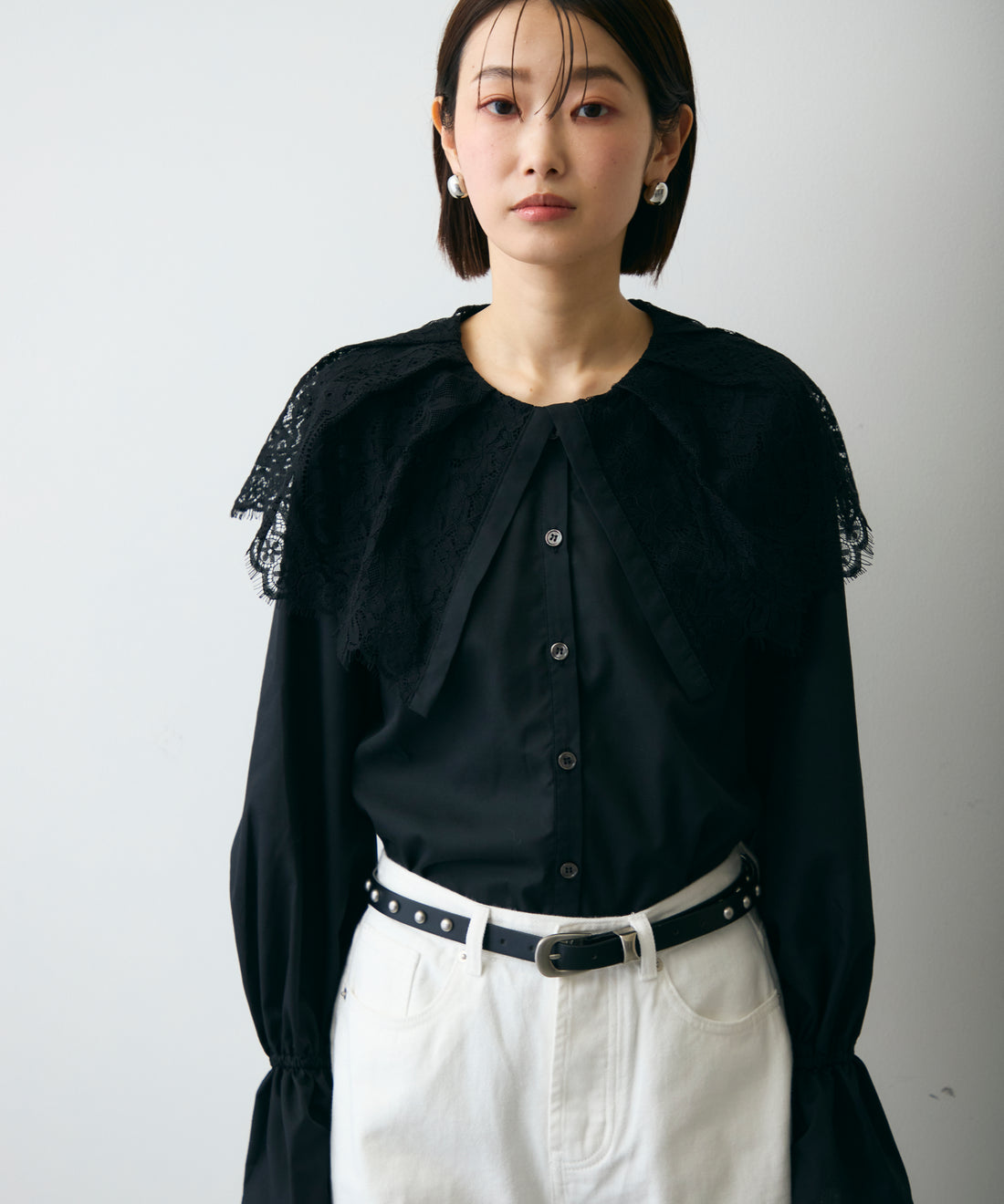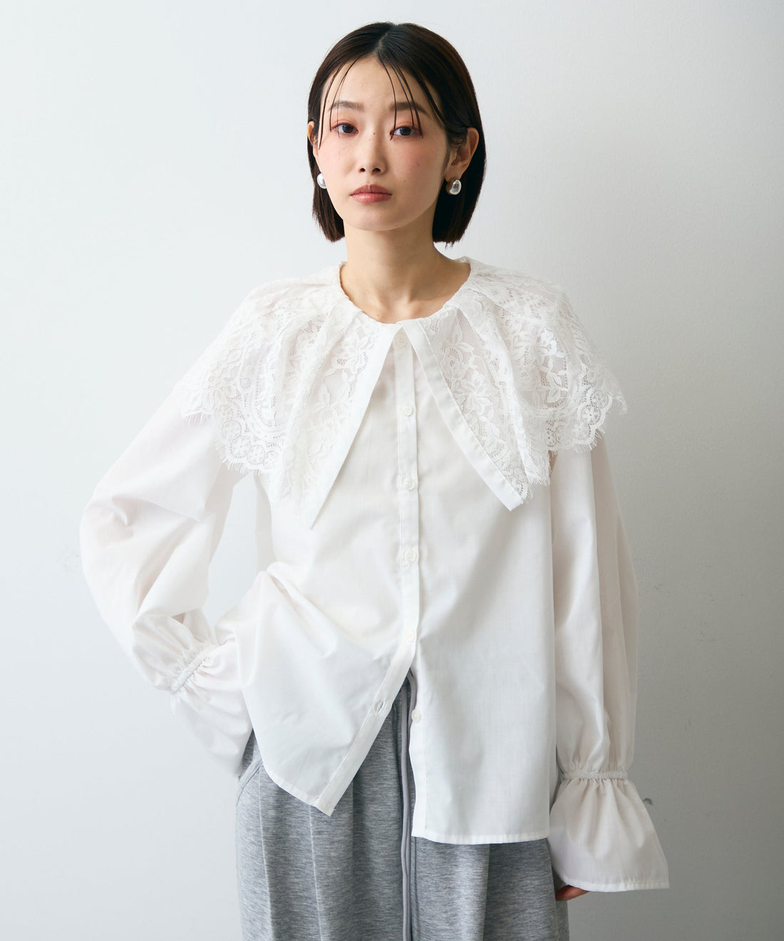 レースビッグカラーブラウス
