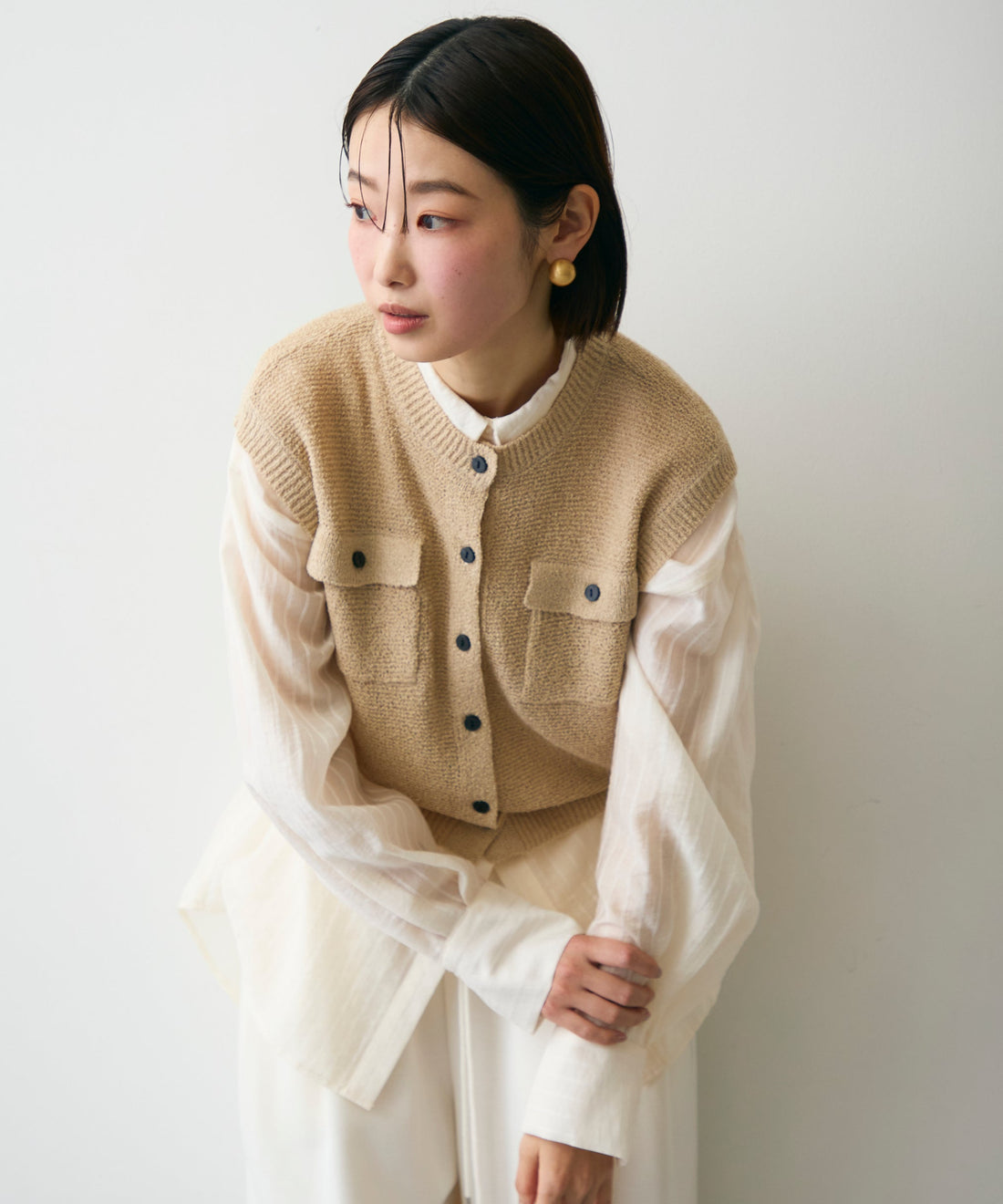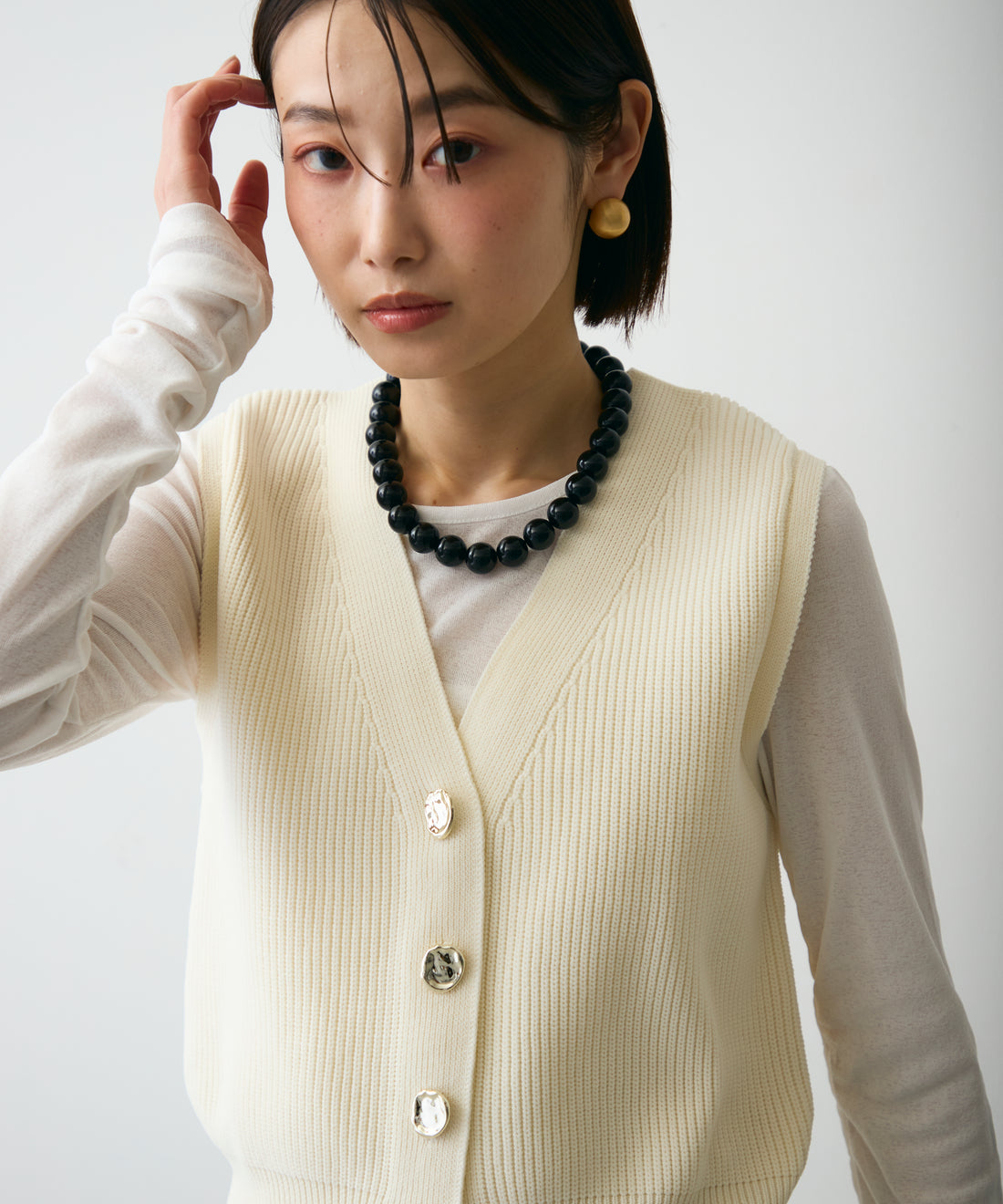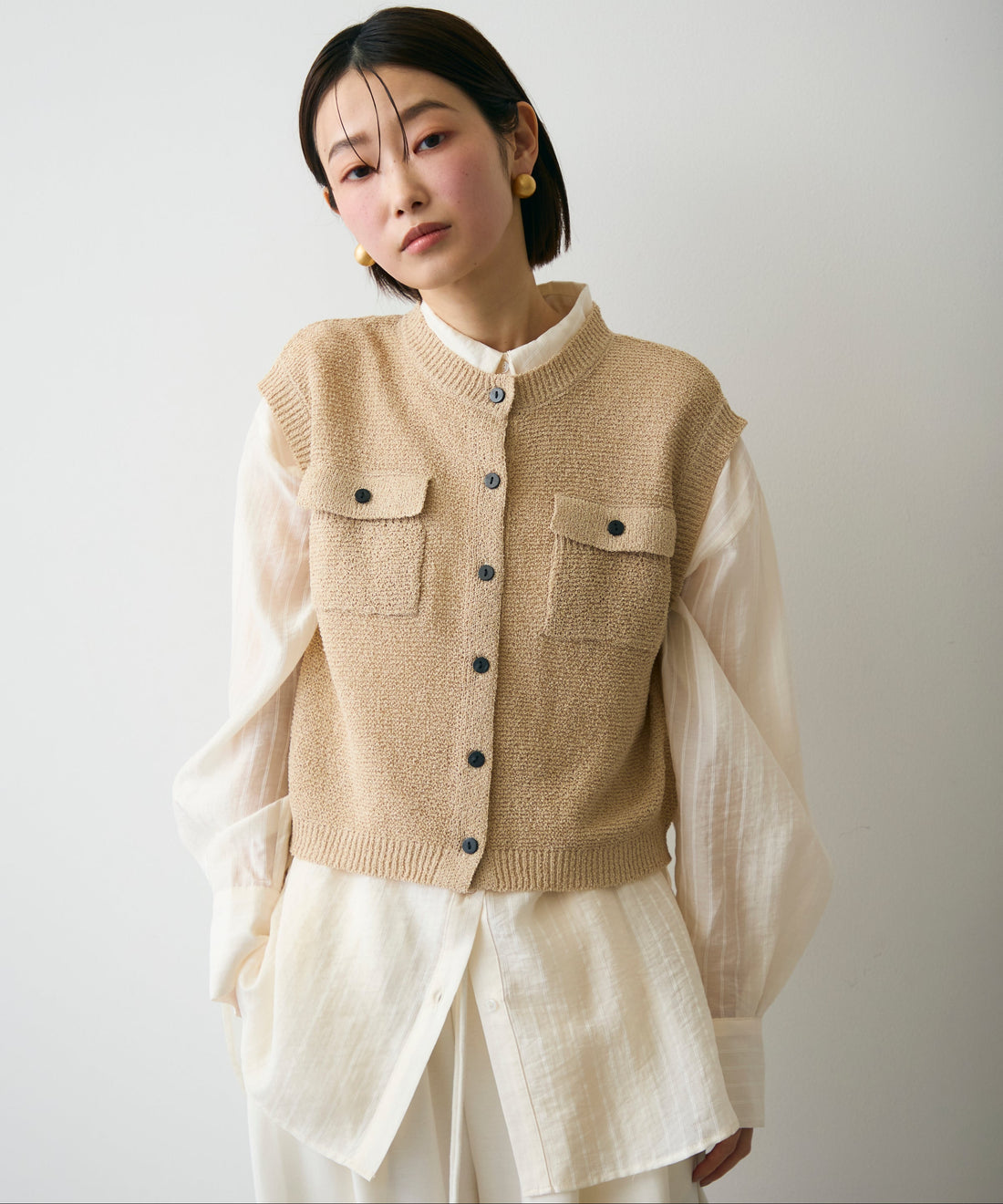 メタル釦コンパクトベスト