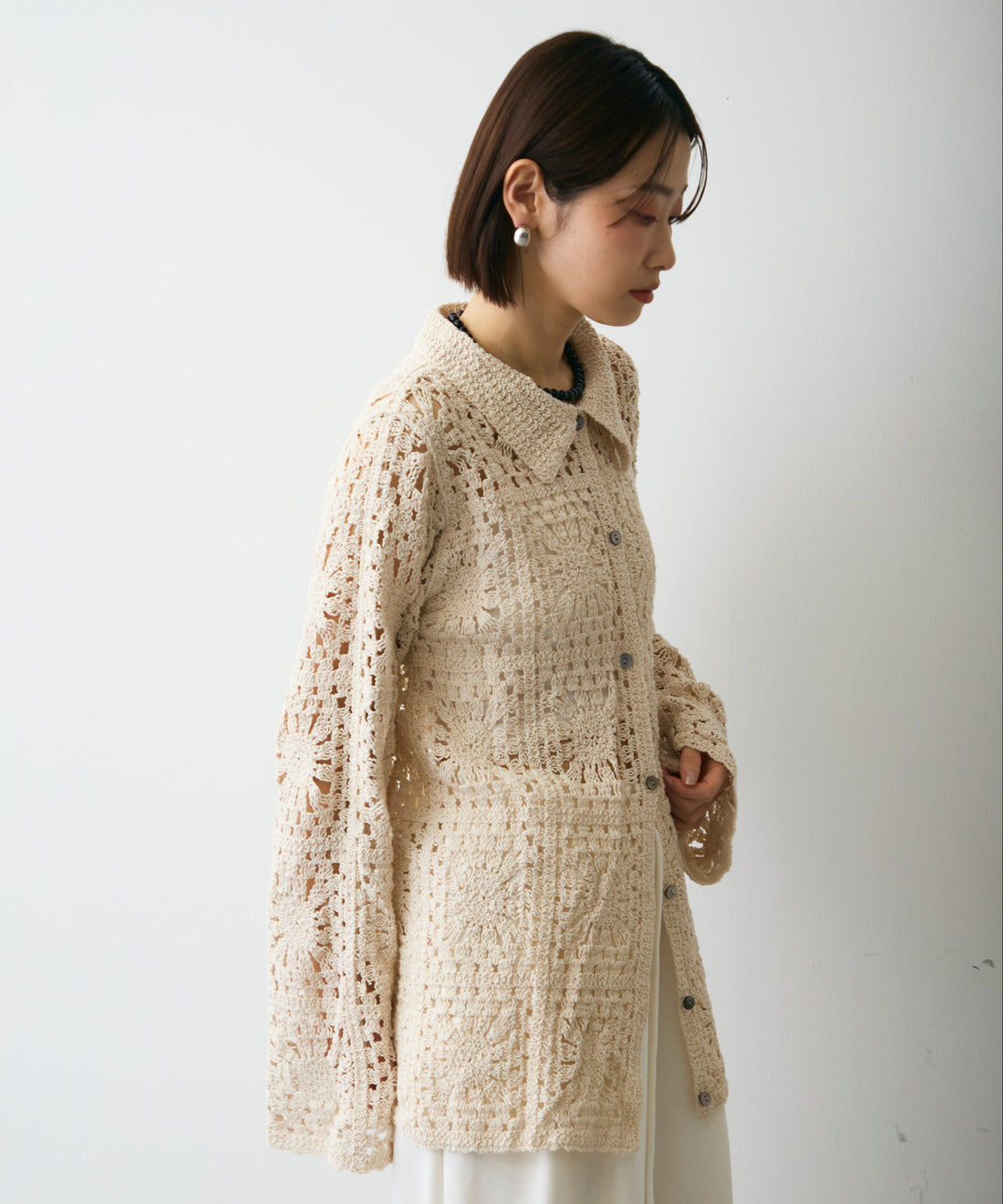 かぎ針ポロ衿ロングカーデ