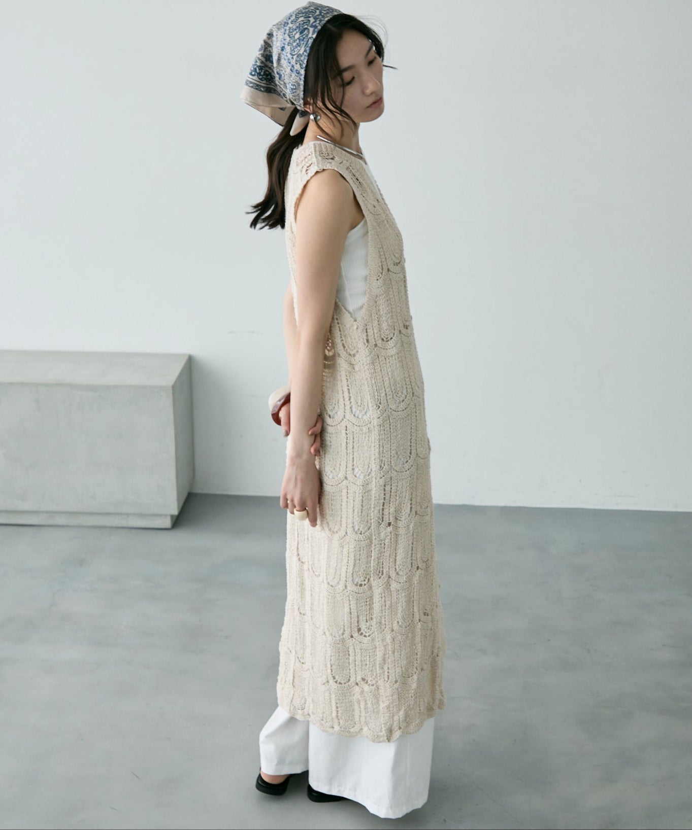 トレンドの透かし編みのシーズンムード高まるロングジレが登場♪