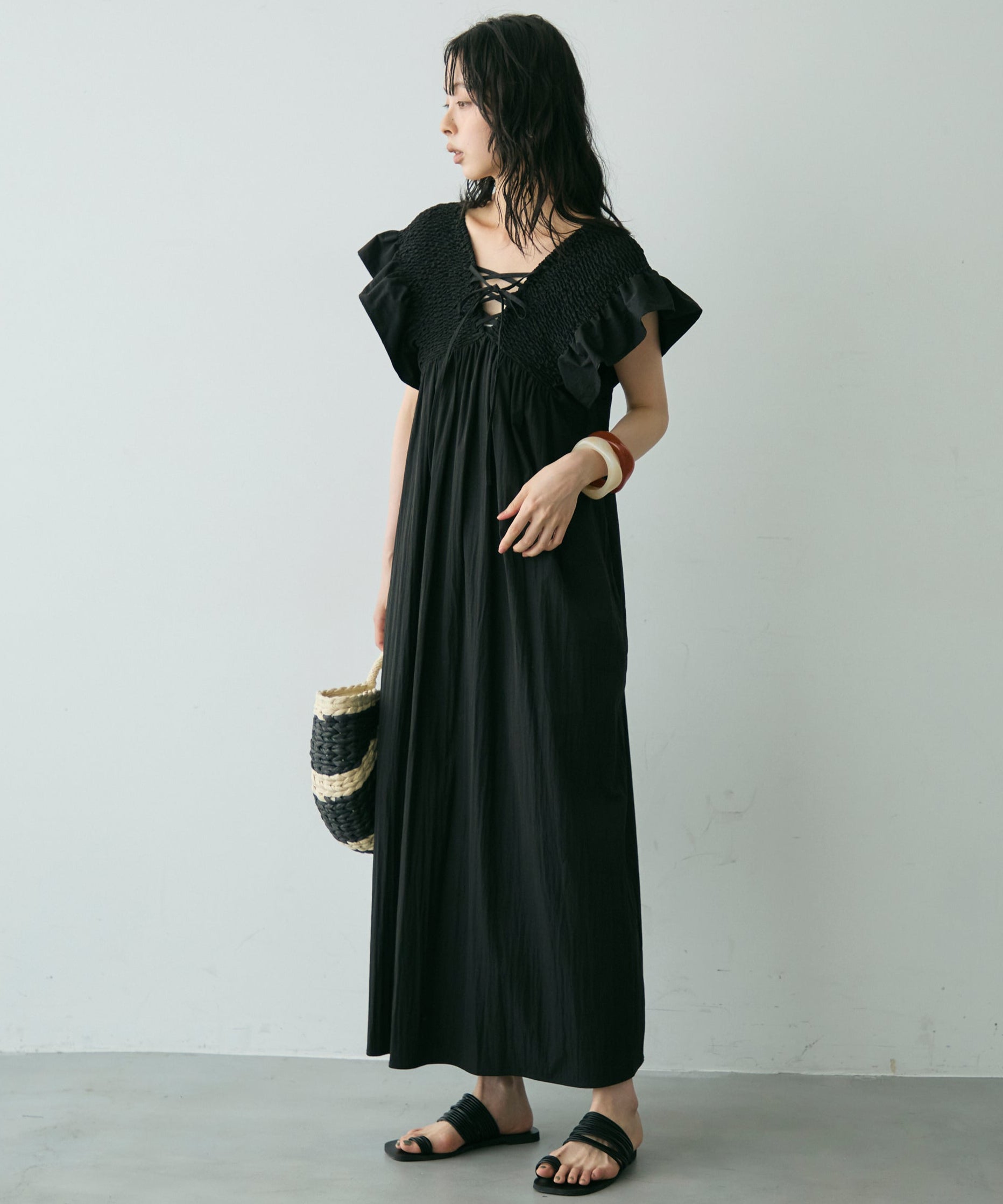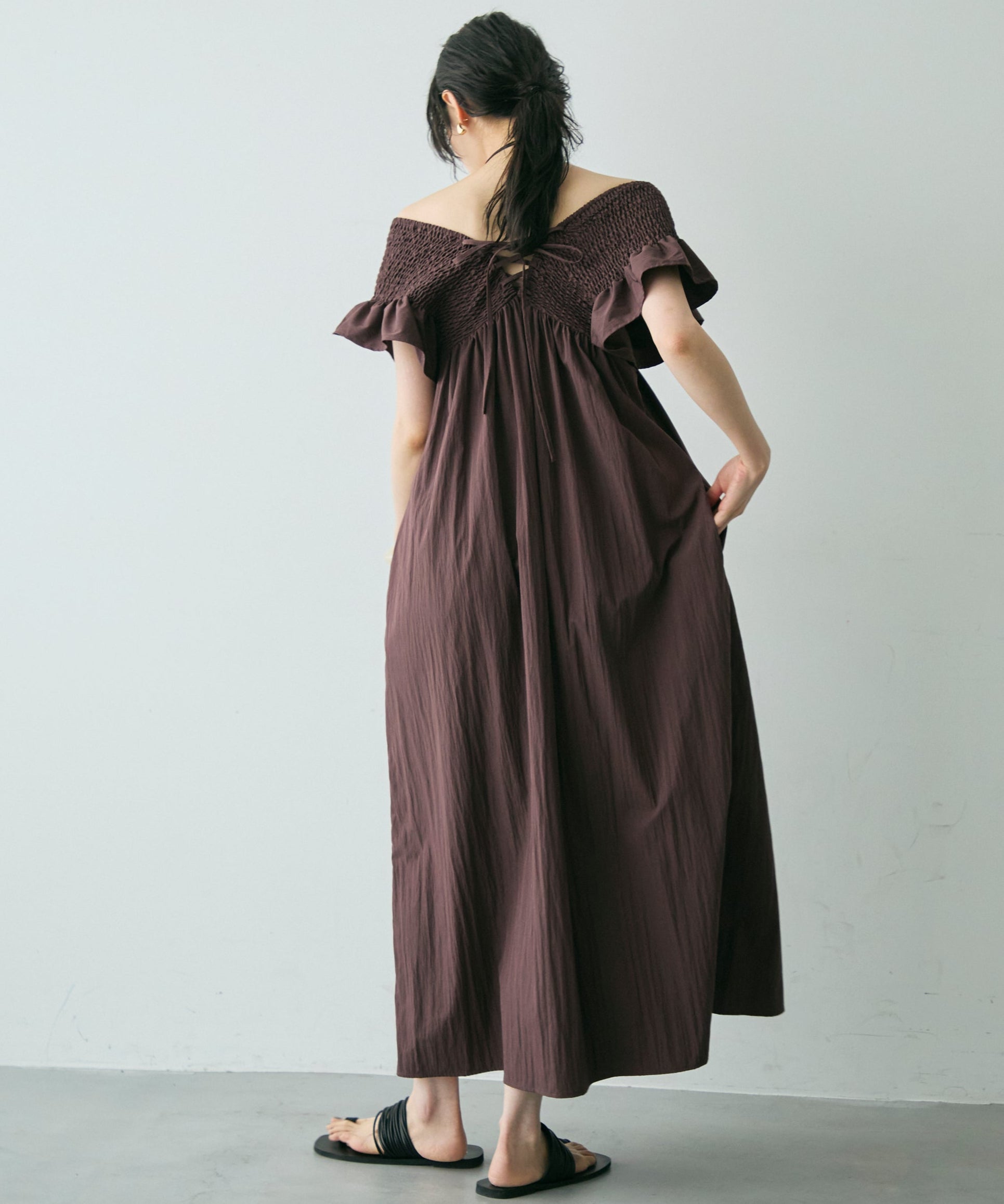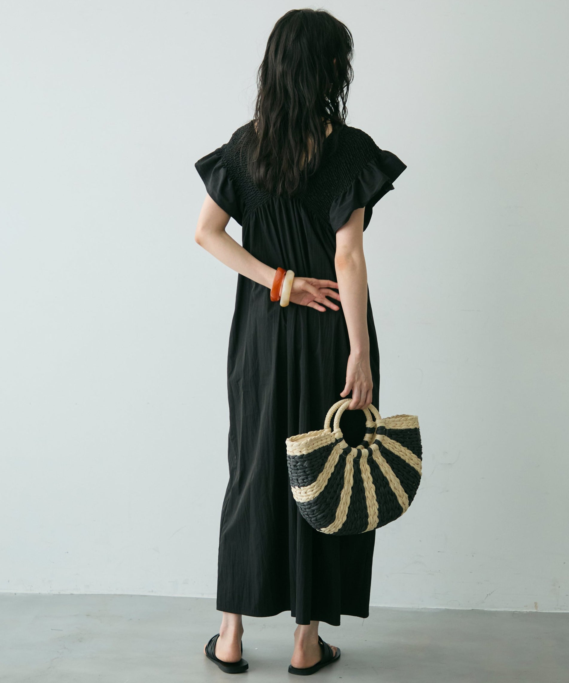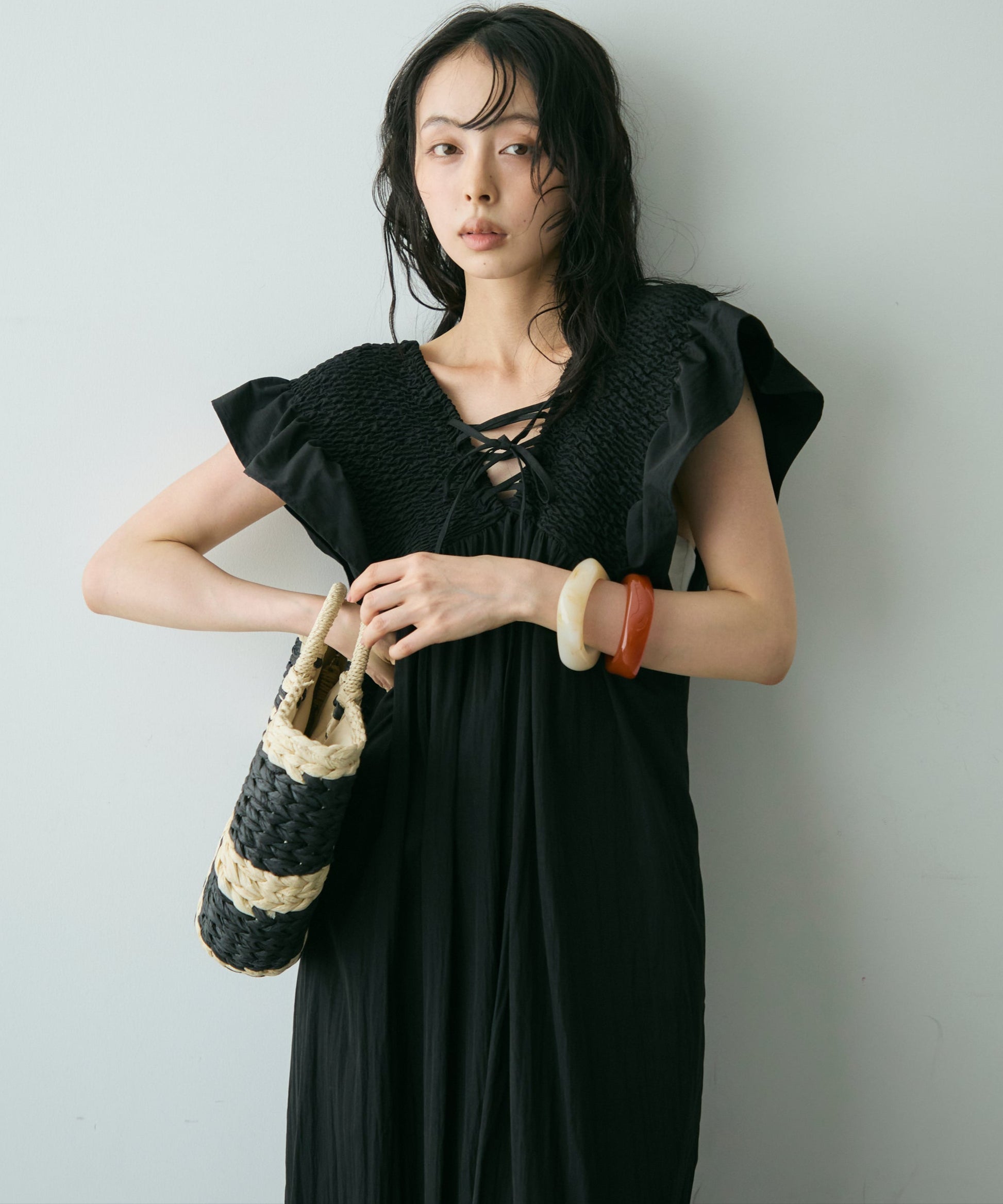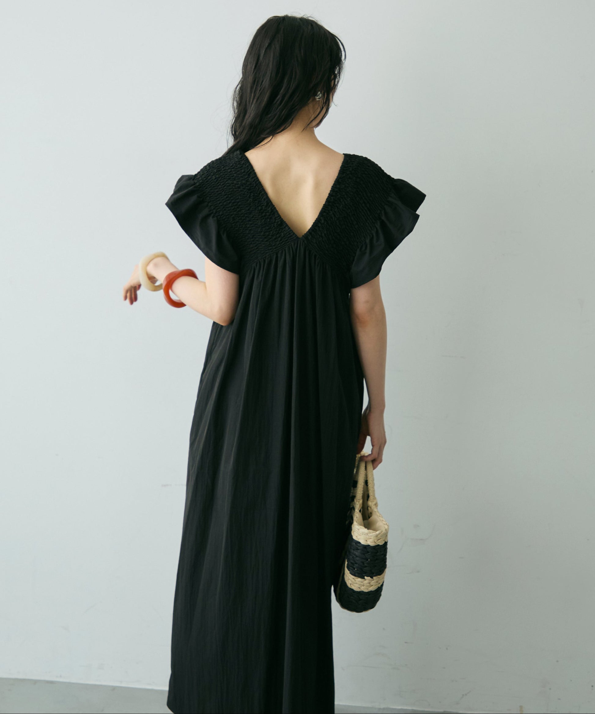 上身ごろにふんだんにシャーリングをあしらった2WAYのワンピース。