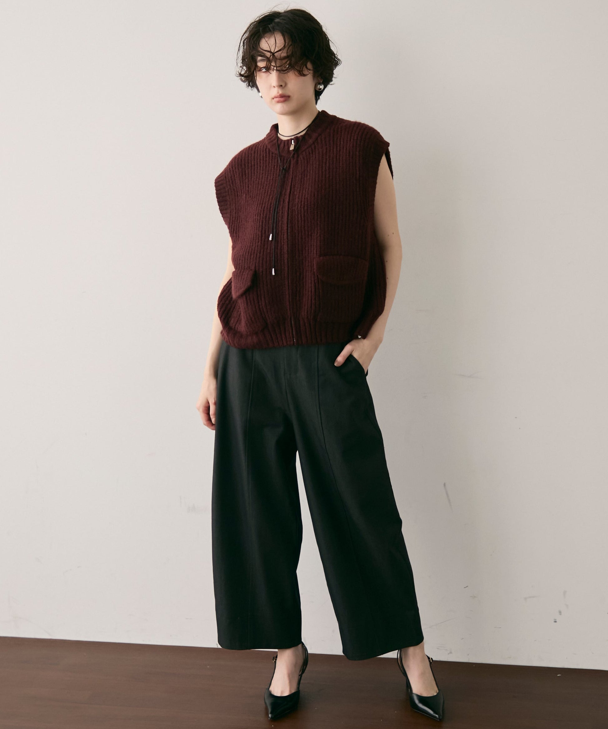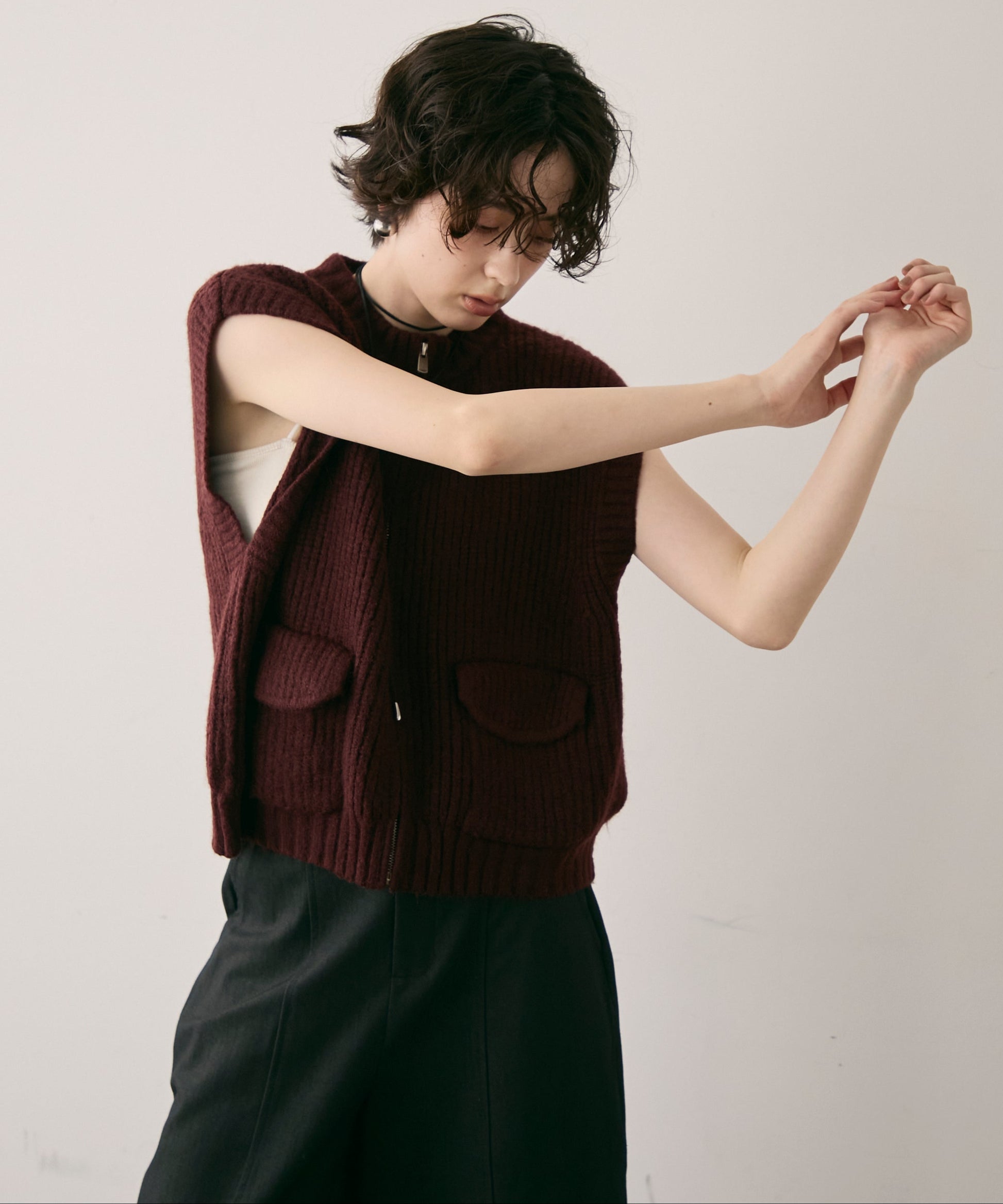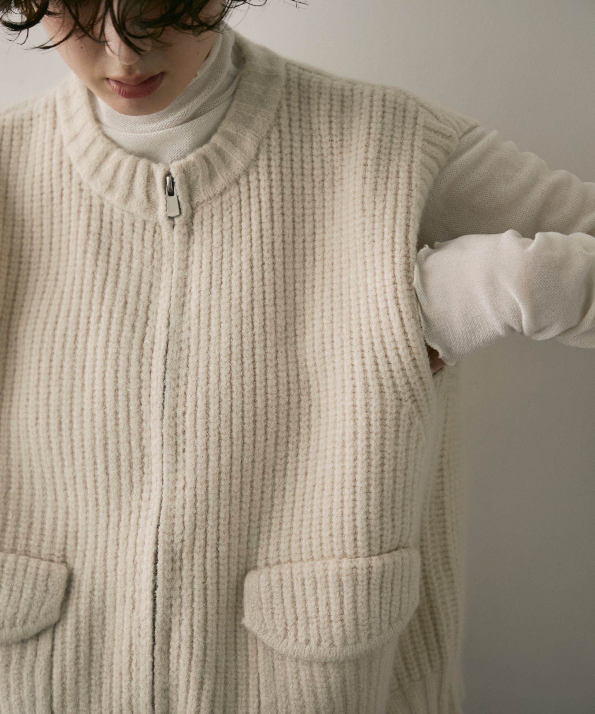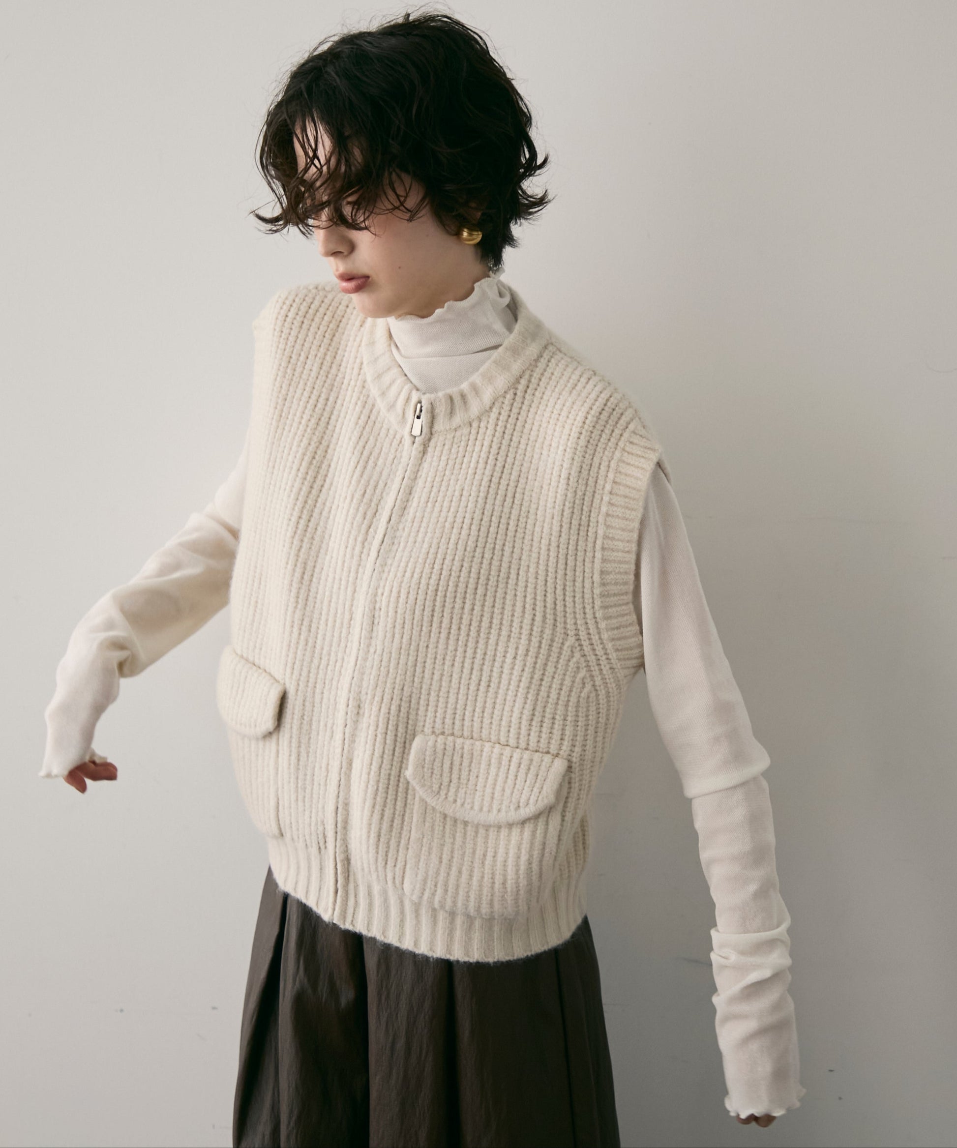 実用性とデザイン性を兼ね備えたポケット付きZIPベスト。軽やかな着心地でレイヤードスタイルにぴったりな一枚です。程よくゆとりのあるシルエットで動きやすく、Tシャツやシャツの上に重ねるだけでこなれ感をプラス。