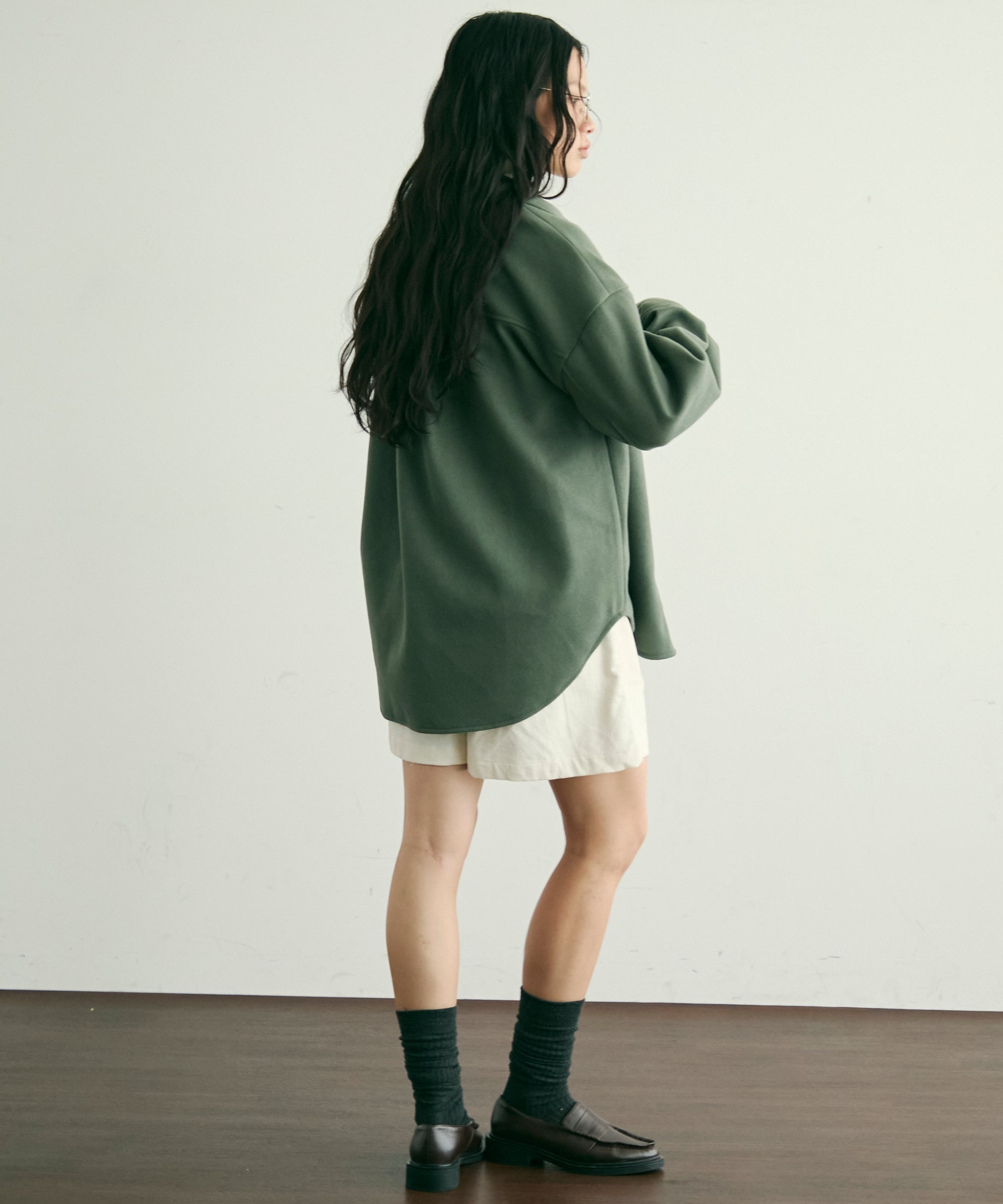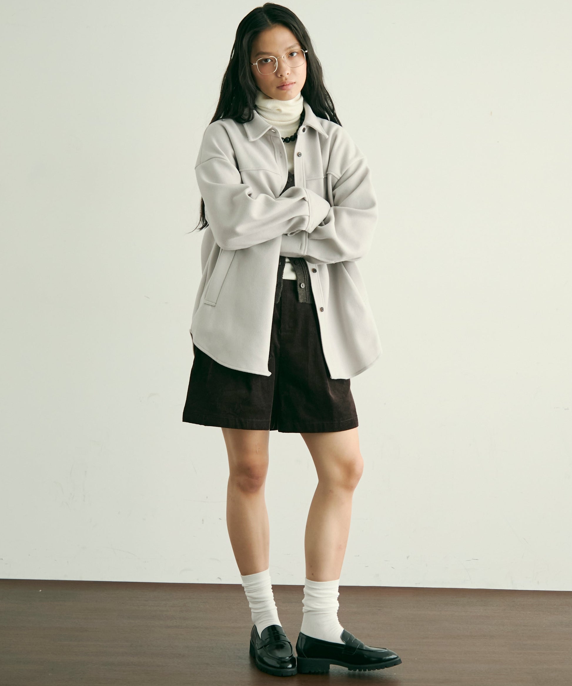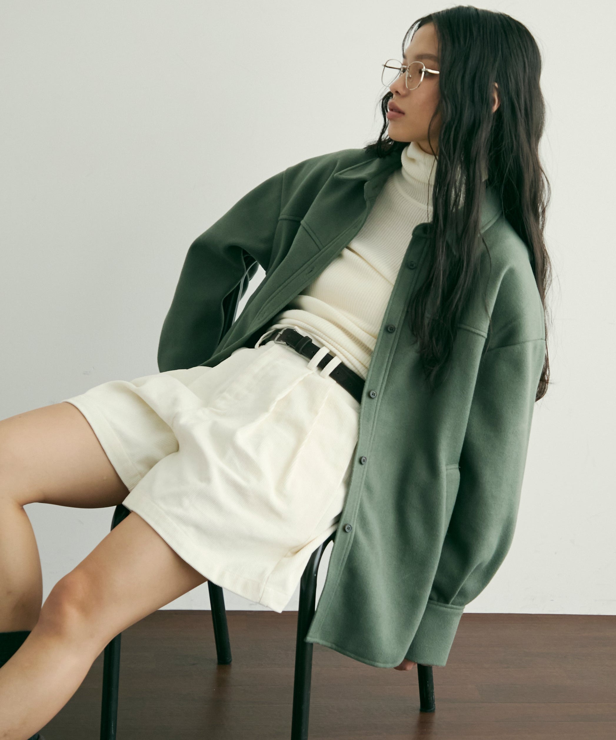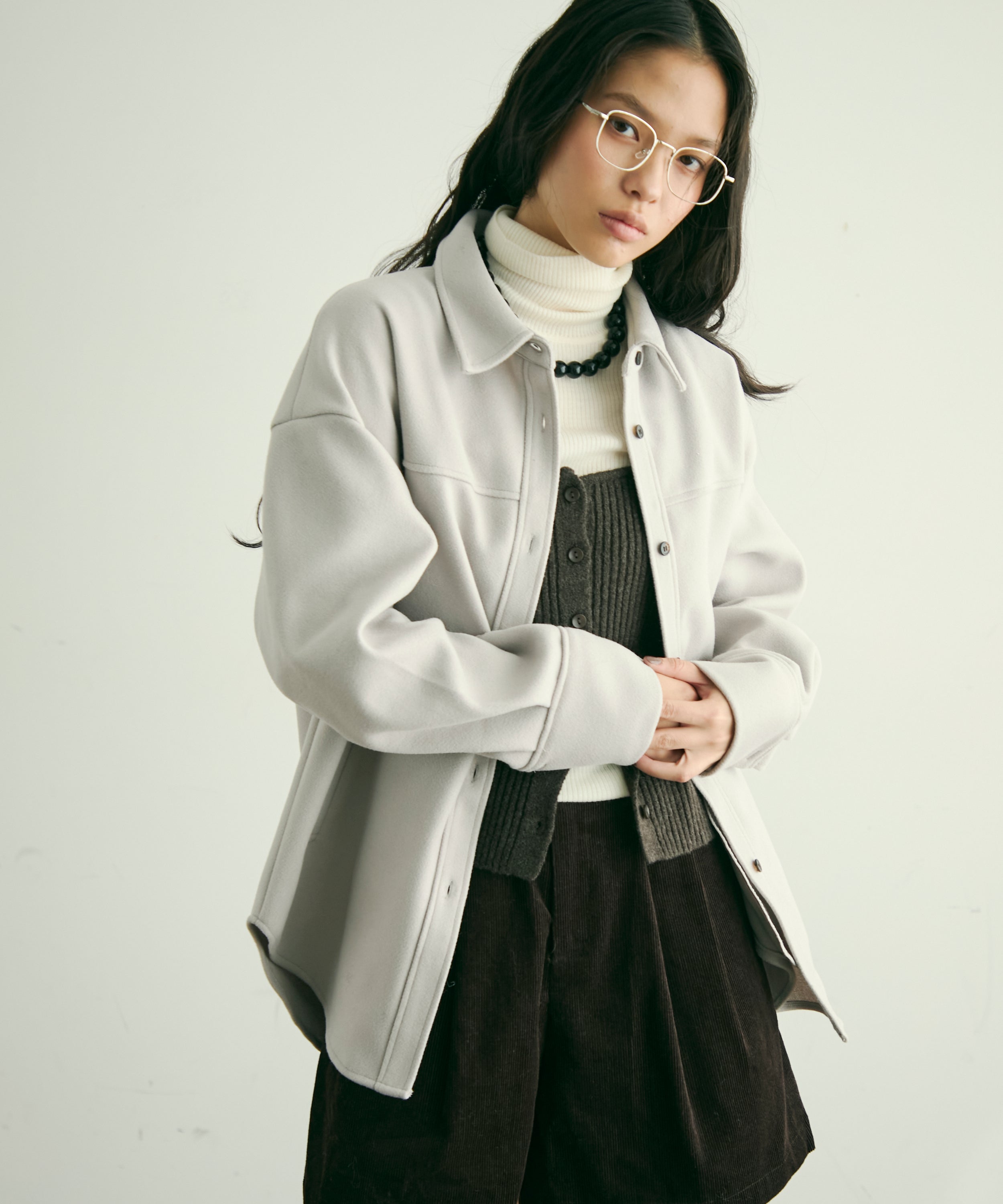 ゆったりシルエットで重ね着もしやすく、羽織るだけでこなれ感のあるスタイリングに。
