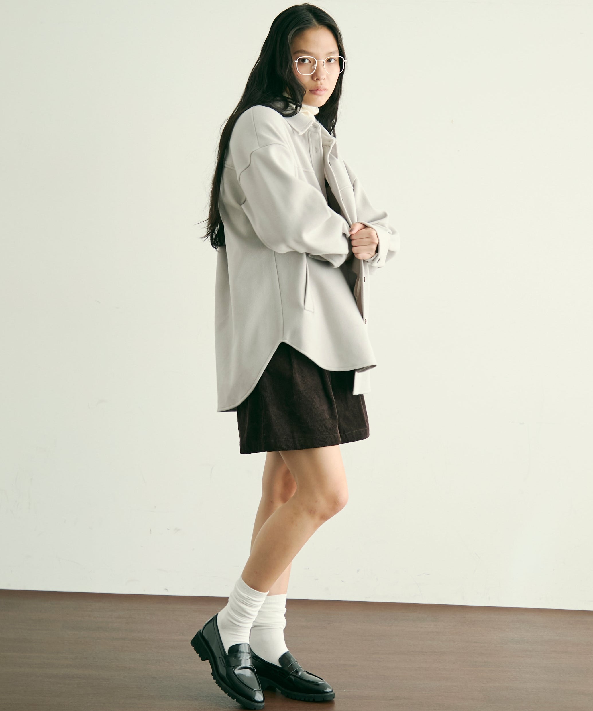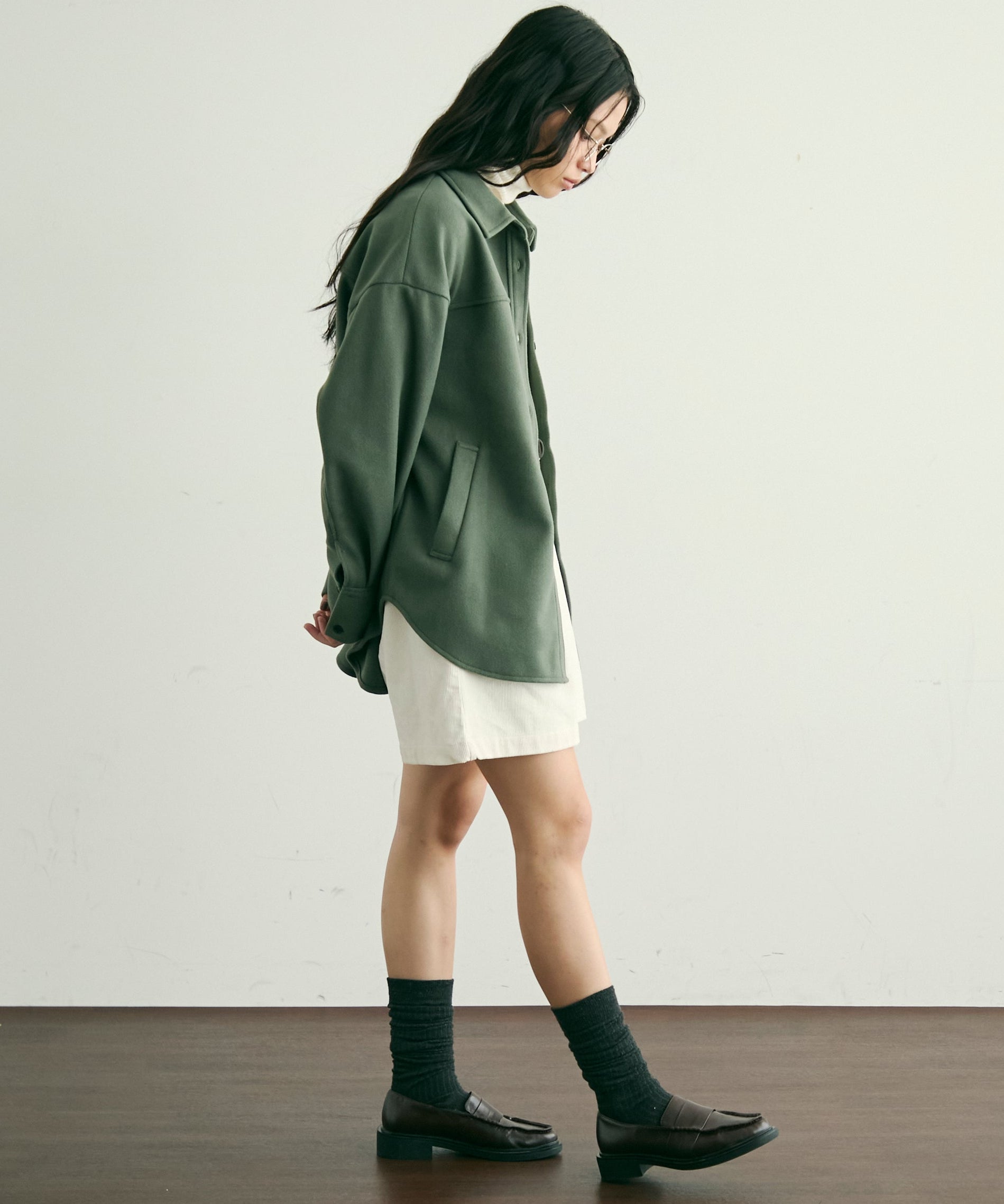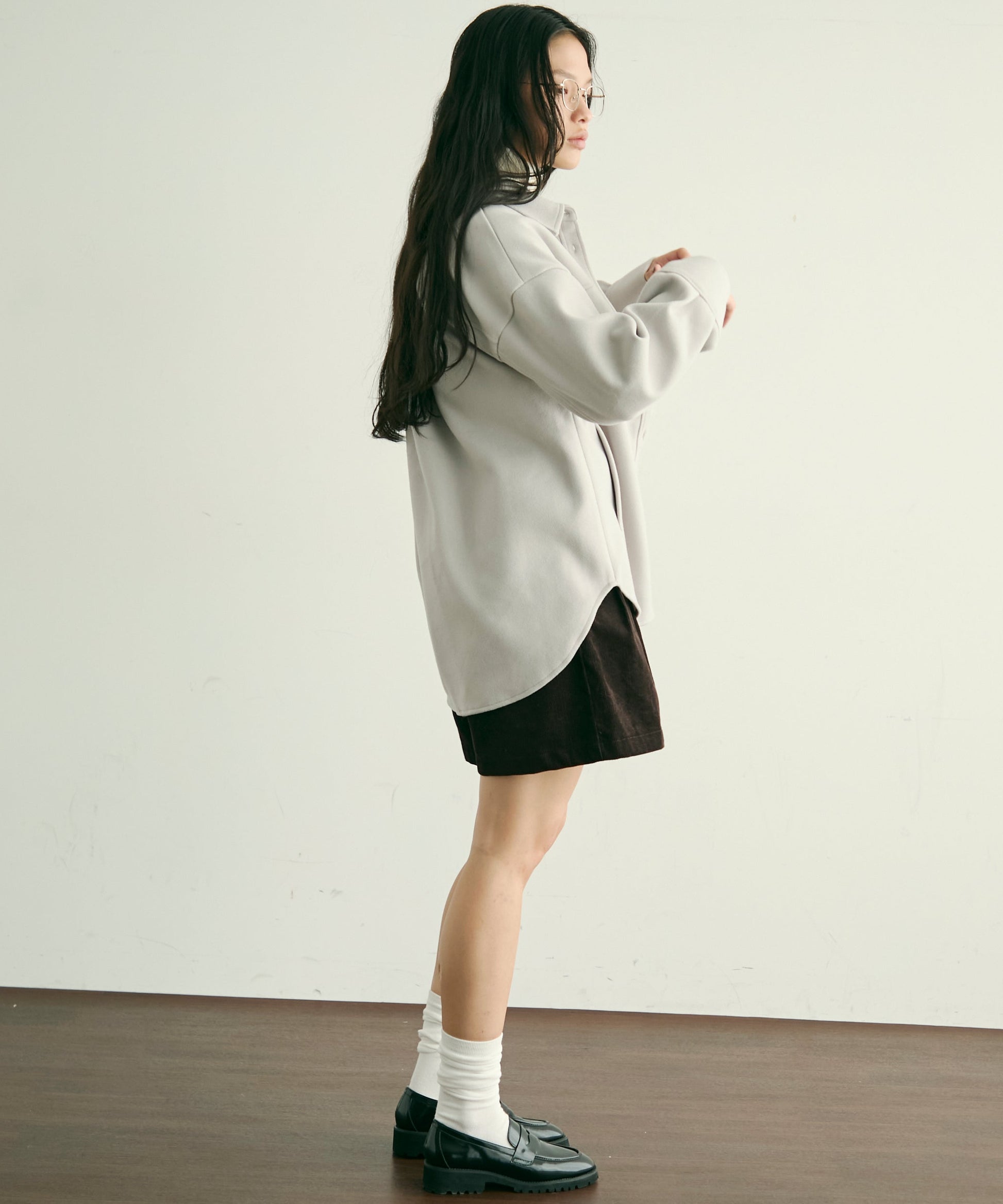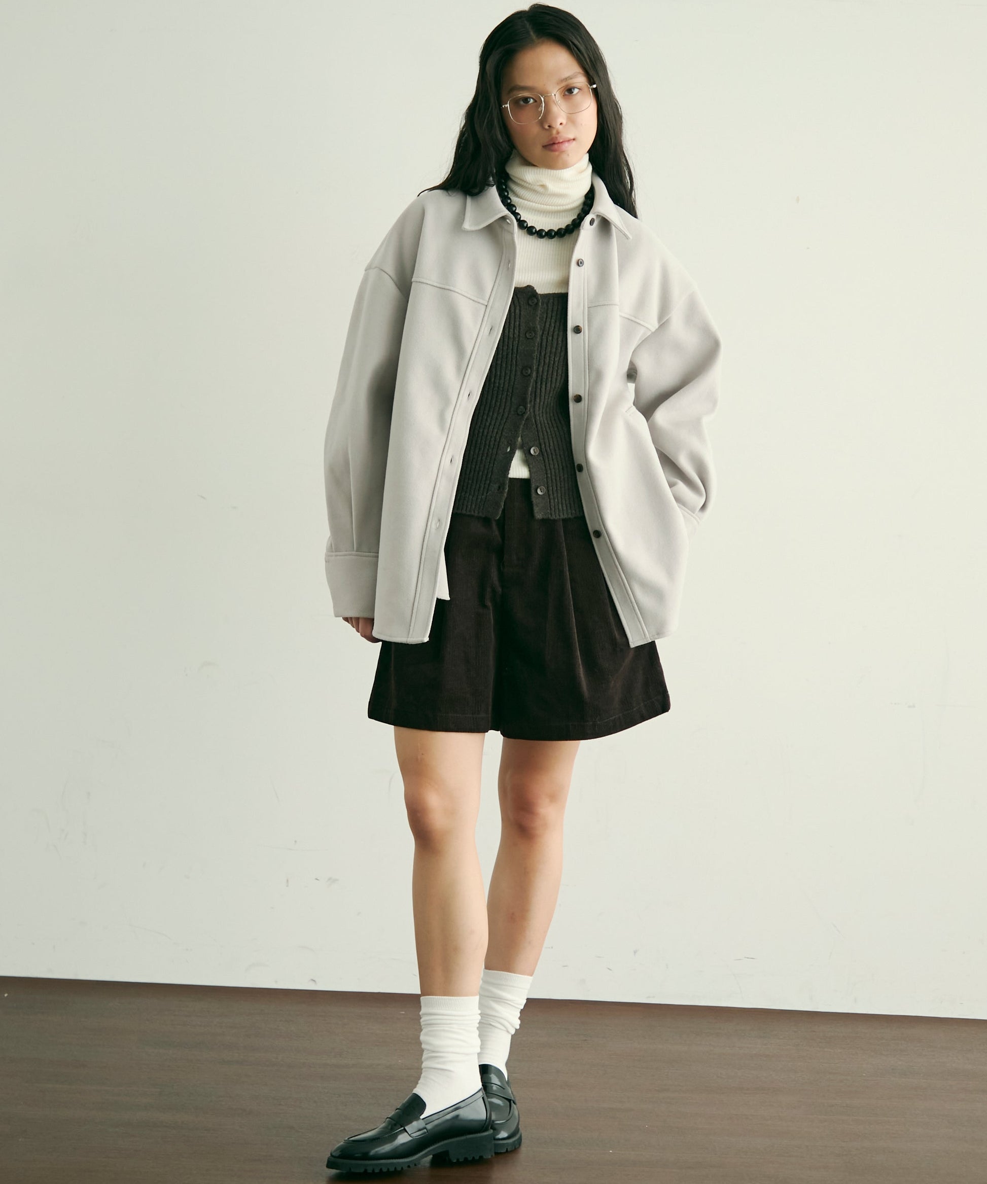 ゆったりシルエットで重ね着もしやすく、羽織るだけでこなれ感のあるスタイリングに。
