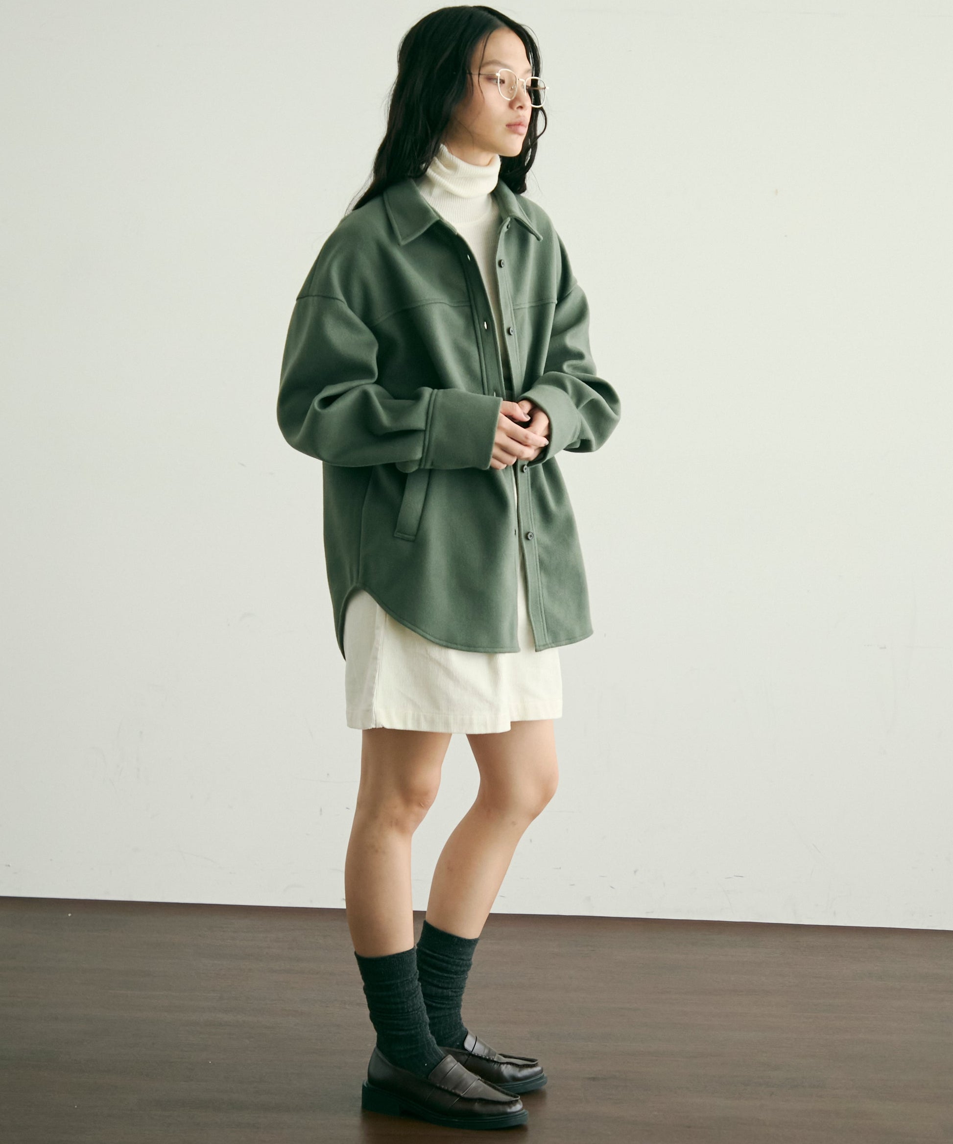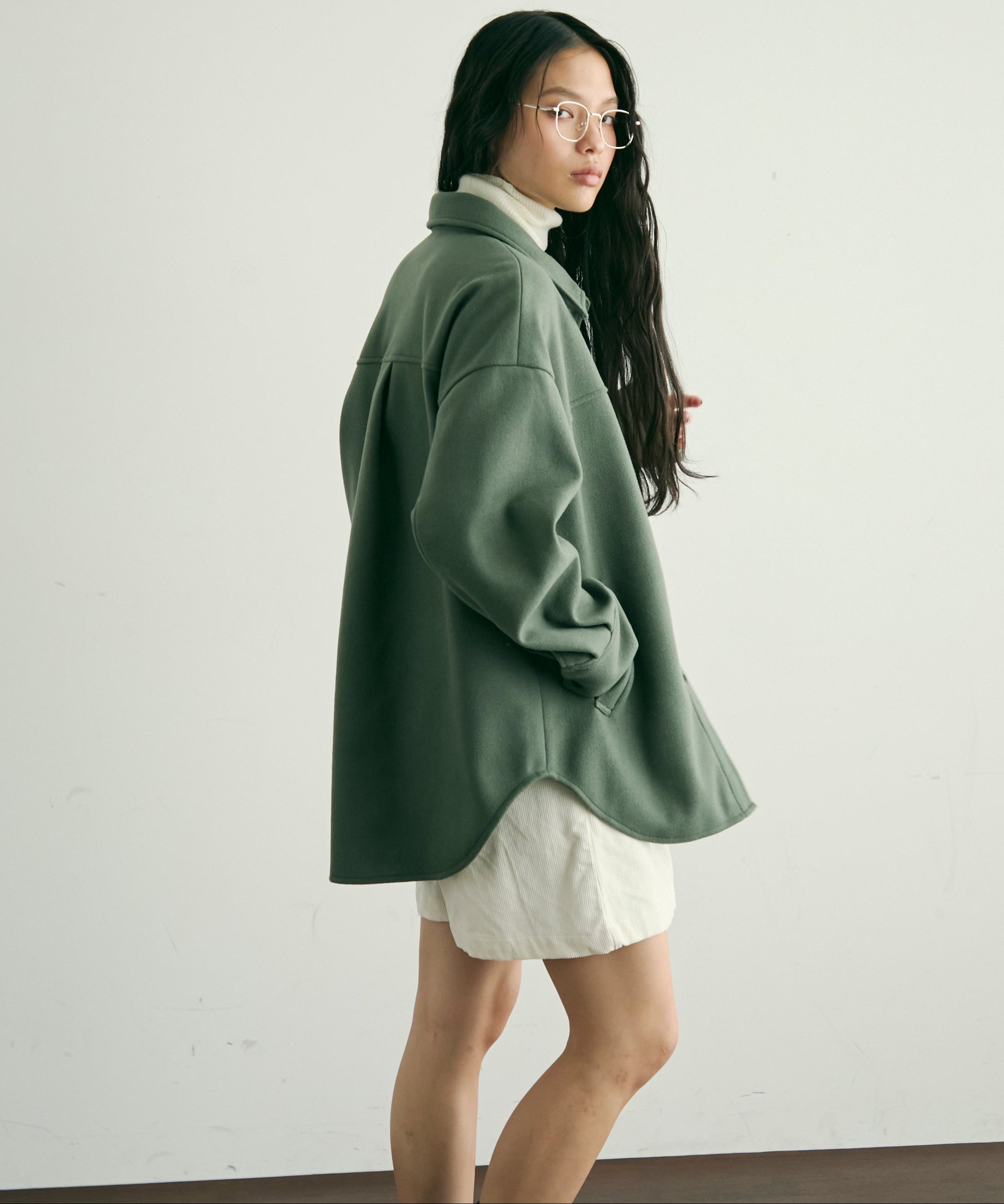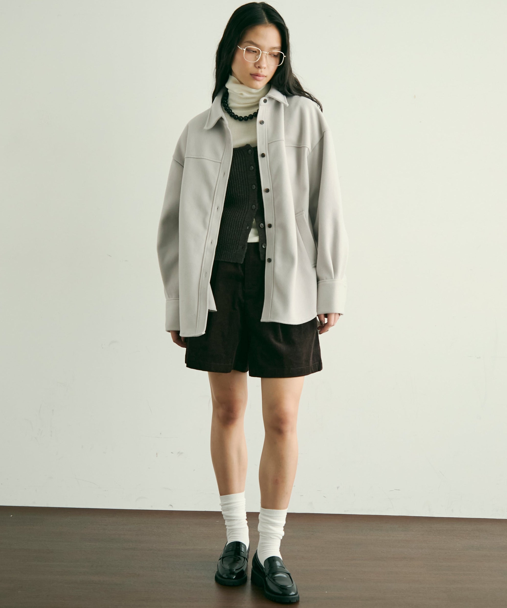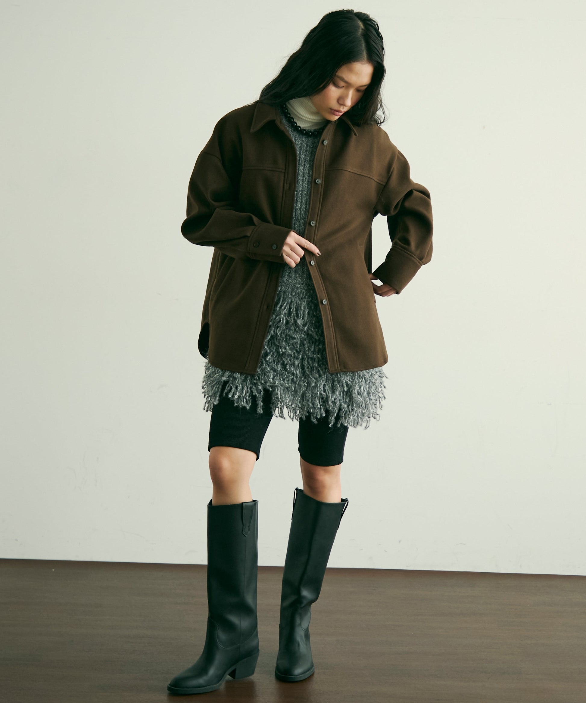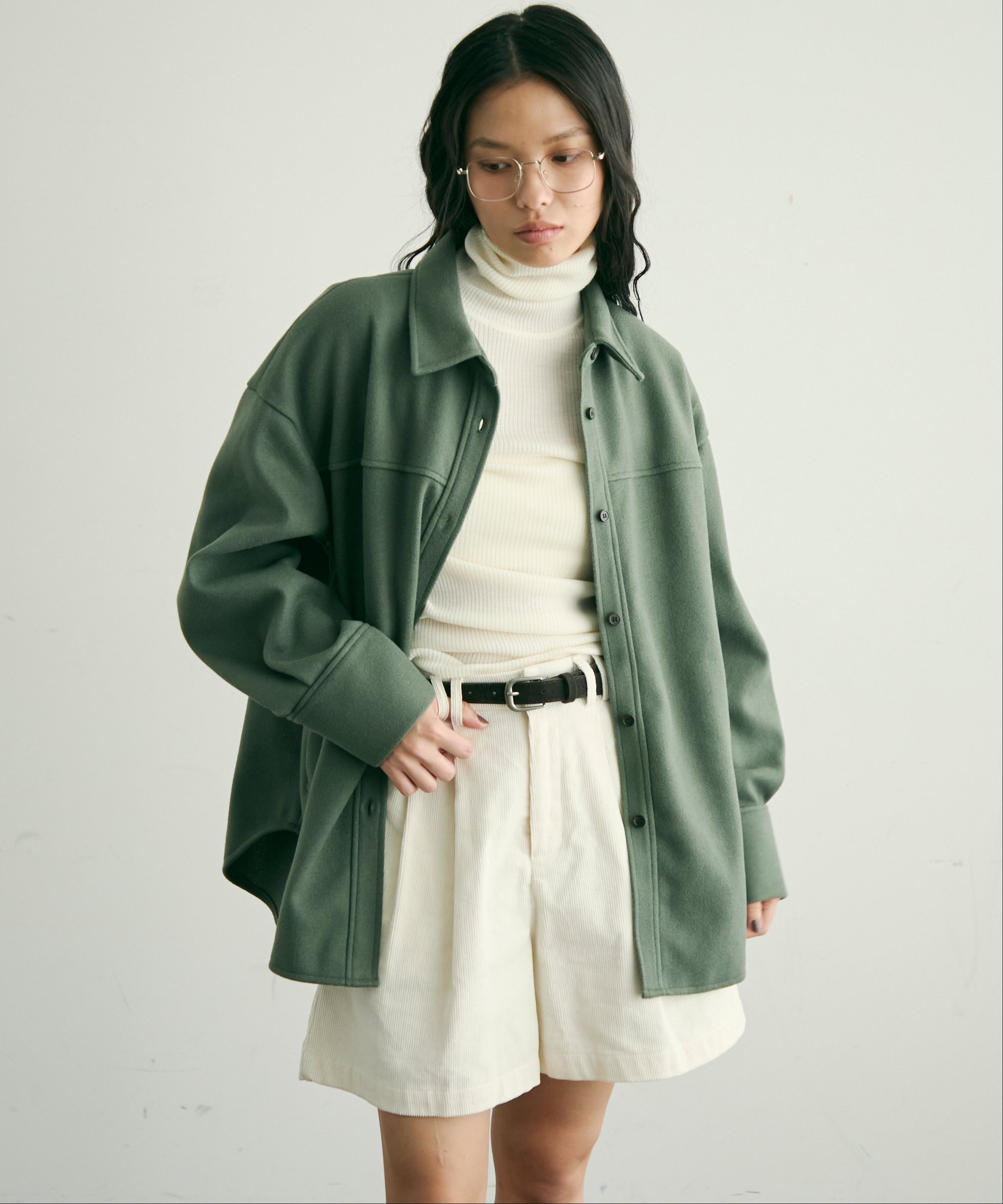 ゆったりシルエットで重ね着もしやすく、羽織るだけでこなれ感のあるスタイリングに。