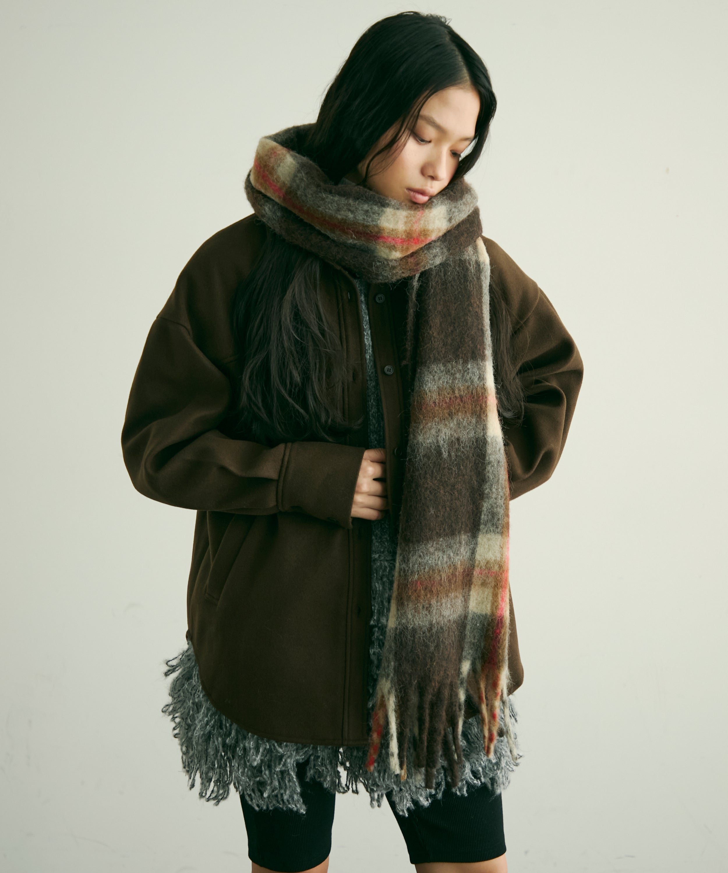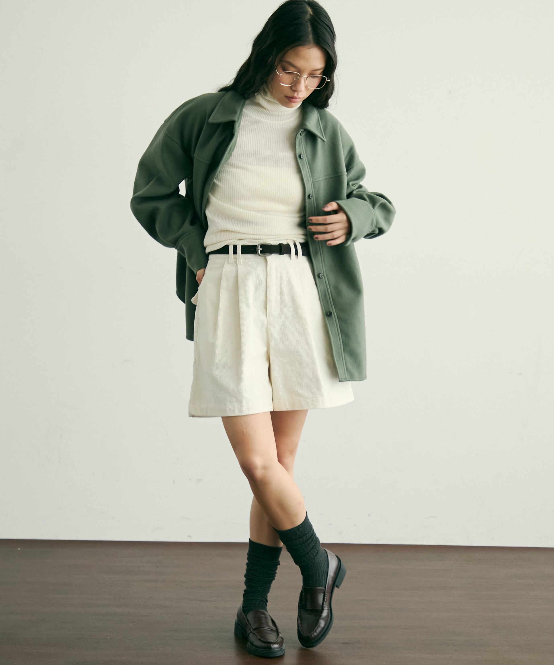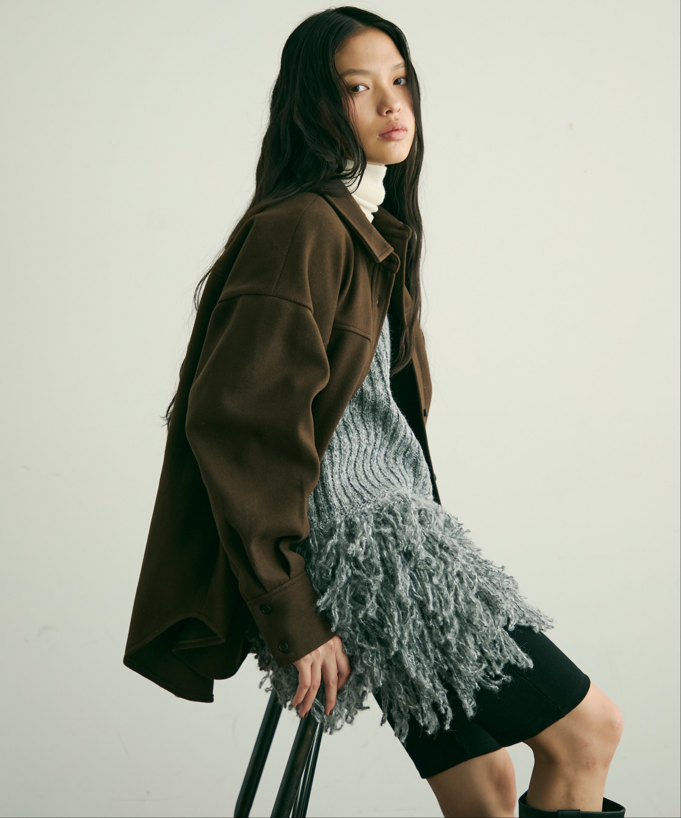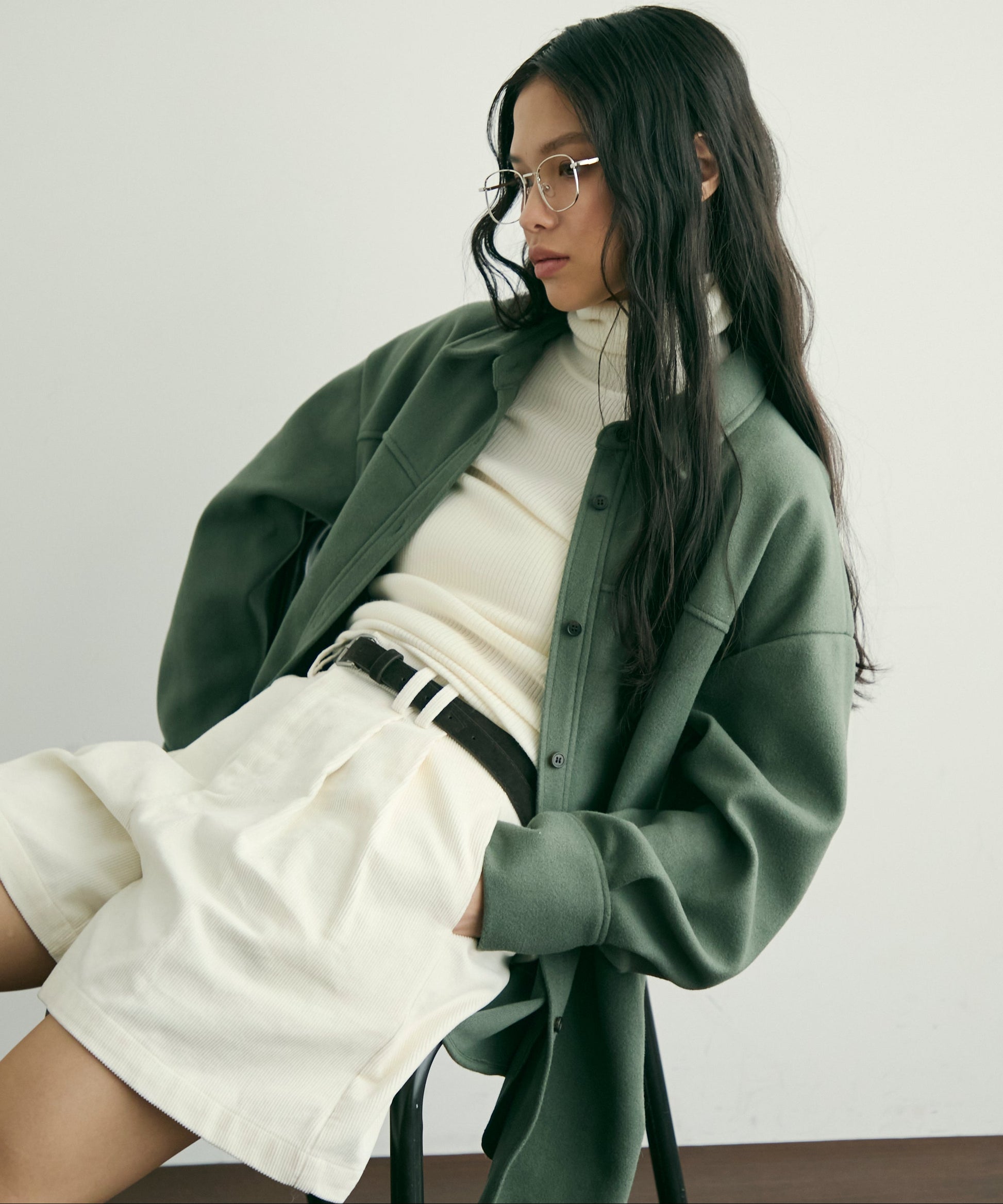 ゆったりシルエットで重ね着もしやすく、羽織るだけでこなれ感のあるスタイリングに。