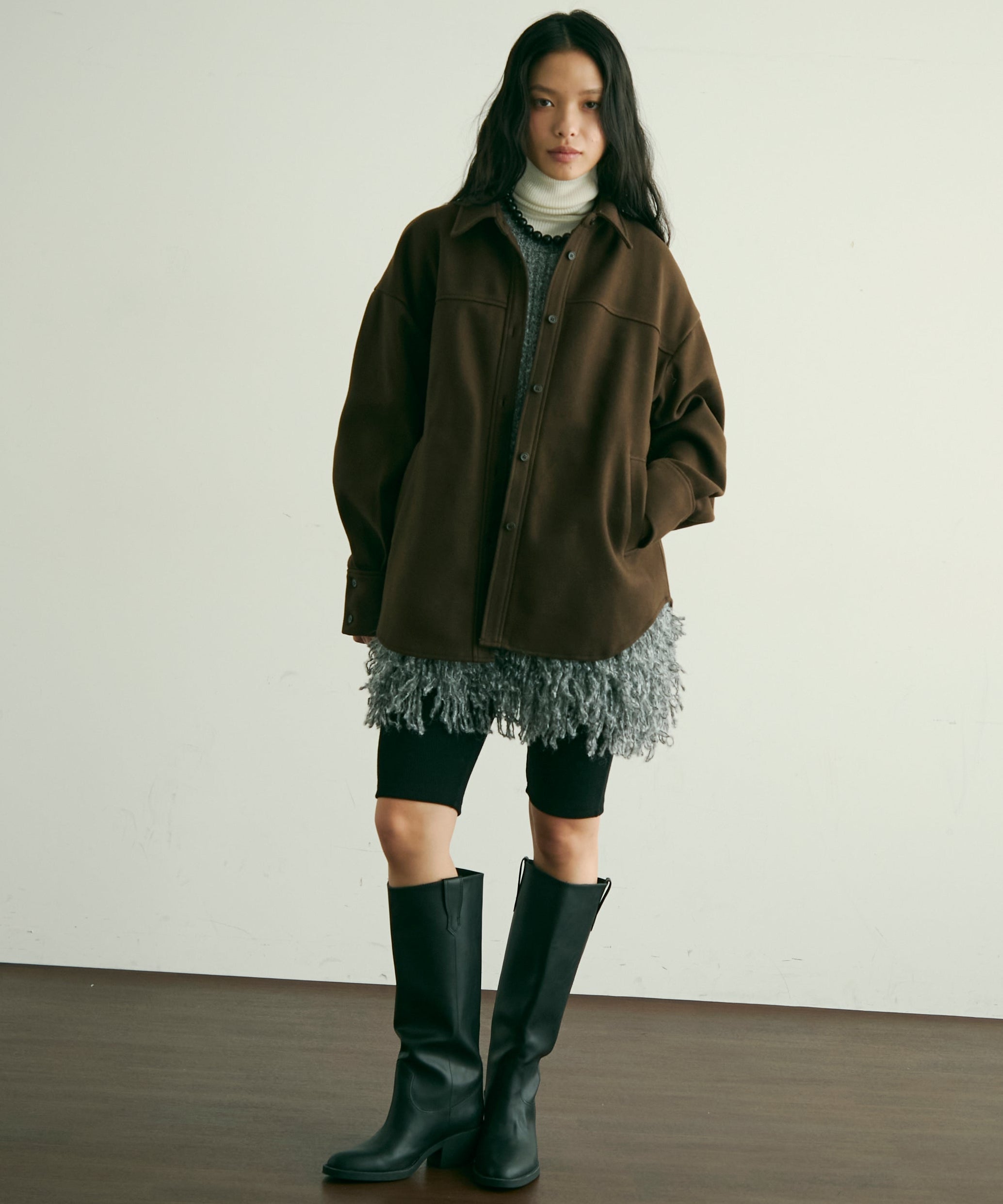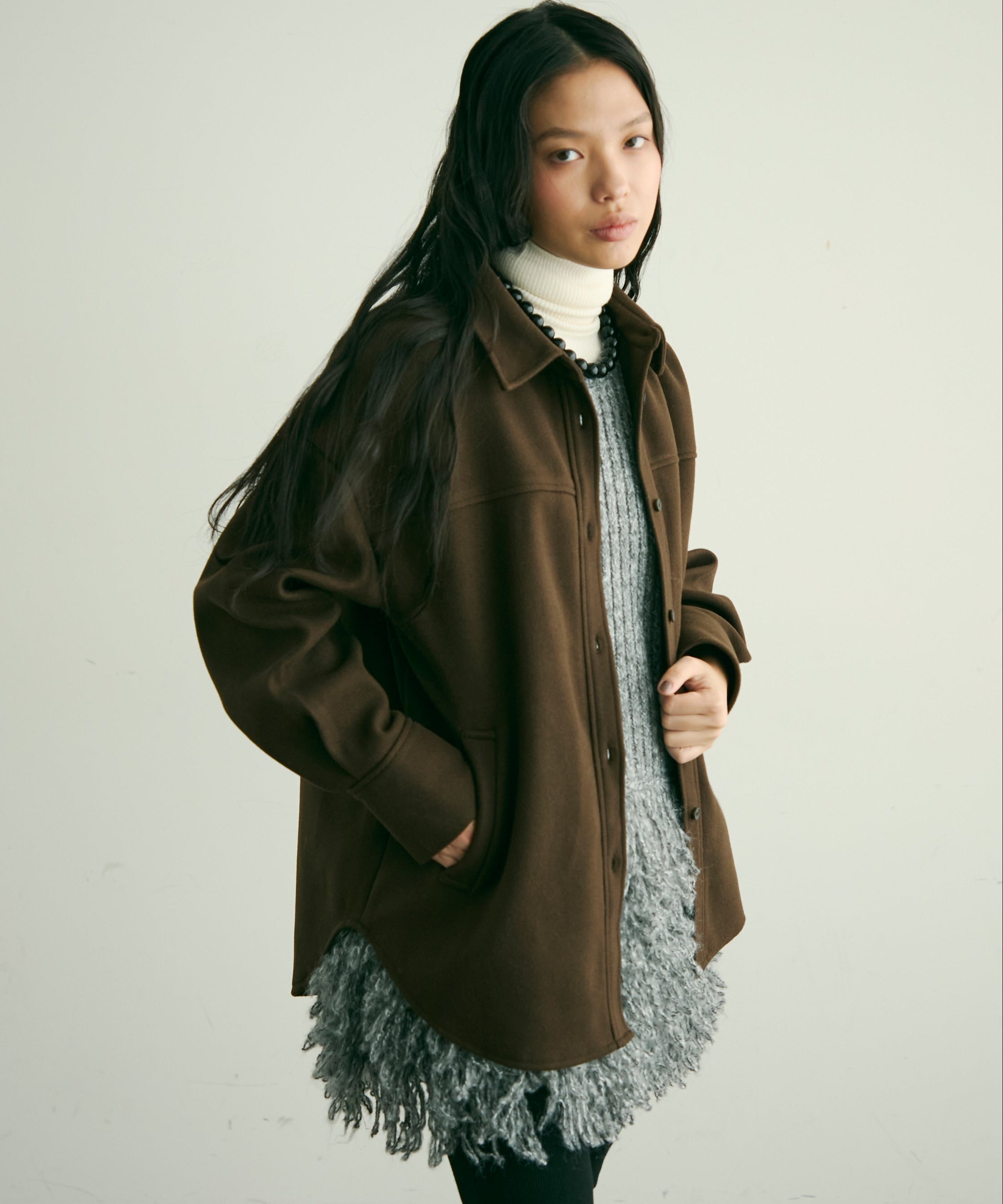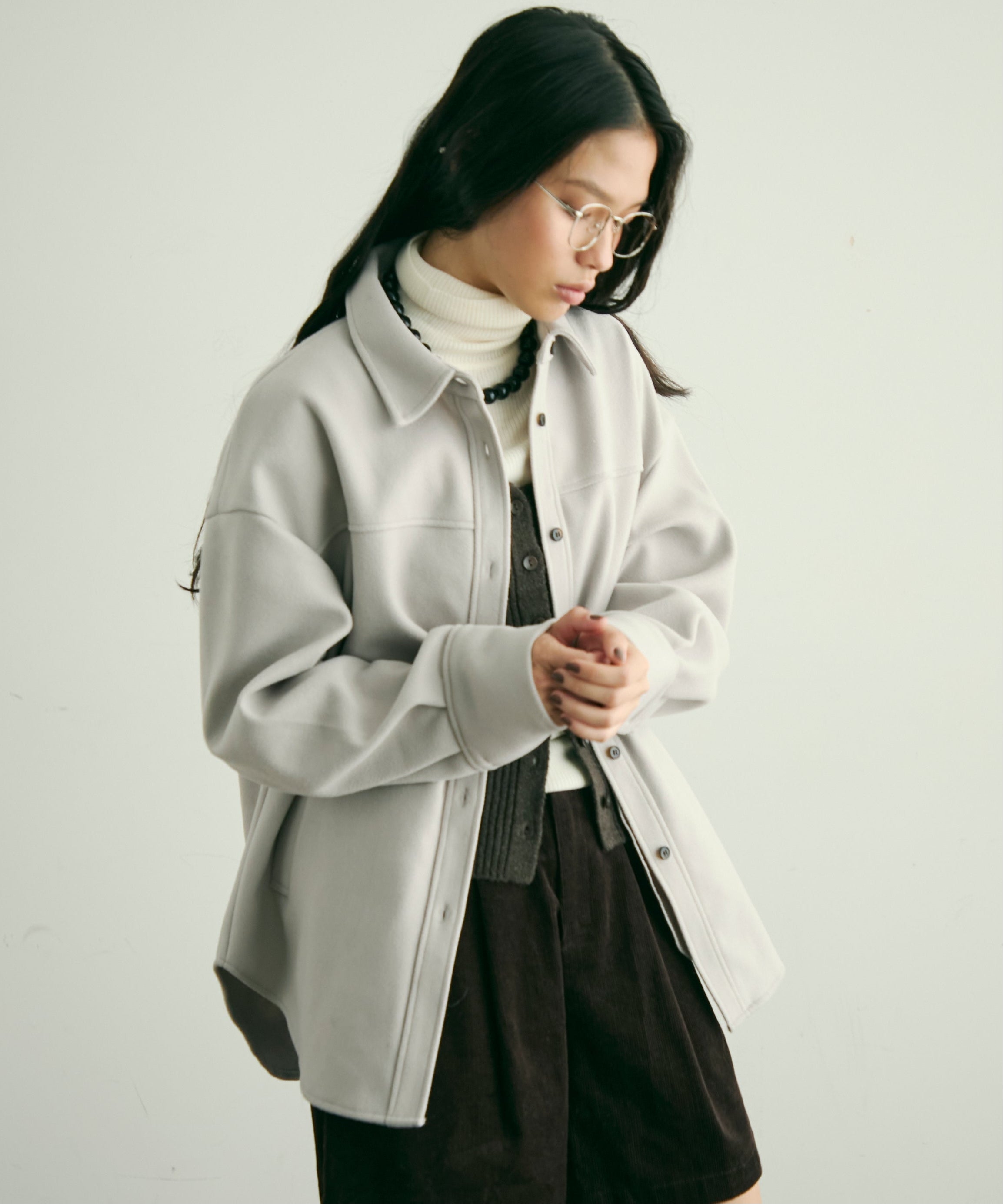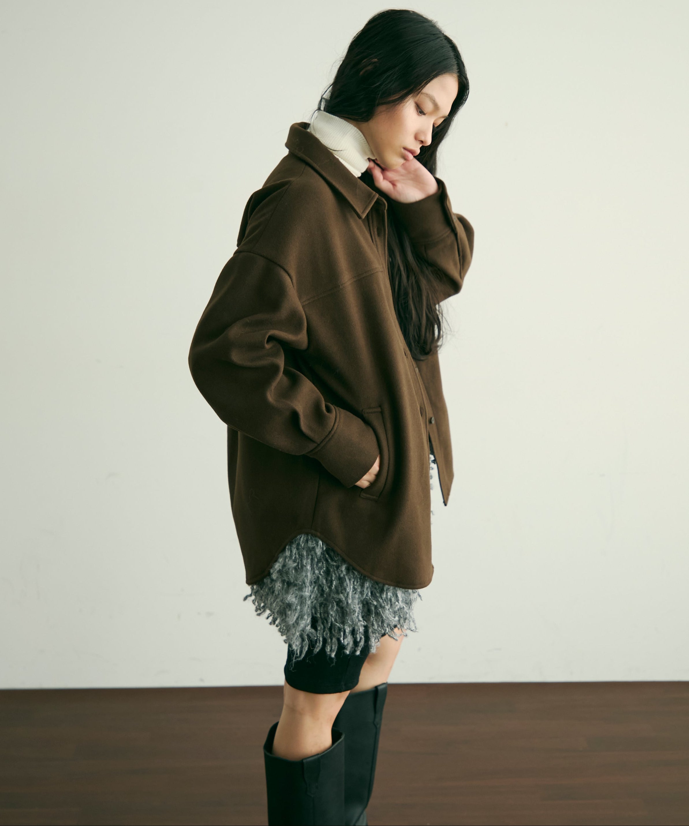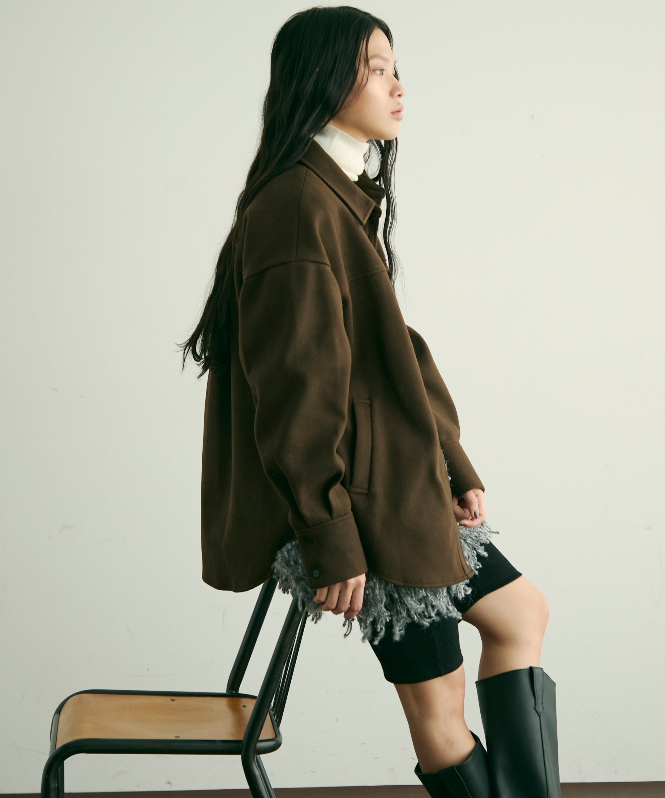 程よい厚みと柔らかなフェイクウール素材で、秋冬の軽アウターとして活躍するCPOジャケット。