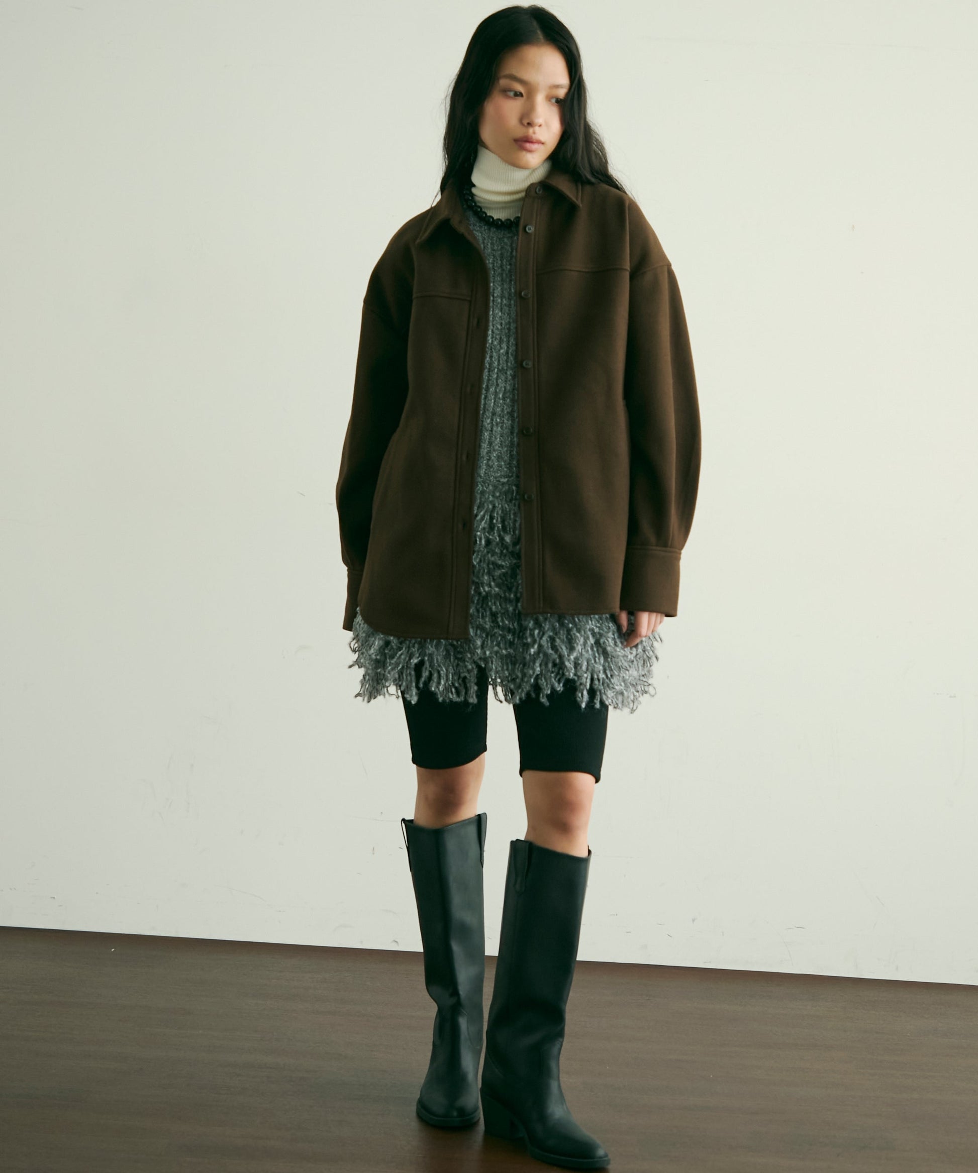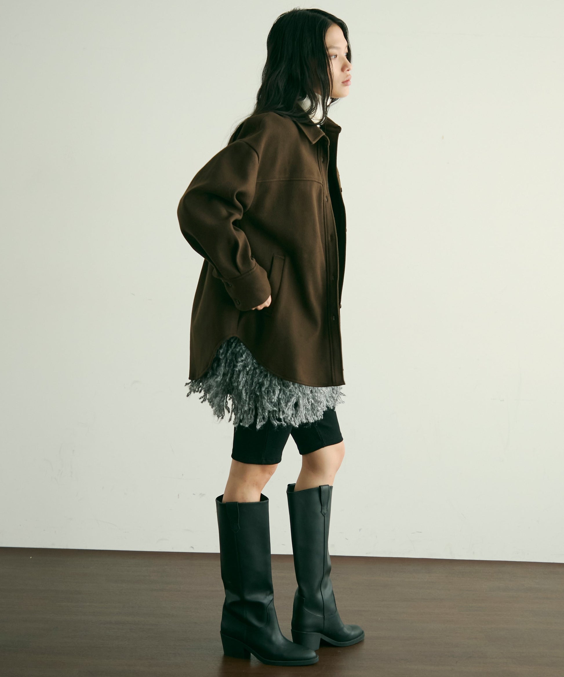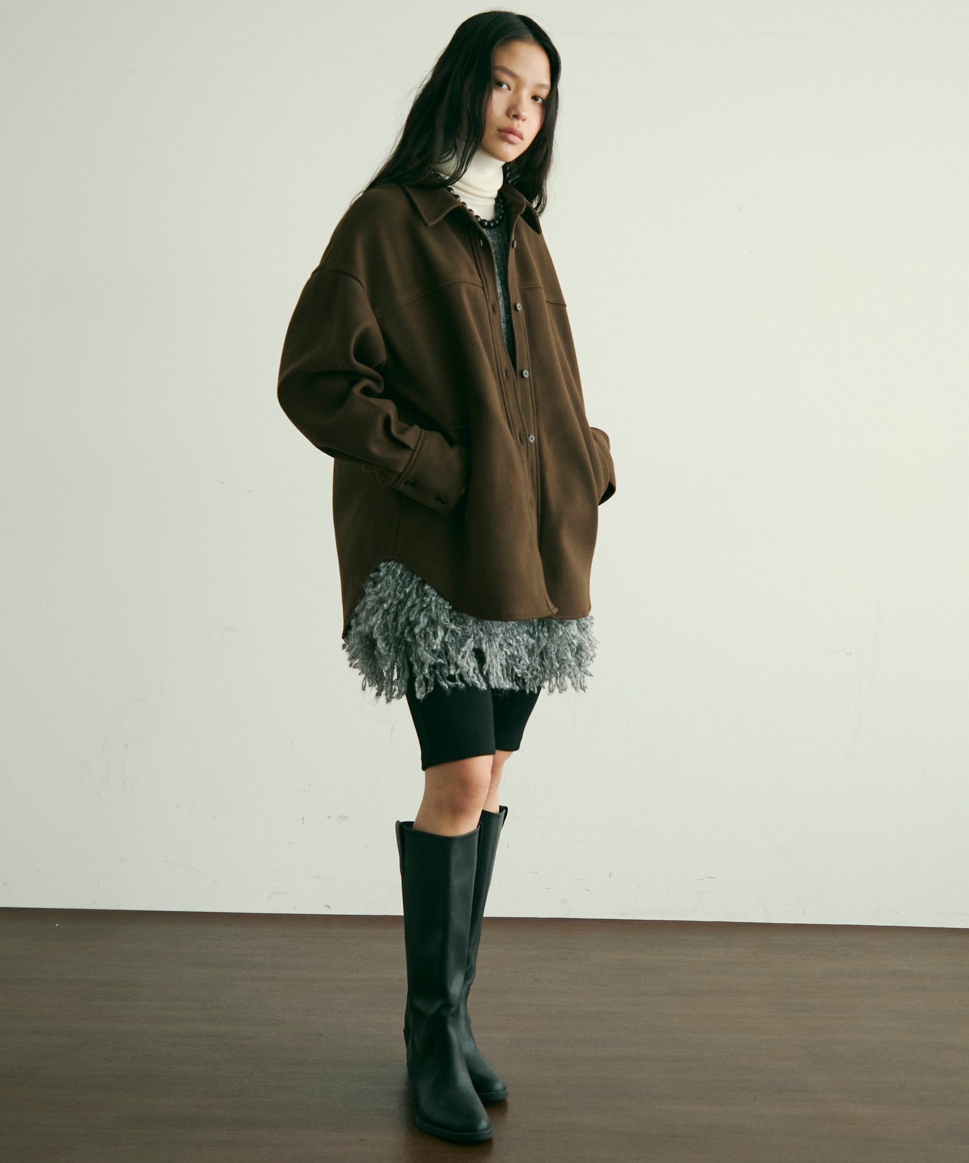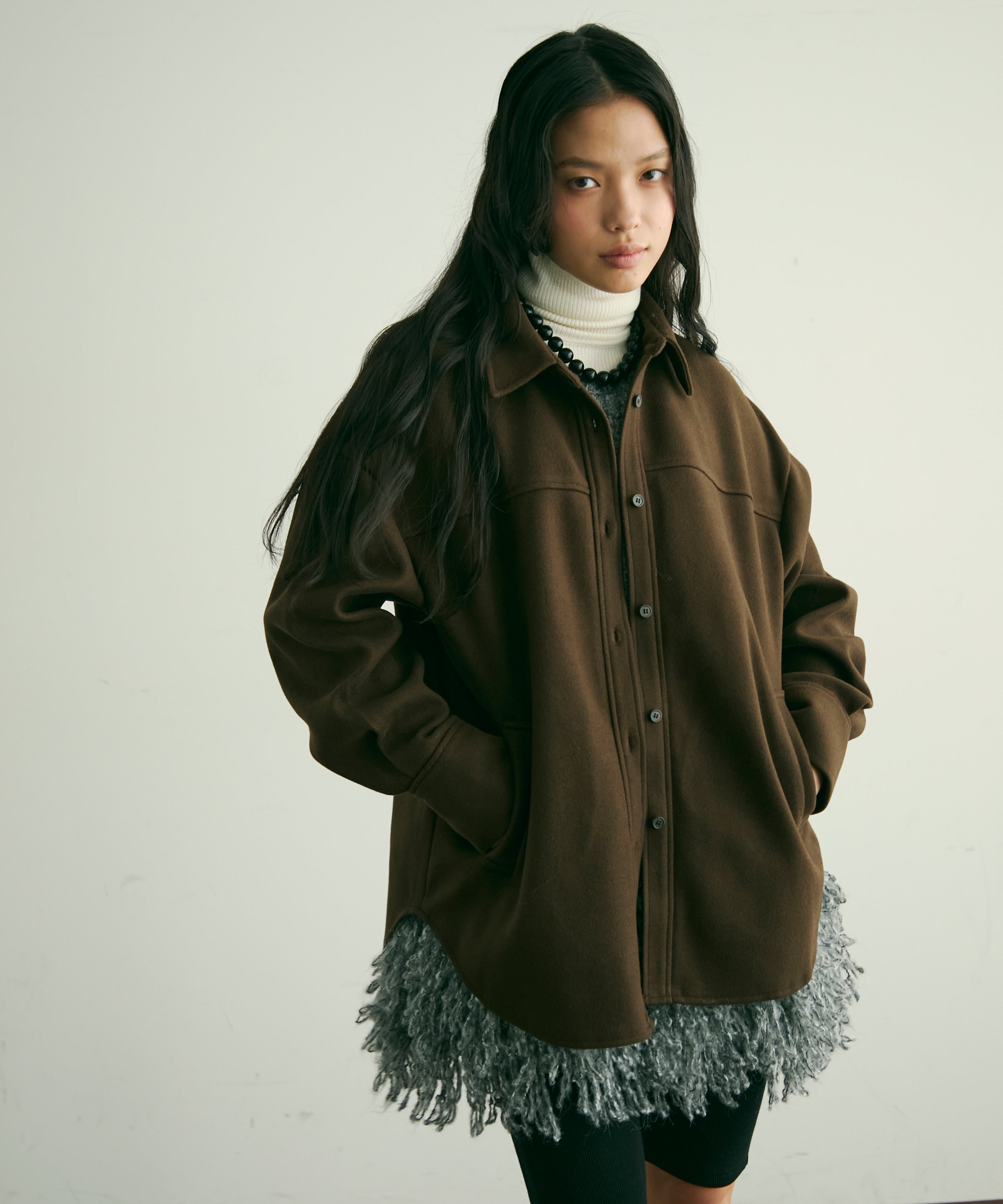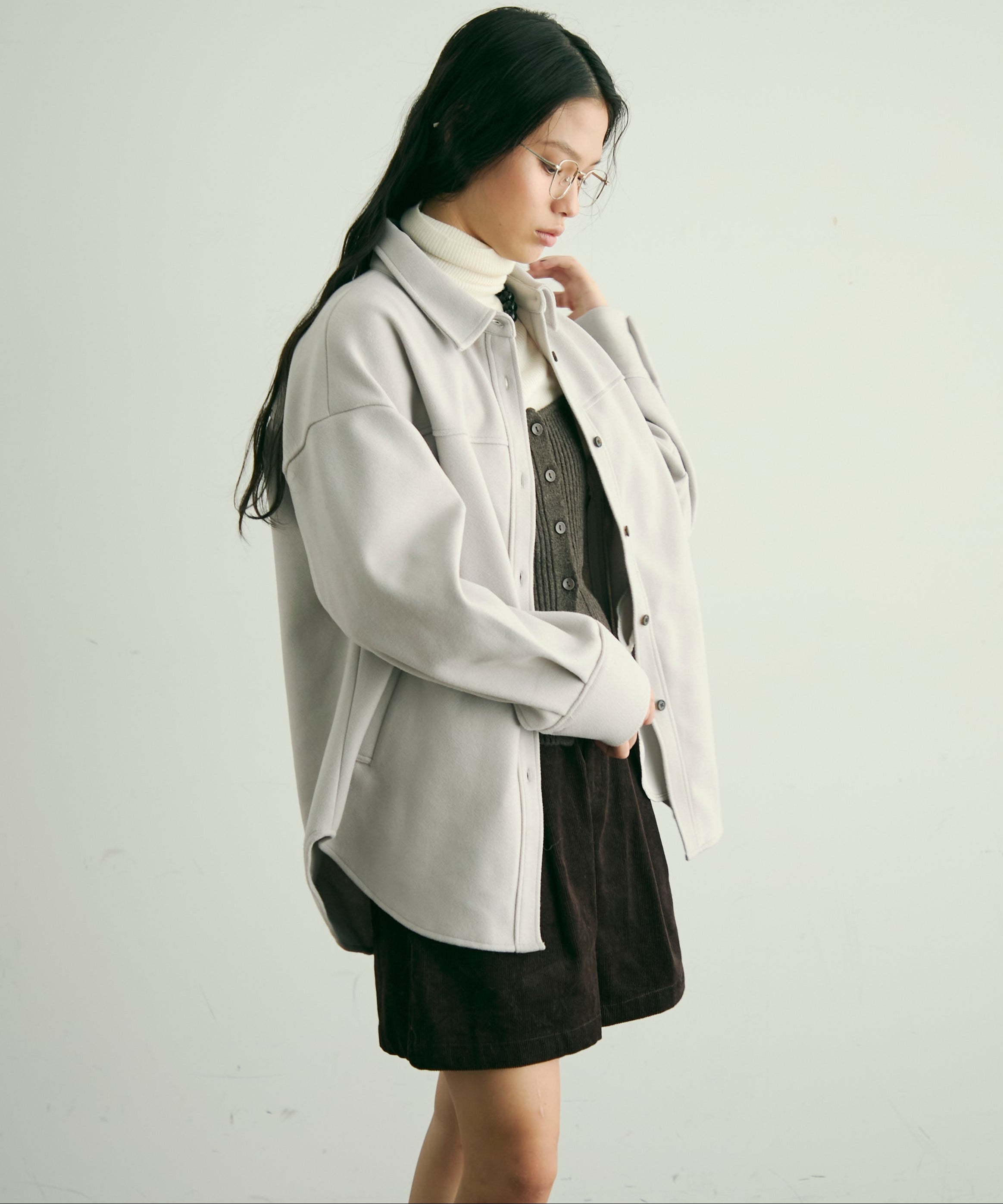 程よい厚みと柔らかなフェイクウール素材で、秋冬の軽アウターとして活躍するCPOジャケット。