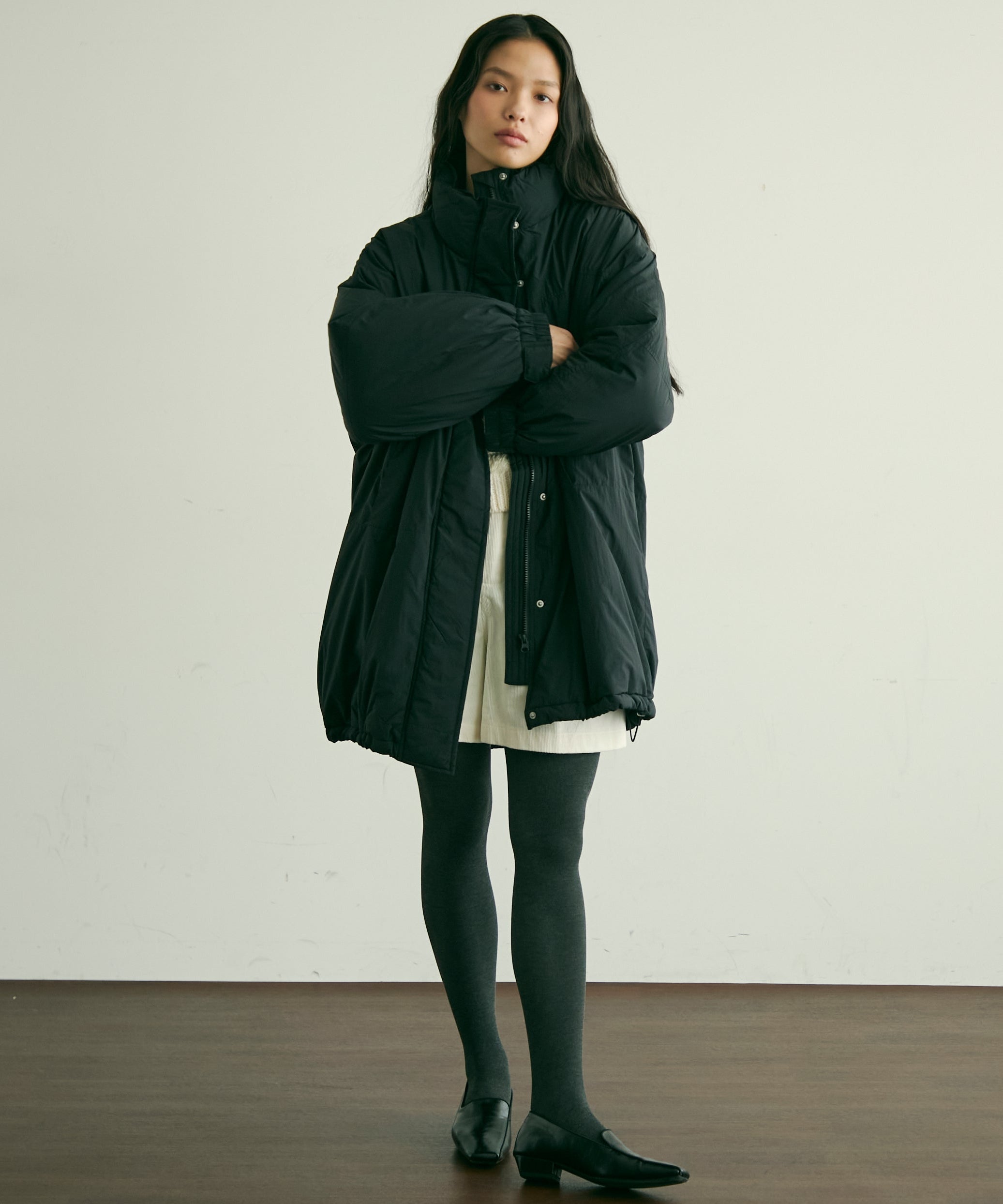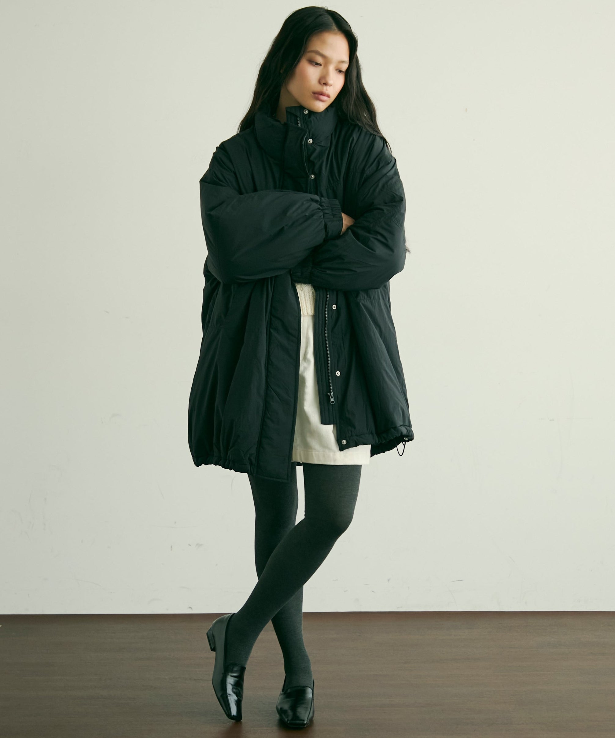 寒い季節に頼れる、蓄熱機能付きの中綿ボリュームコート。
