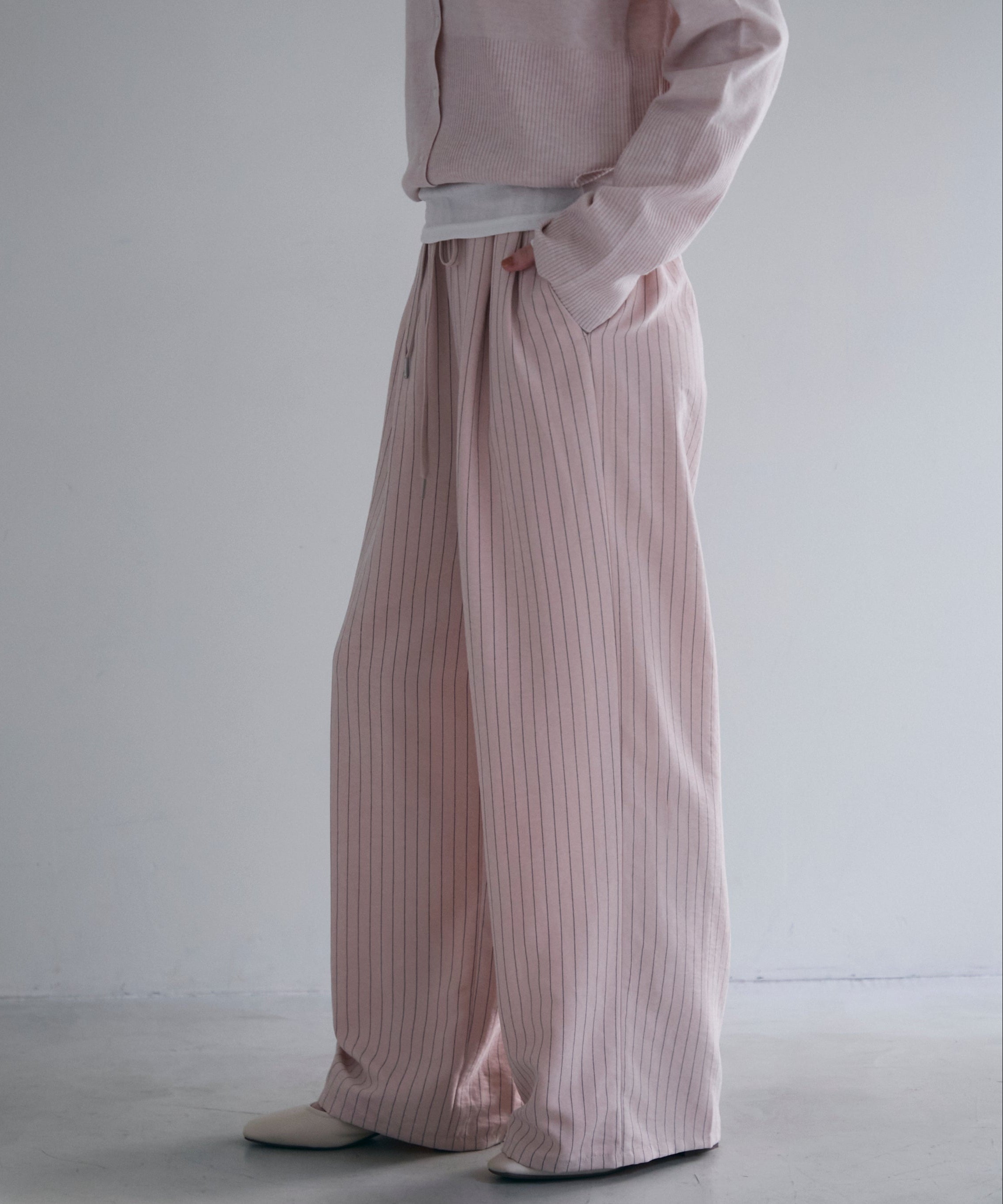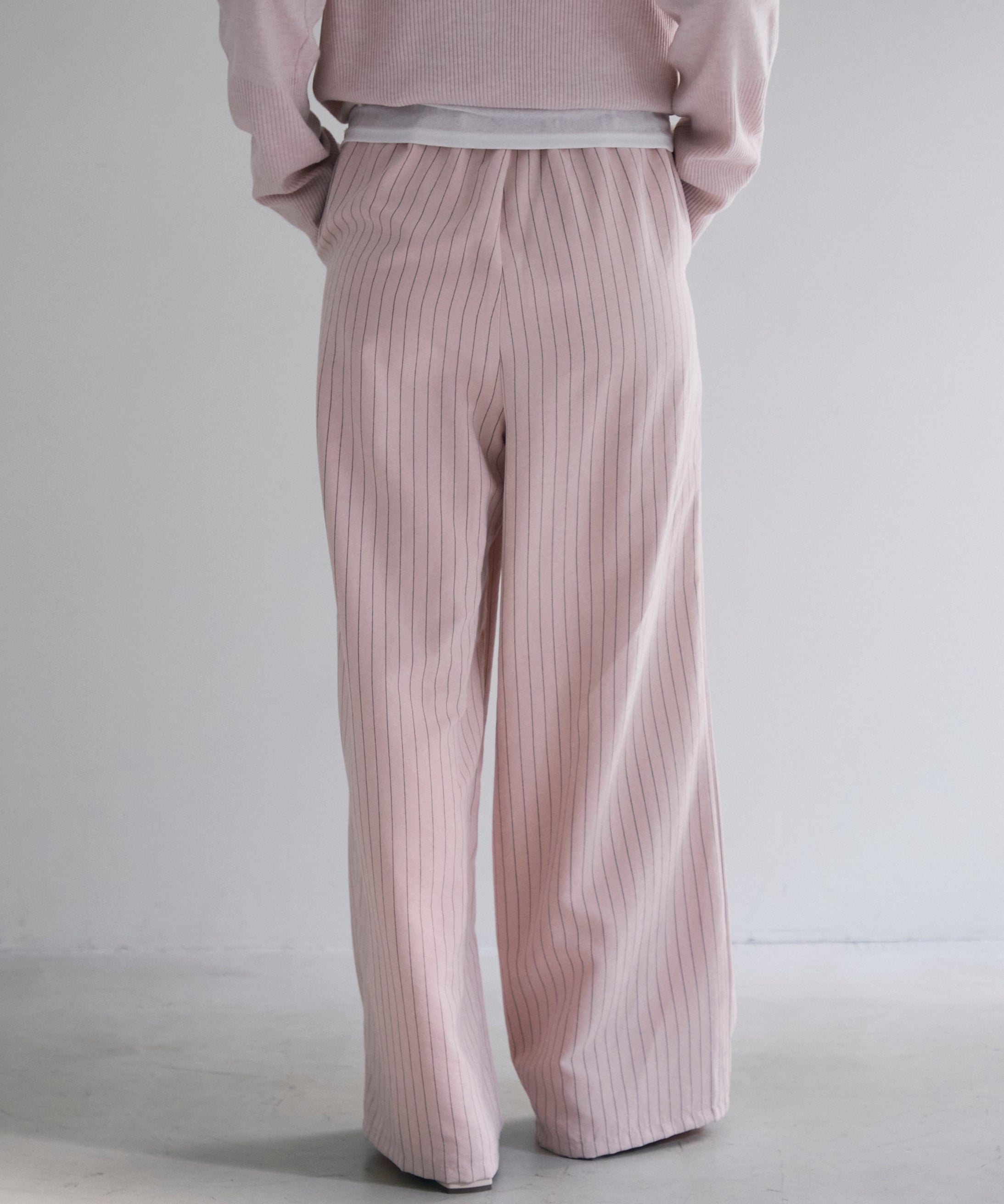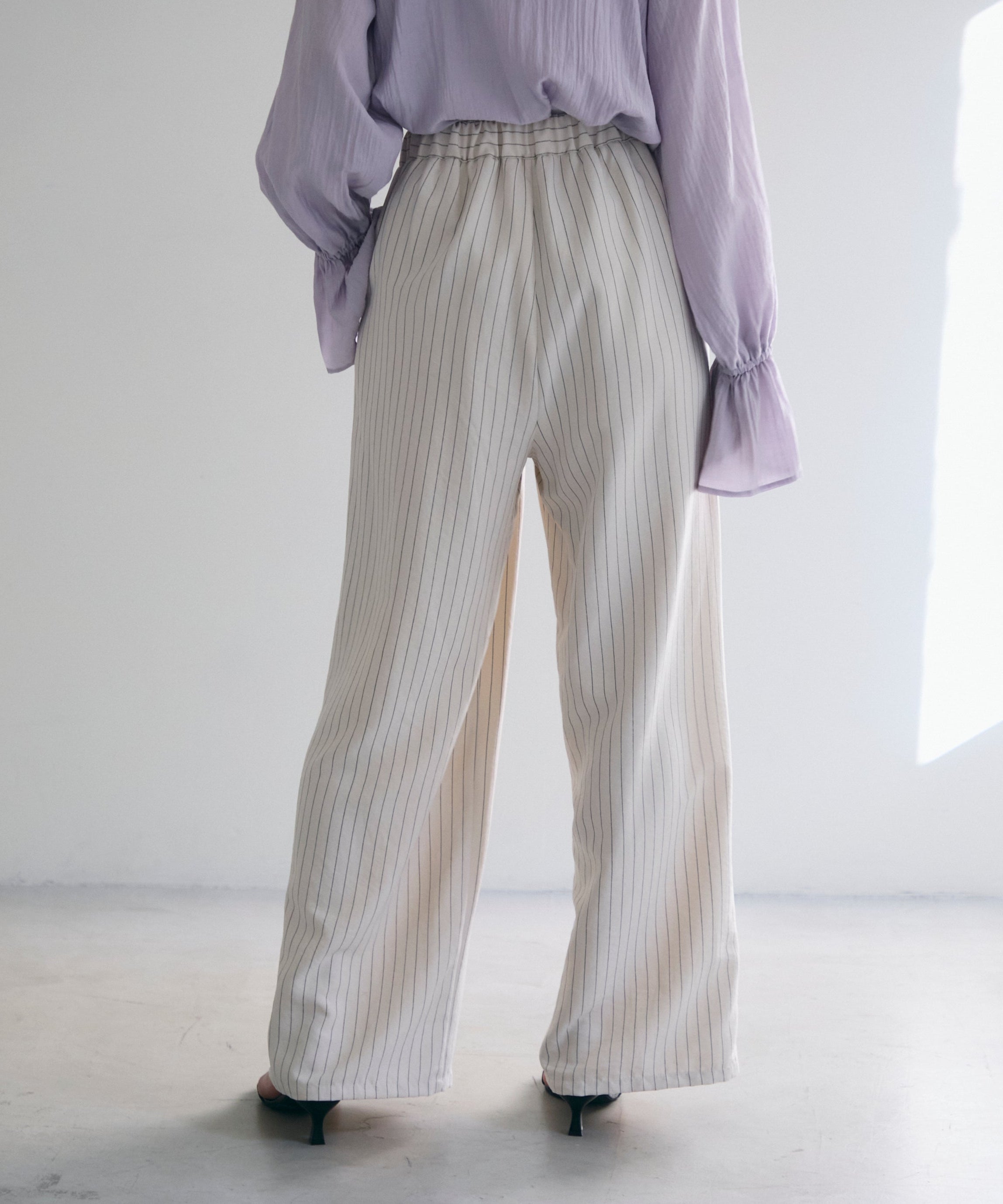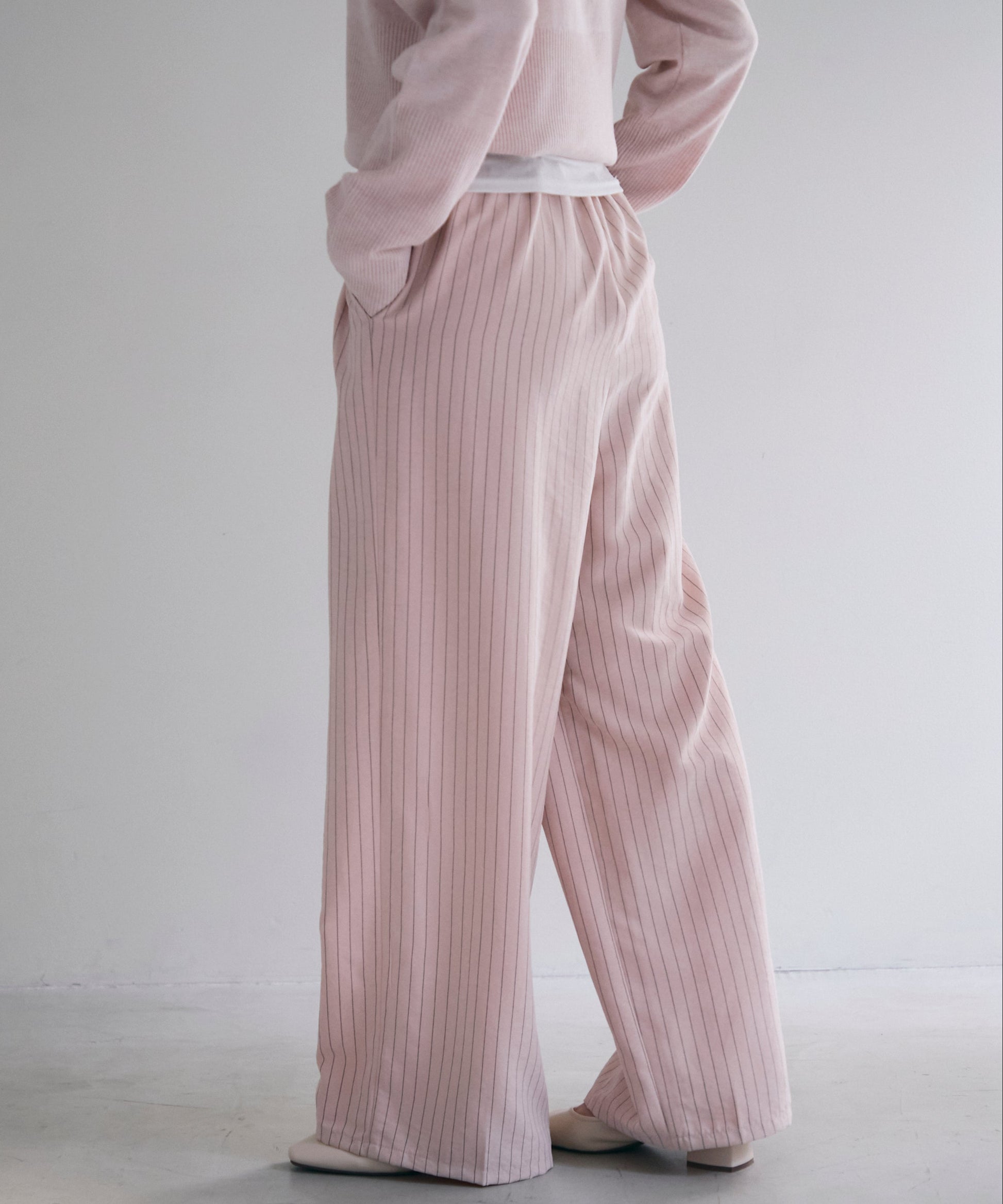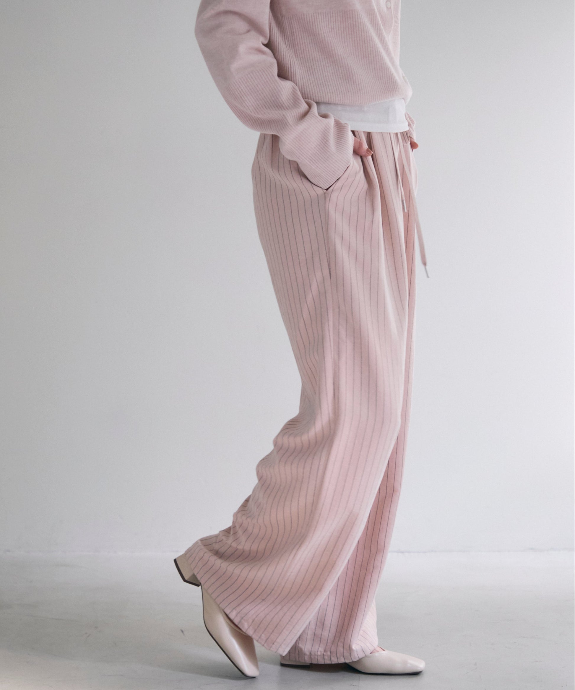 パウダースキンならではの、しっとりとなめらかなタッチが魅力のストライプイージーパンツ。