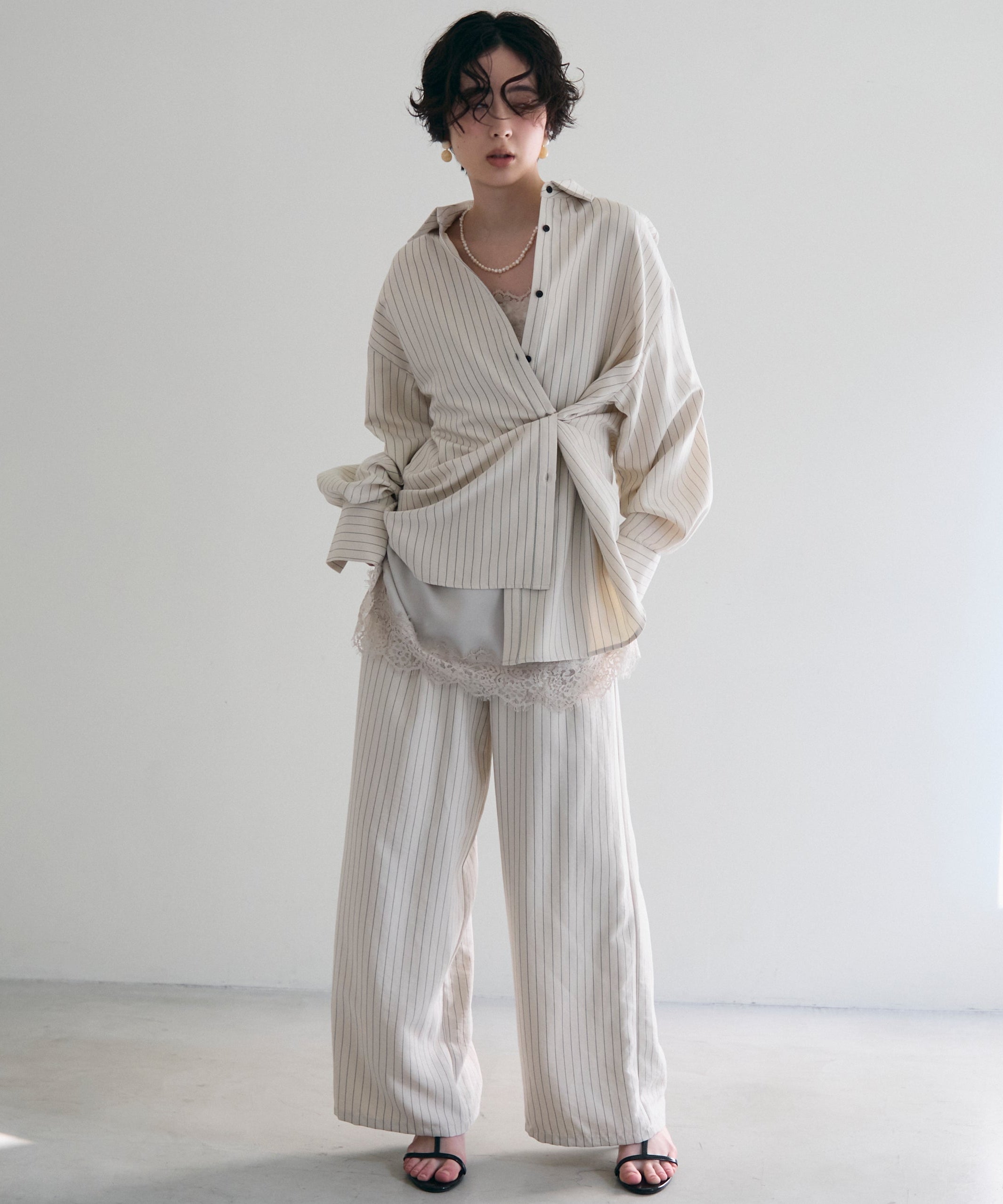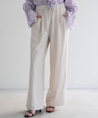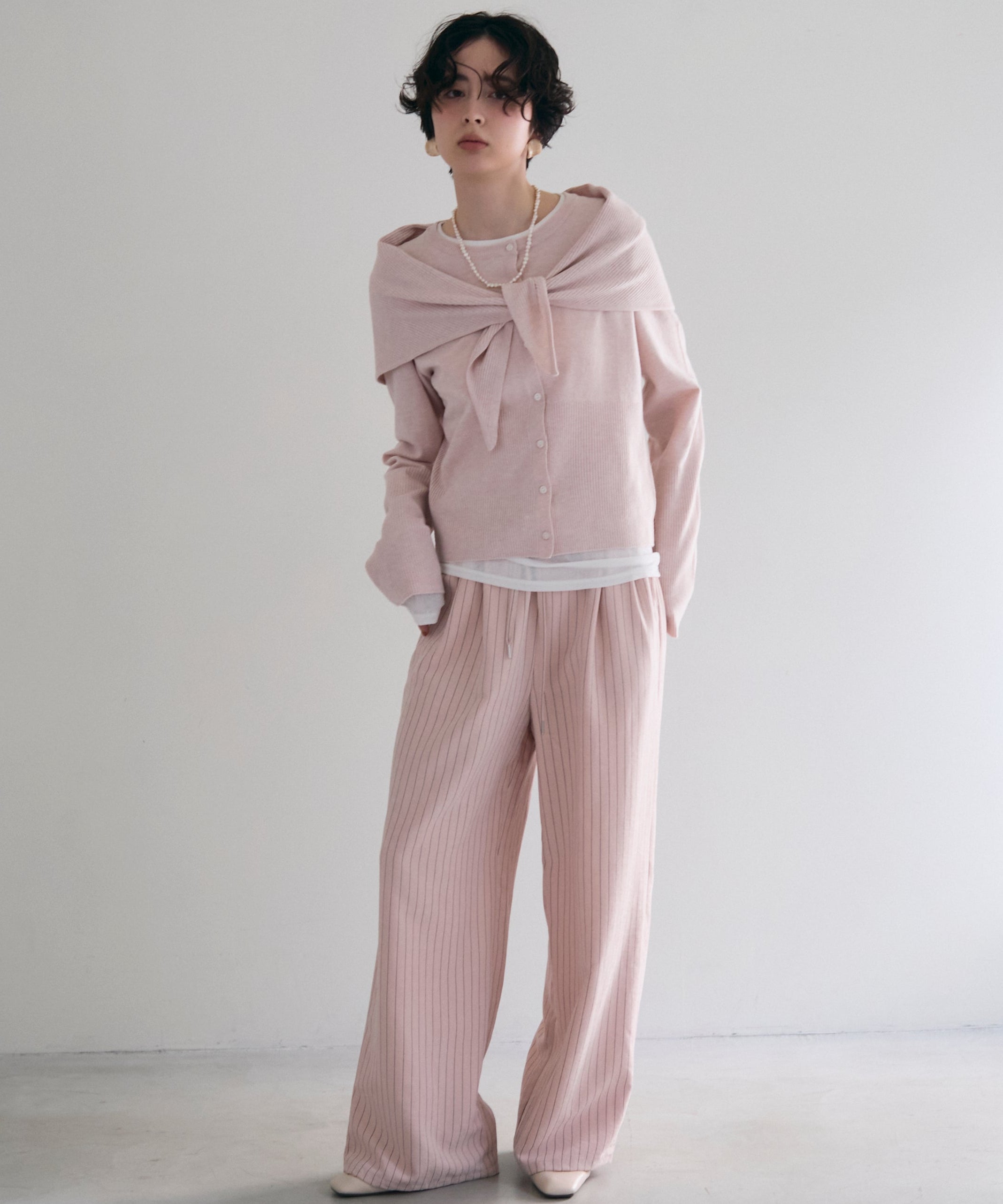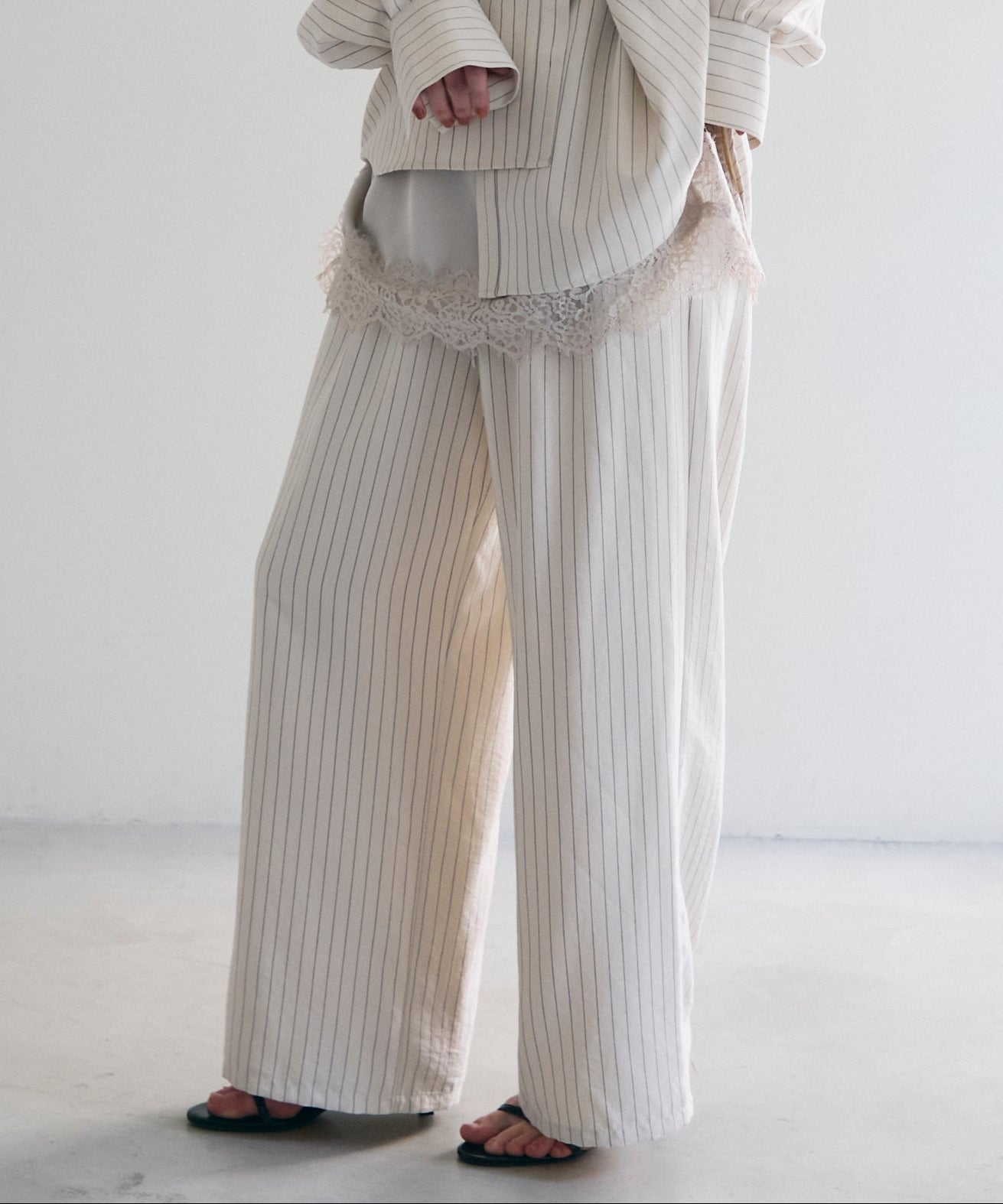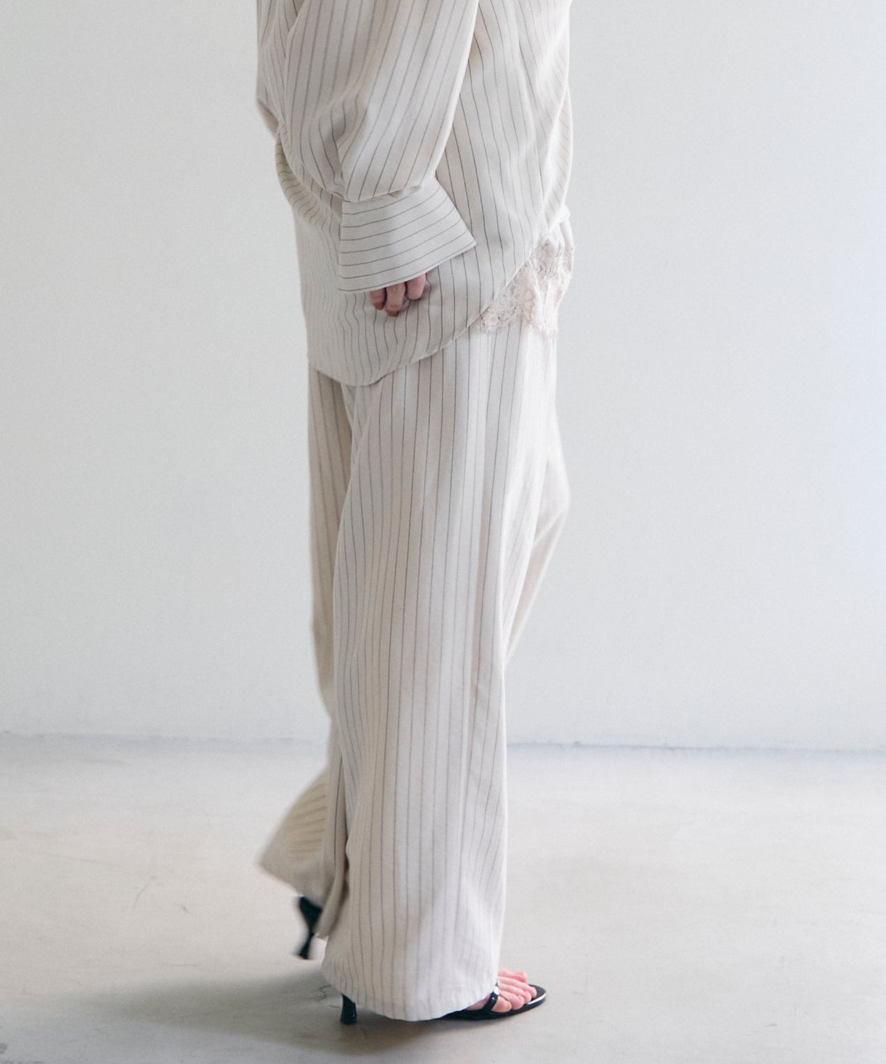 パウダースキンならではの、しっとりとなめらかなタッチが魅力のストライプイージーパンツ。