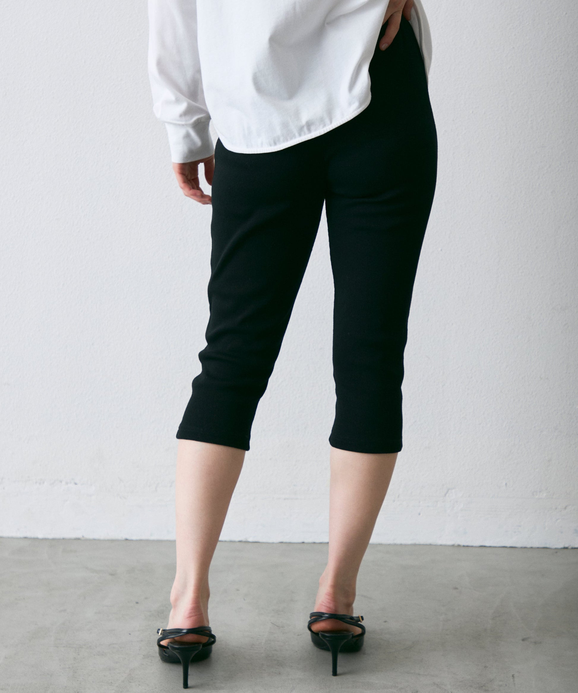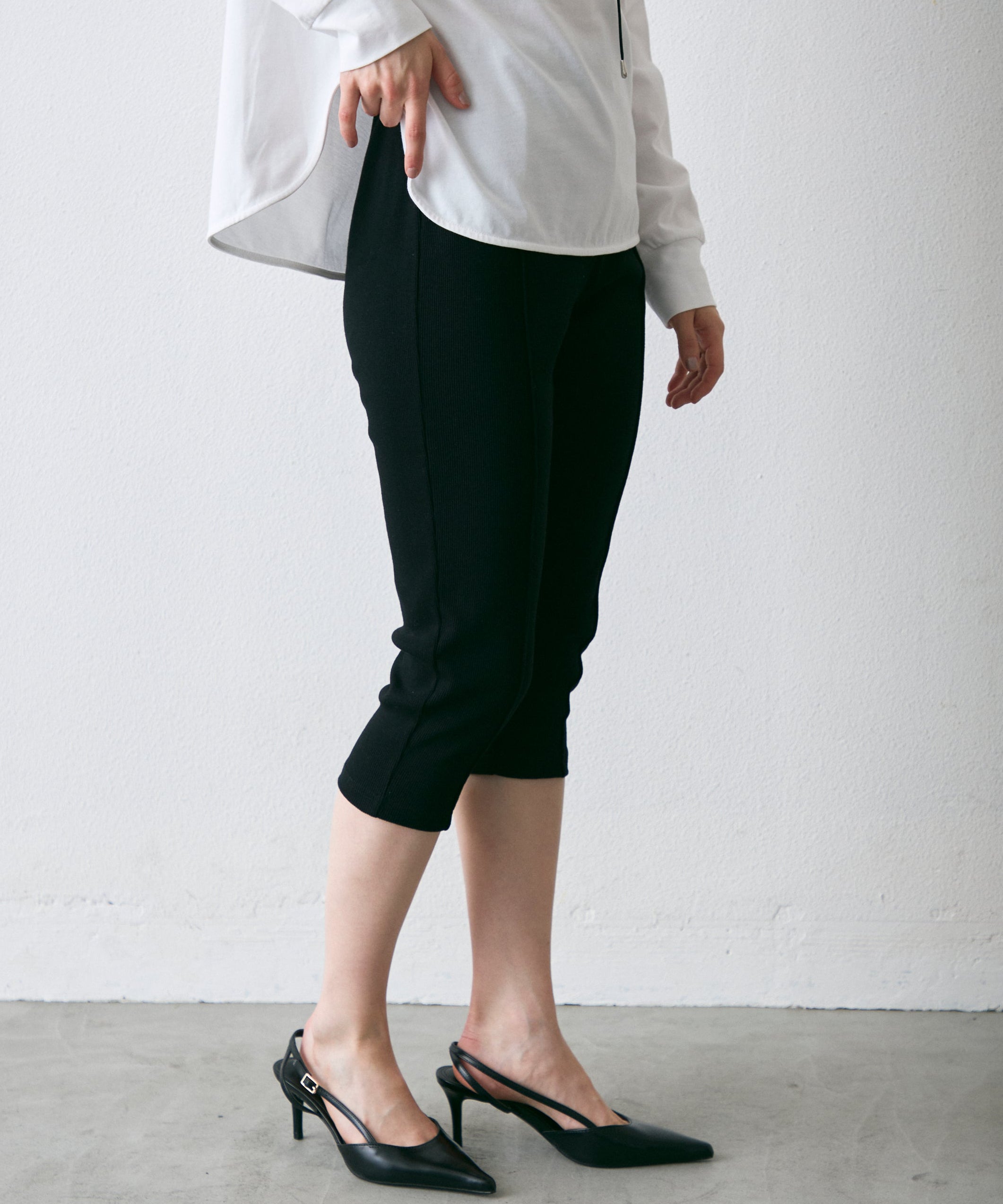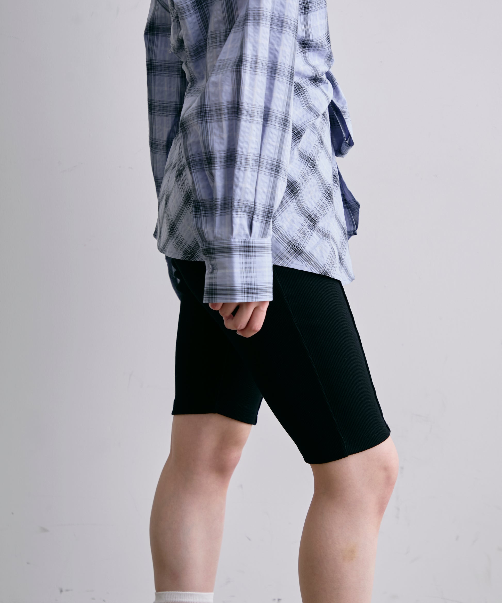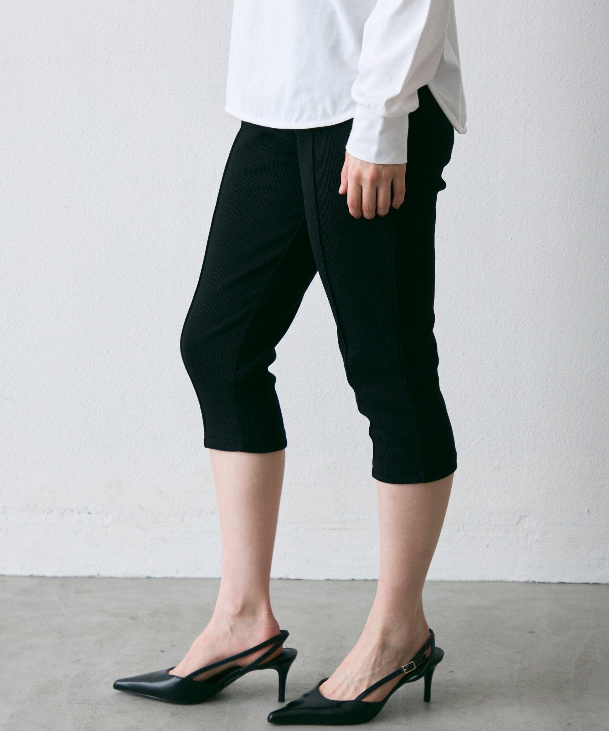 伸縮性のあるリブ素材を使用した、快適な履き心地のサイクルパンツ。身体にやさしくフィットし、動きやすさとすっきりしたシルエットを両立しました。ウエストはゴム仕様でストレスフリー。