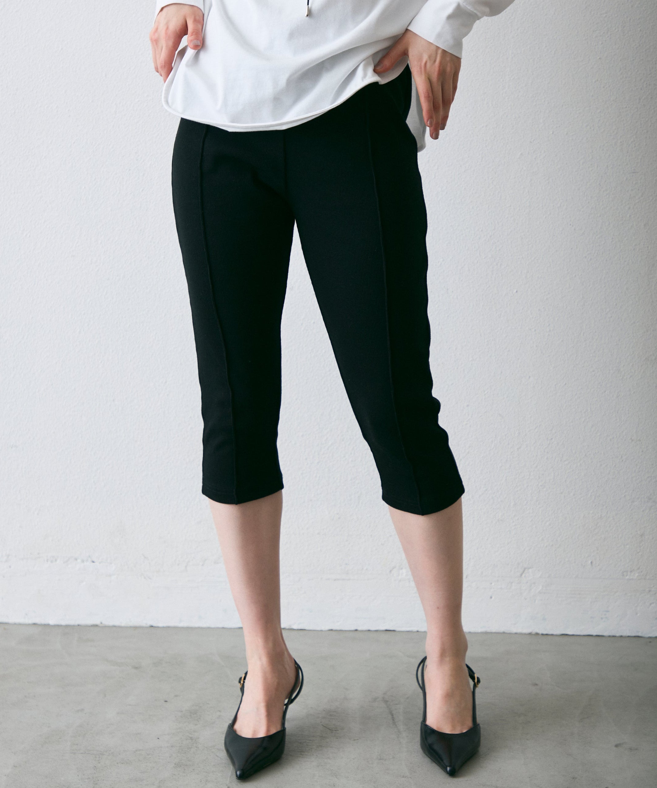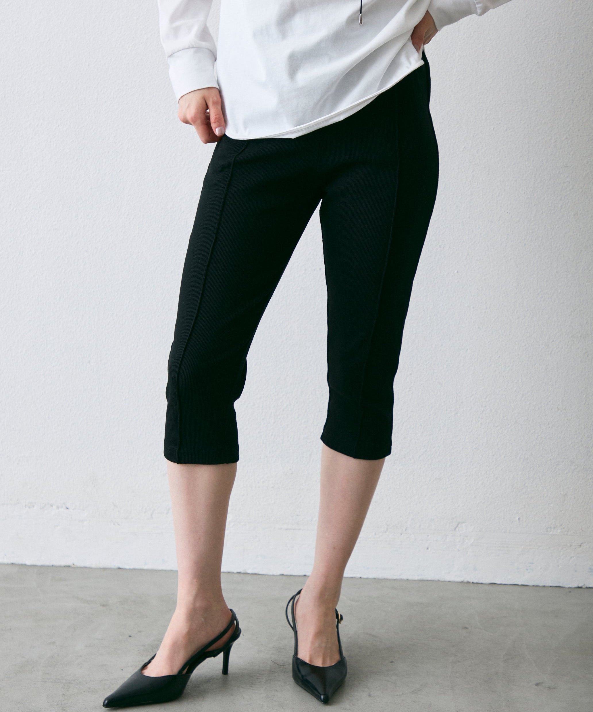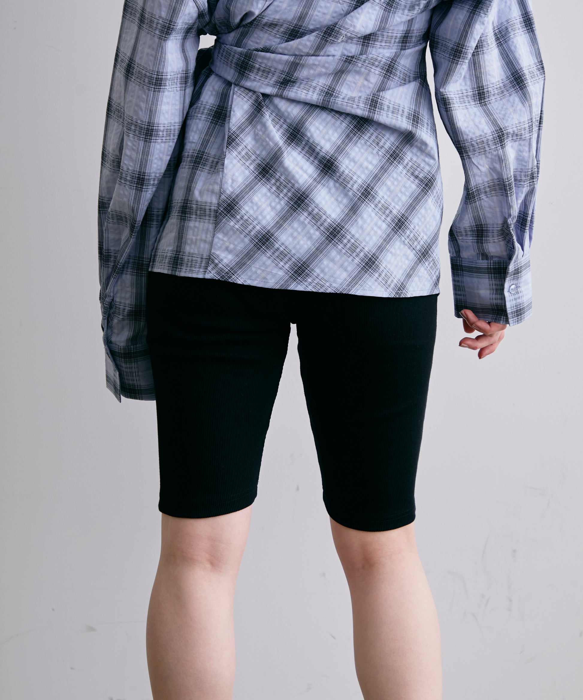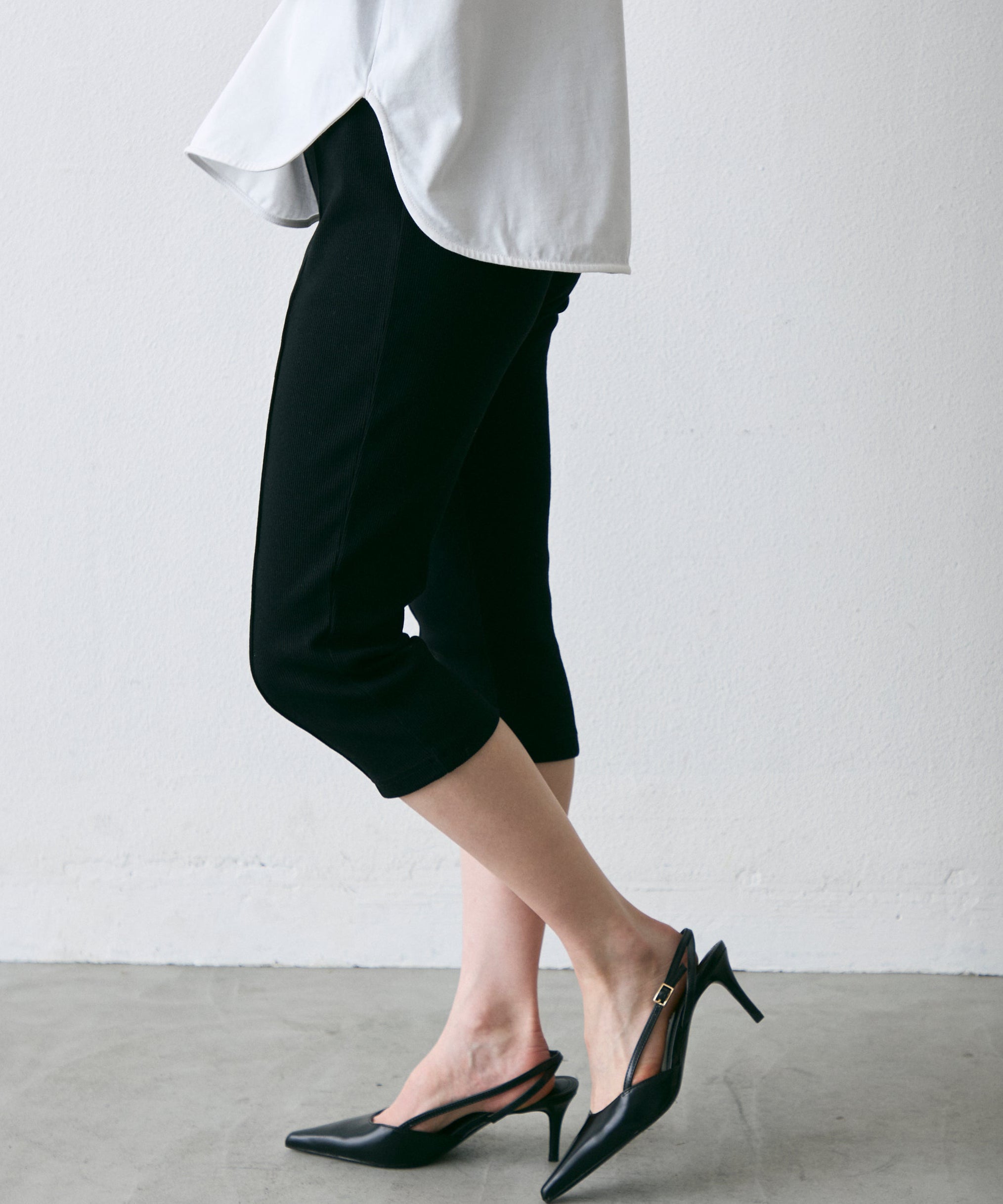 伸縮性のあるリブ素材を使用した、快適な履き心地のサイクルパンツ。身体にやさしくフィットし、動きやすさとすっきりしたシルエットを両立しました。ウエストはゴム仕様でストレスフリー。