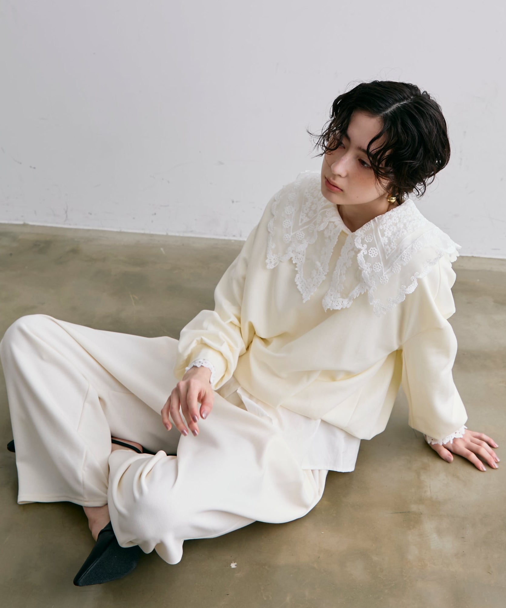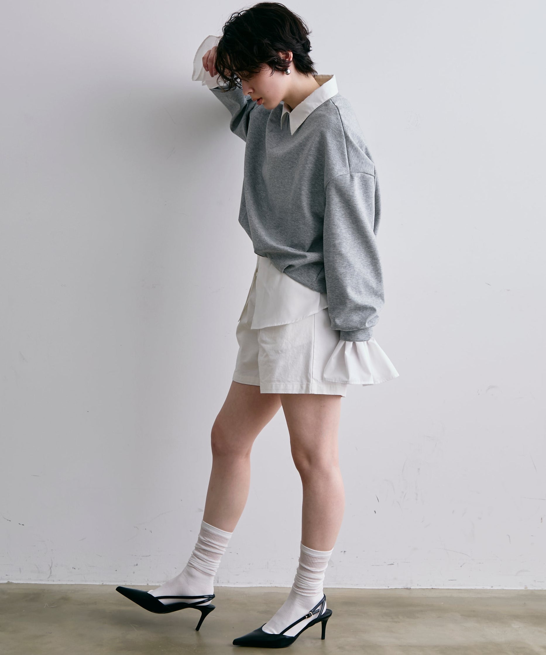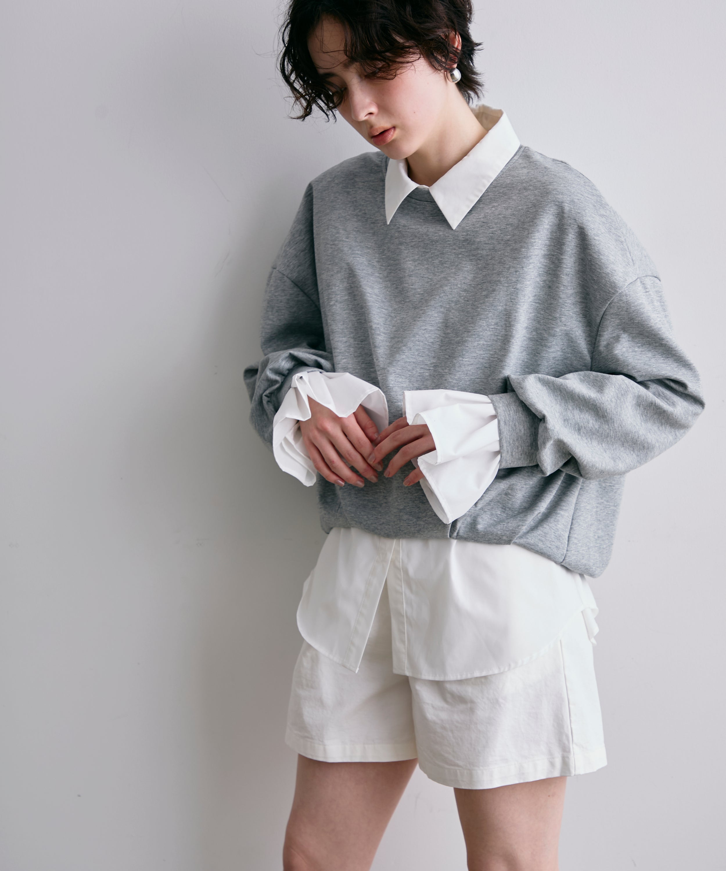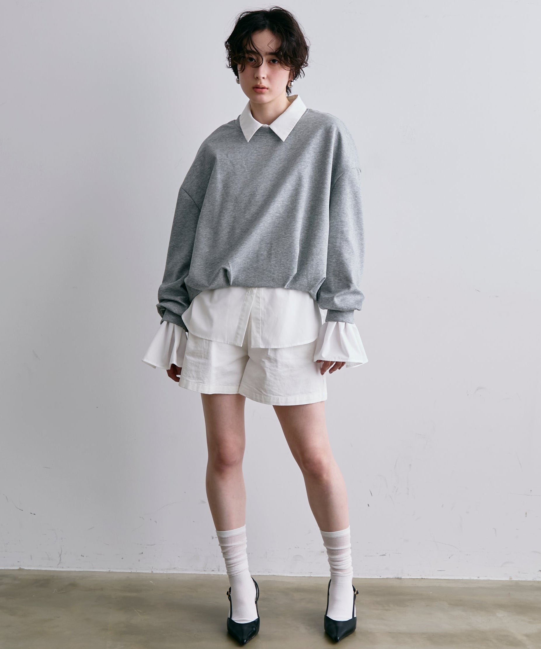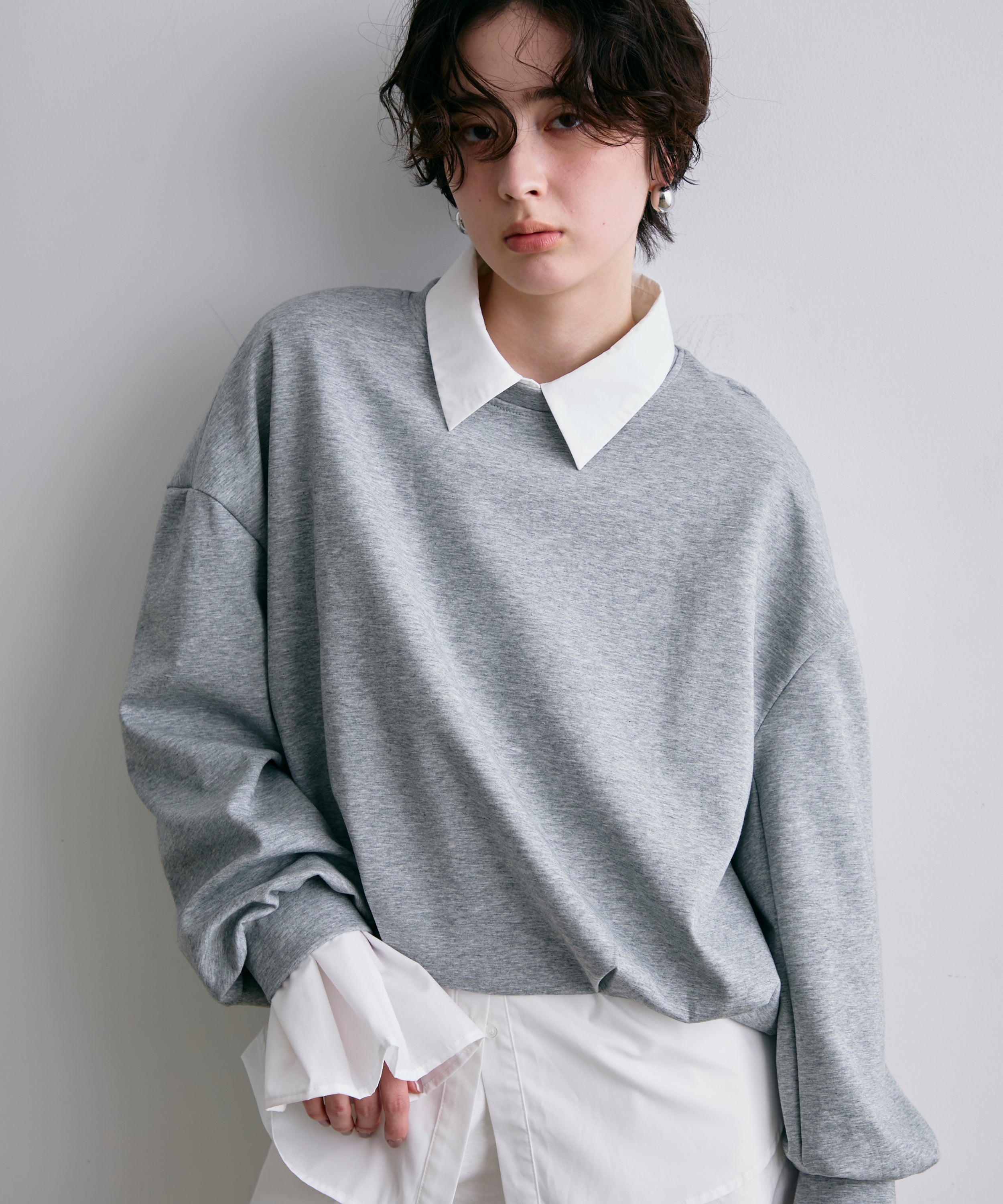 立体感のあるバルーンヘムが印象的な、ダンボールニット素材のプルオーバー。