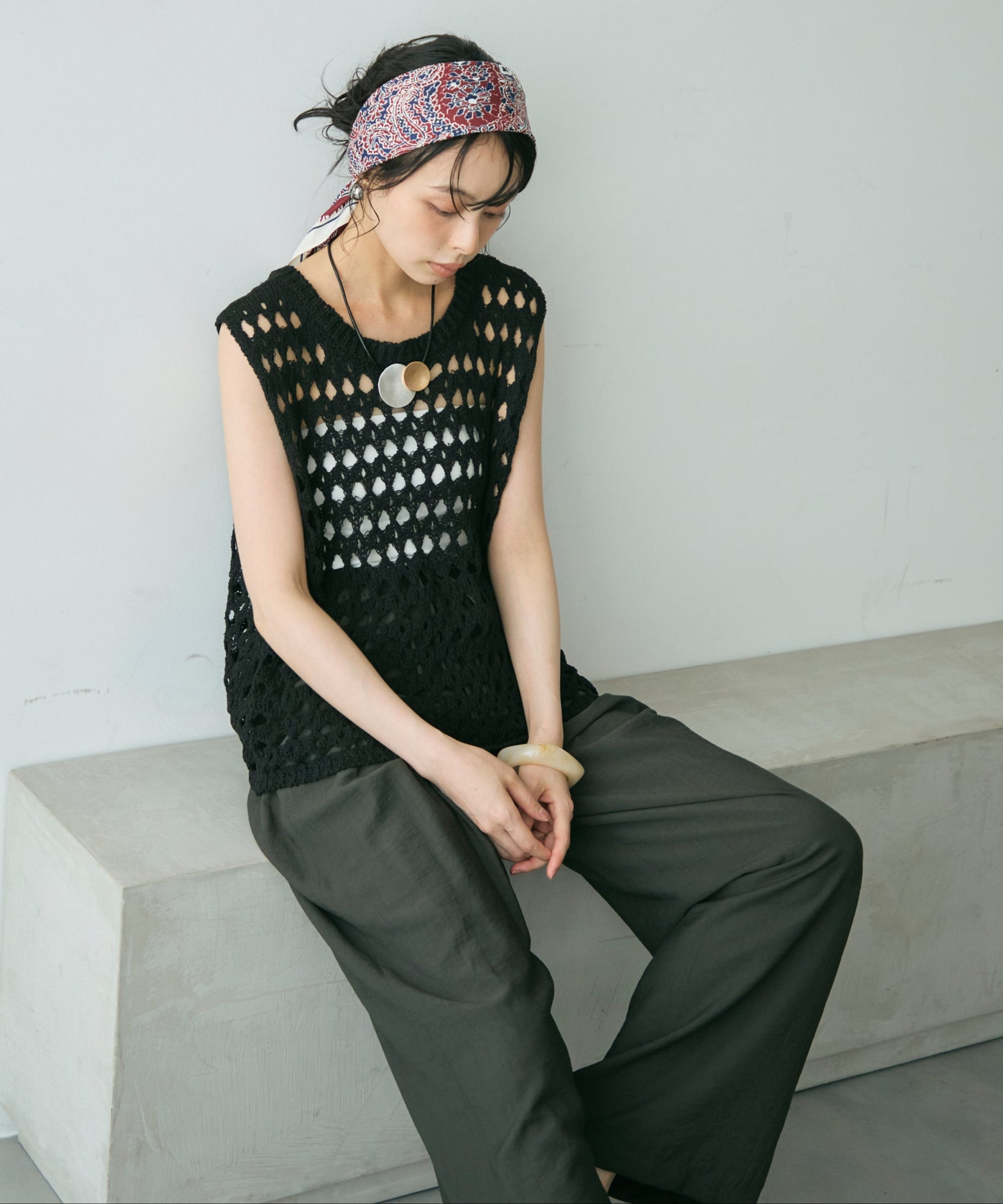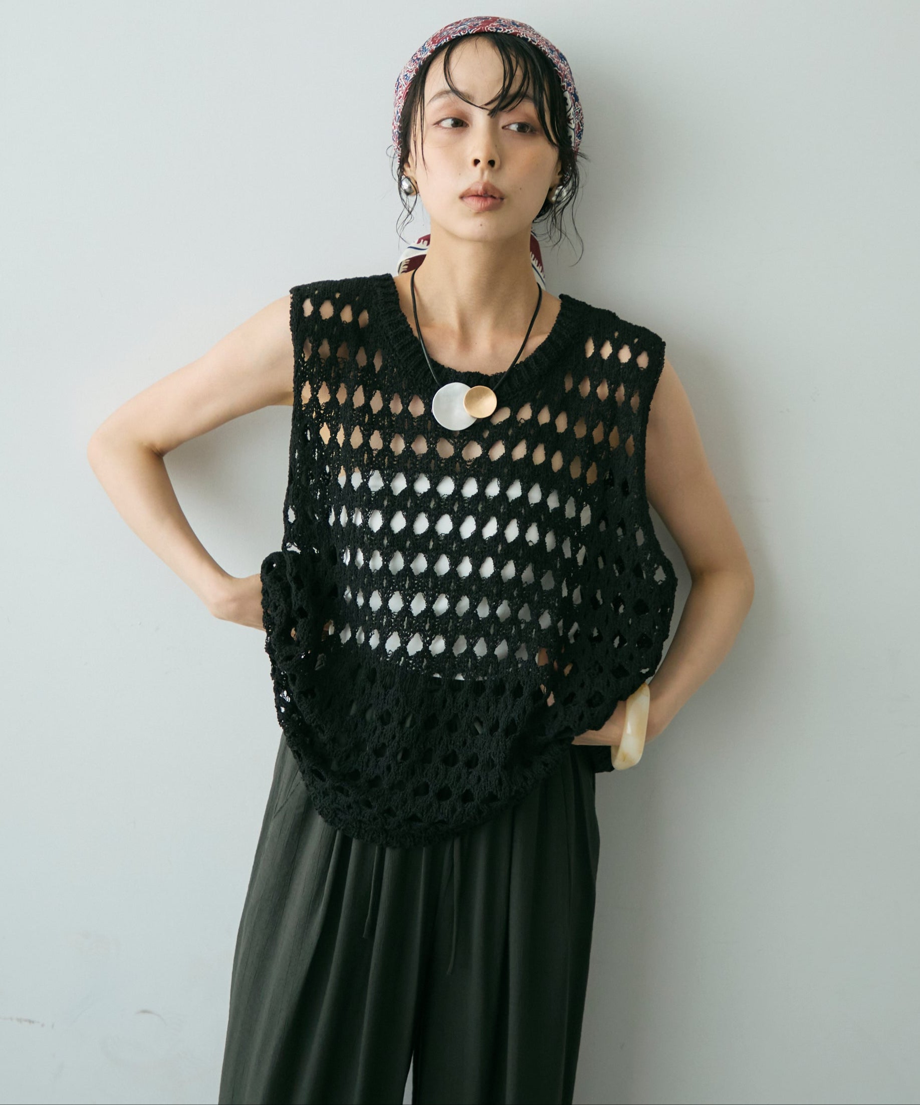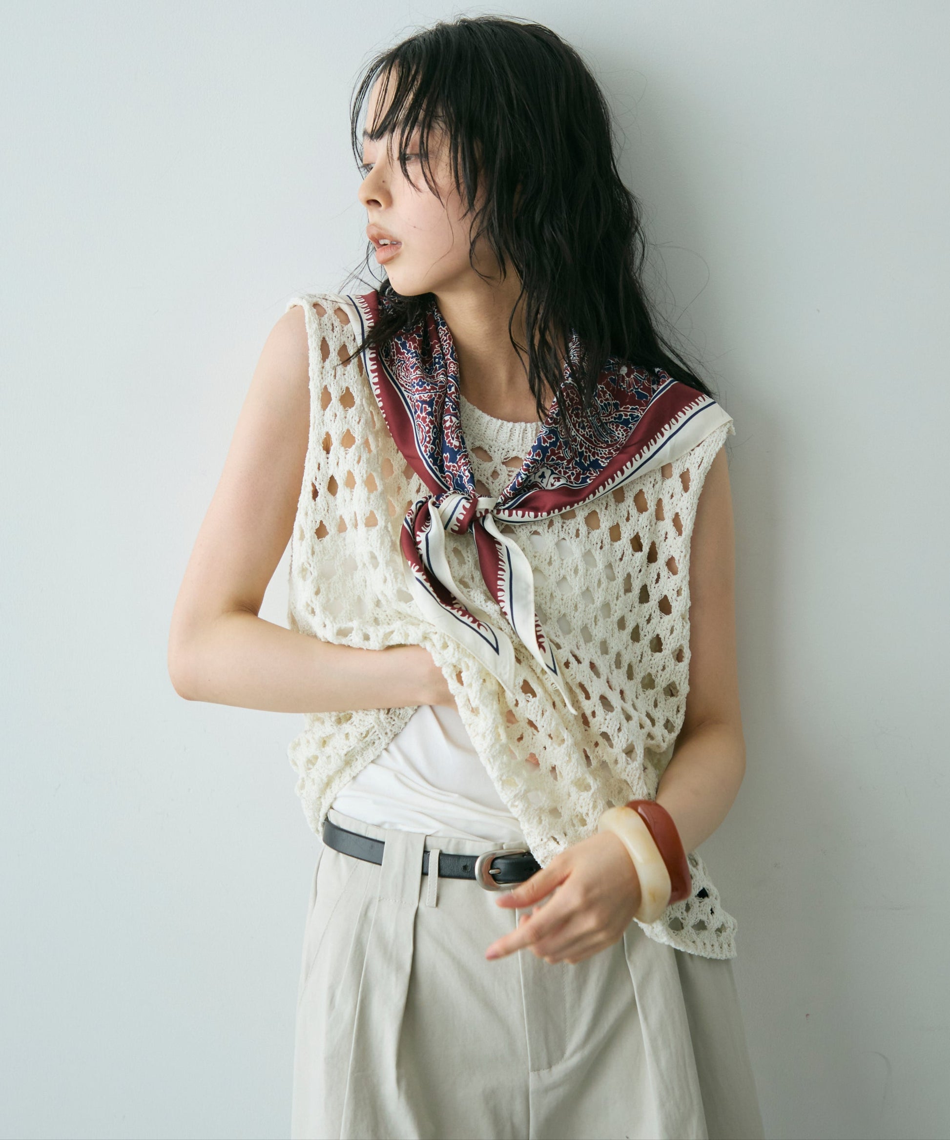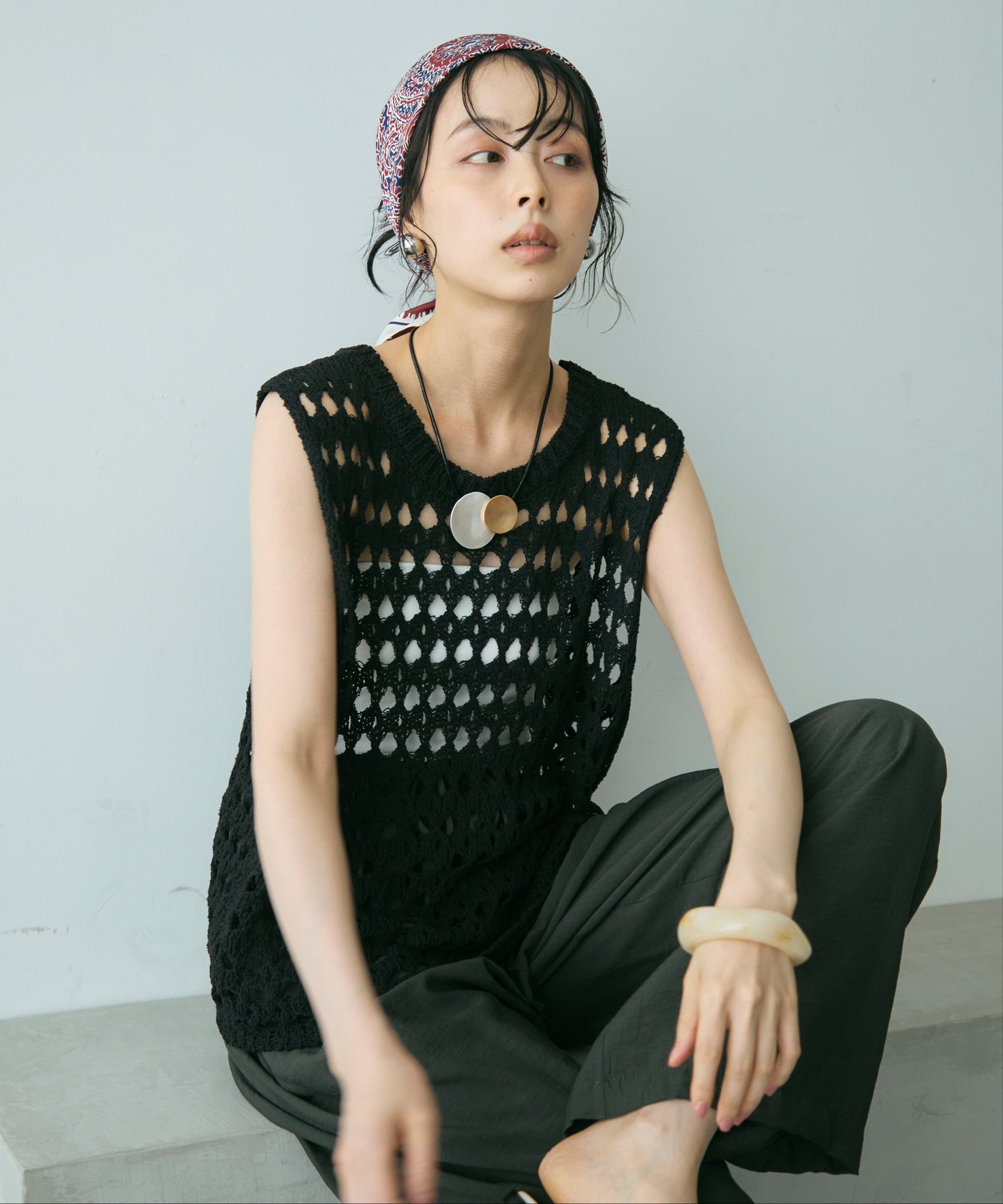ノースリーブで涼しげな印象で着用いただくのはもちろんのこと、TシャツとレイヤードしてもOK。