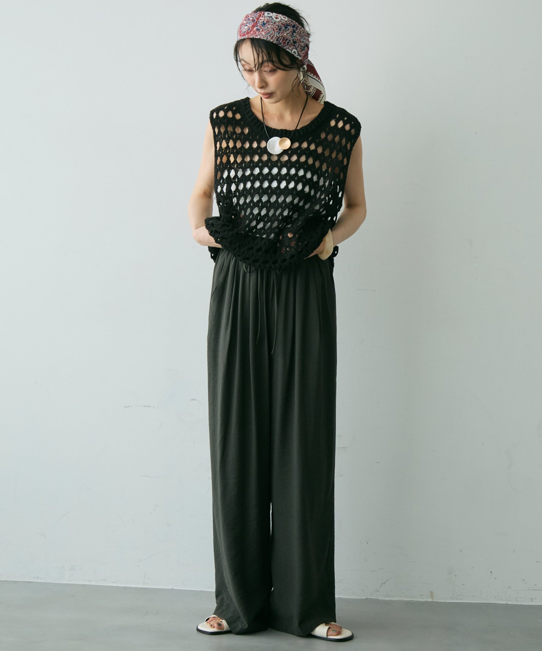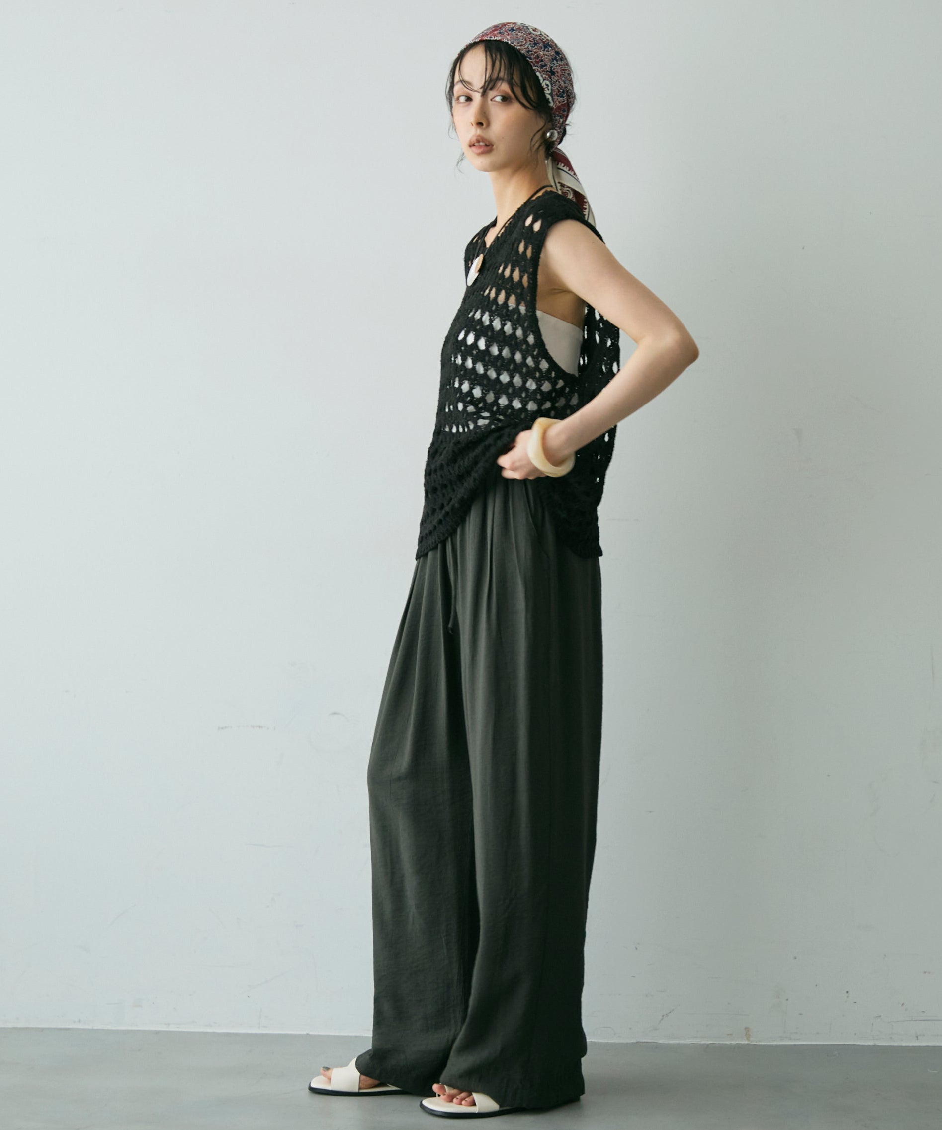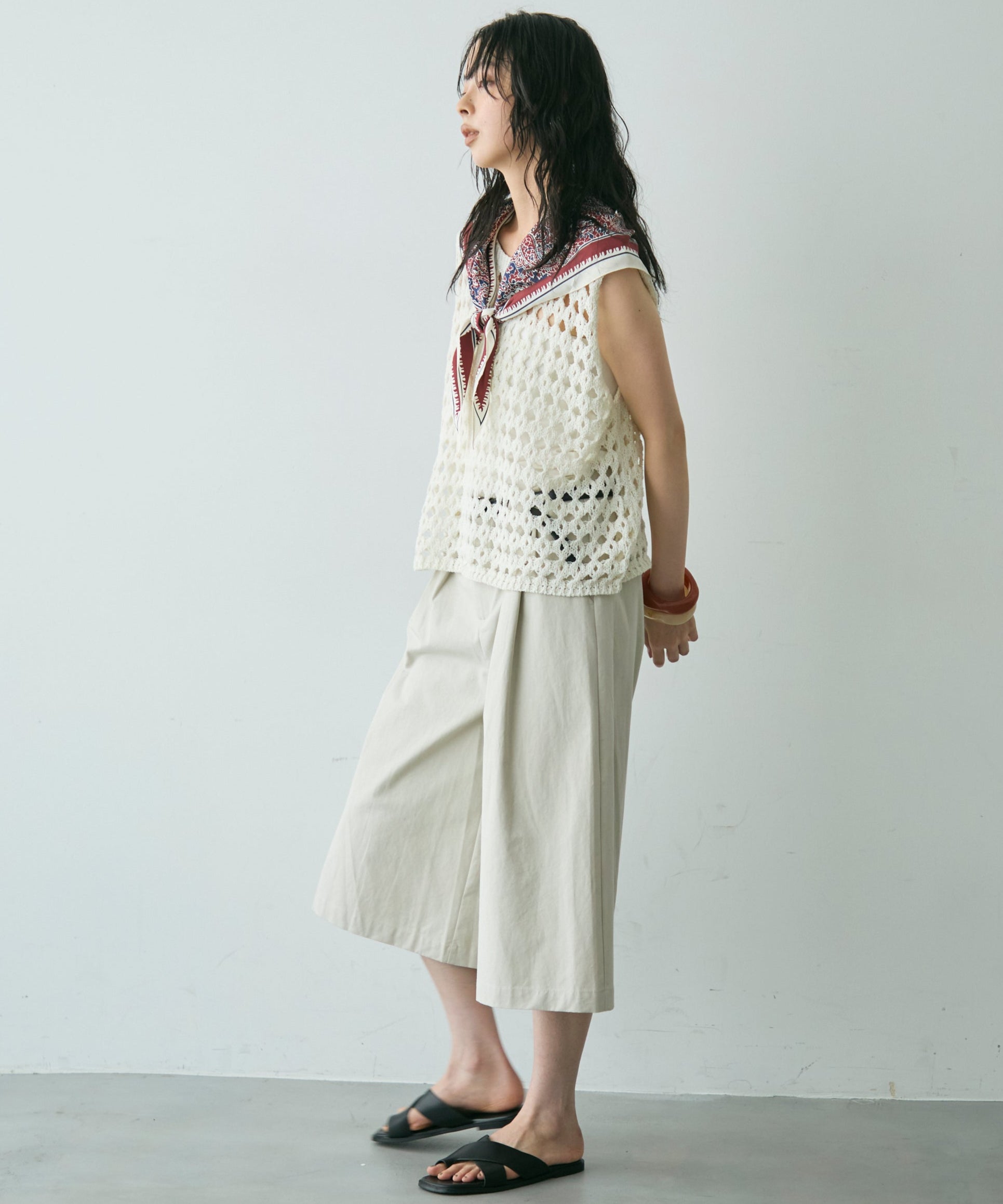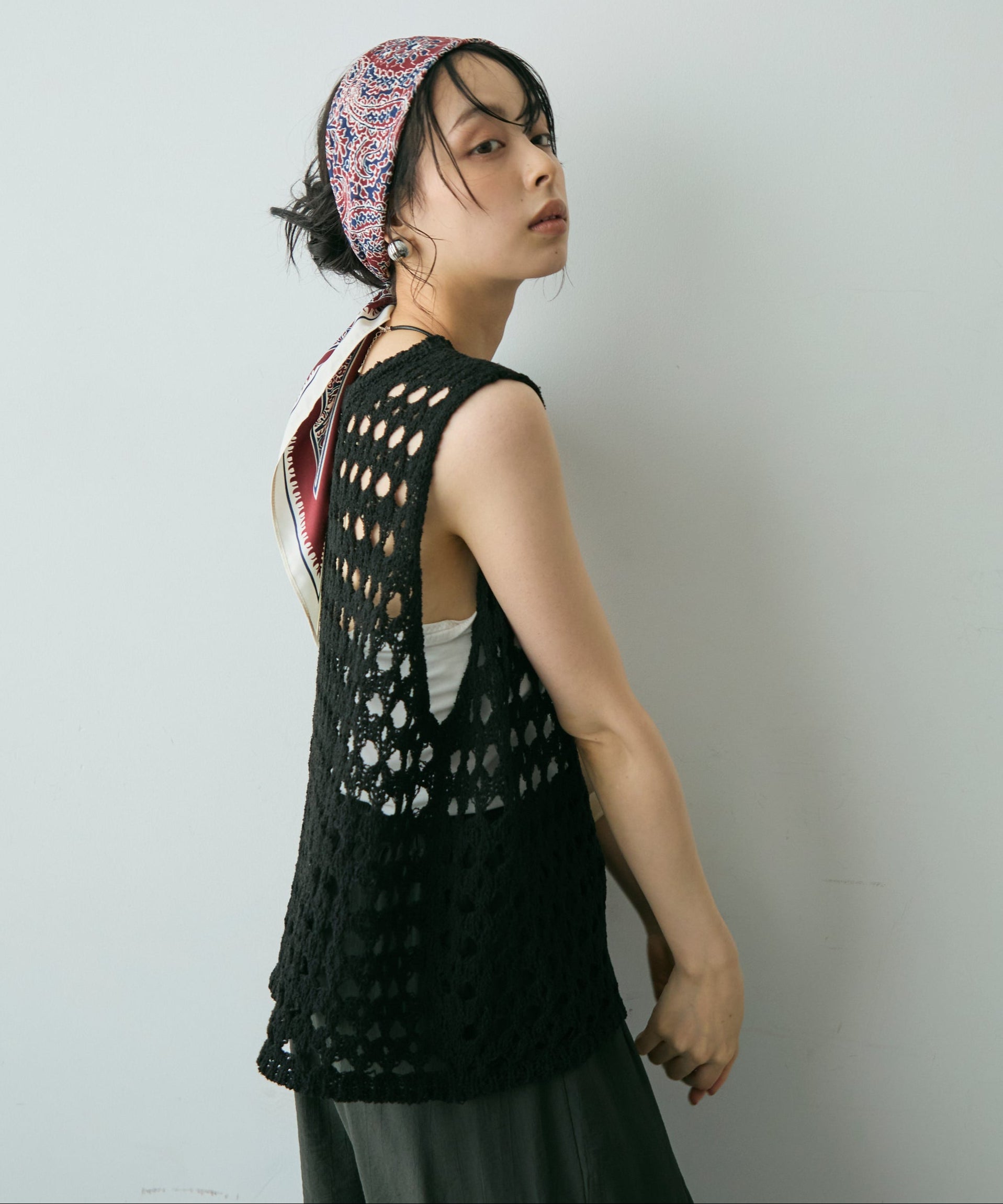 ノースリーブで涼しげな印象で着用いただくのはもちろんのこと、TシャツとレイヤードしてもOK。