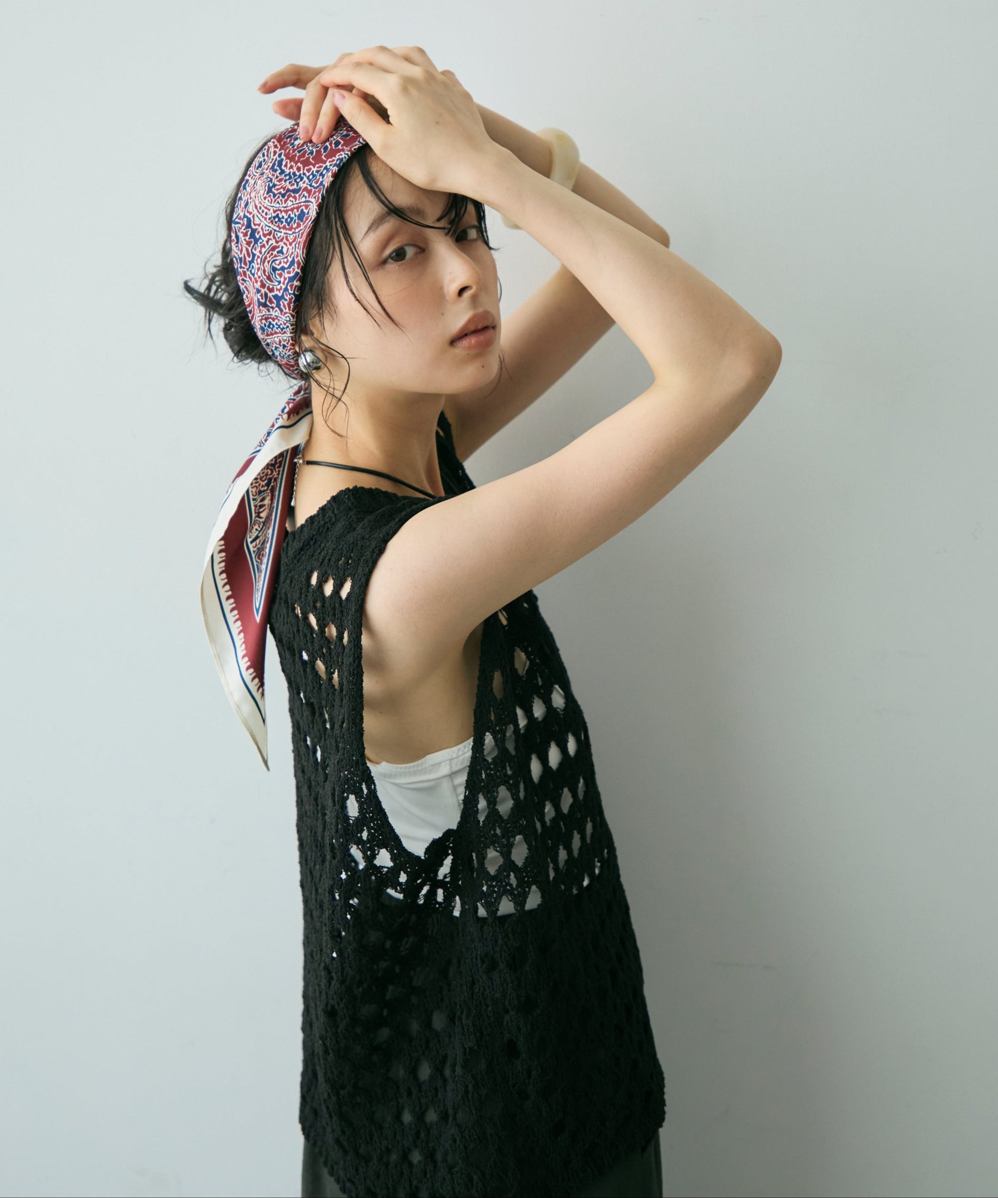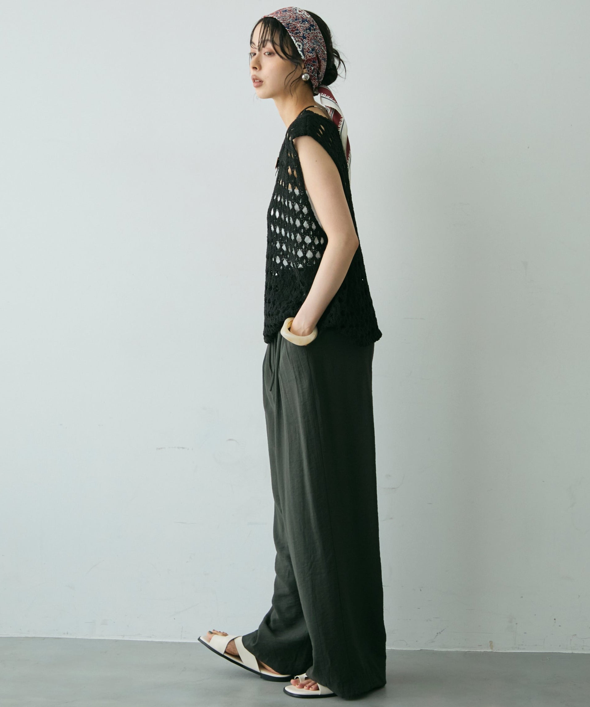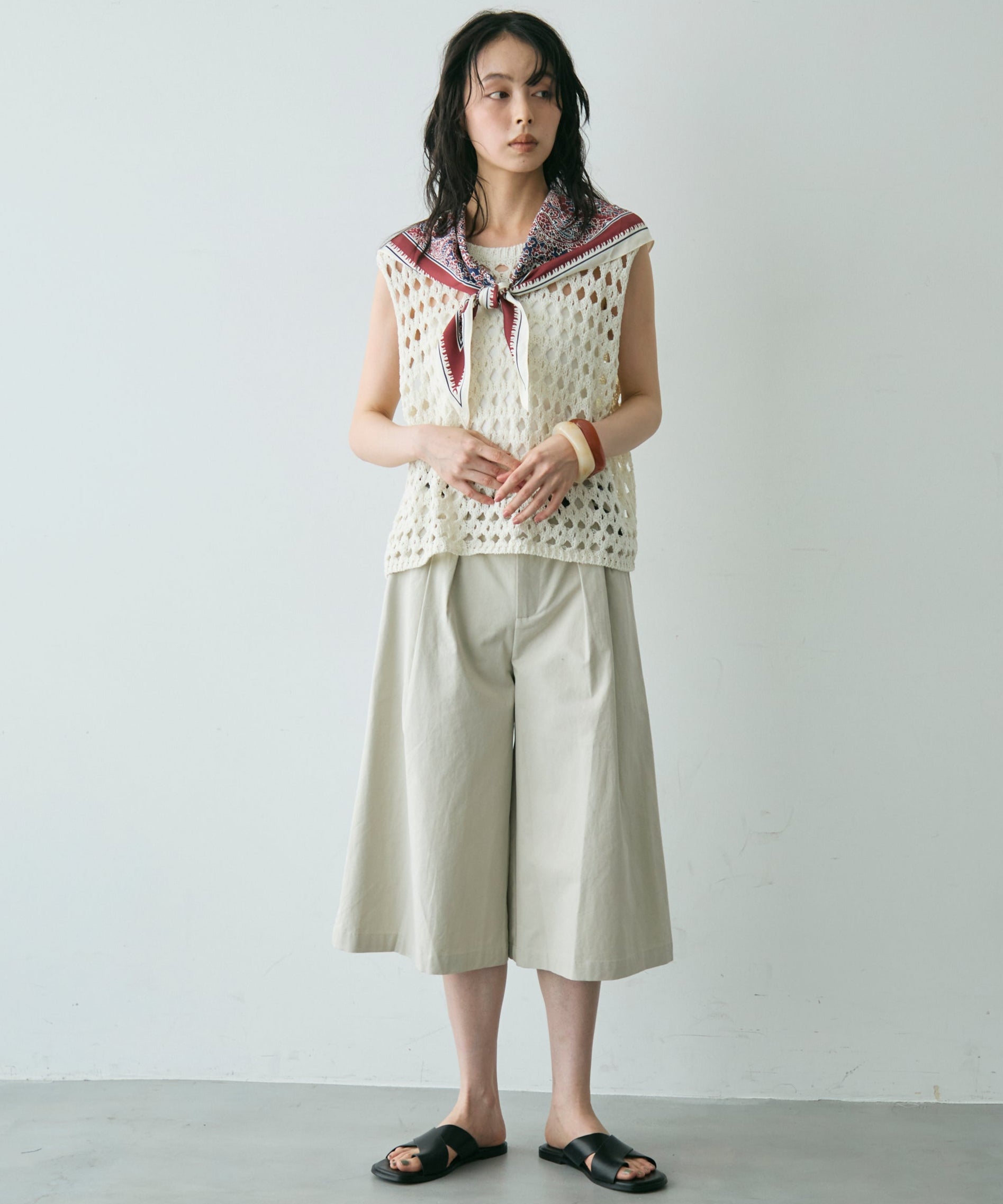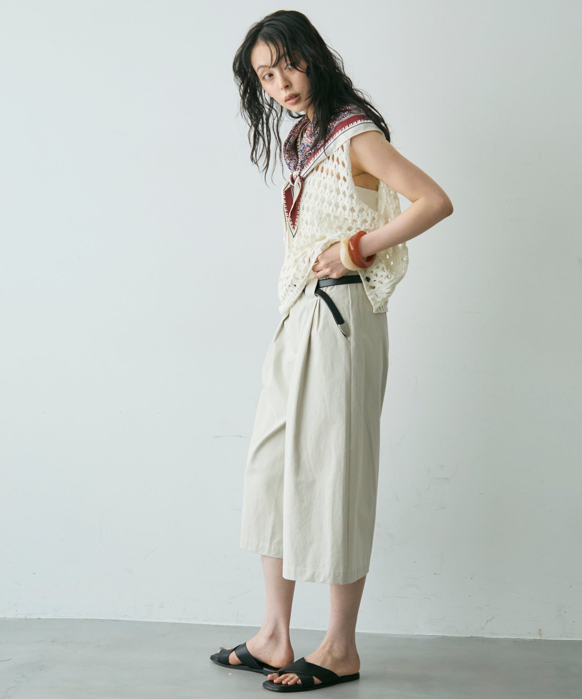 ノースリーブで涼しげな印象で着用いただくのはもちろんのこと、TシャツとレイヤードしてもOK。