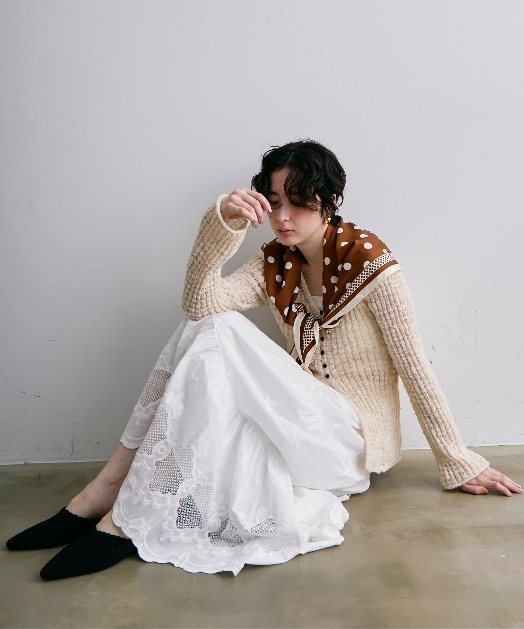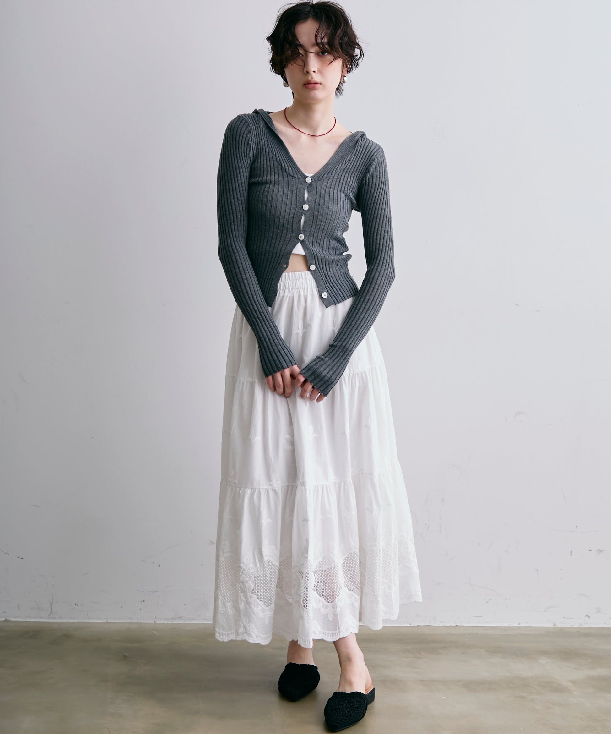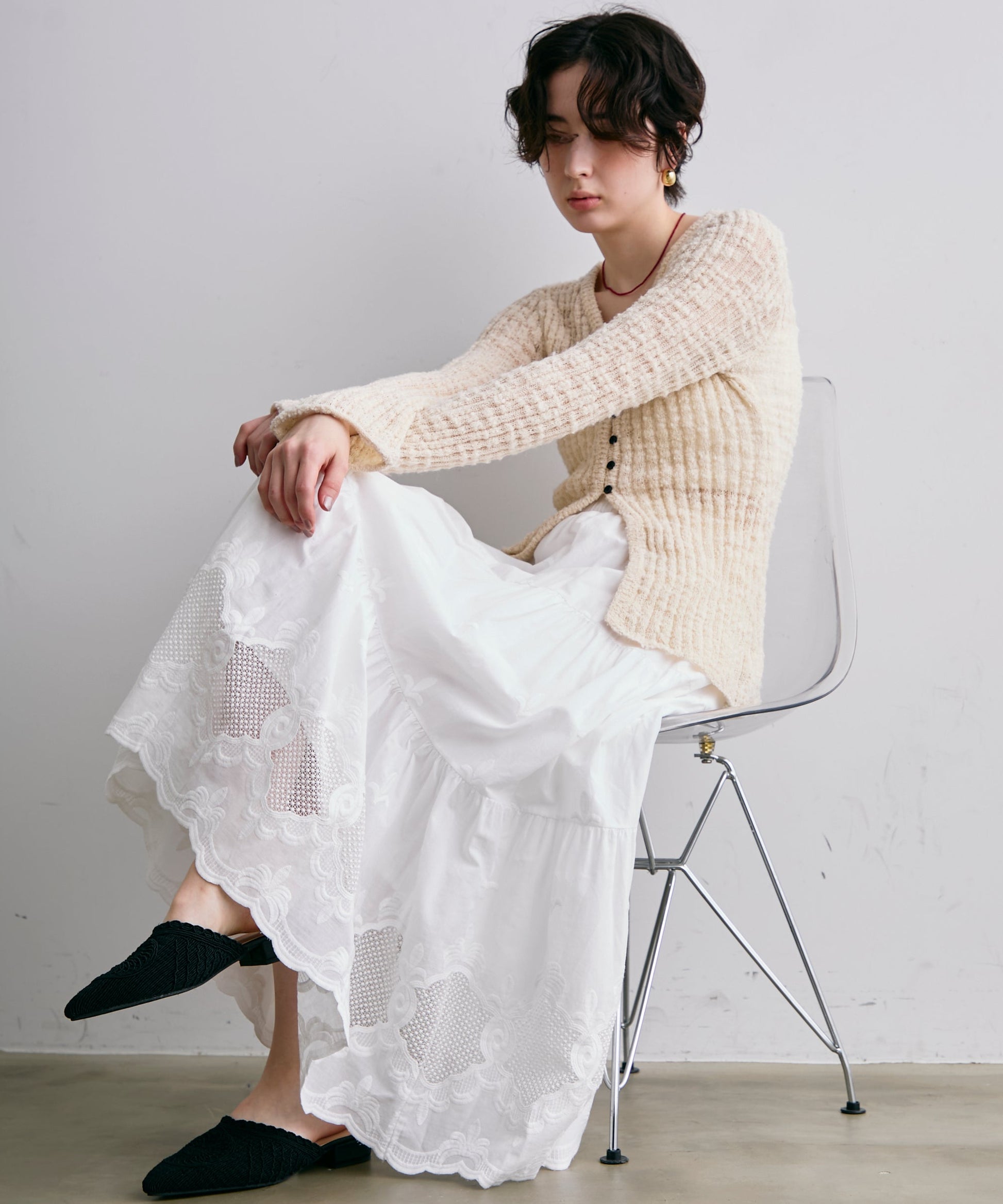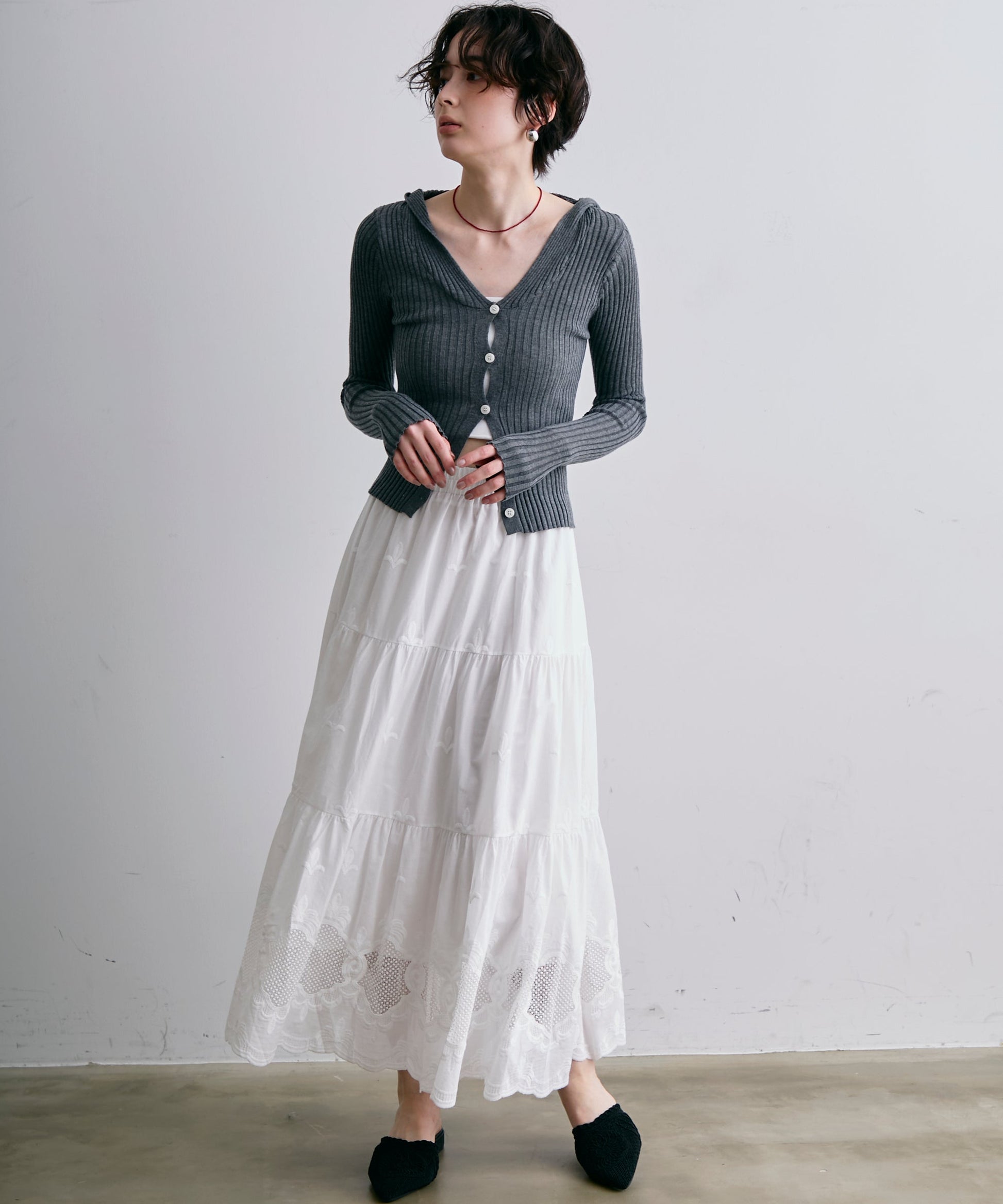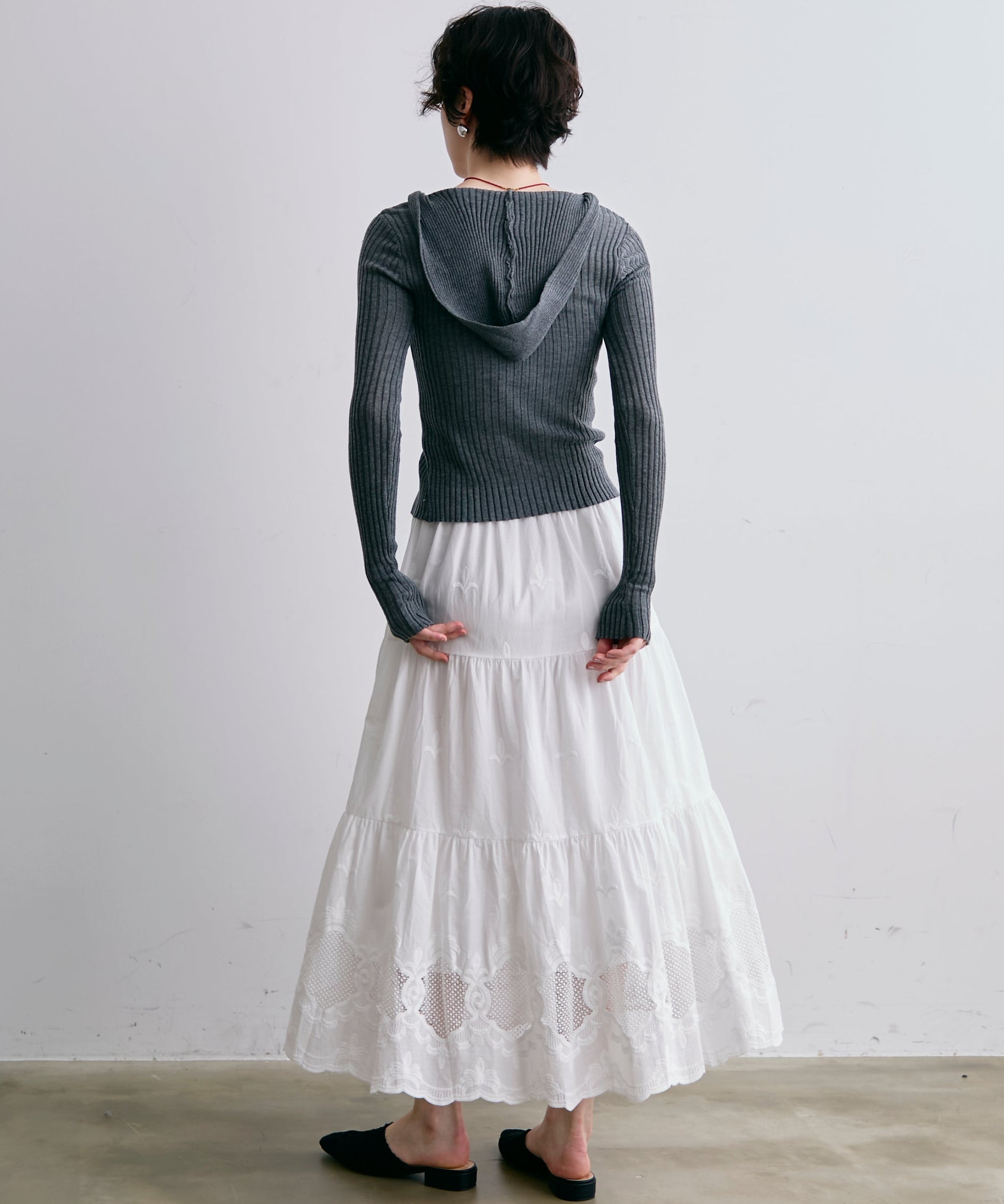繊細なレース刺繍を贅沢にあしらったティアードロングスカート。
