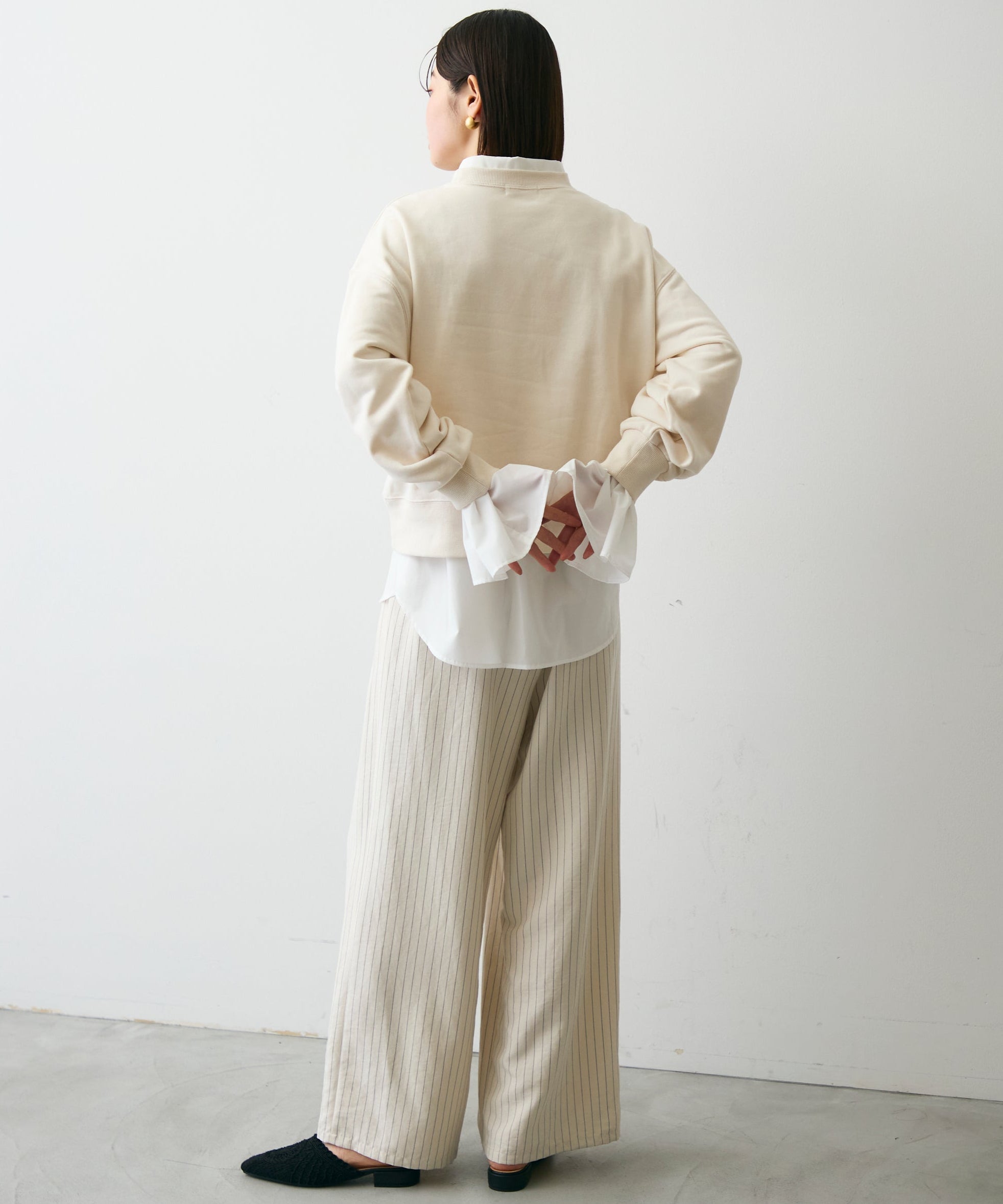 カジュアルな着心地ながらも、フロントに施された刺繍が華やかさをプラスしてくれるので、1枚でコーディネートの主役に。