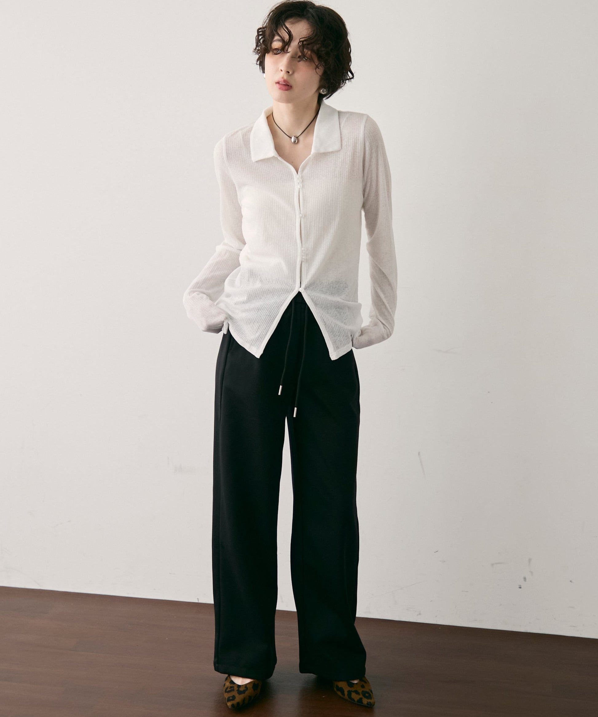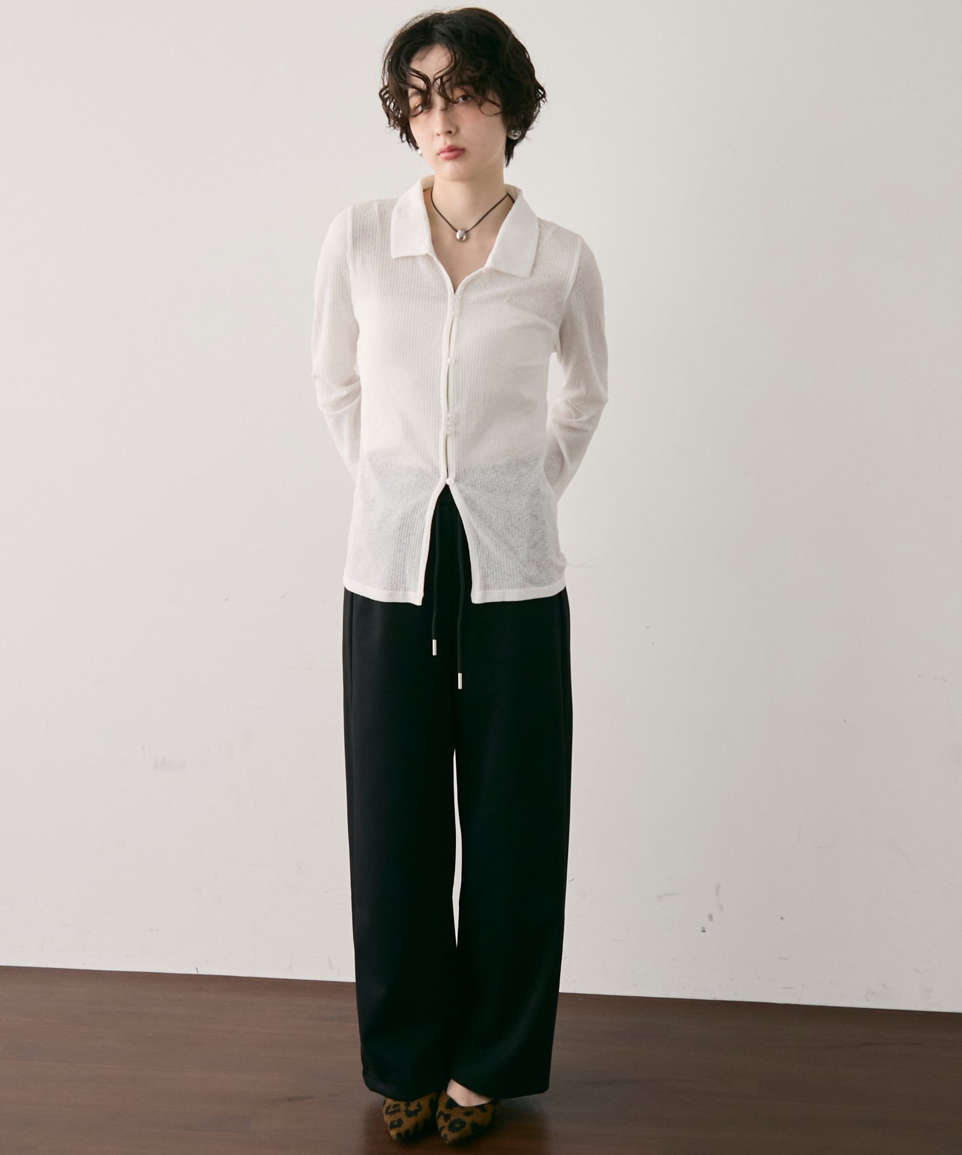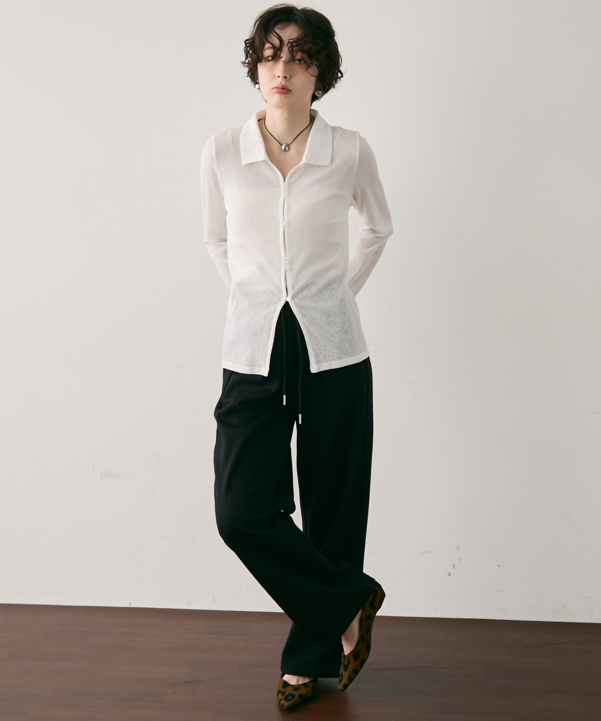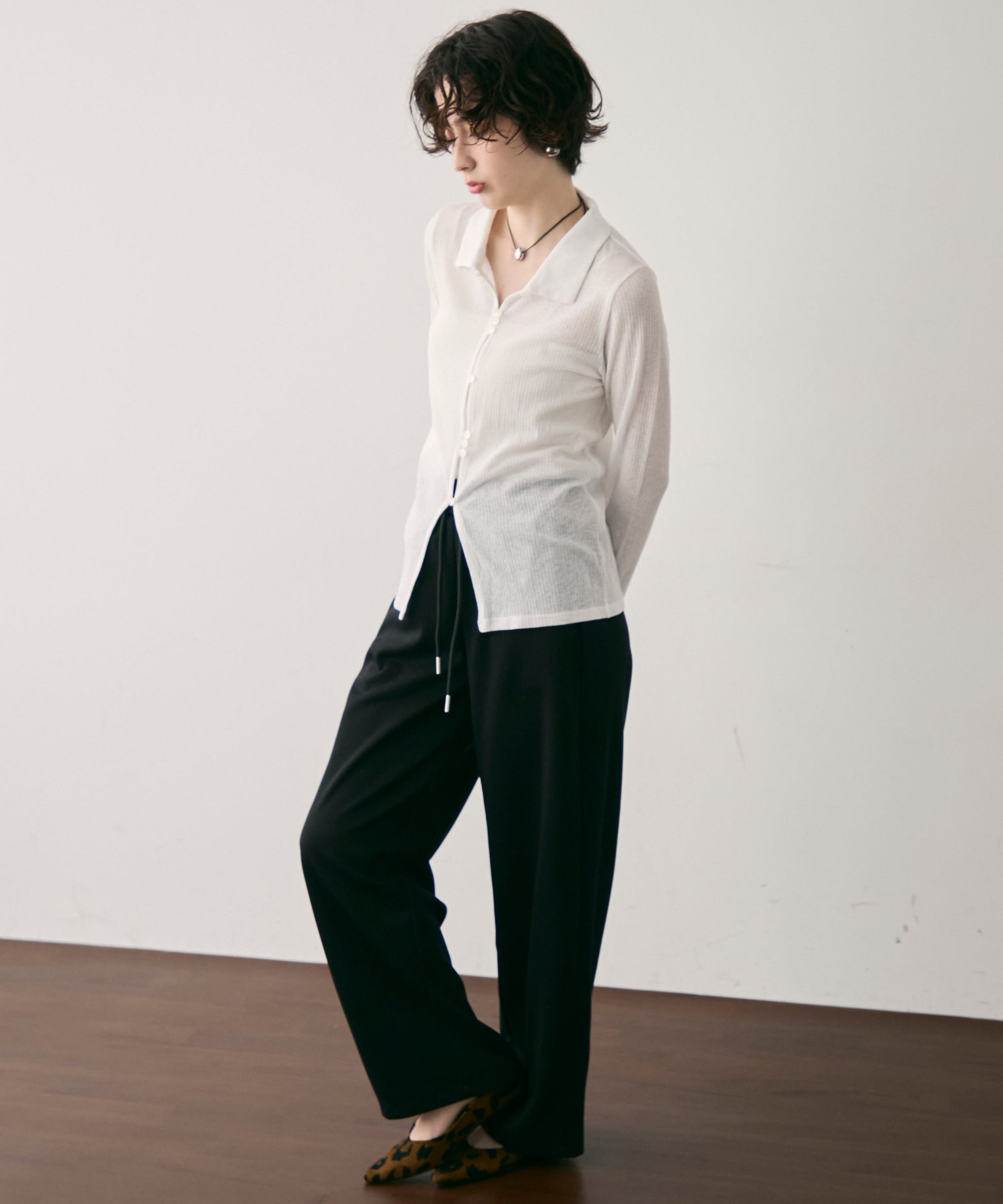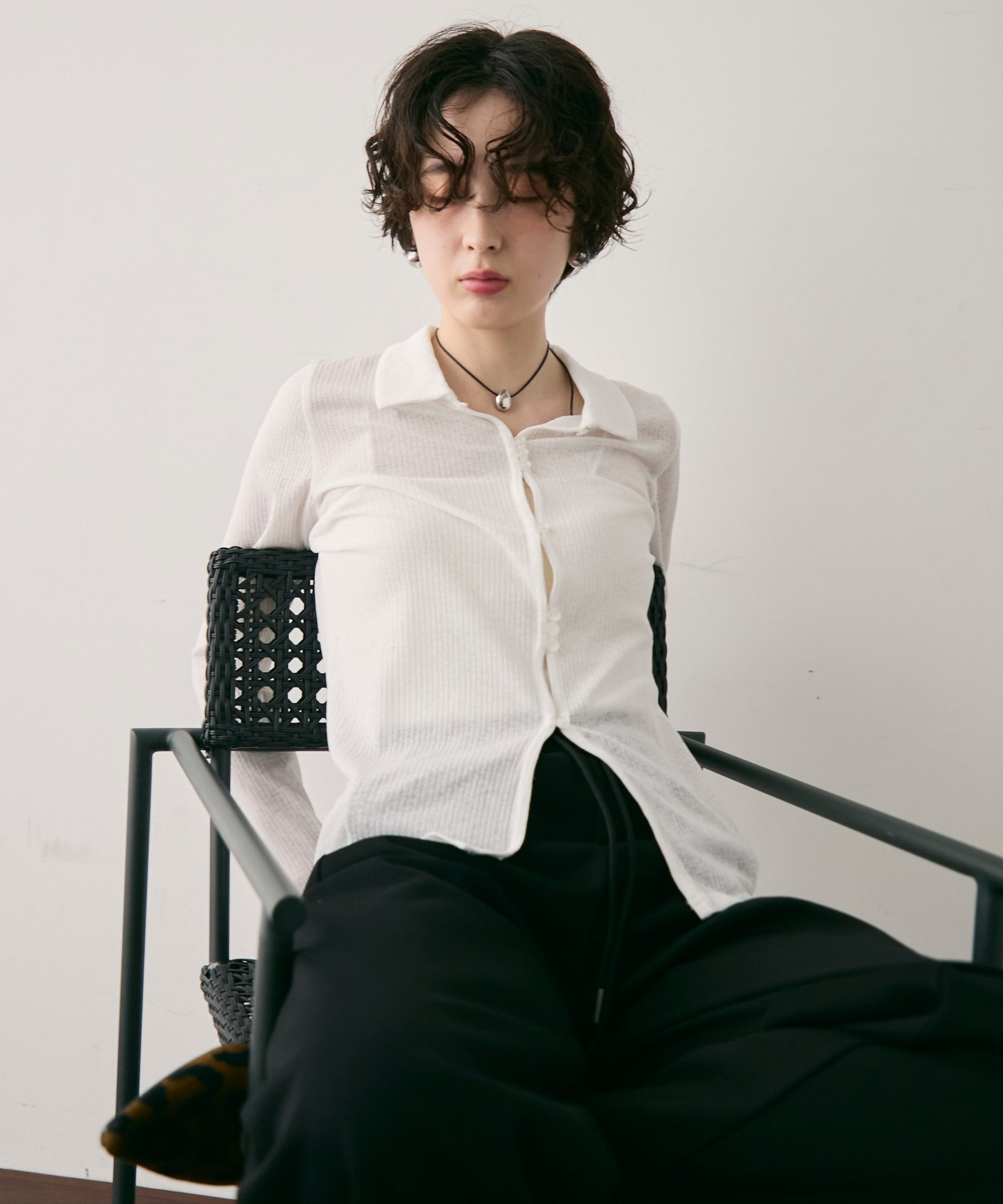 トレンド感のある透け感が女性らしさを演出し、インナー次第でさまざまなスタイリングが楽しめます。