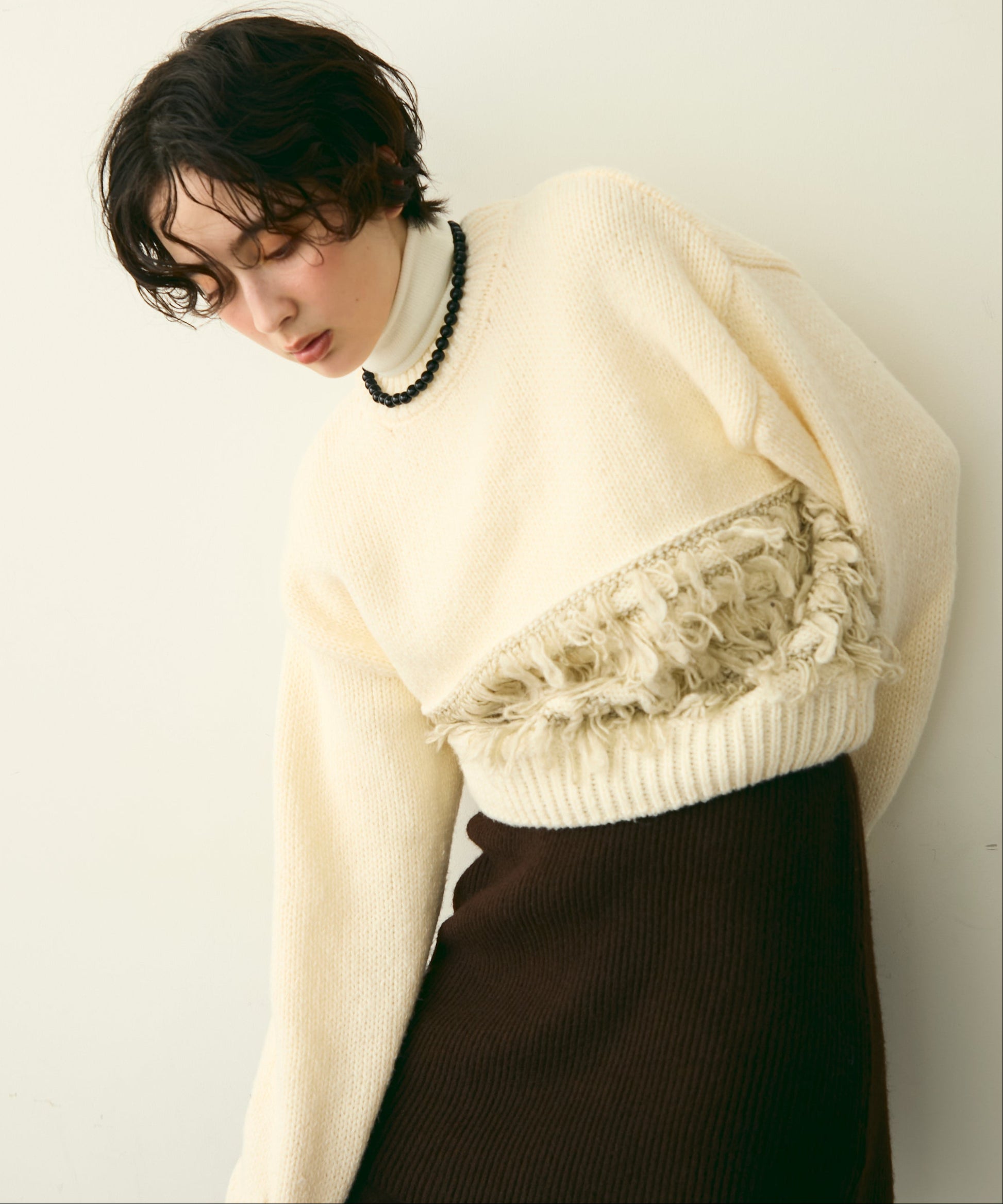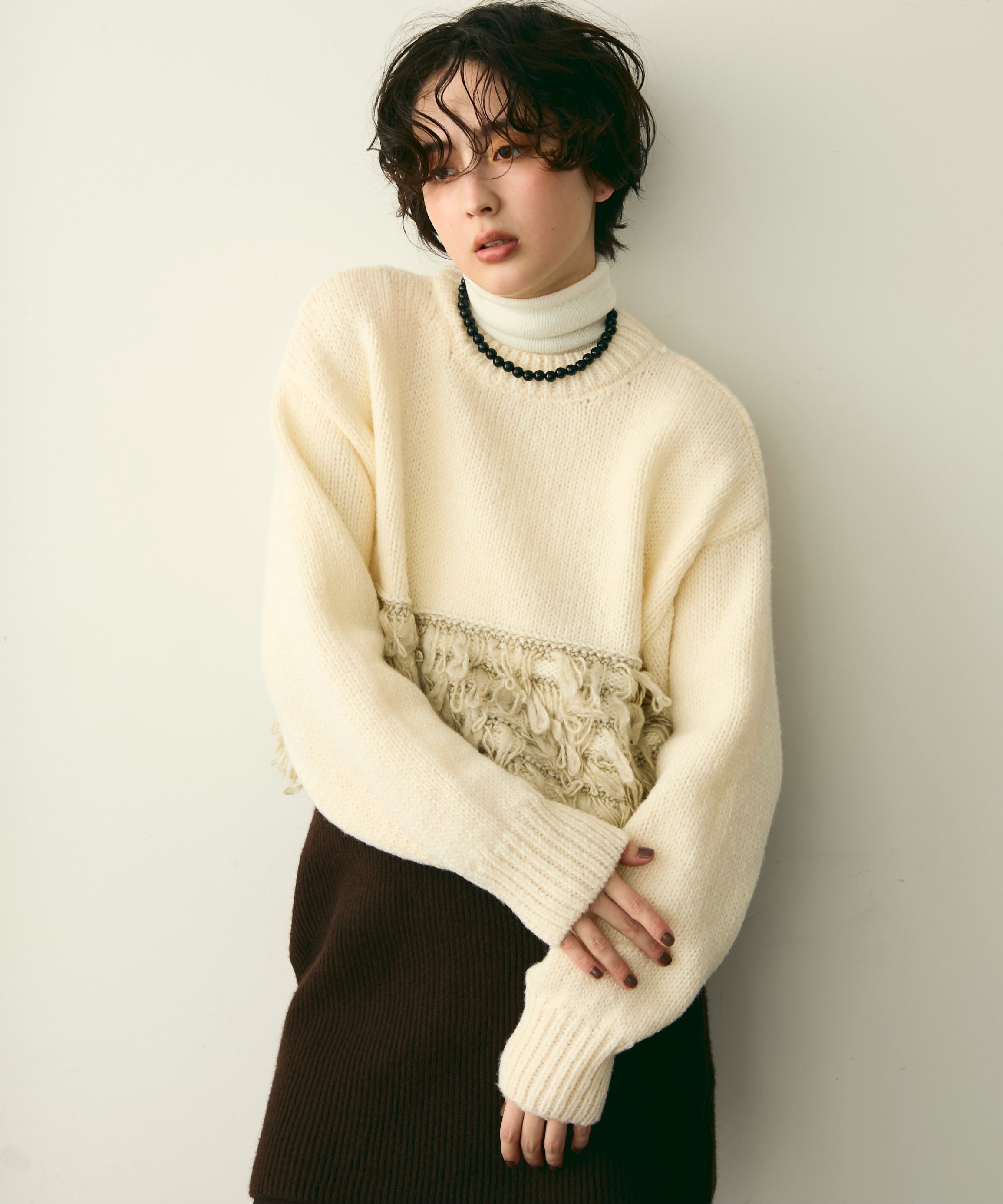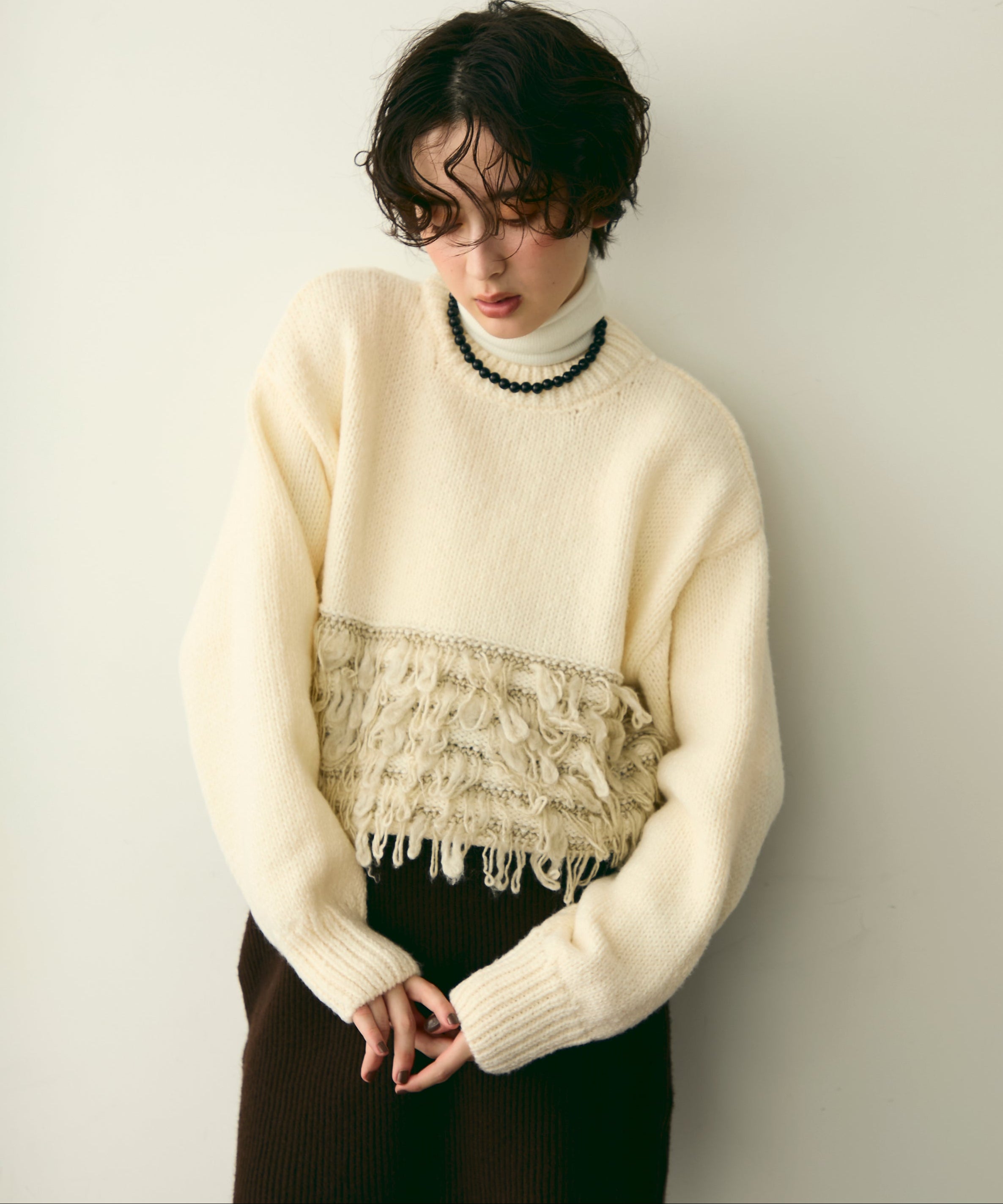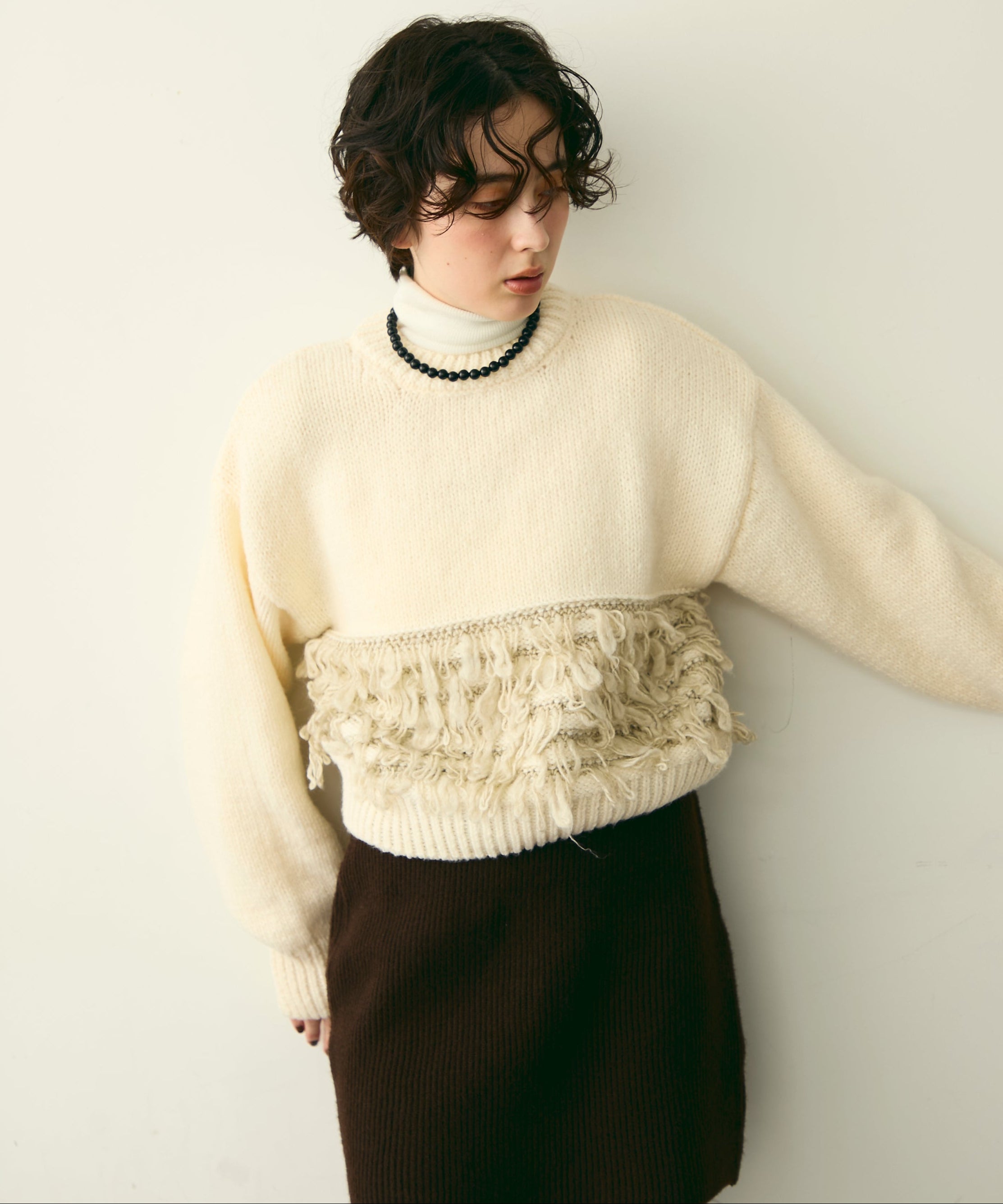 ふんわりとした質感と立体感のある表情が、シンプルながらも存在感のあるスタイルを演出します。