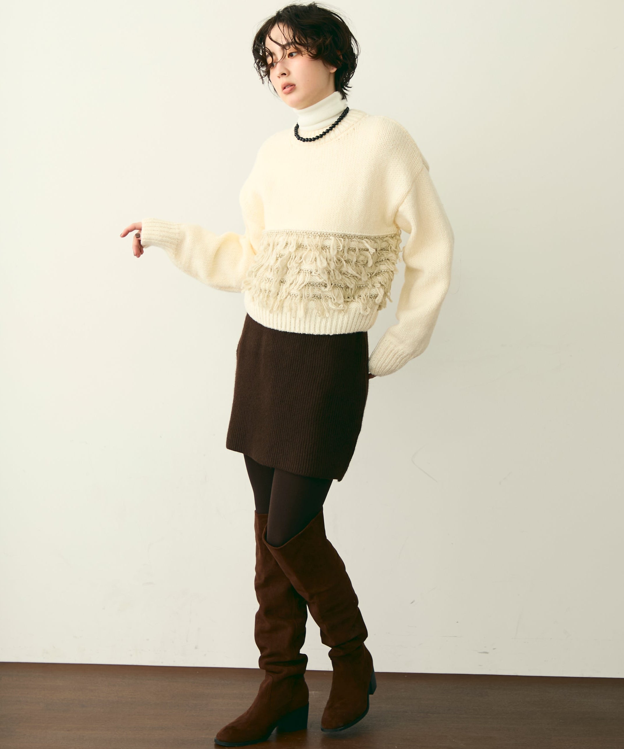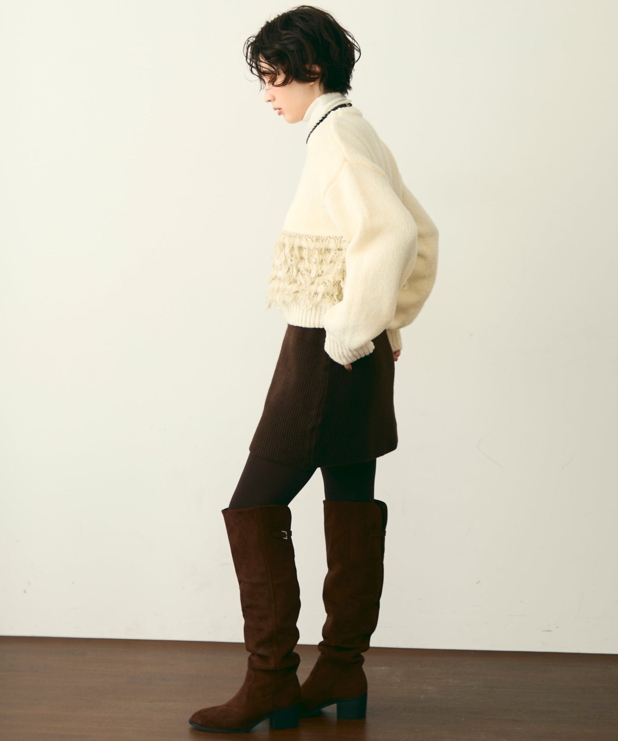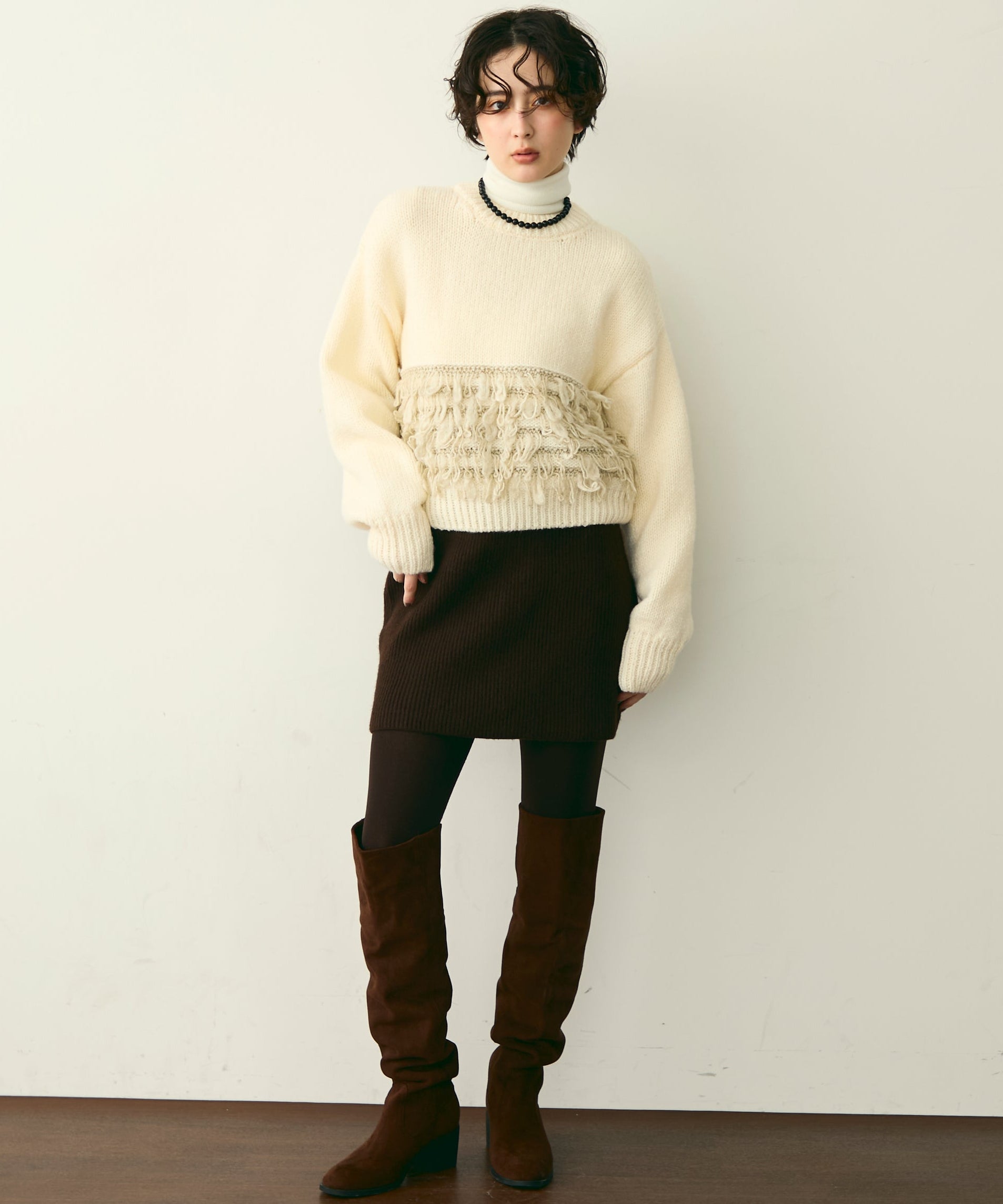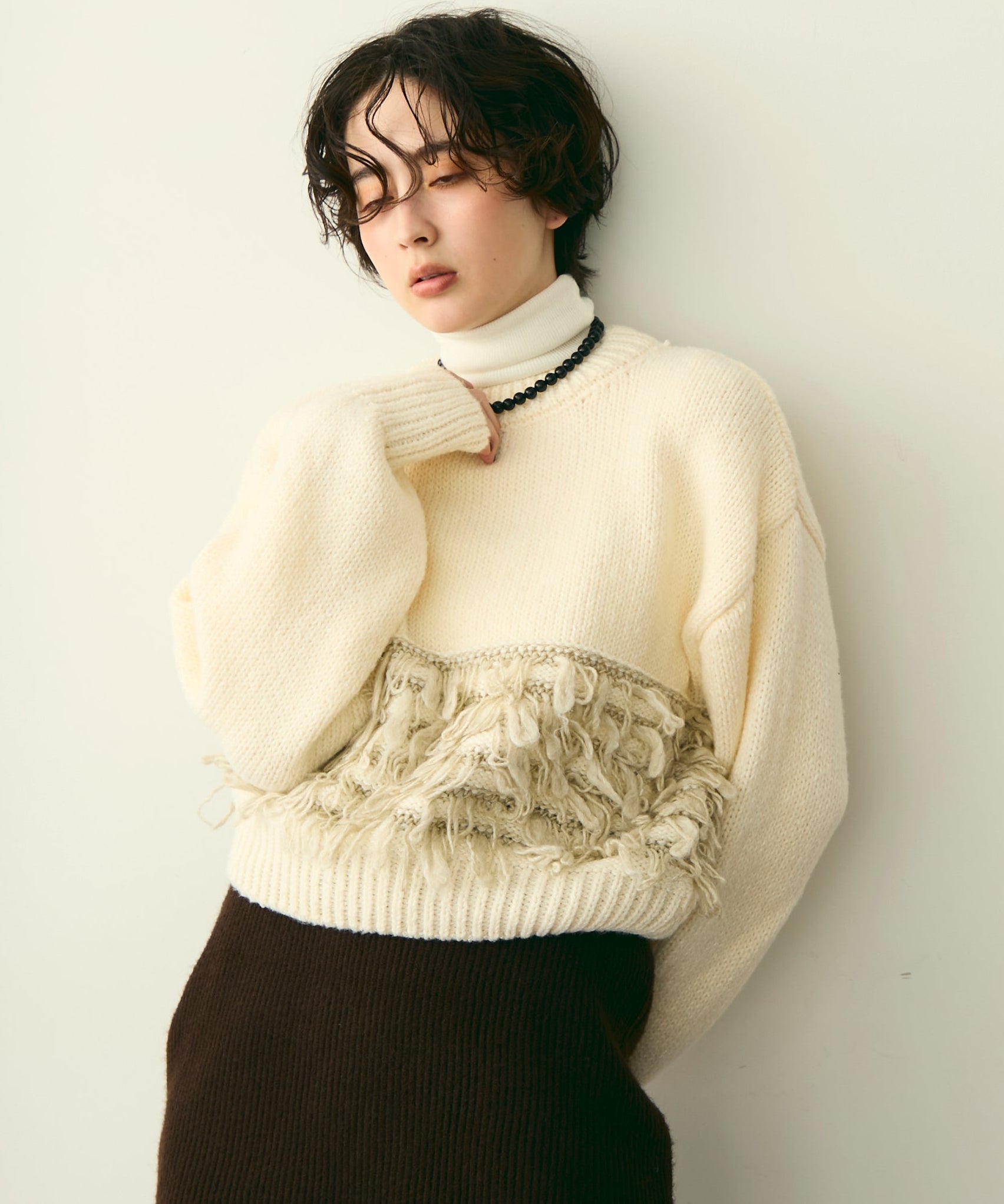 ふんわりとした質感と立体感のある表情が、シンプルながらも存在感のあるスタイルを演出します。