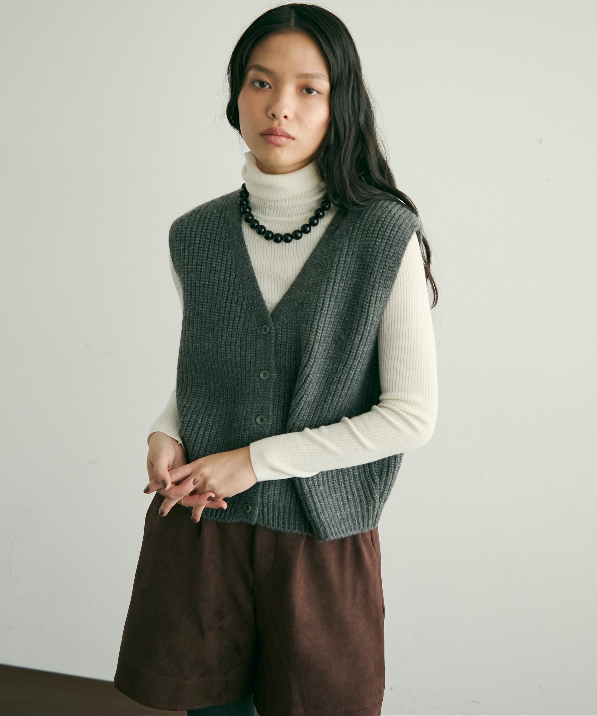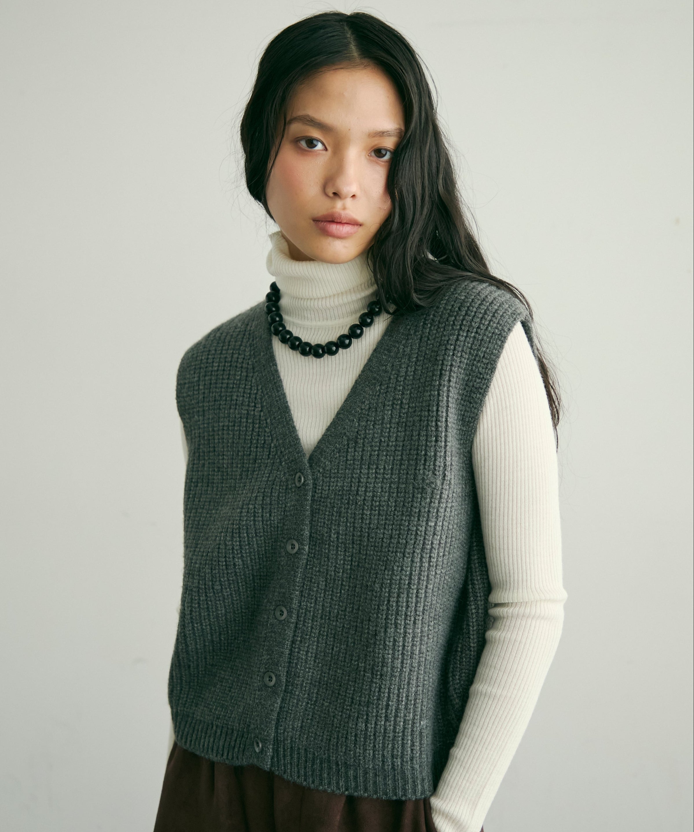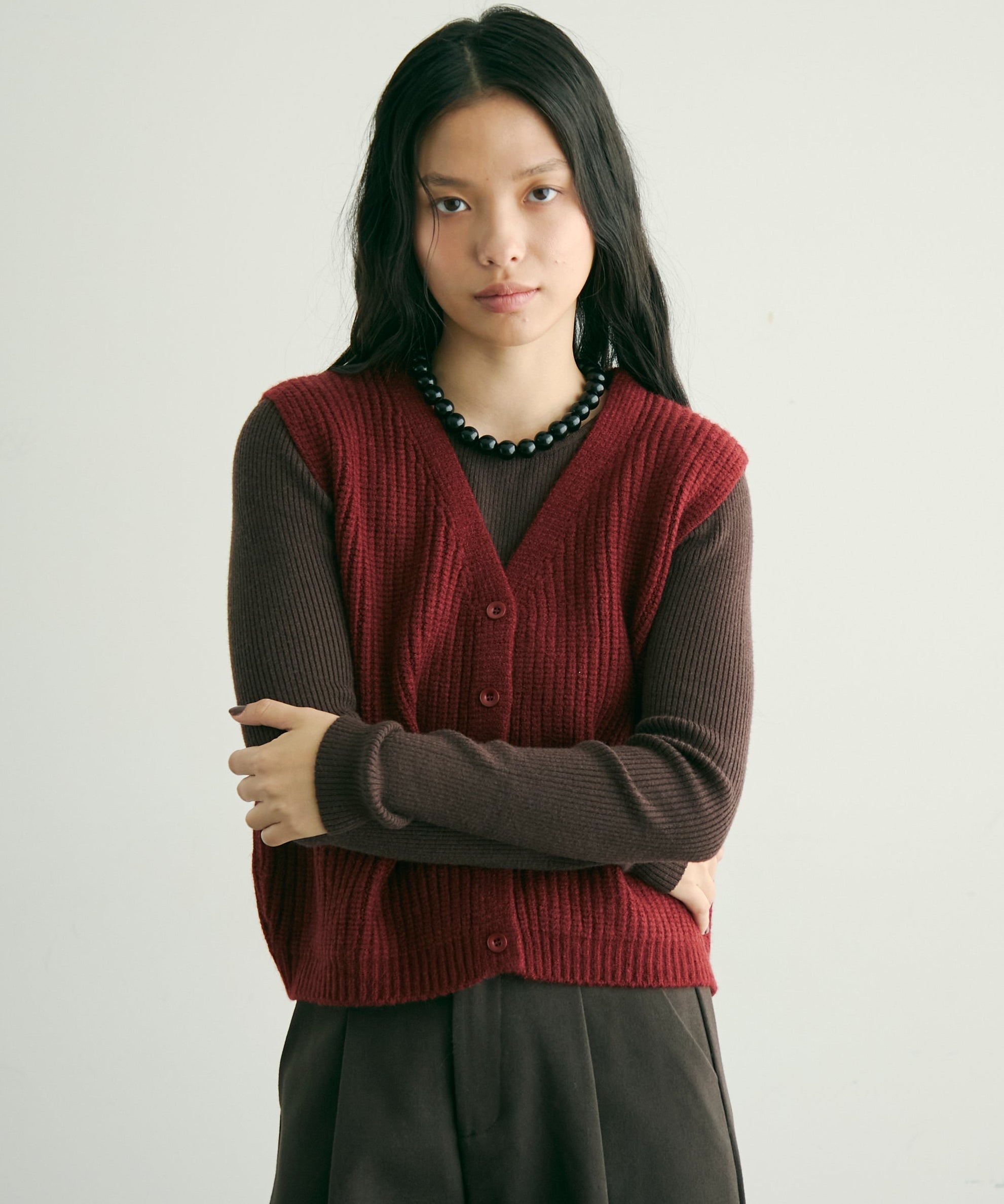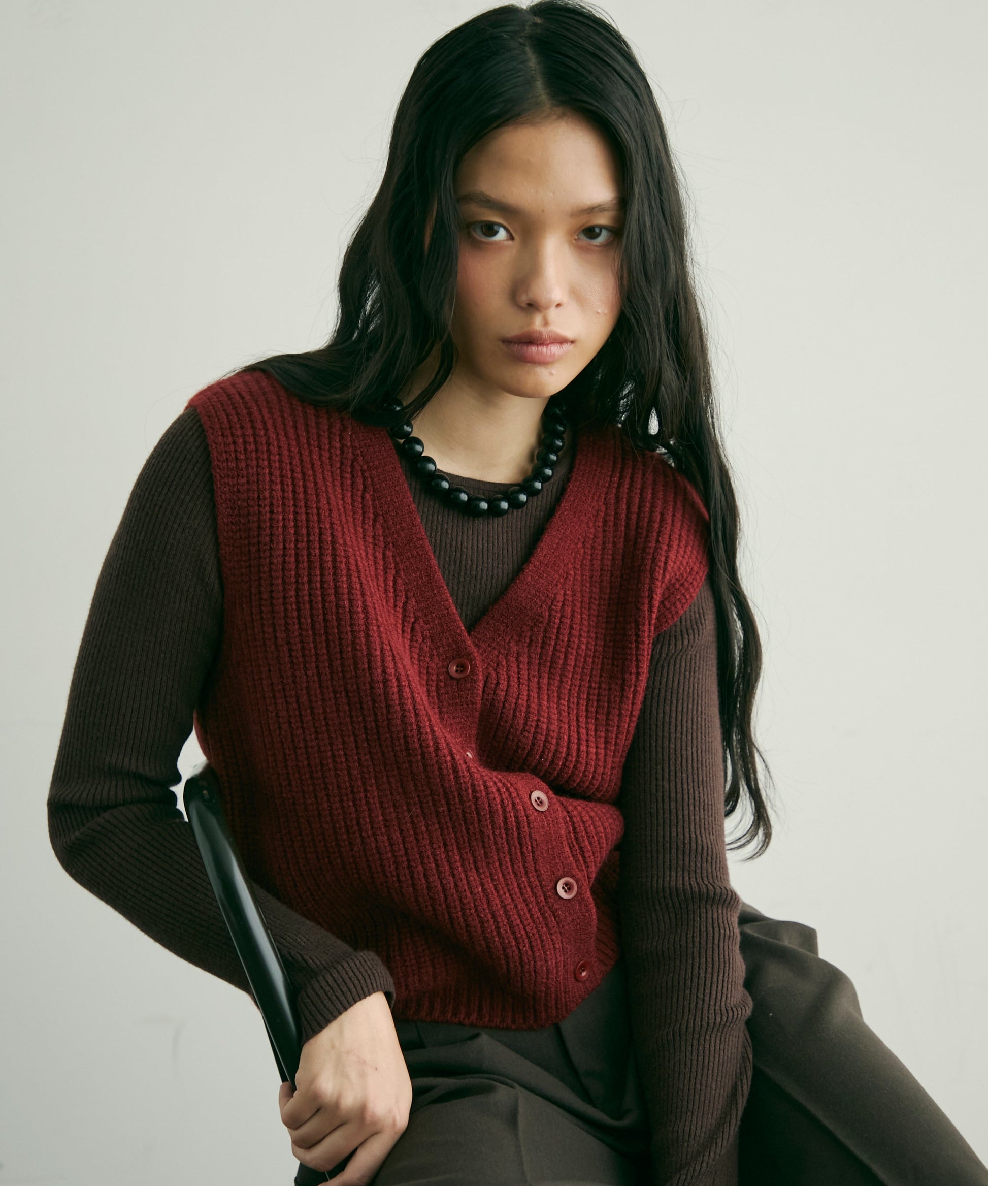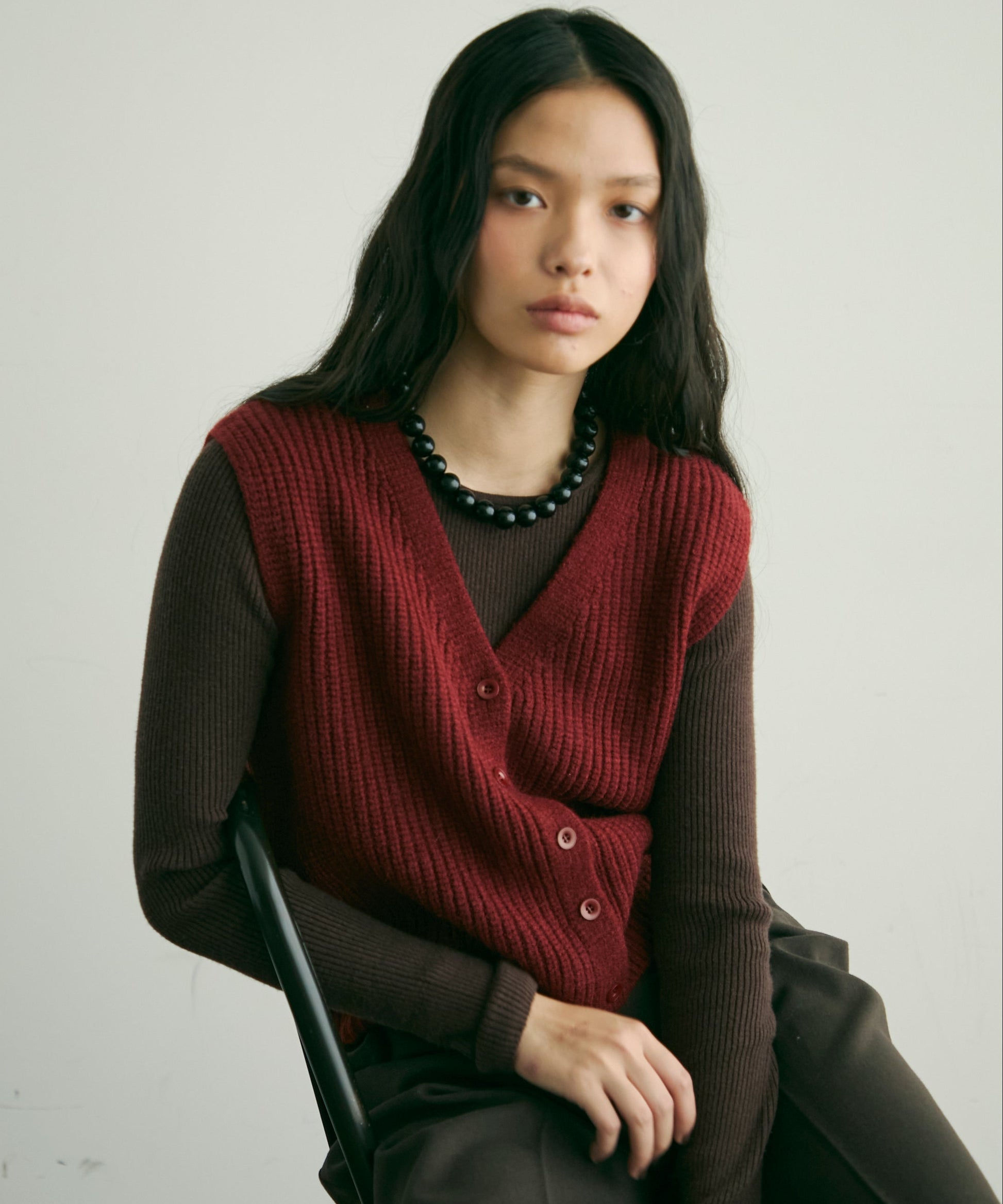 レイヤードスタイルにぴったりな深Vネックデザイン。