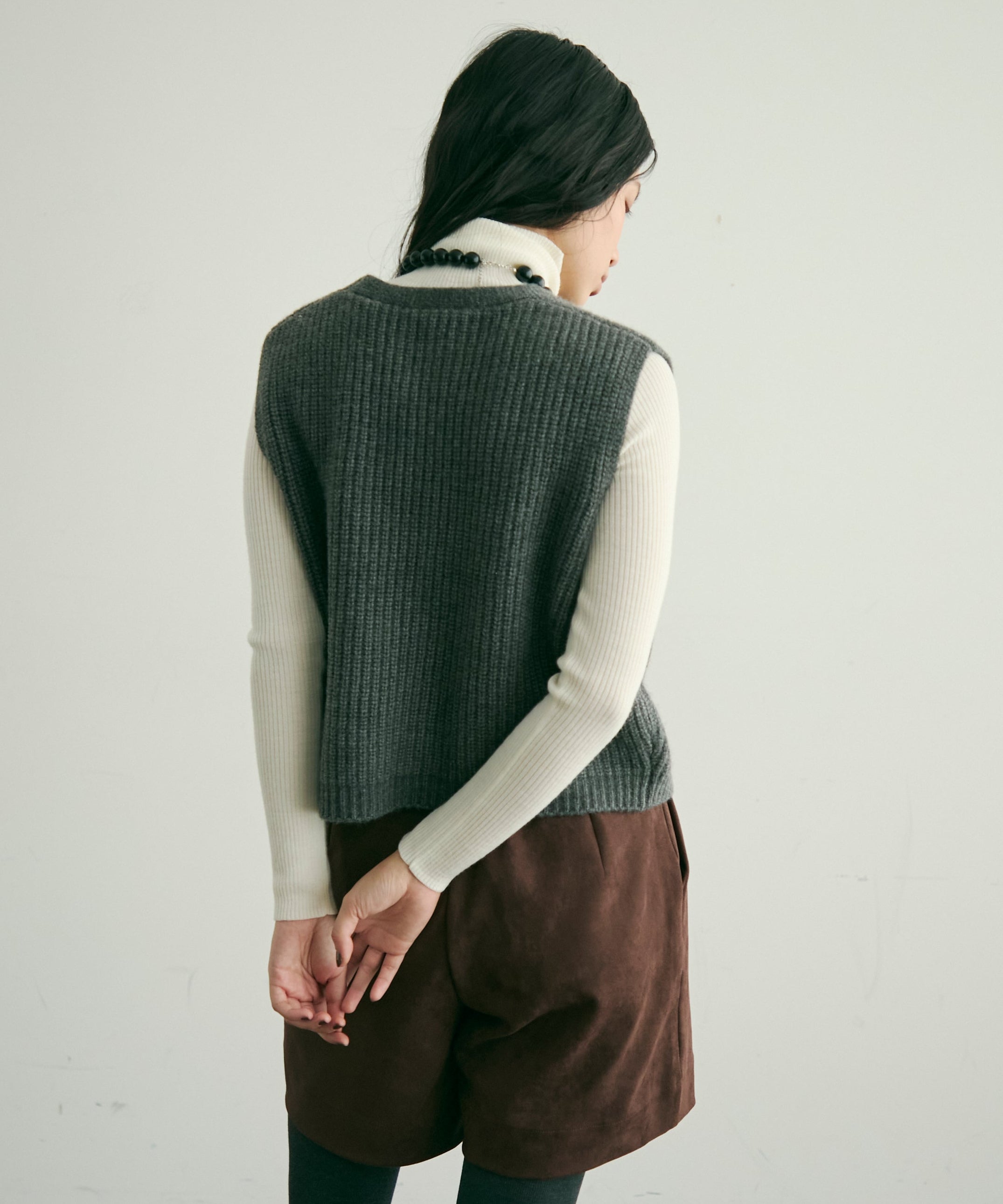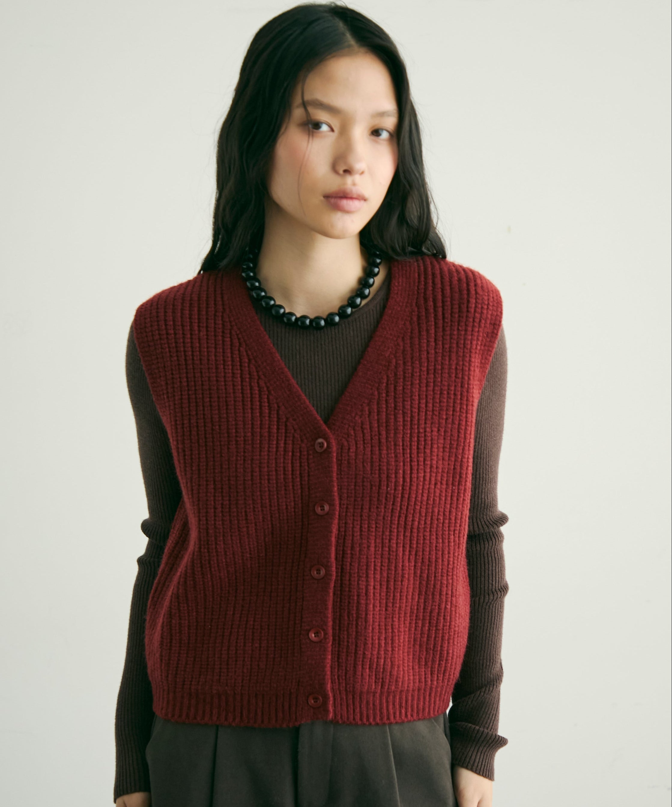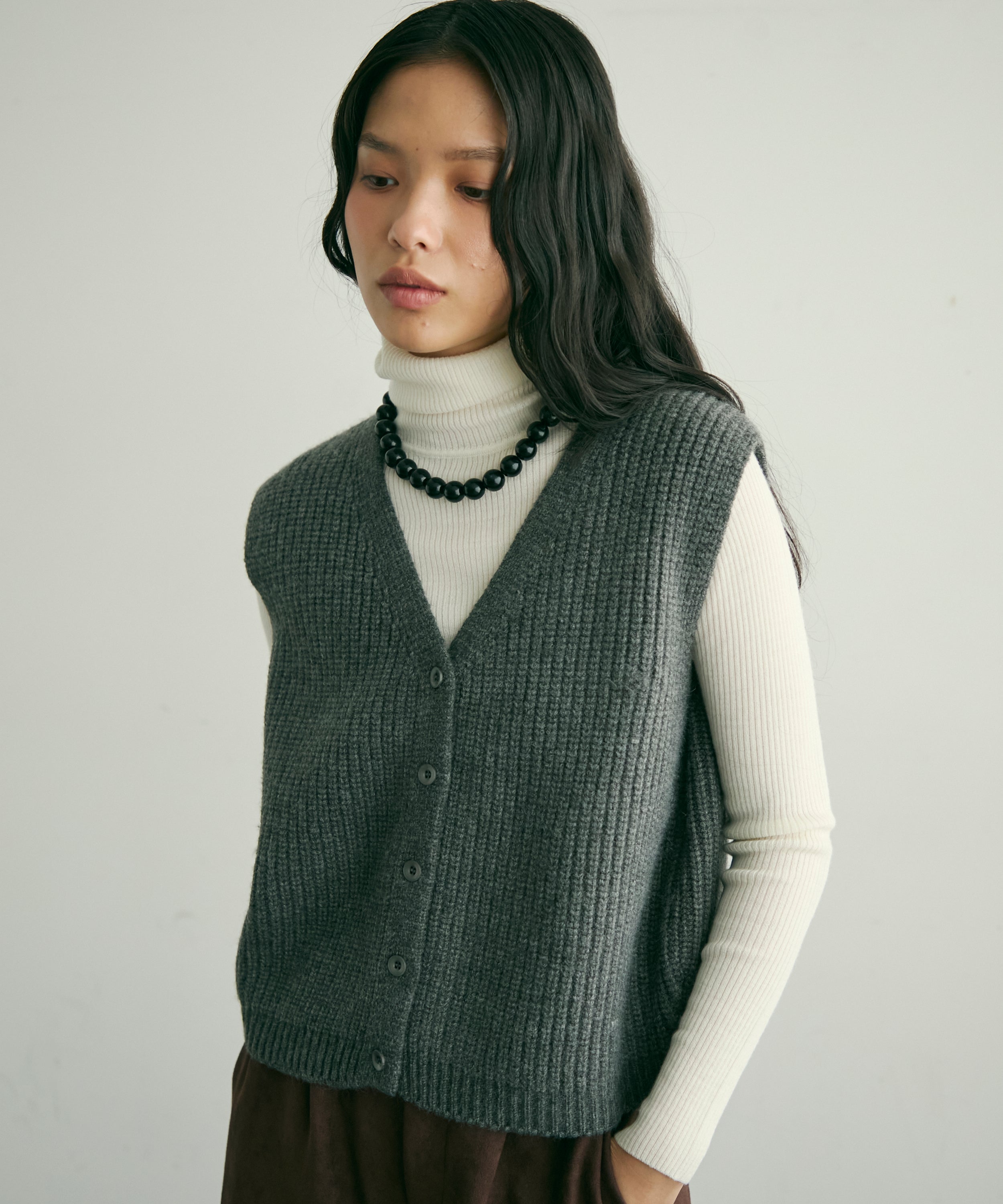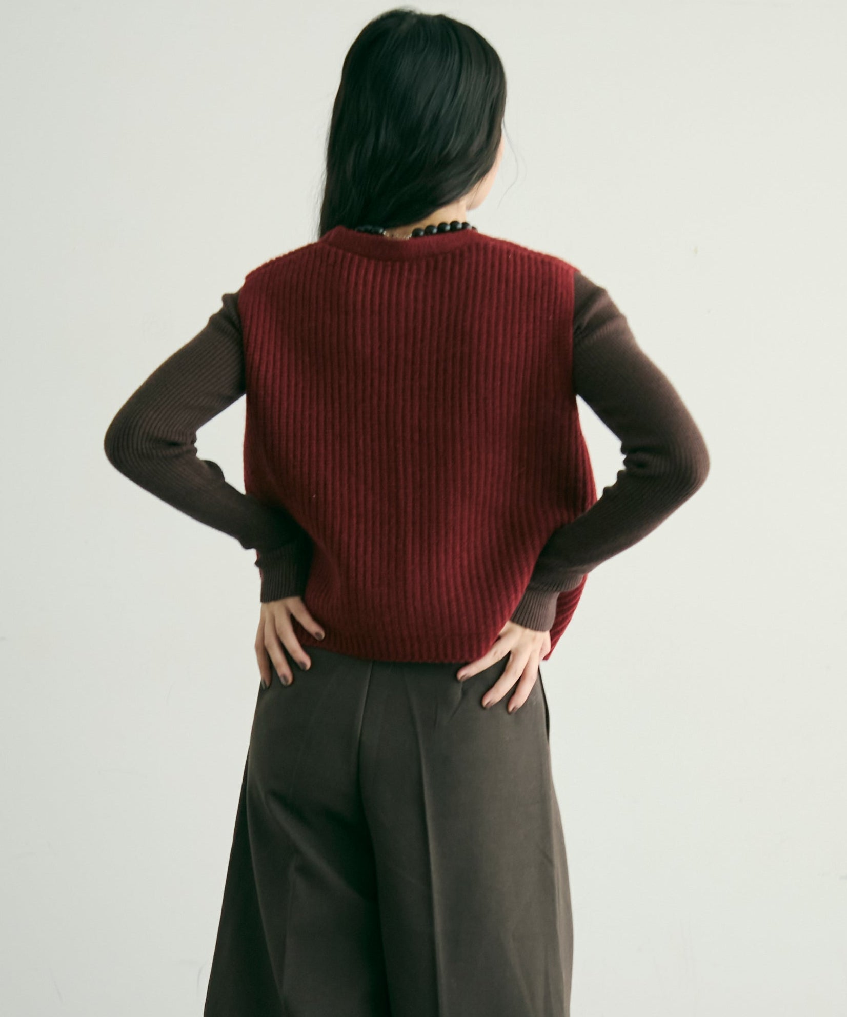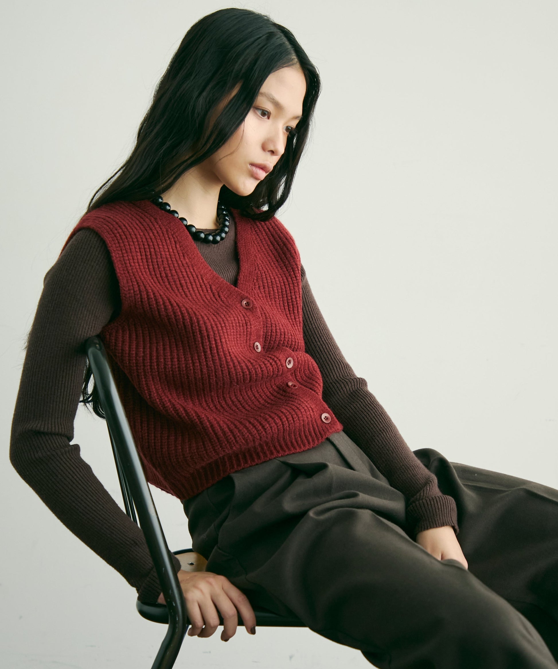 レイヤードスタイルにぴったりな深Vネックデザイン。