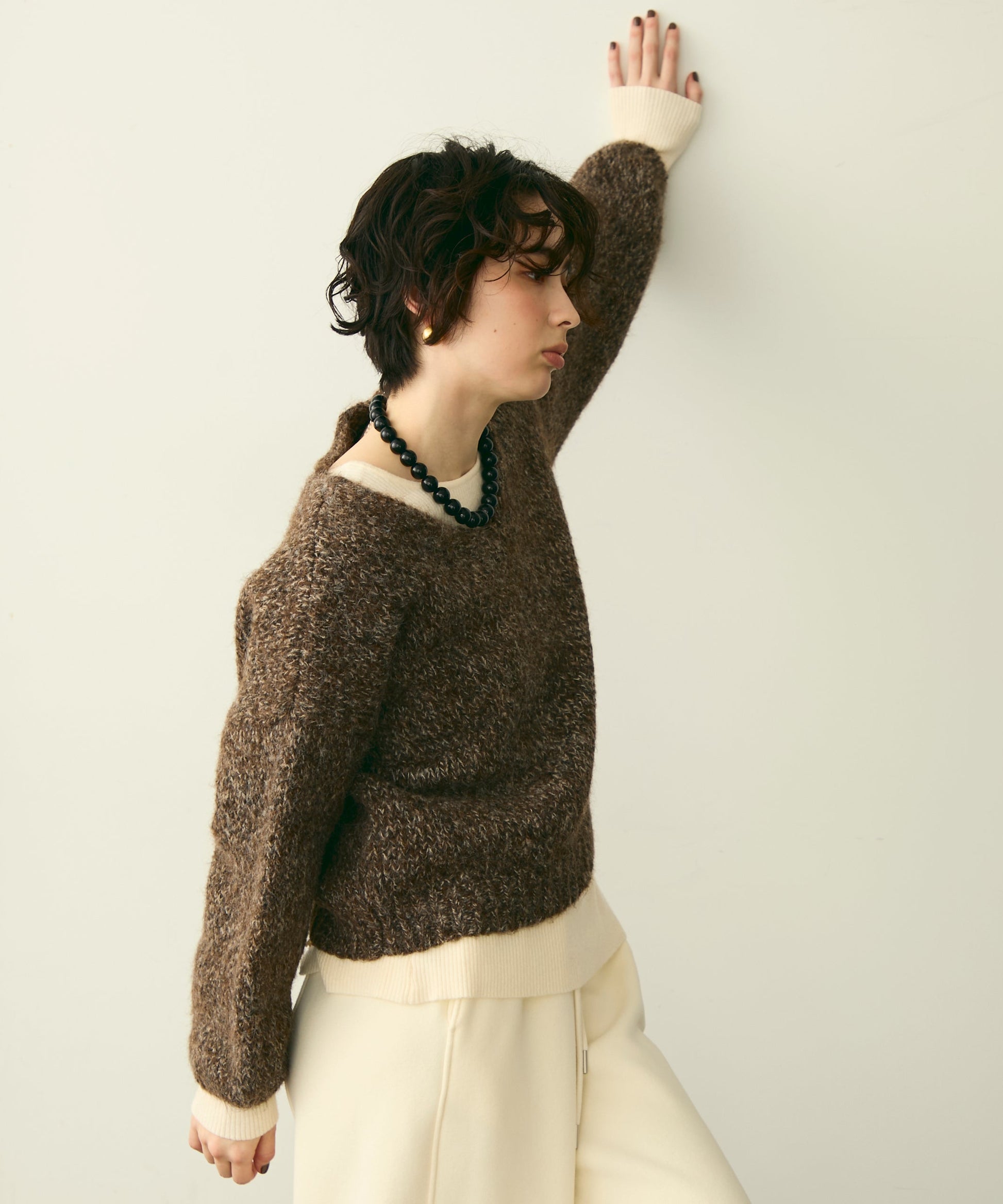 メランジ深Vネックニットプルオーバーは、ニュアンスのある編地とリラクシーなシルエットが特徴のアイテム