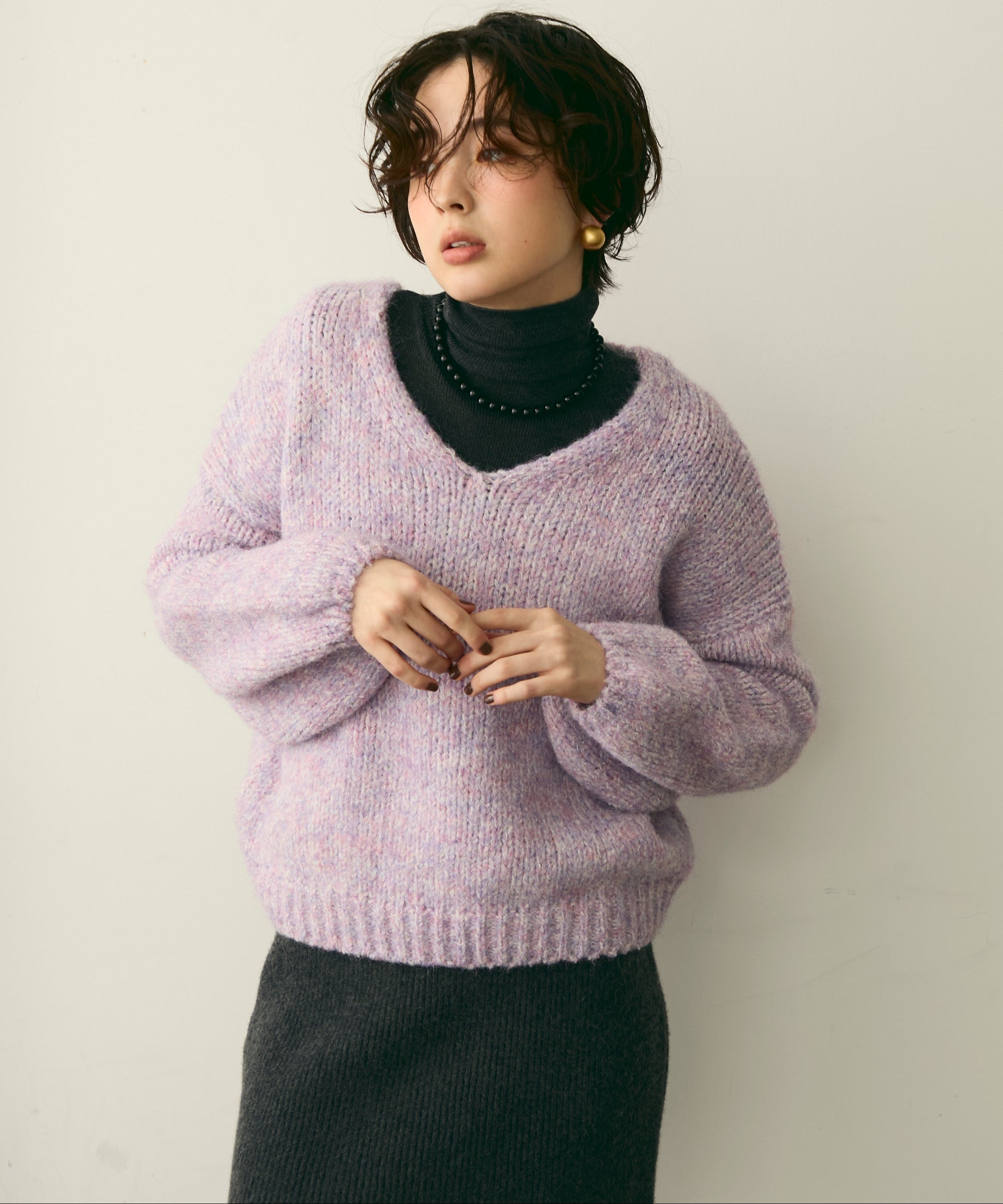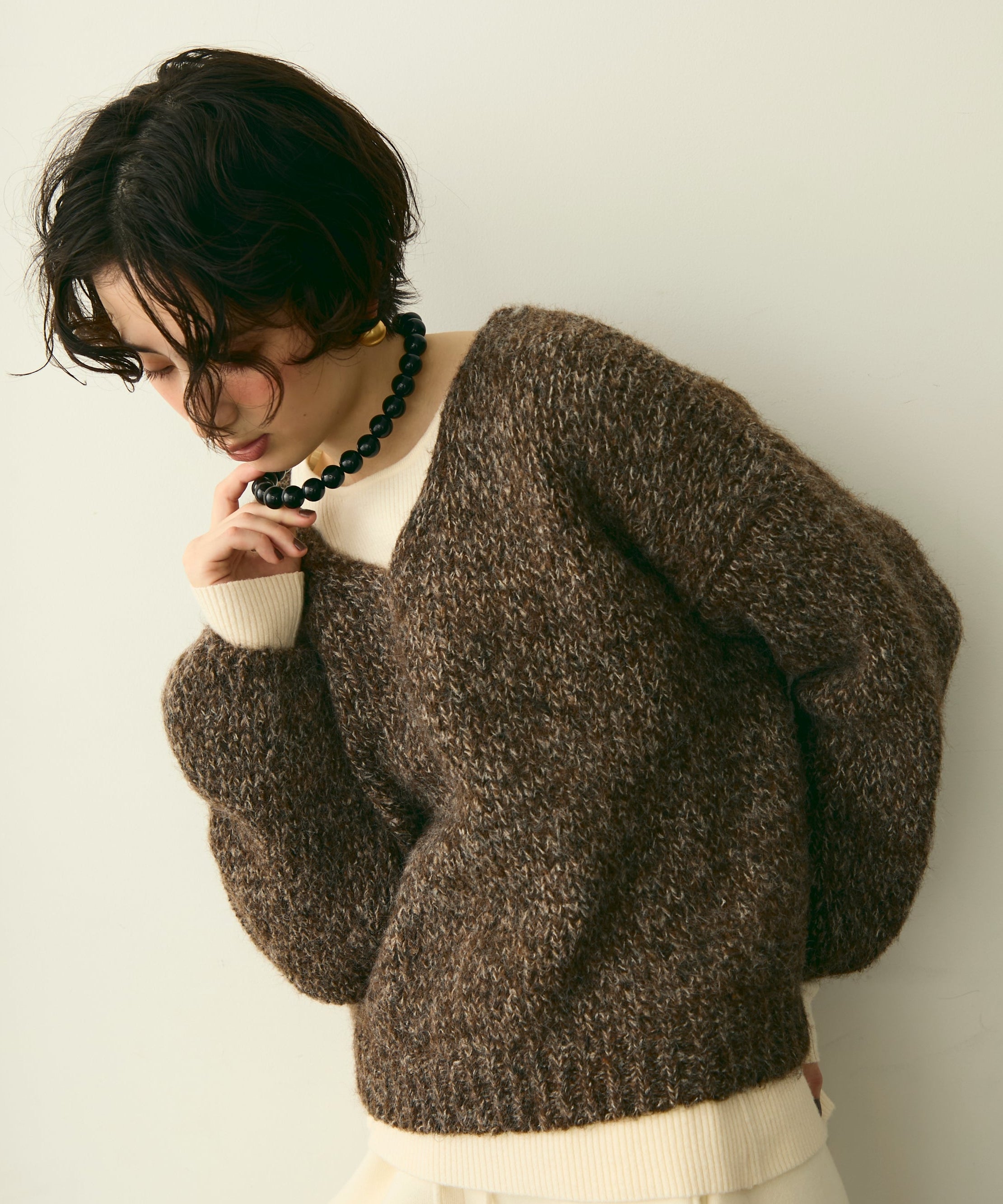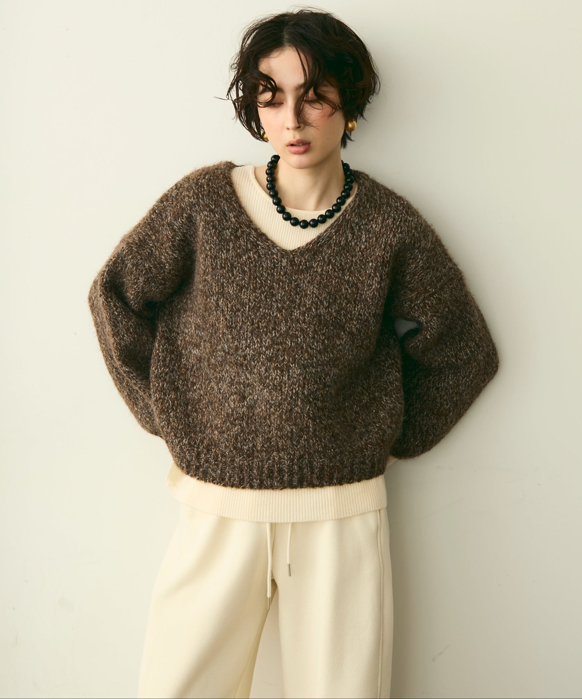 ふんわりとした素材感と抜け感のあるVネックが魅力の、秋冬にぴったりな一枚です。