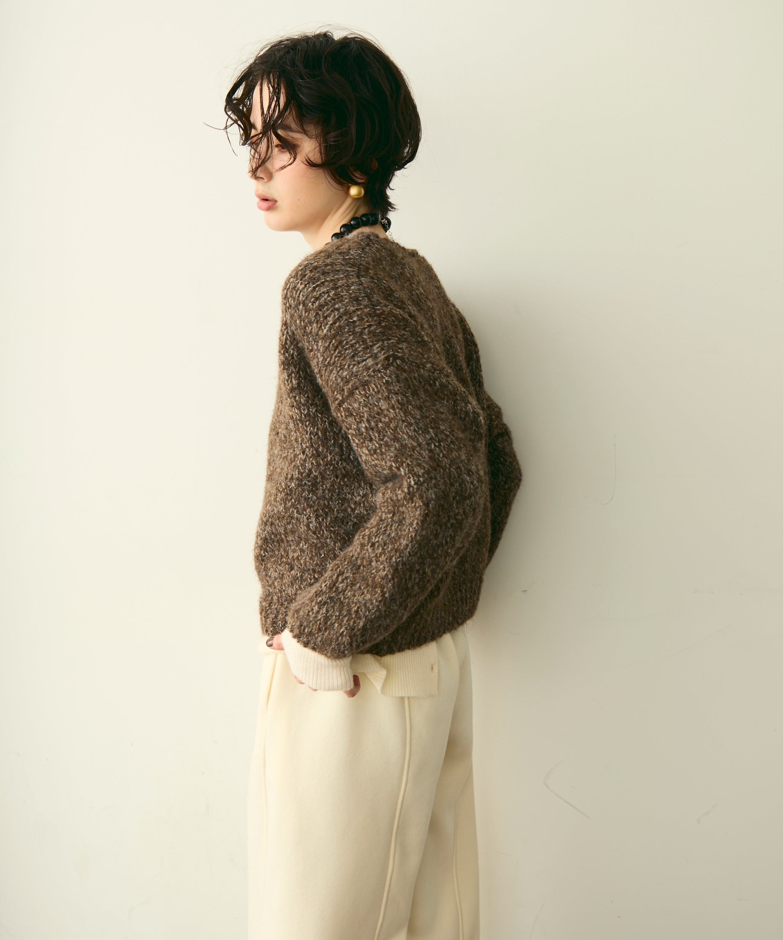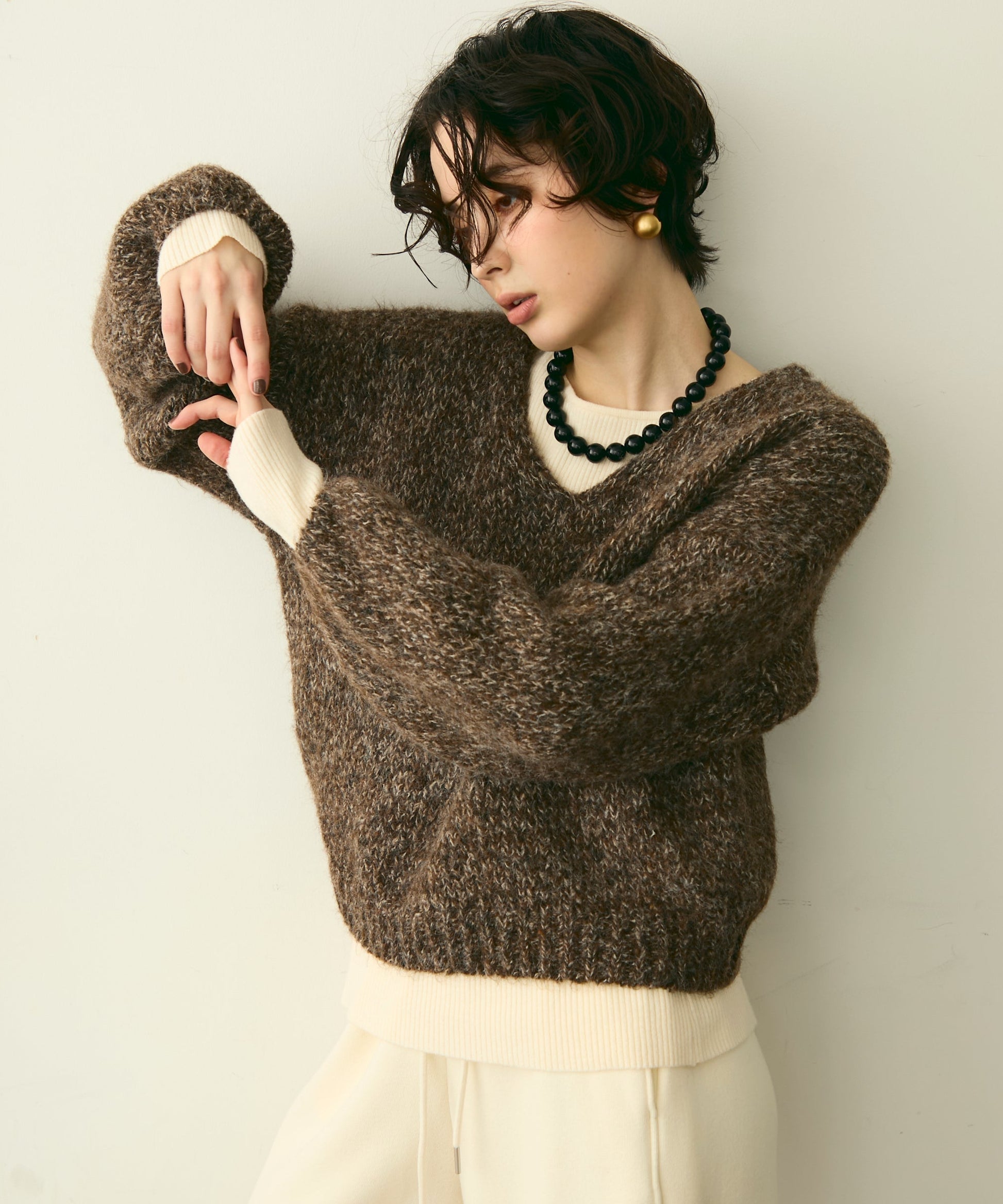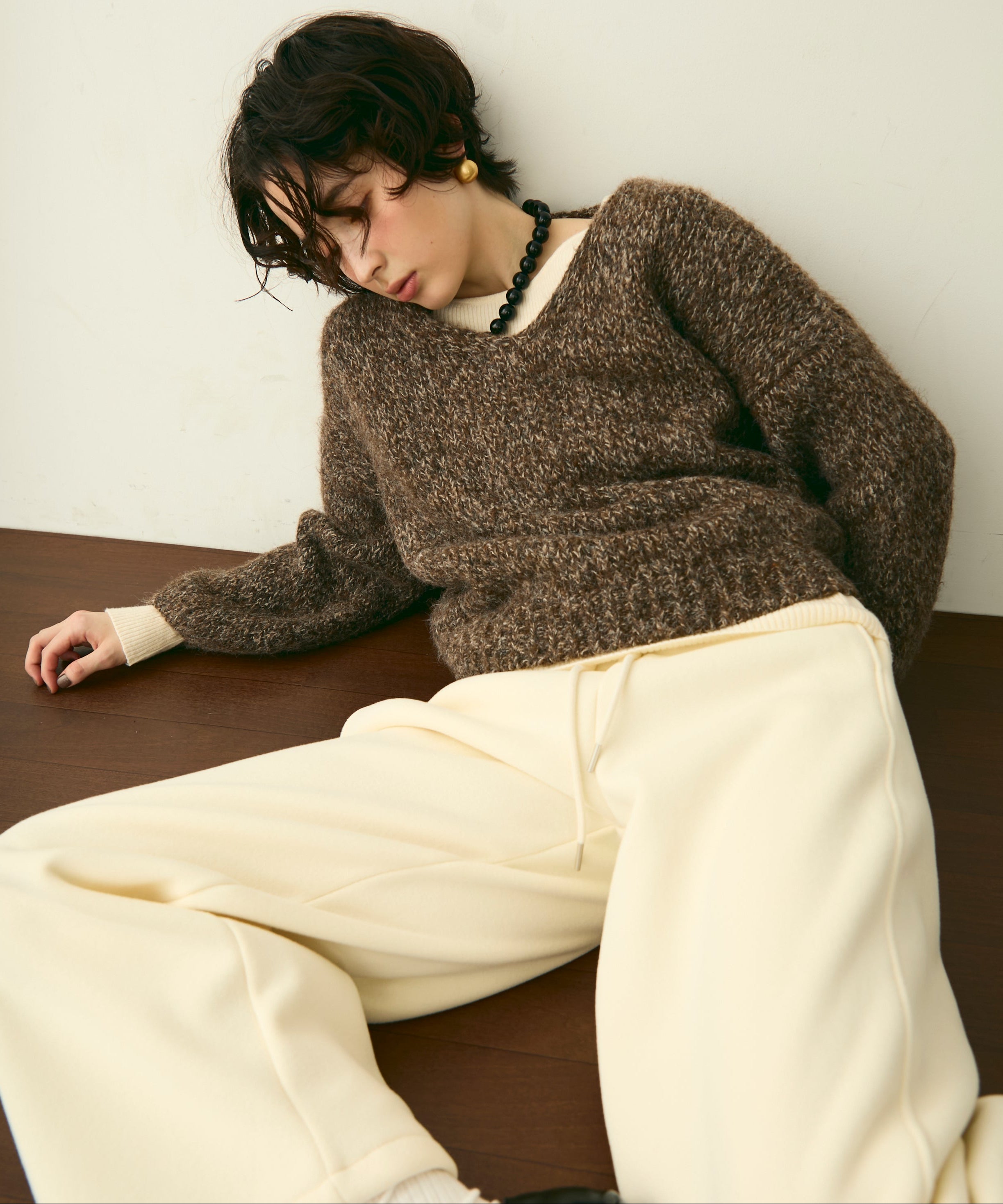 ふんわりとした素材感と抜け感のあるVネックが魅力の、秋冬にぴったりな一枚です。