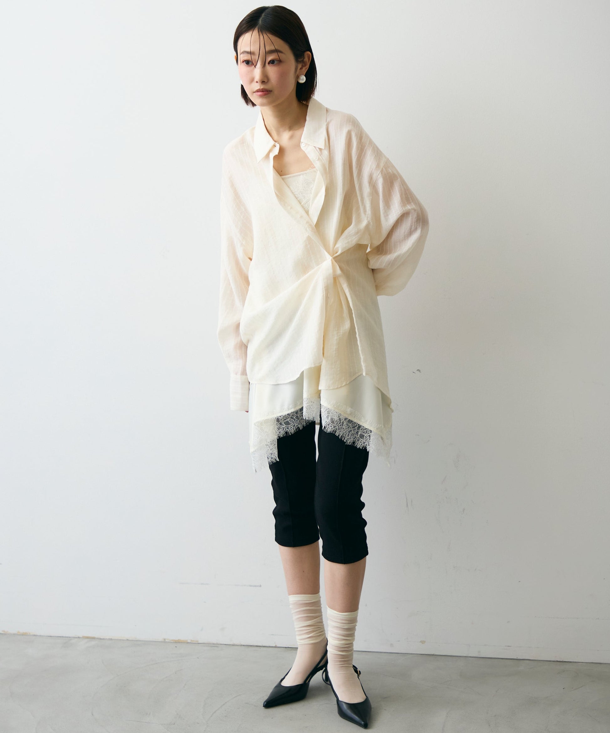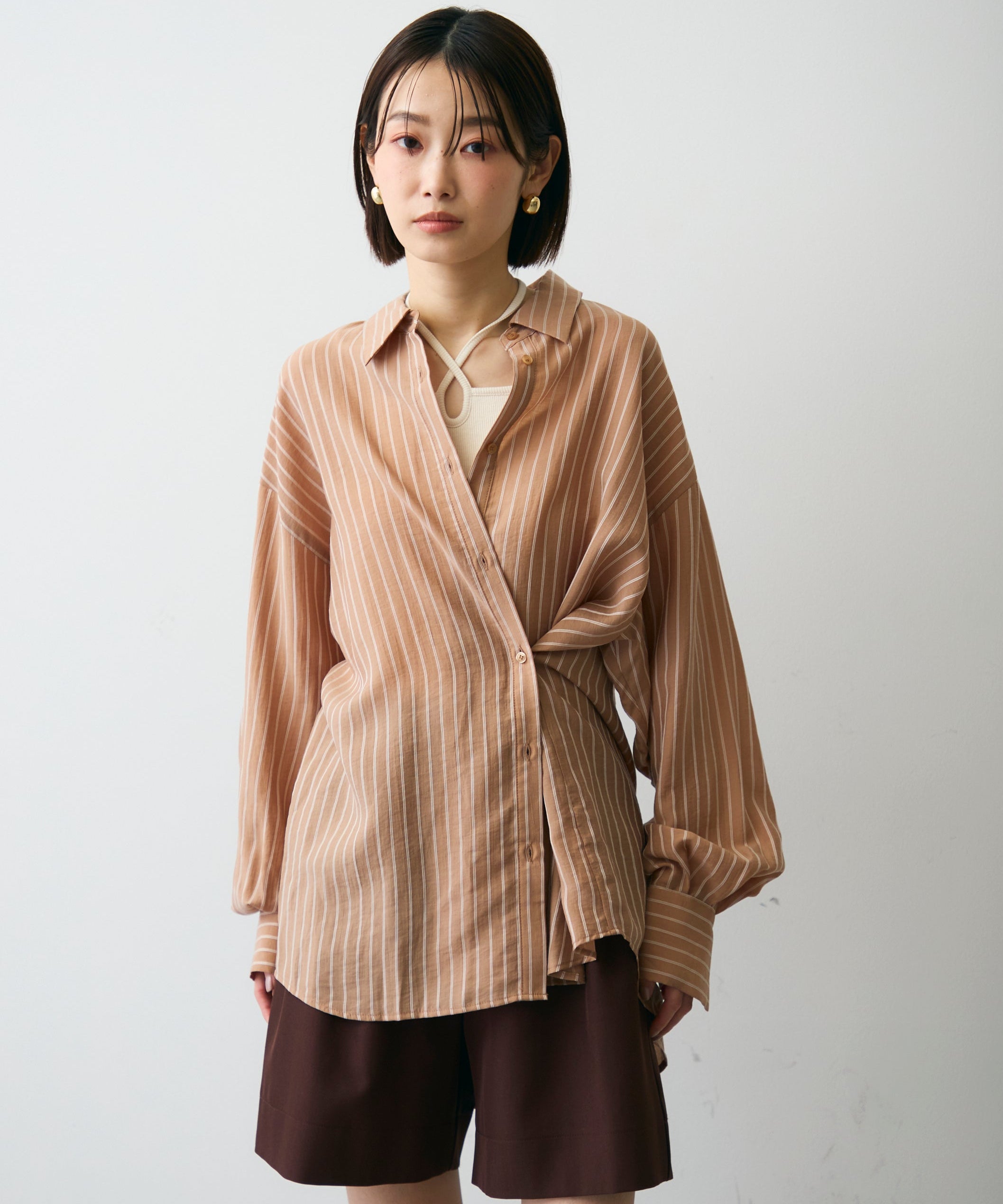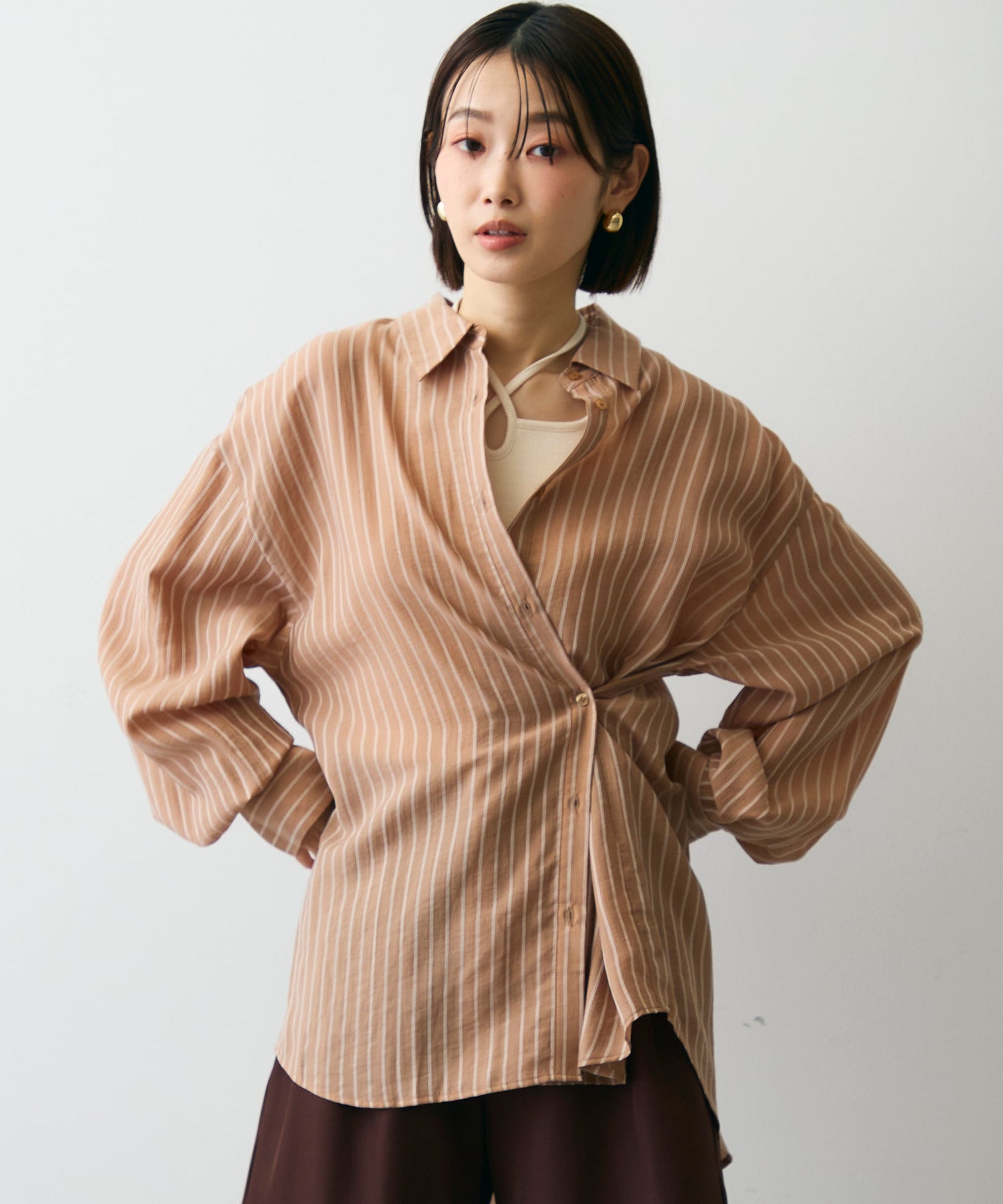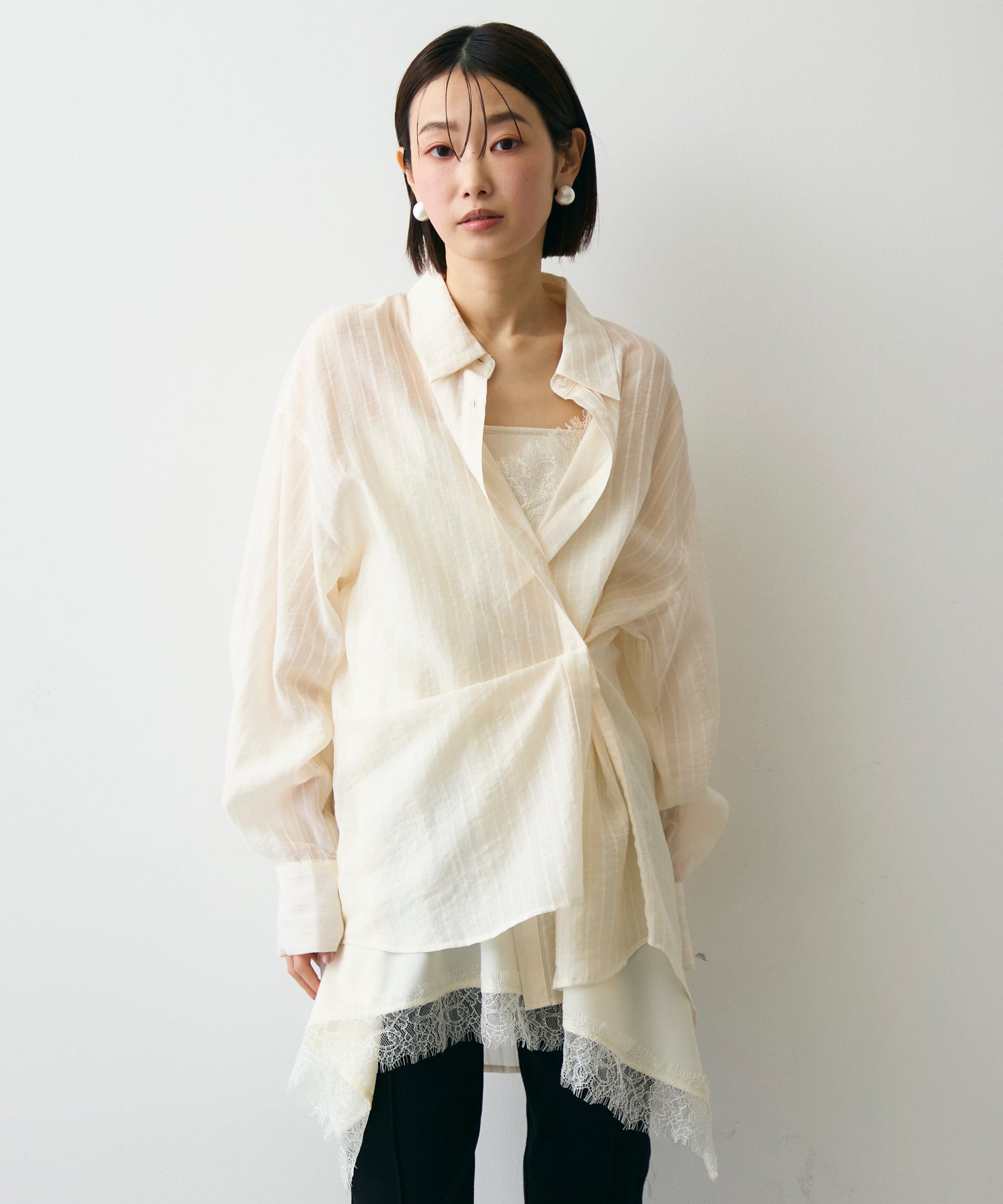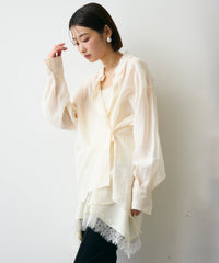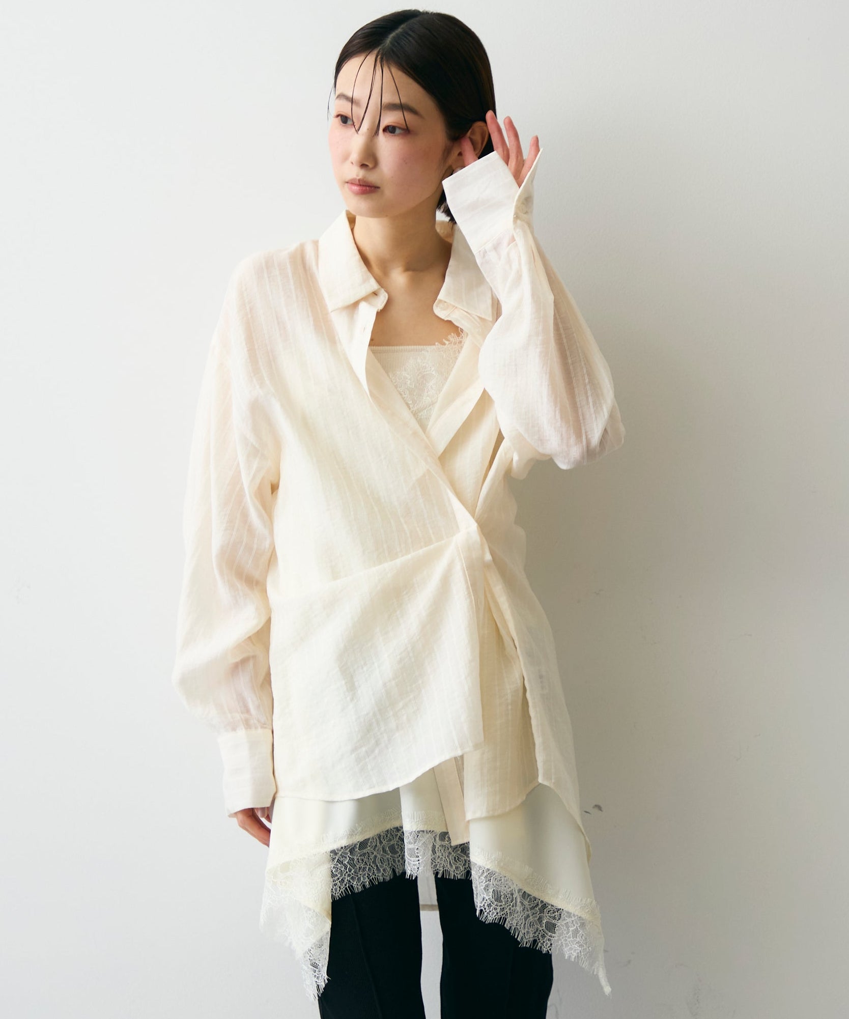フロントをクロスさせれば女性らしいカシュクールデザインに、ボタンを留めればきちんと感のあるシャツスタイルに。