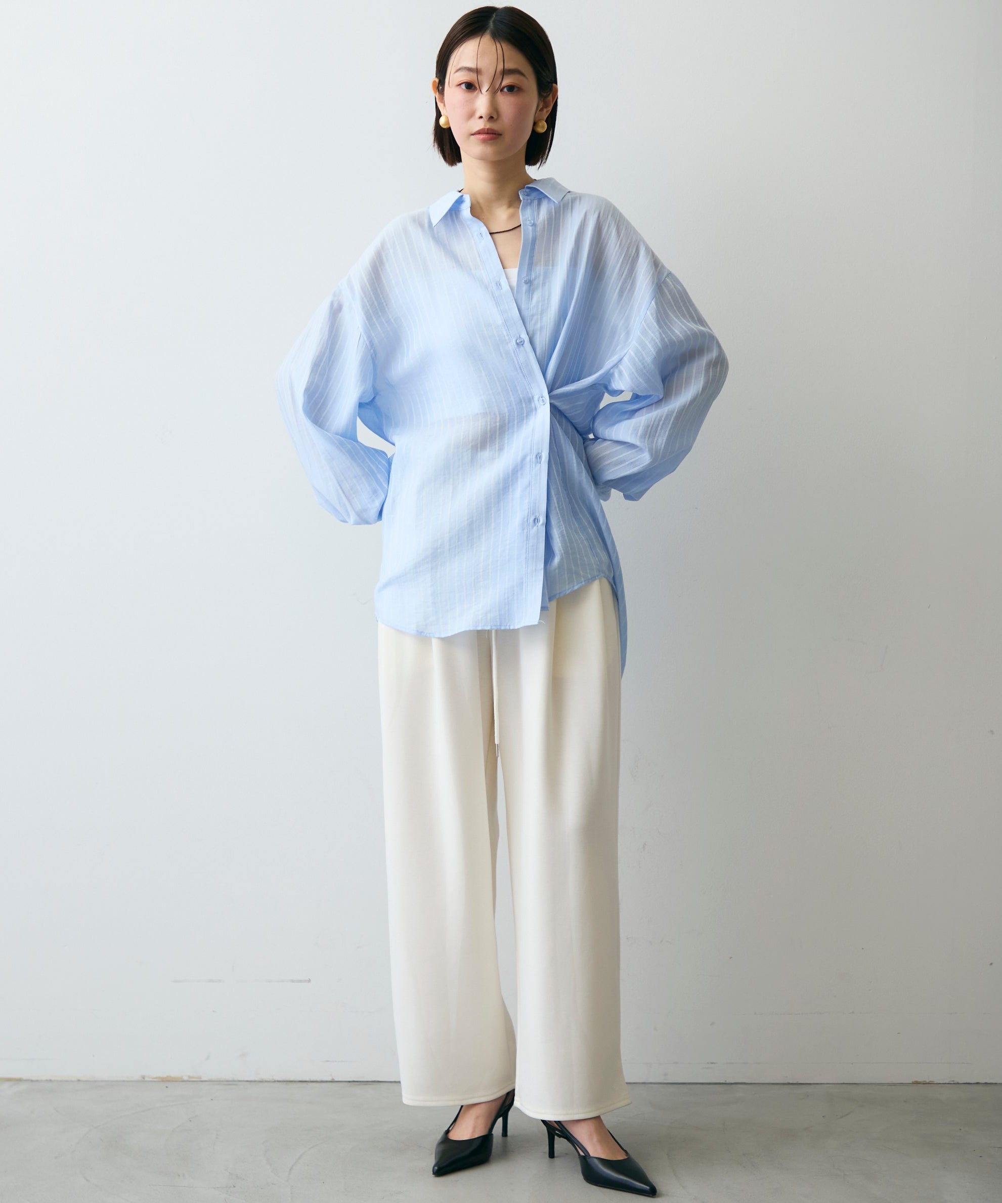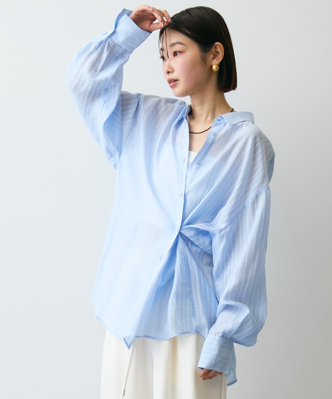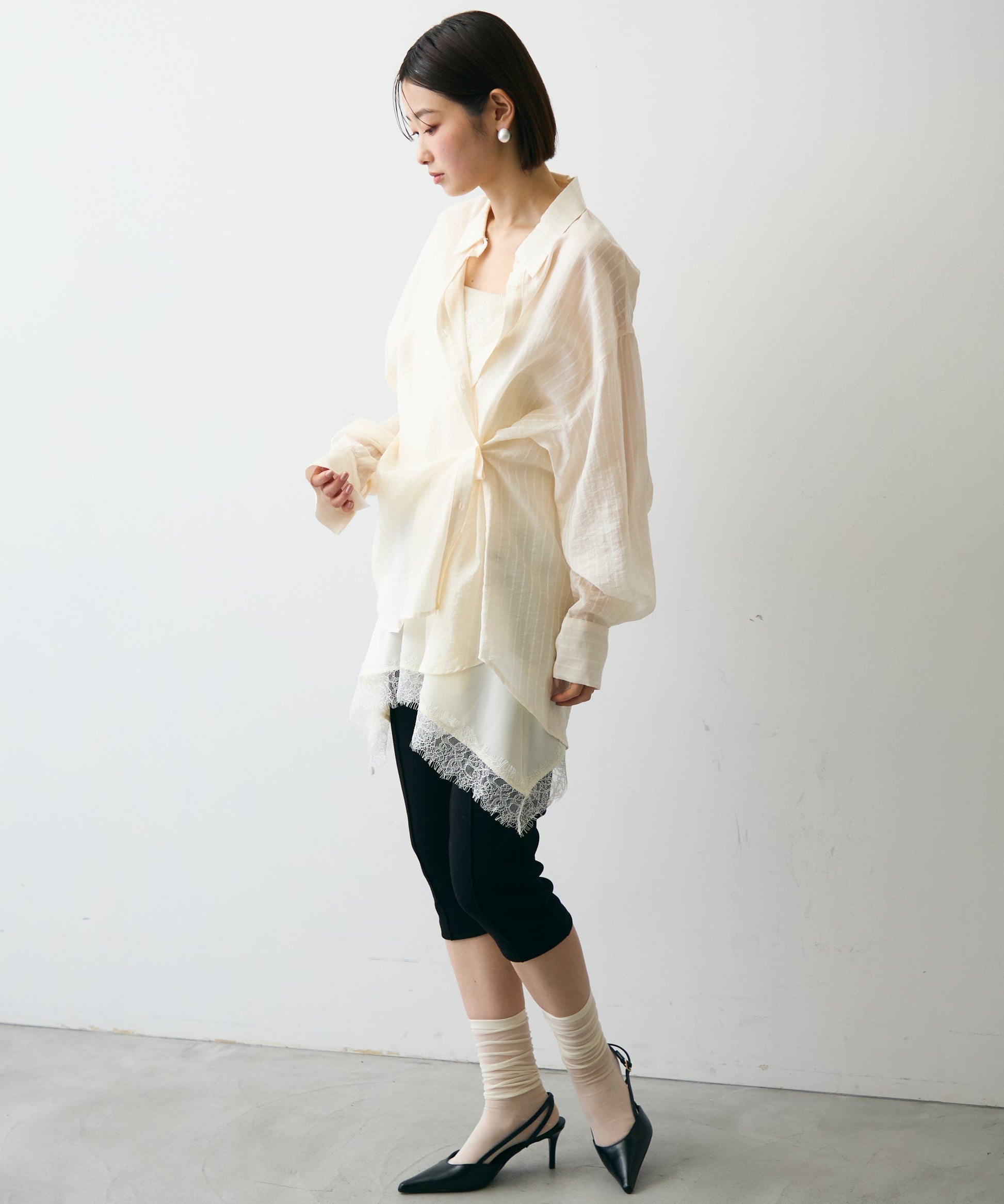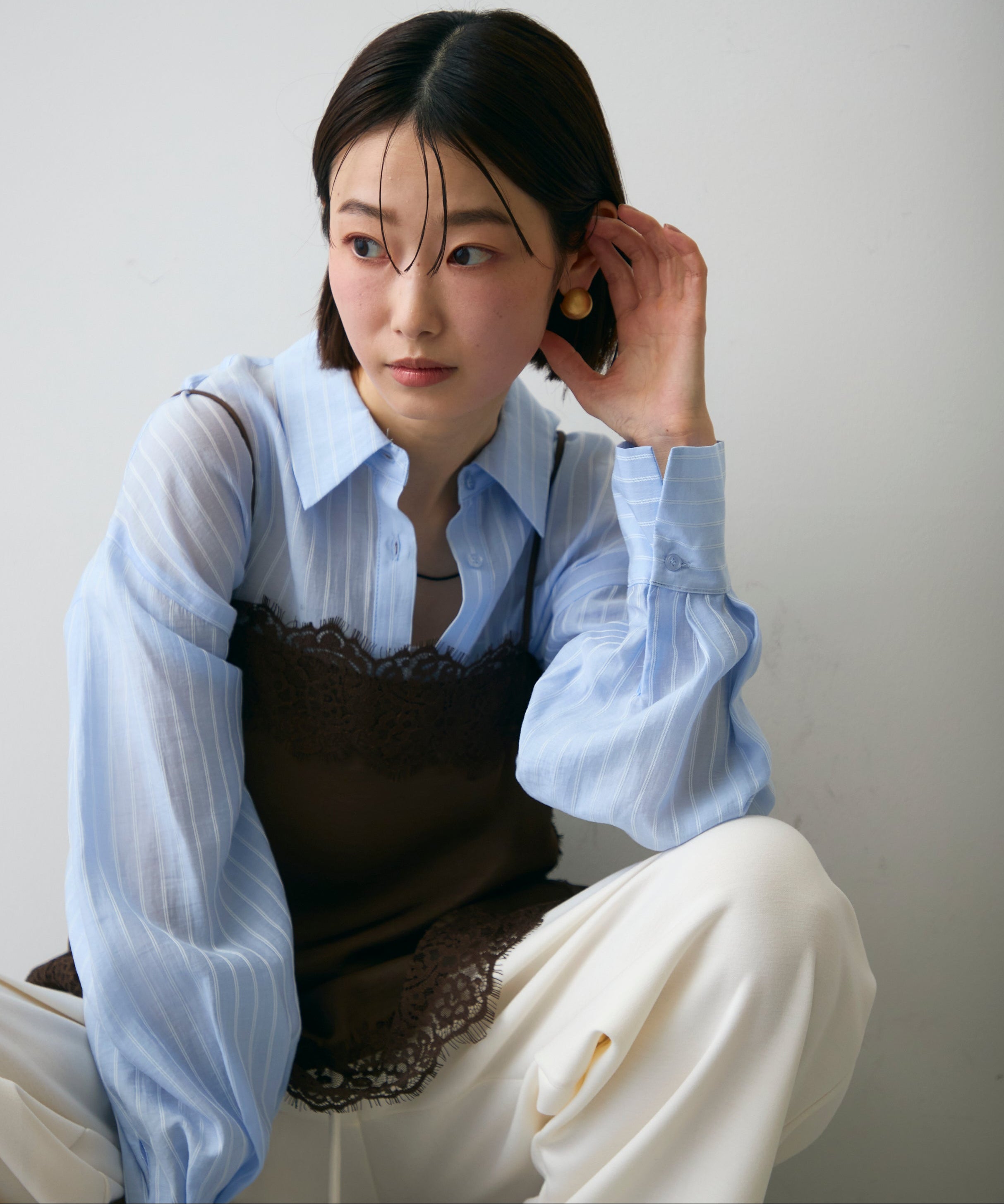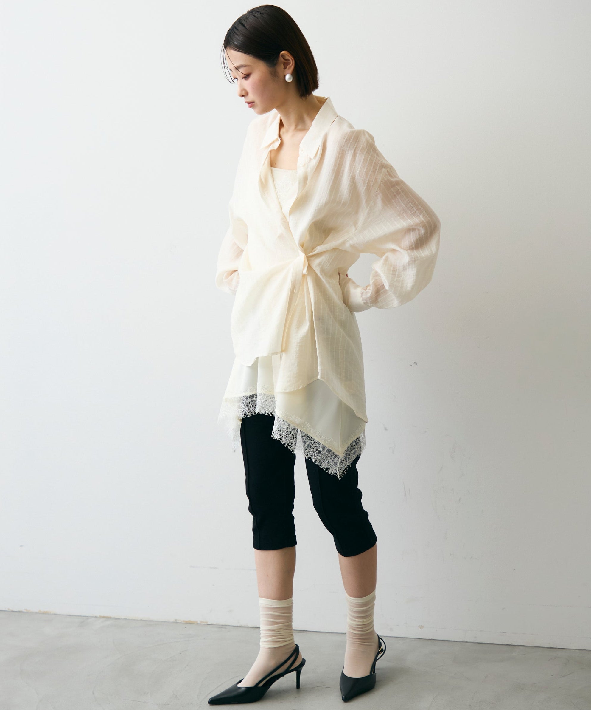 フロントをクロスさせれば女性らしいカシュクールデザインに、ボタンを留めればきちんと感のあるシャツスタイルに。