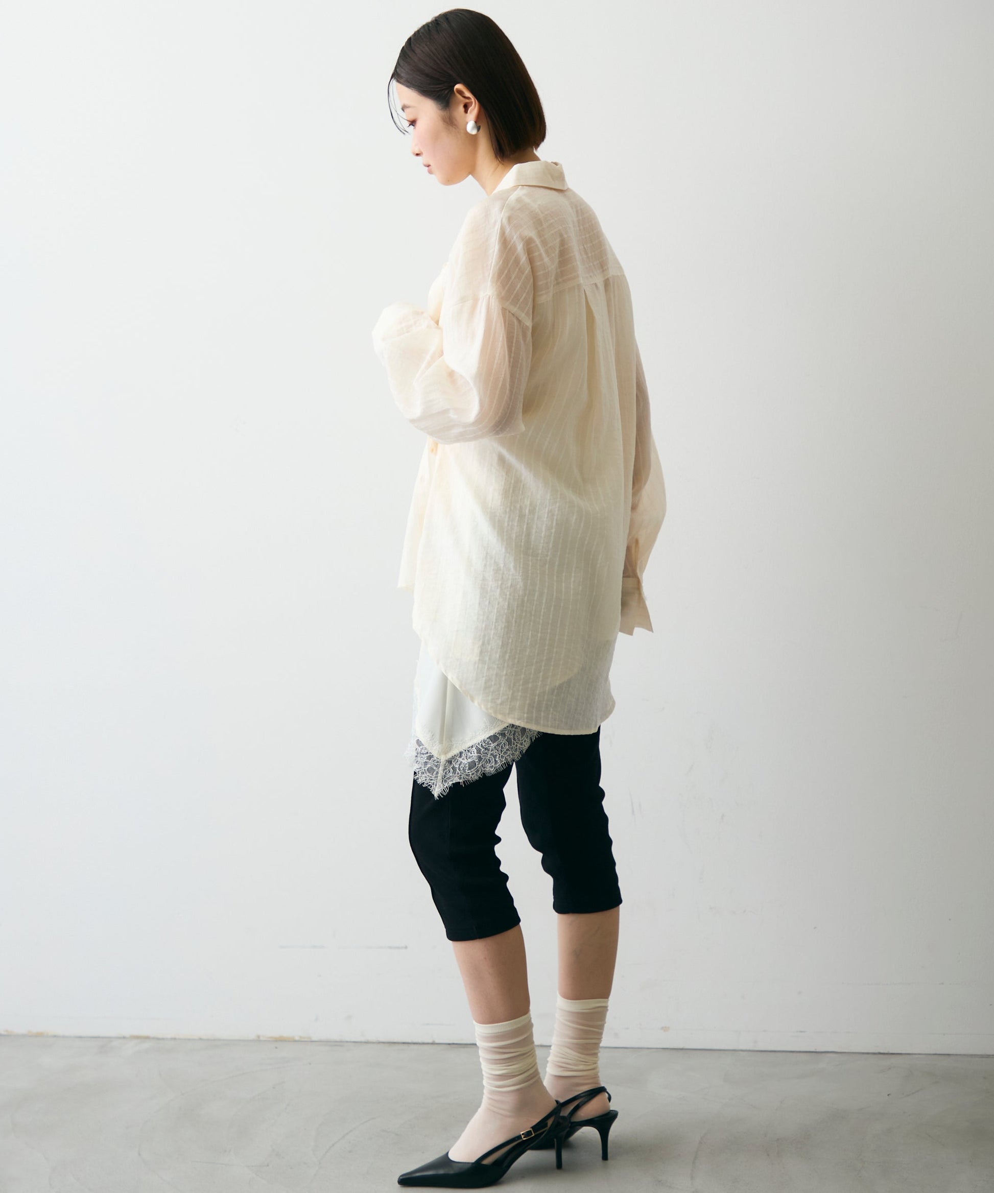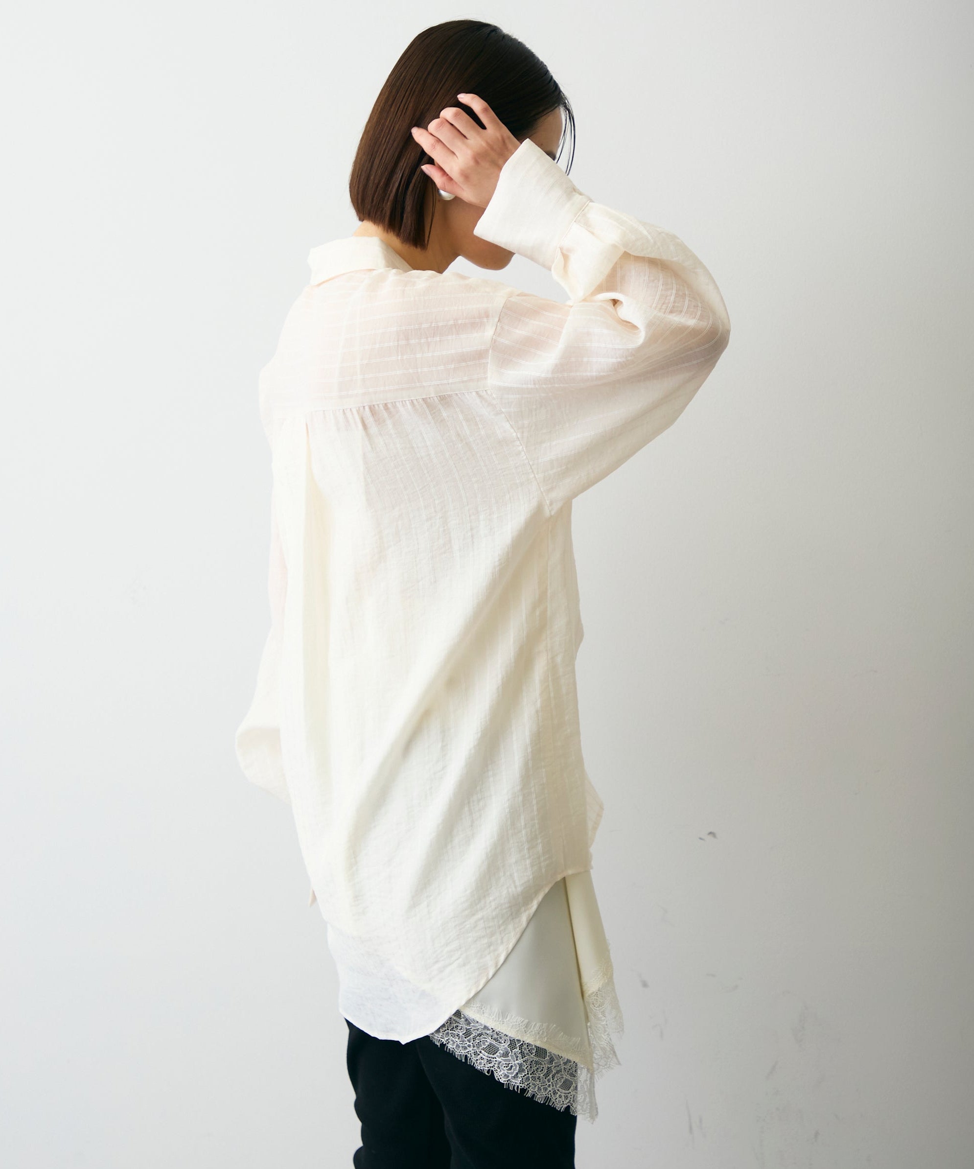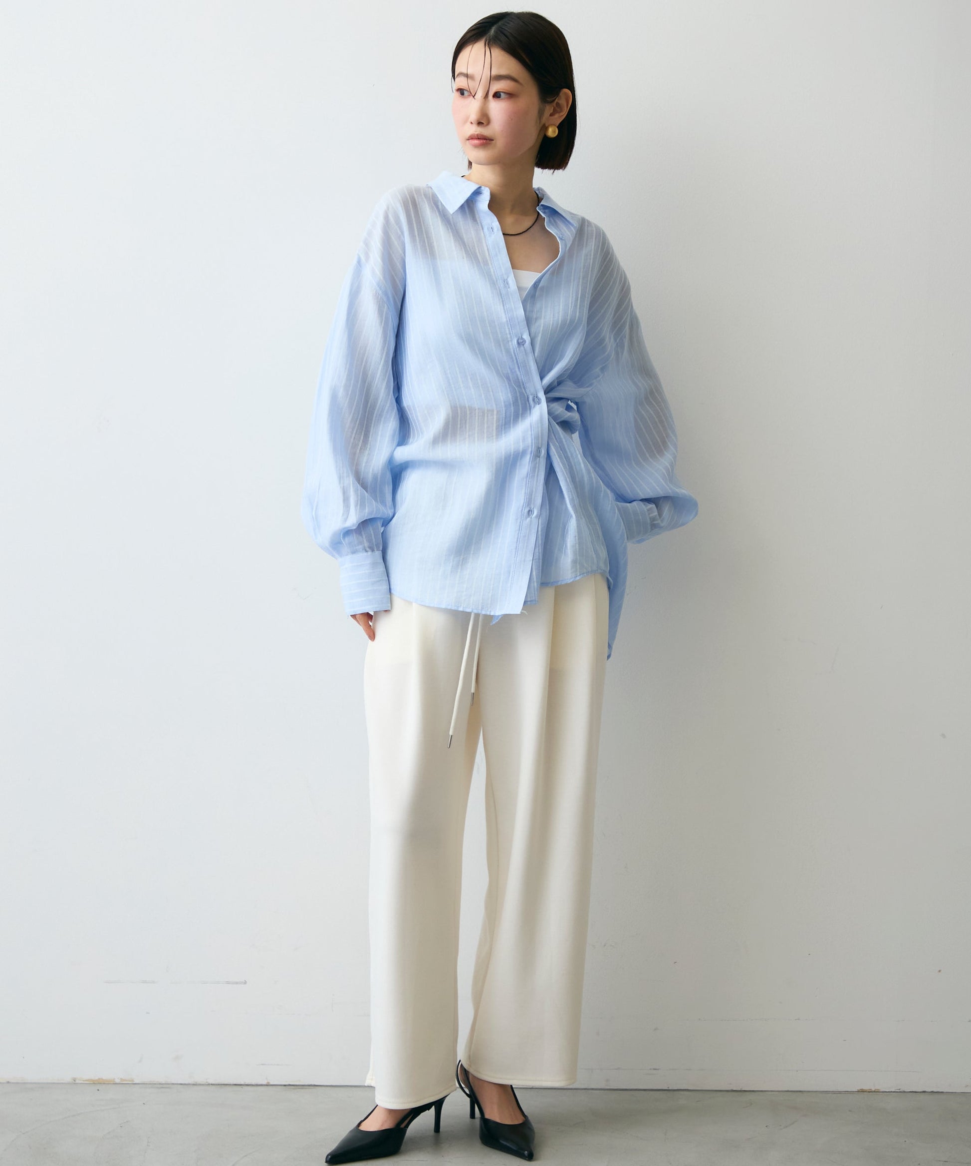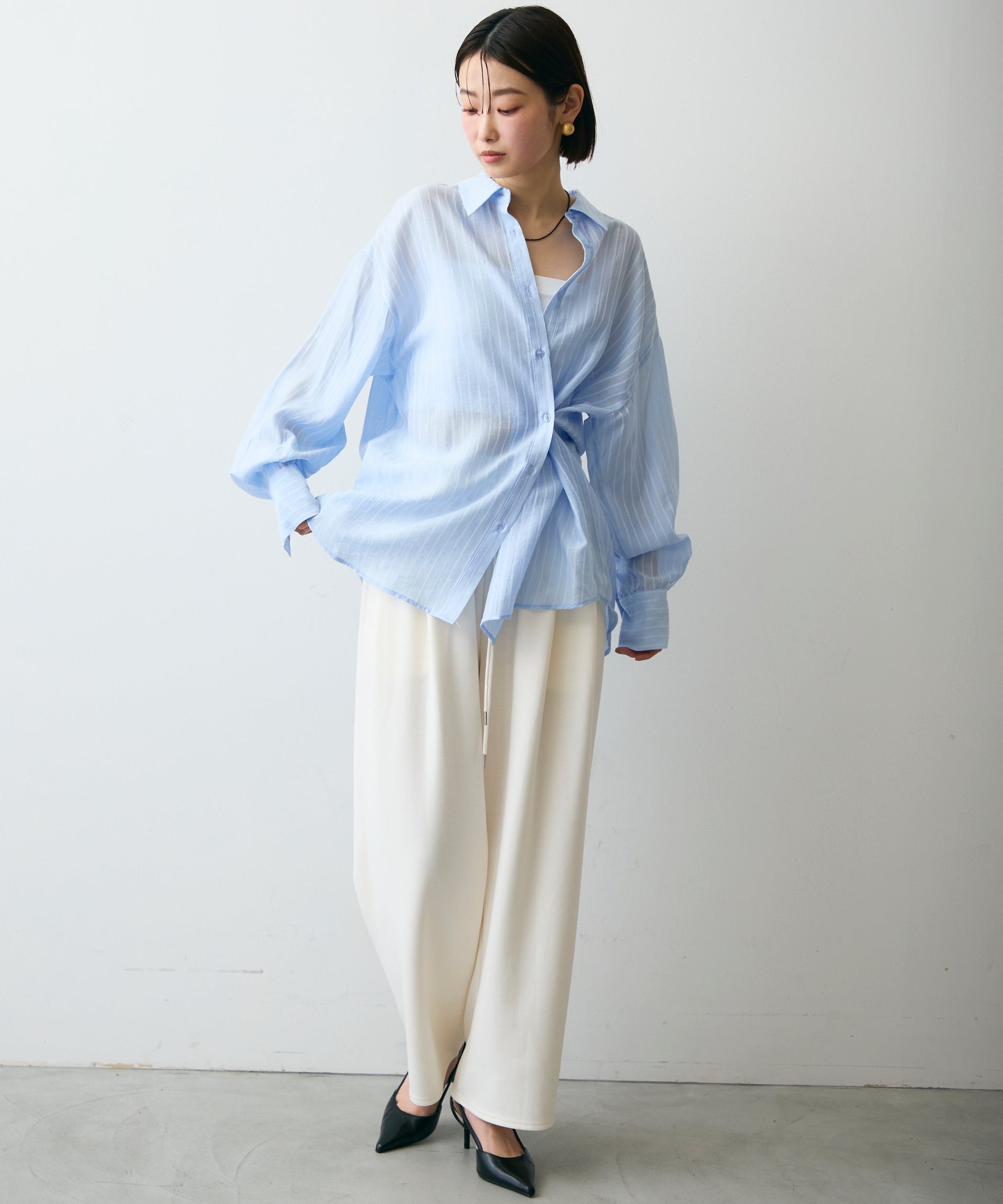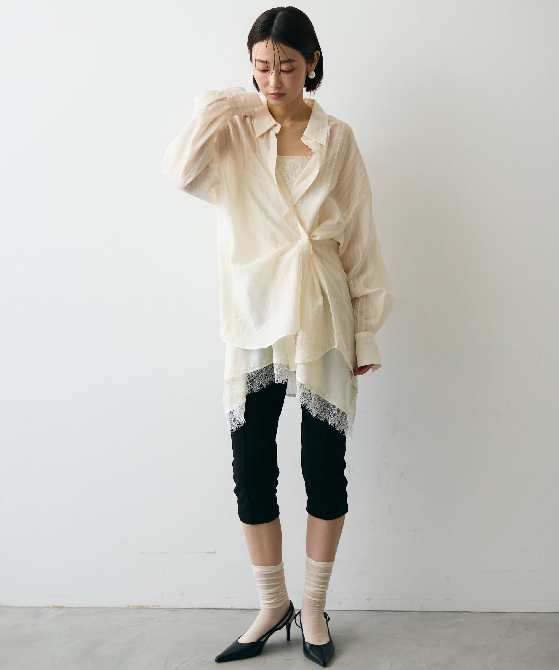 フロントをクロスさせれば女性らしいカシュクールデザインに、ボタンを留めればきちんと感のあるシャツスタイルに。