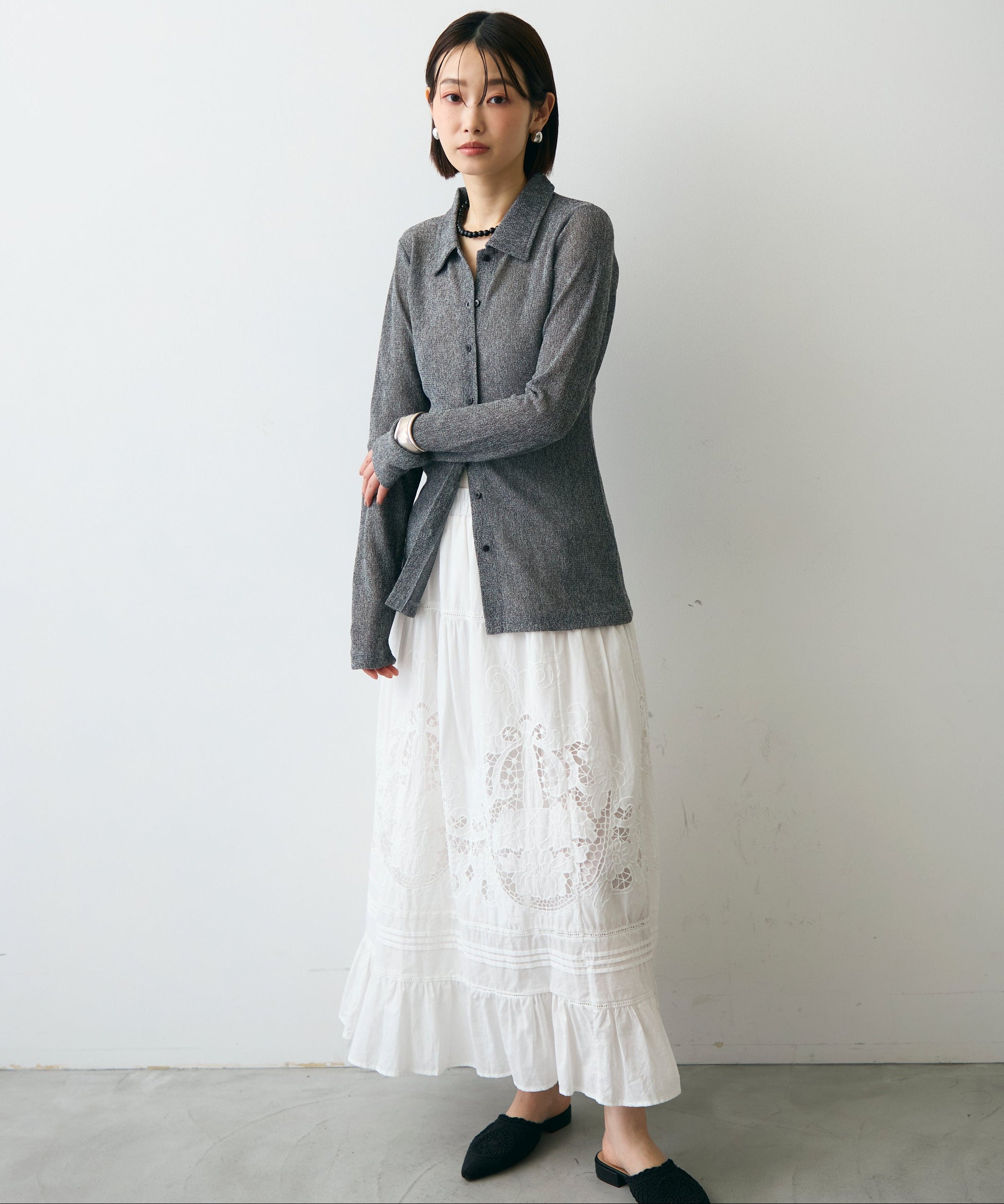 程よい透け感がスタイリングに立体感をプラスし、羽織るだけで季節感のある表情に仕上がります。Tシャツやタンクトップの上からさらっと重ねるだけで、こなれたレイヤードが完成。ゆとりのあるシルエットで体型を選ばず、デイリーからお出かけまで幅広く活躍します。