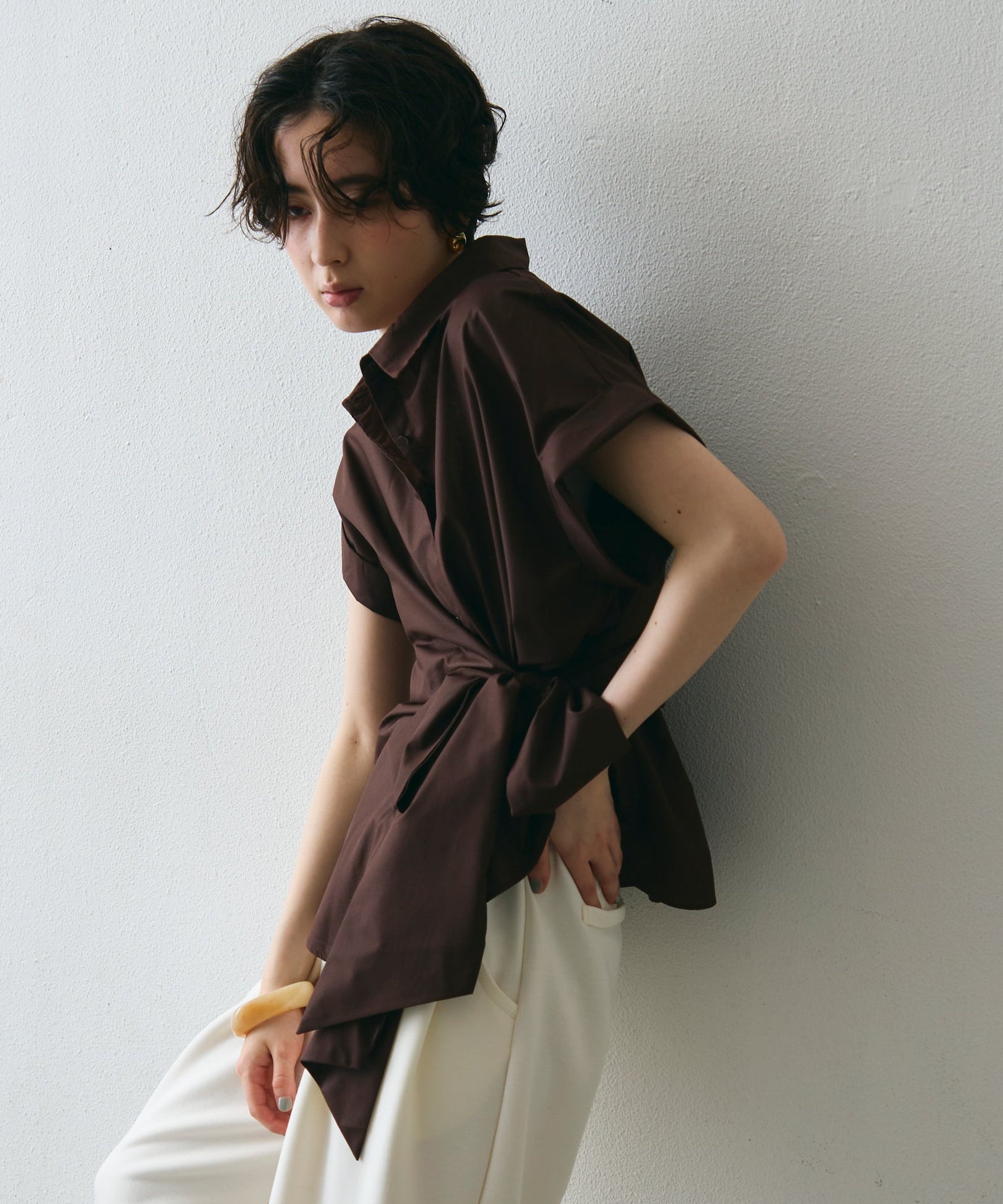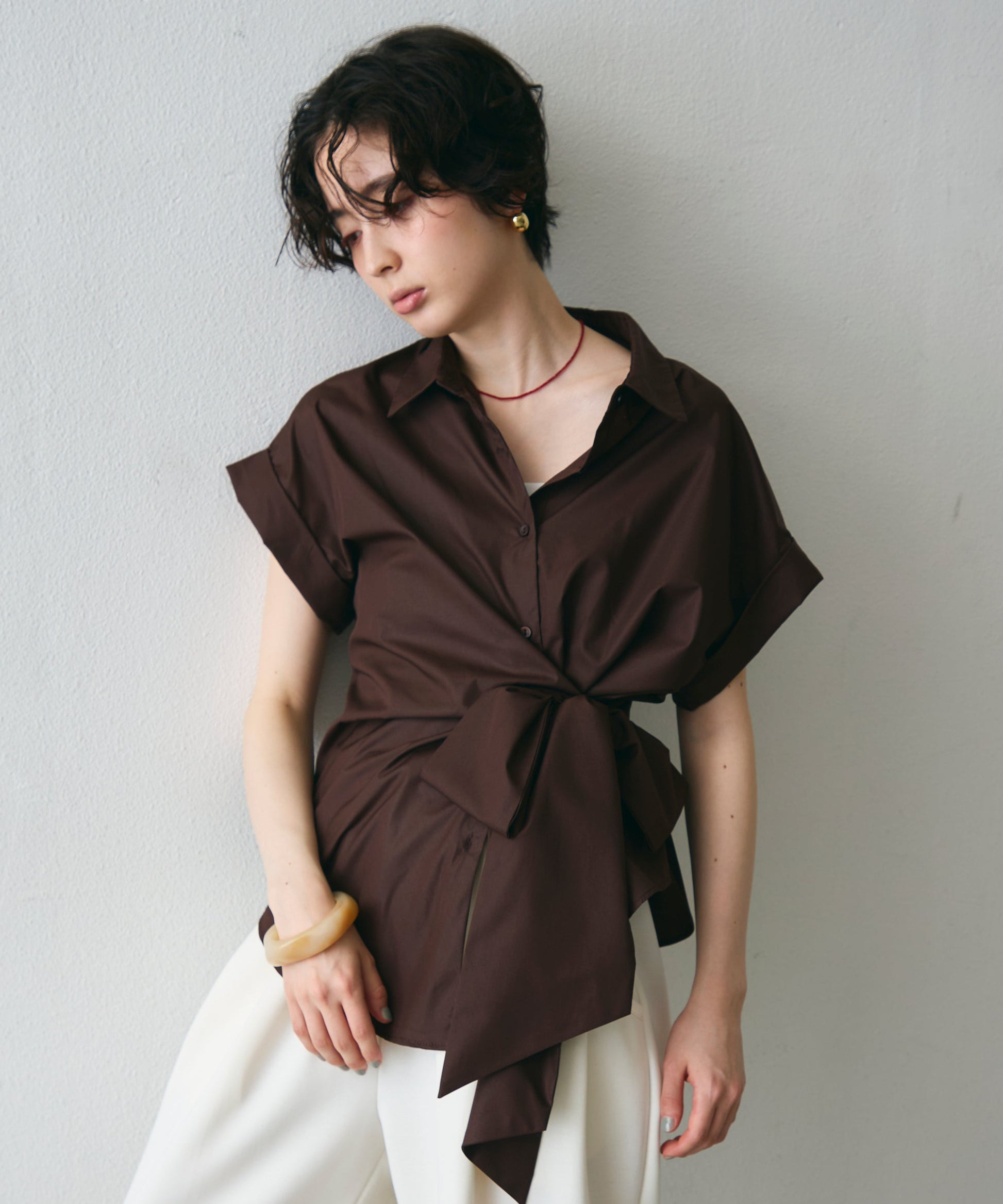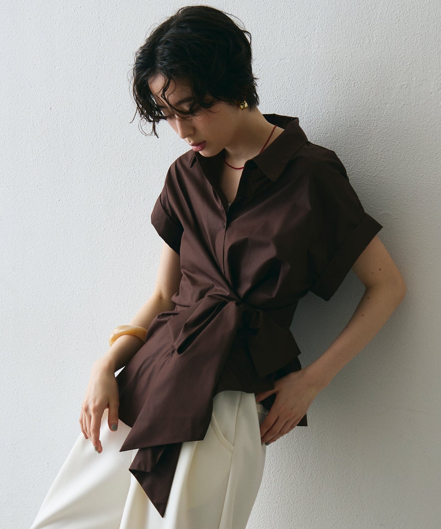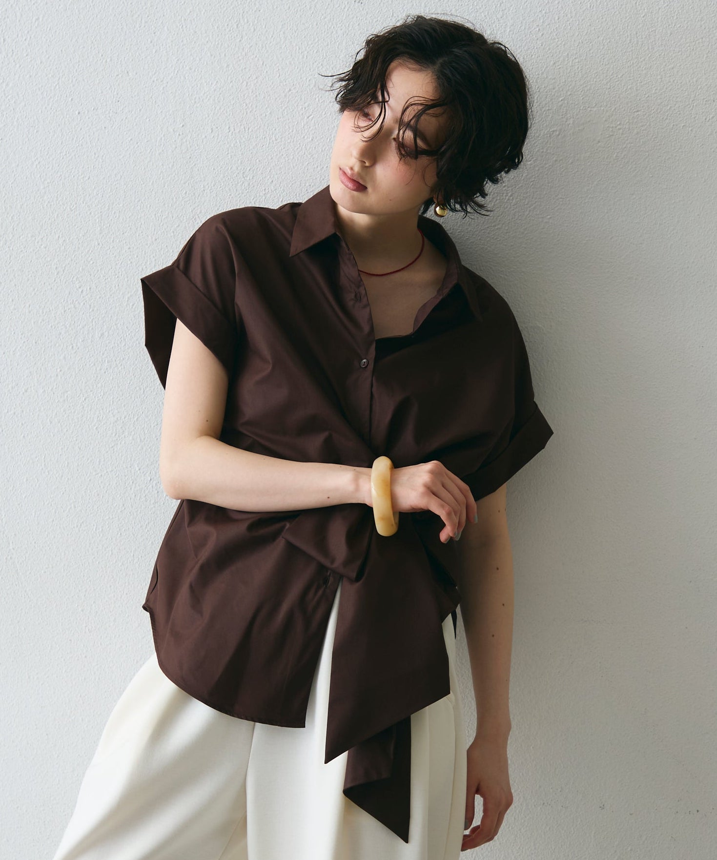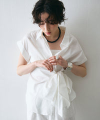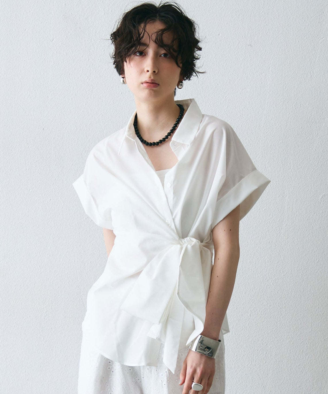 脇のリボンディテールがさりげないアクセントになるフレンチスリーブシャツ