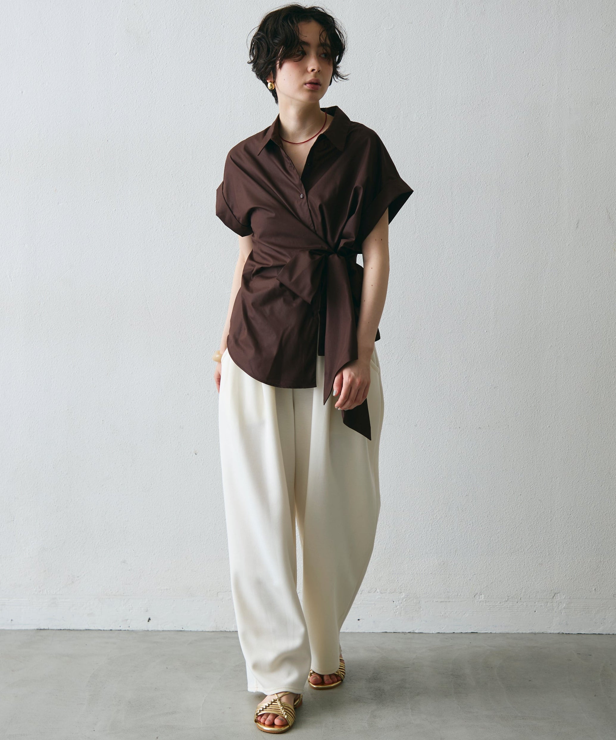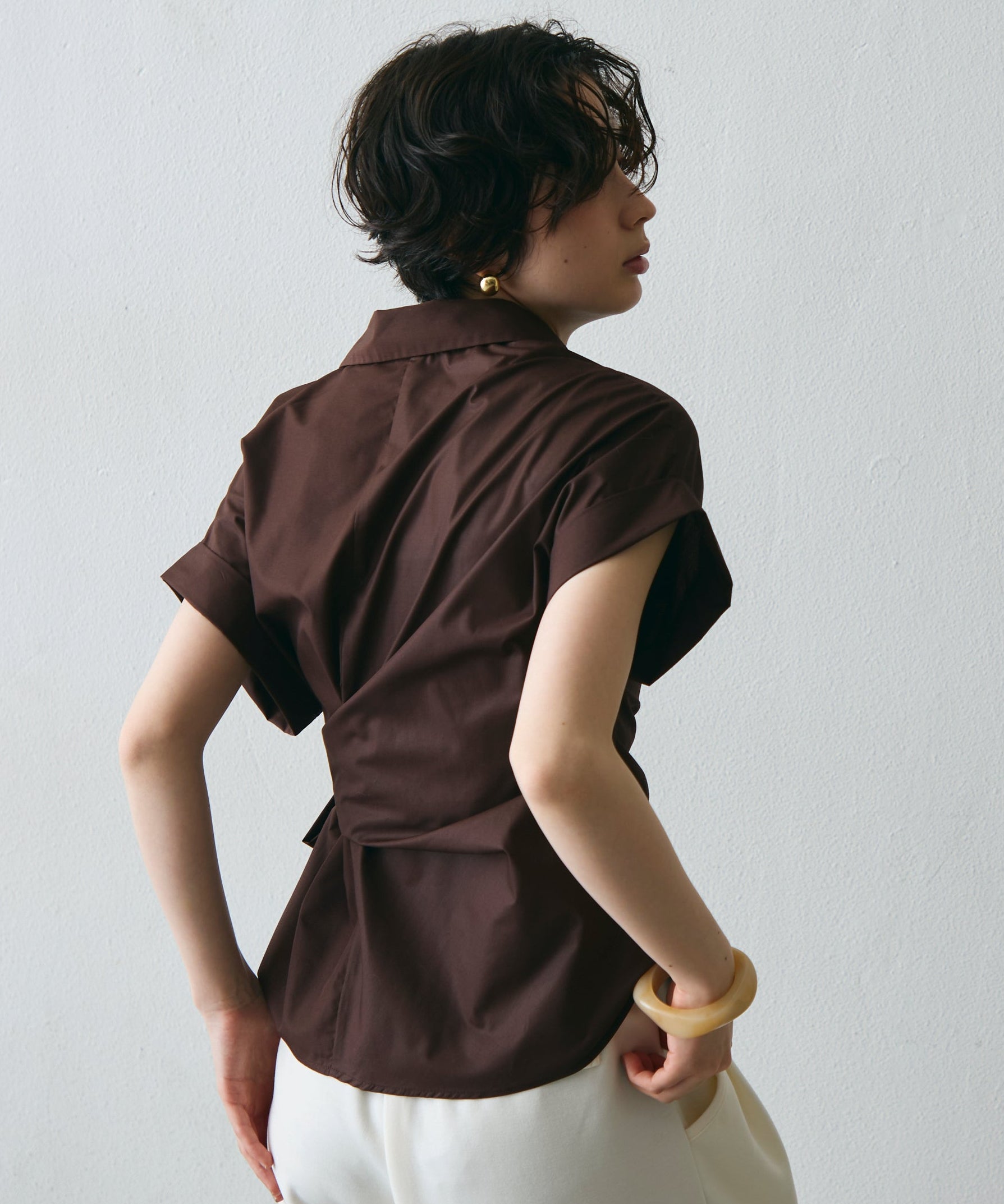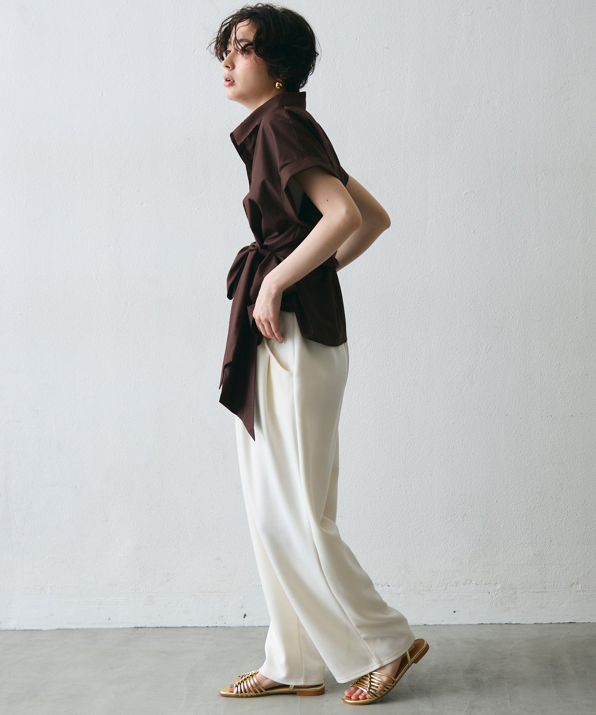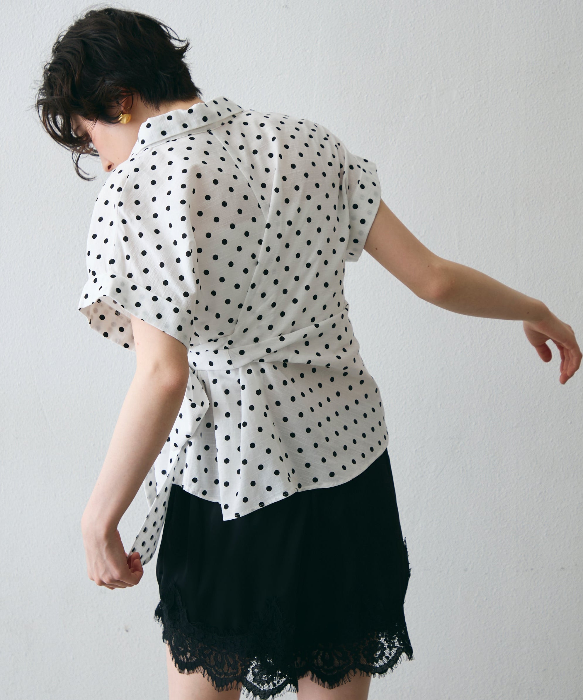 脇のリボンディテールがさりげないアクセントになるフレンチスリーブシャツ